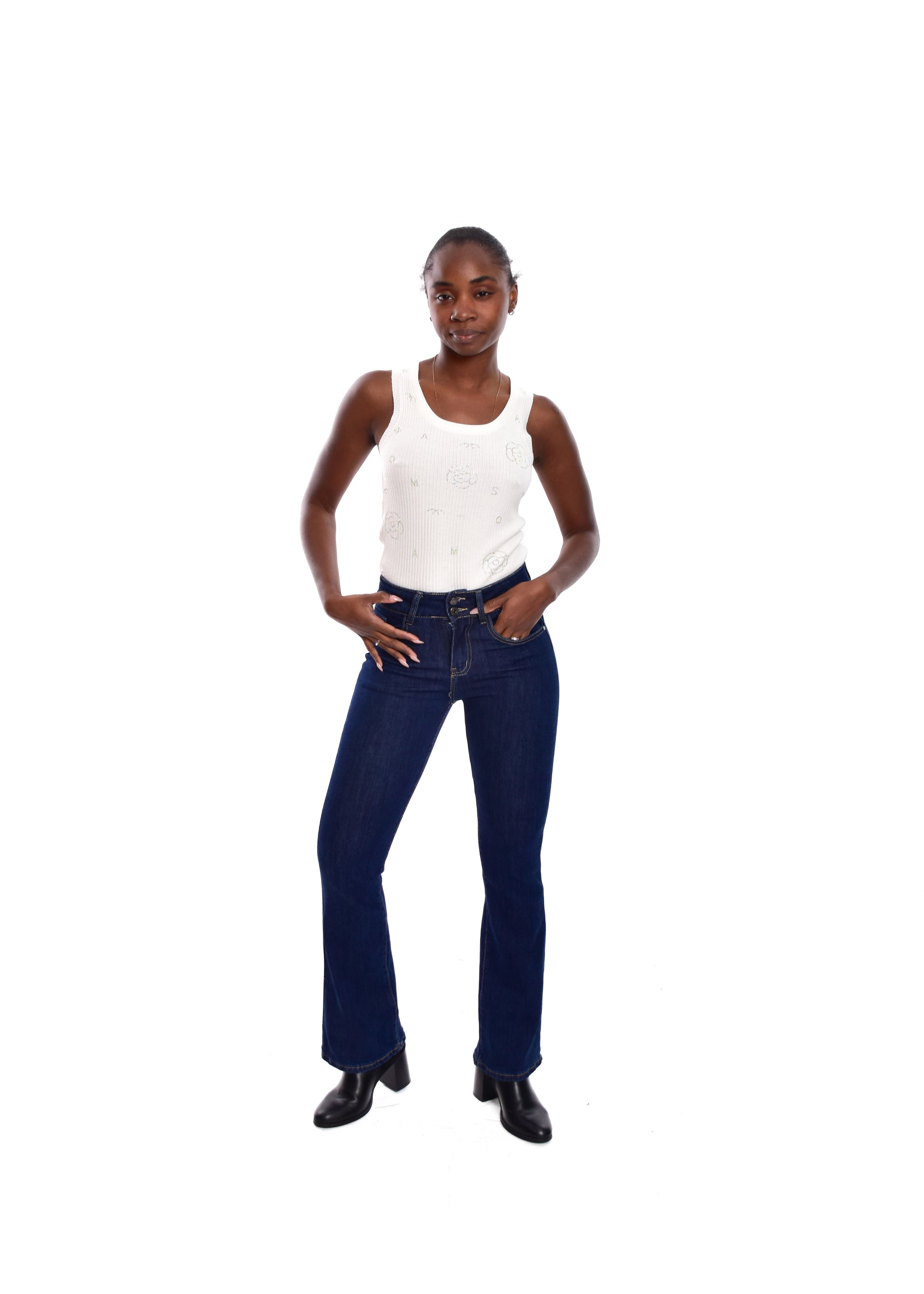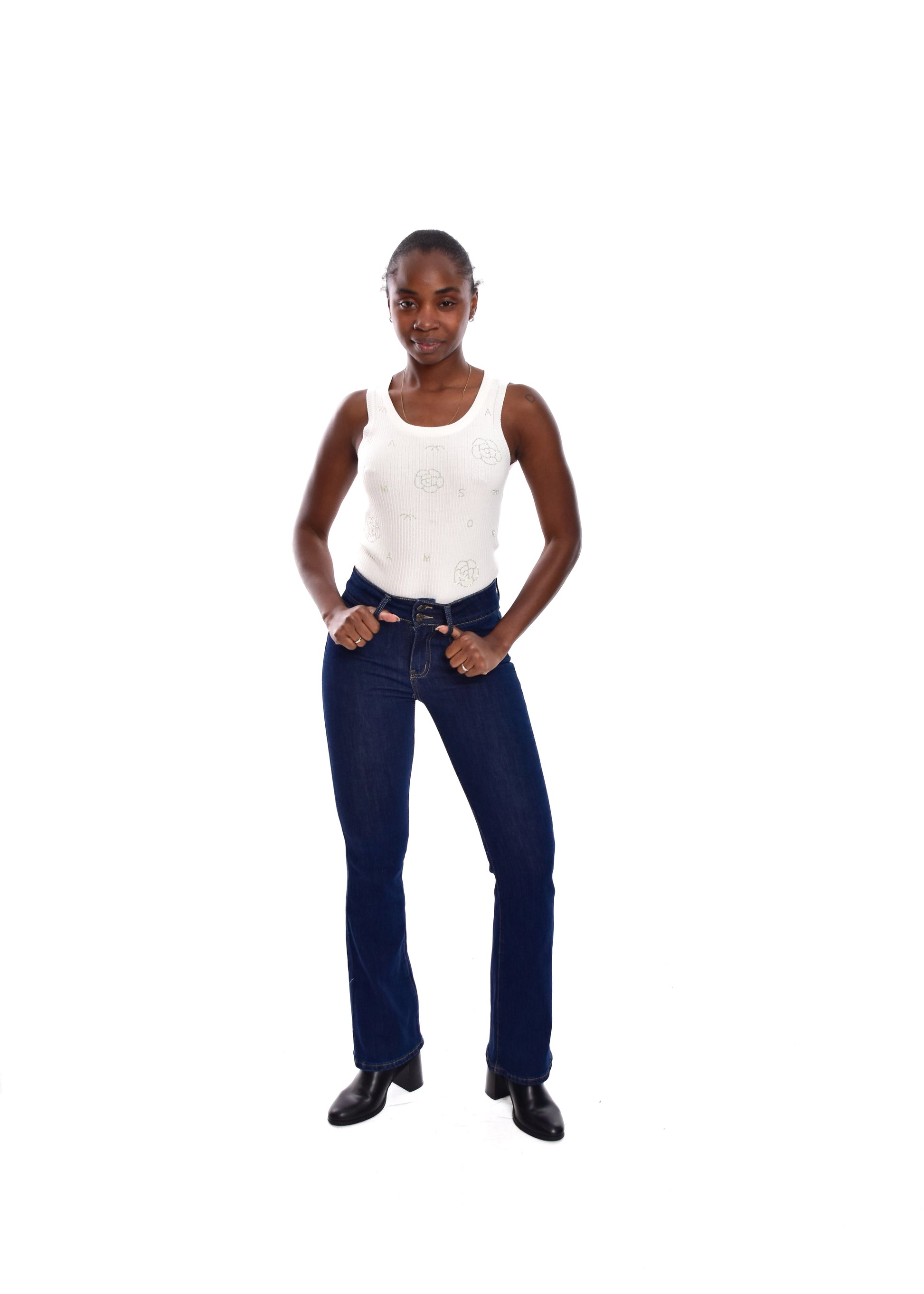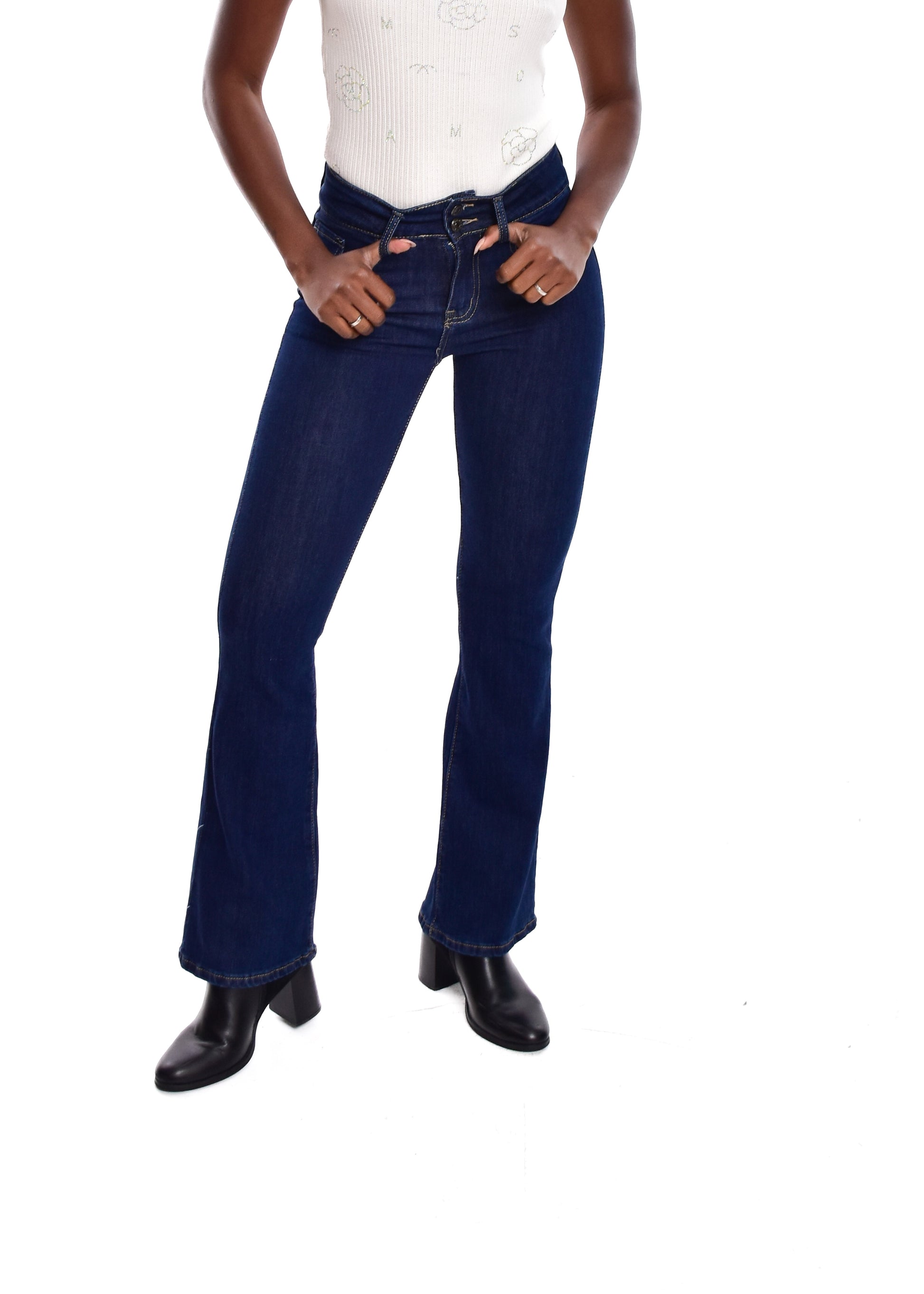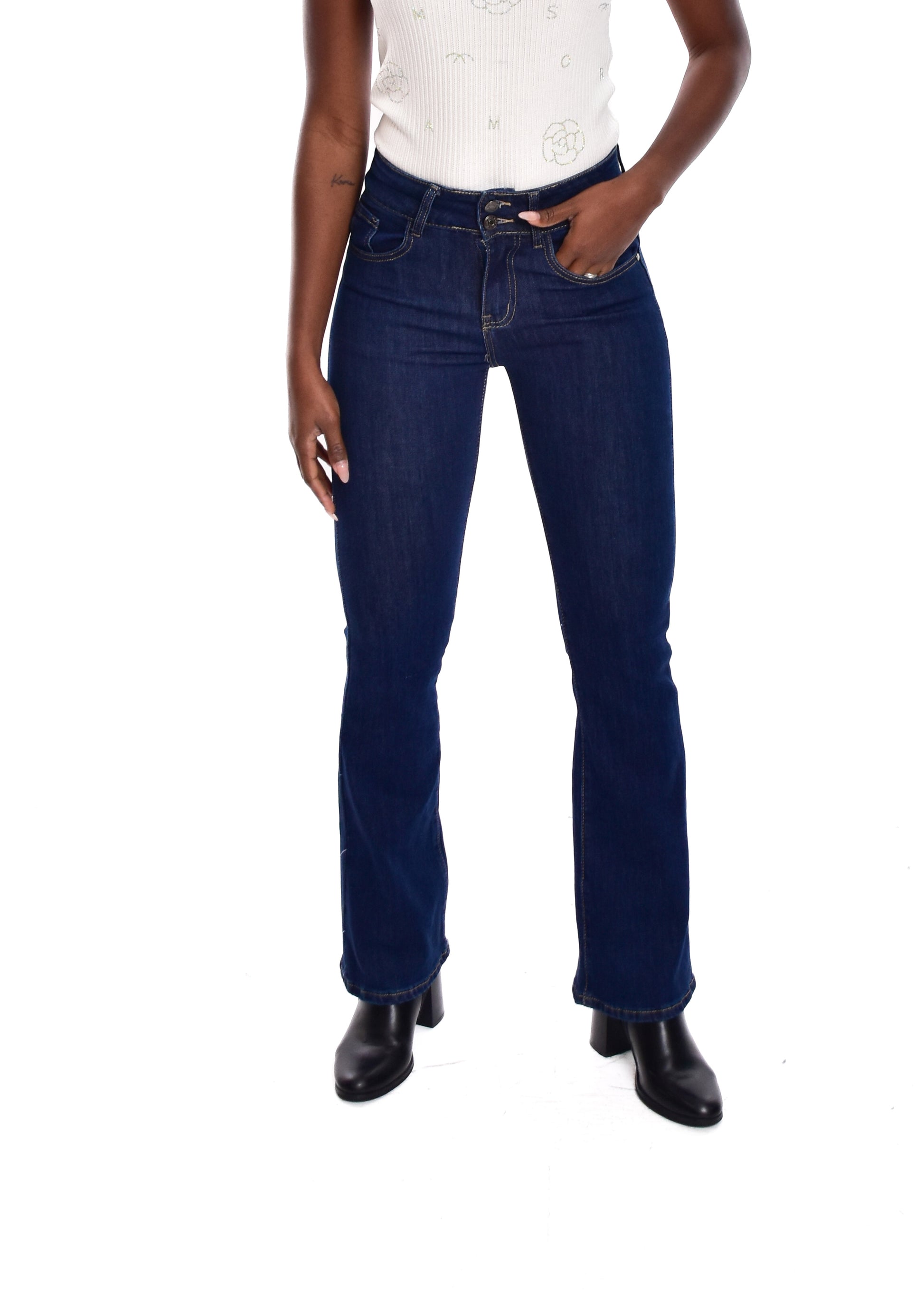 Pantalón de corte acampanado. Esta prenda está disponible de la talla XS a la XL , en este caso es apta hasta una talla 42. Si lo deseas puedes comprobar las medidas exactas de la prenda en el apartado " Talla y Medidas"