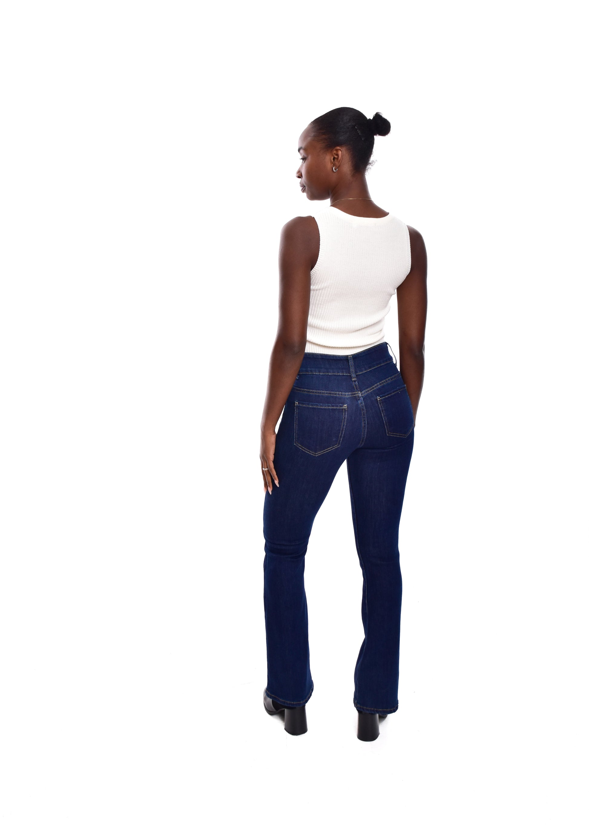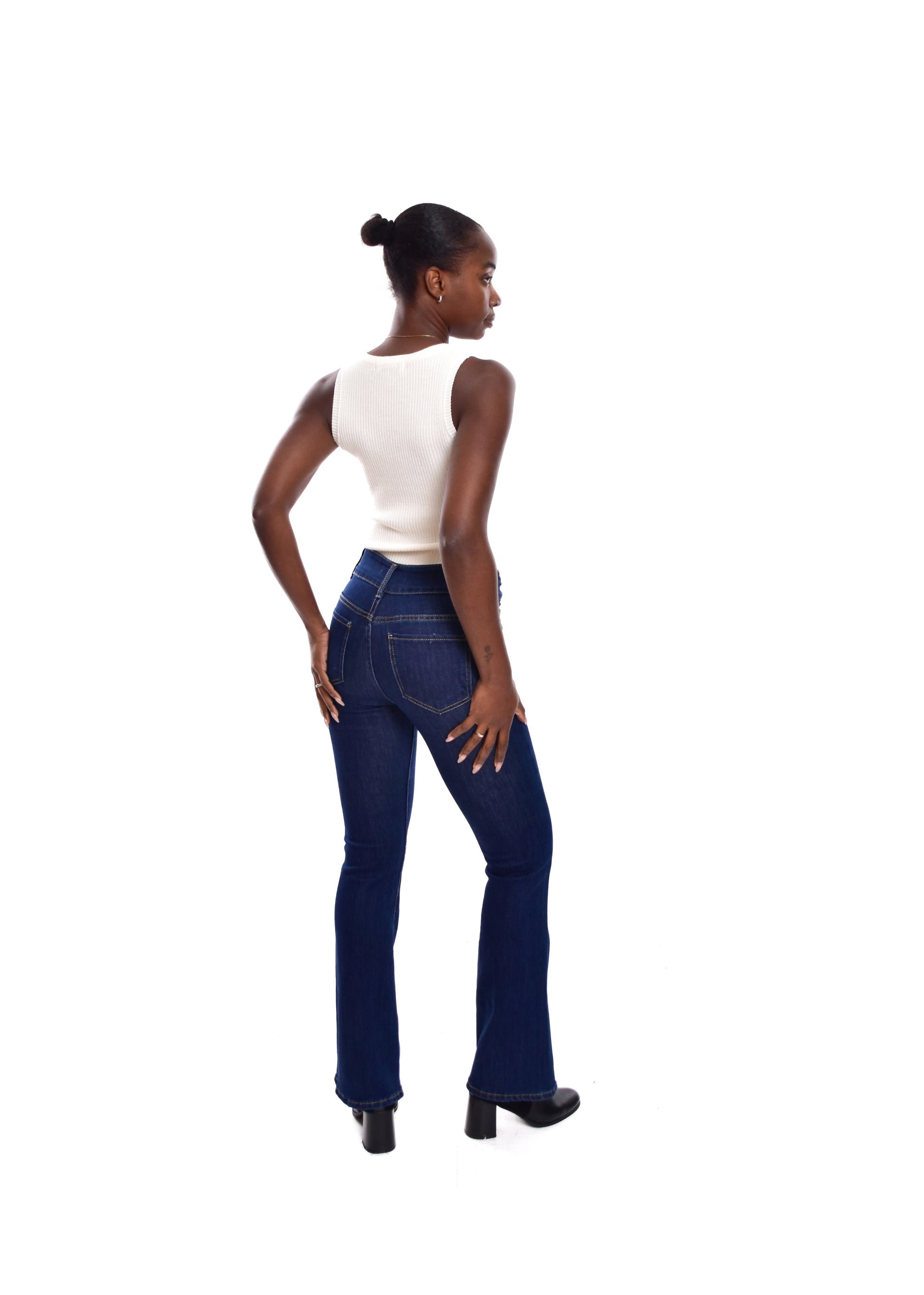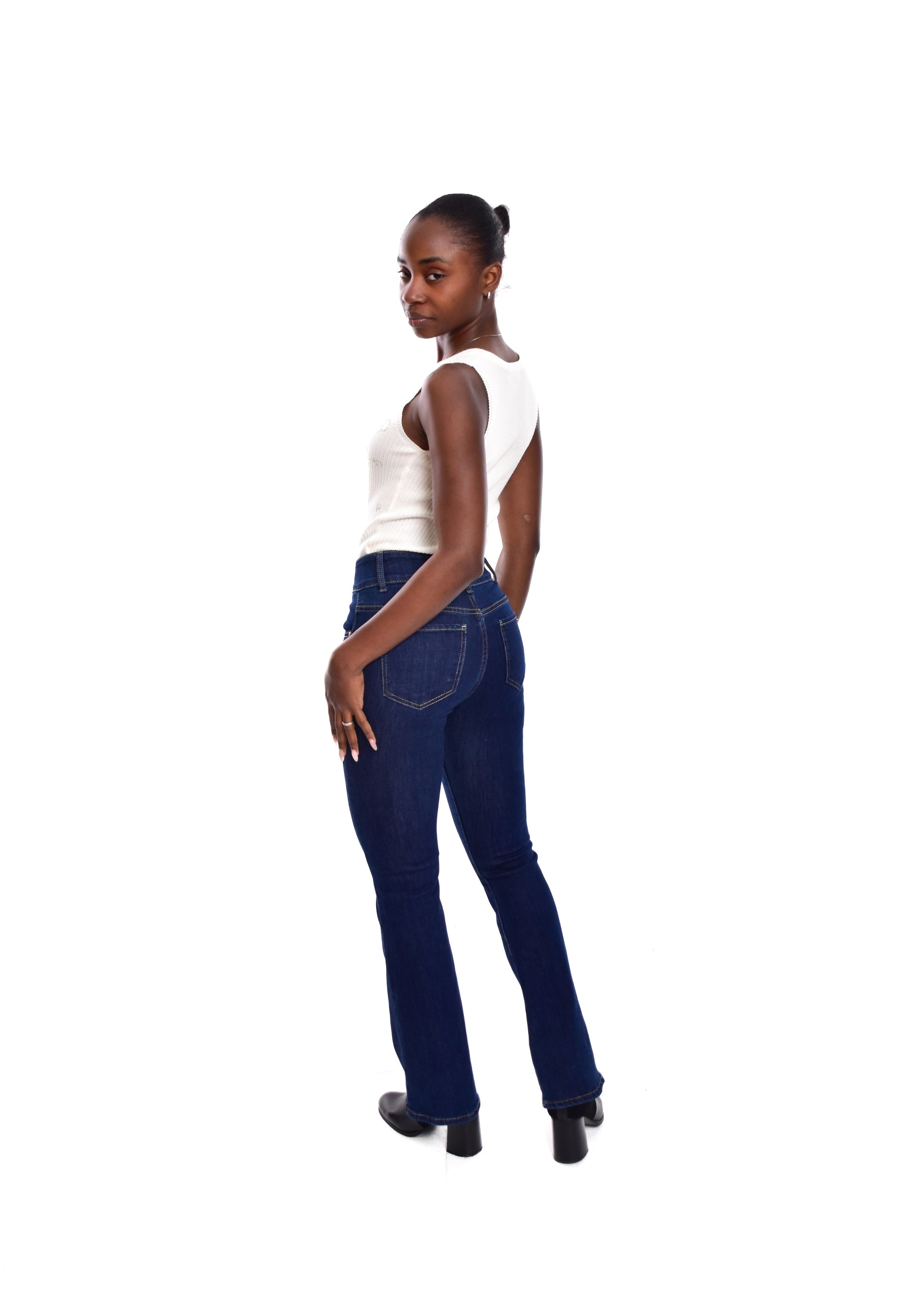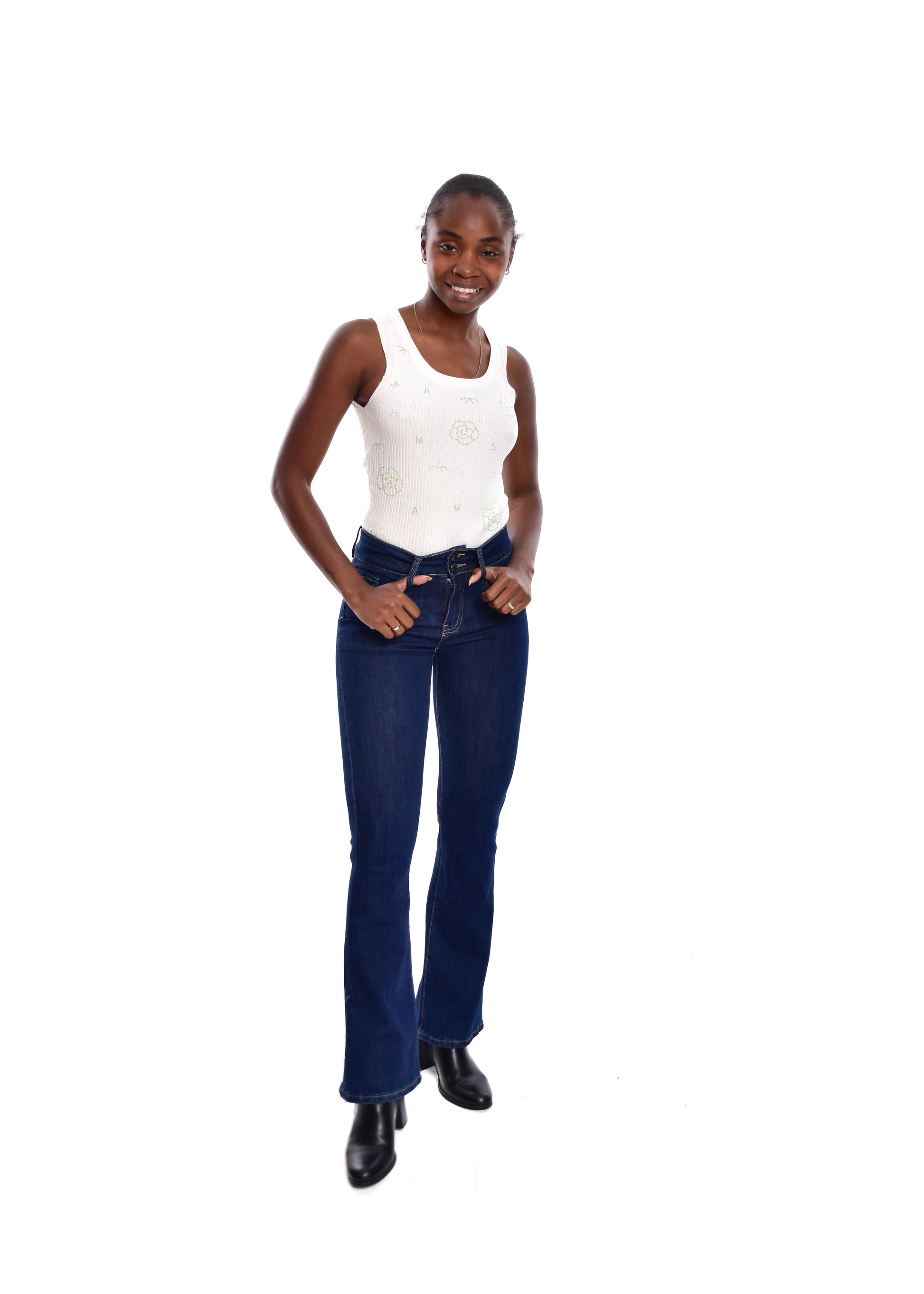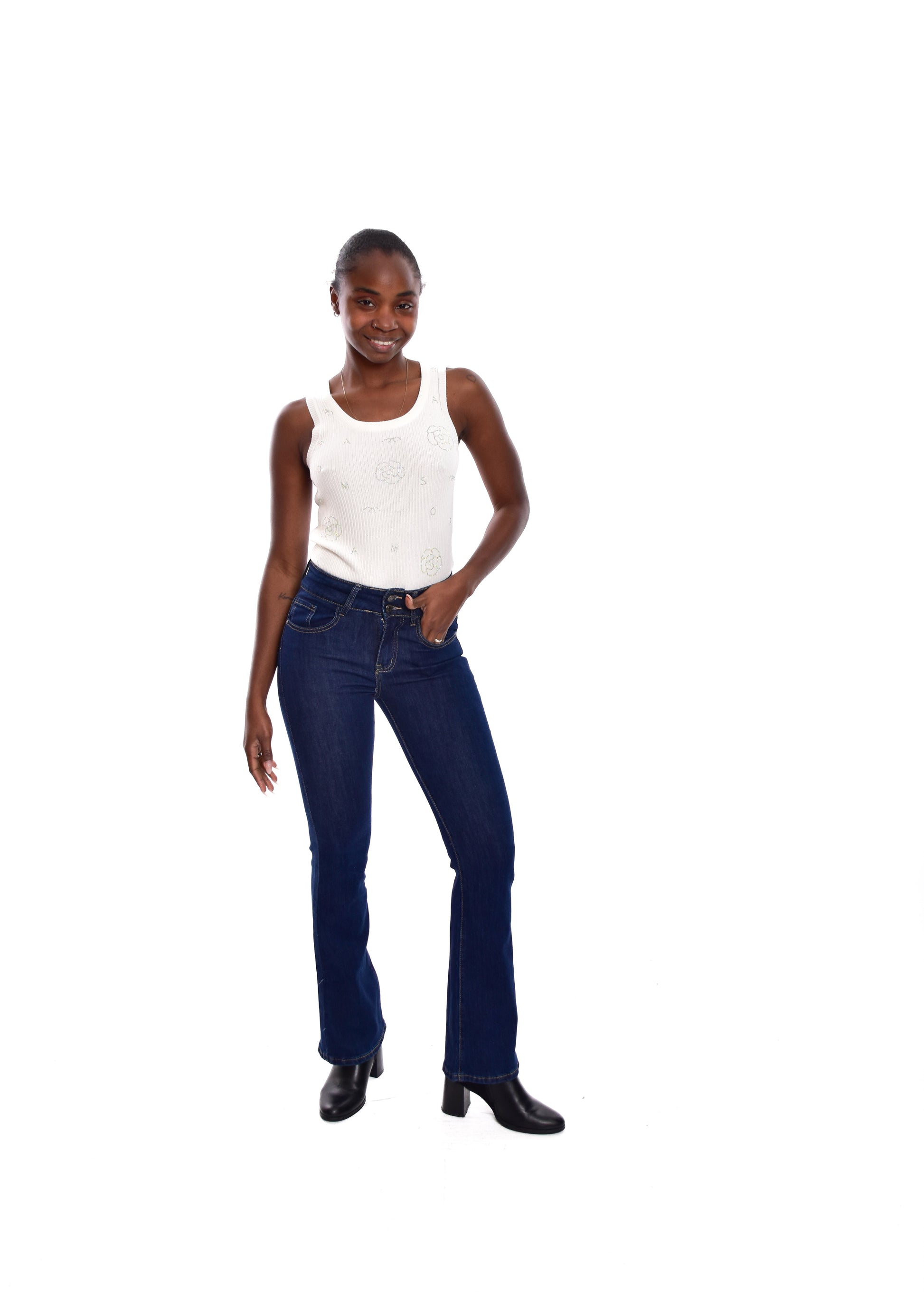 Pantalón de corte acampanado. Esta prenda está disponible de la talla XS a la XL , en este caso es apta hasta una talla 42. Si lo deseas puedes comprobar las medidas exactas de la prenda en el apartado " Talla y Medidas"