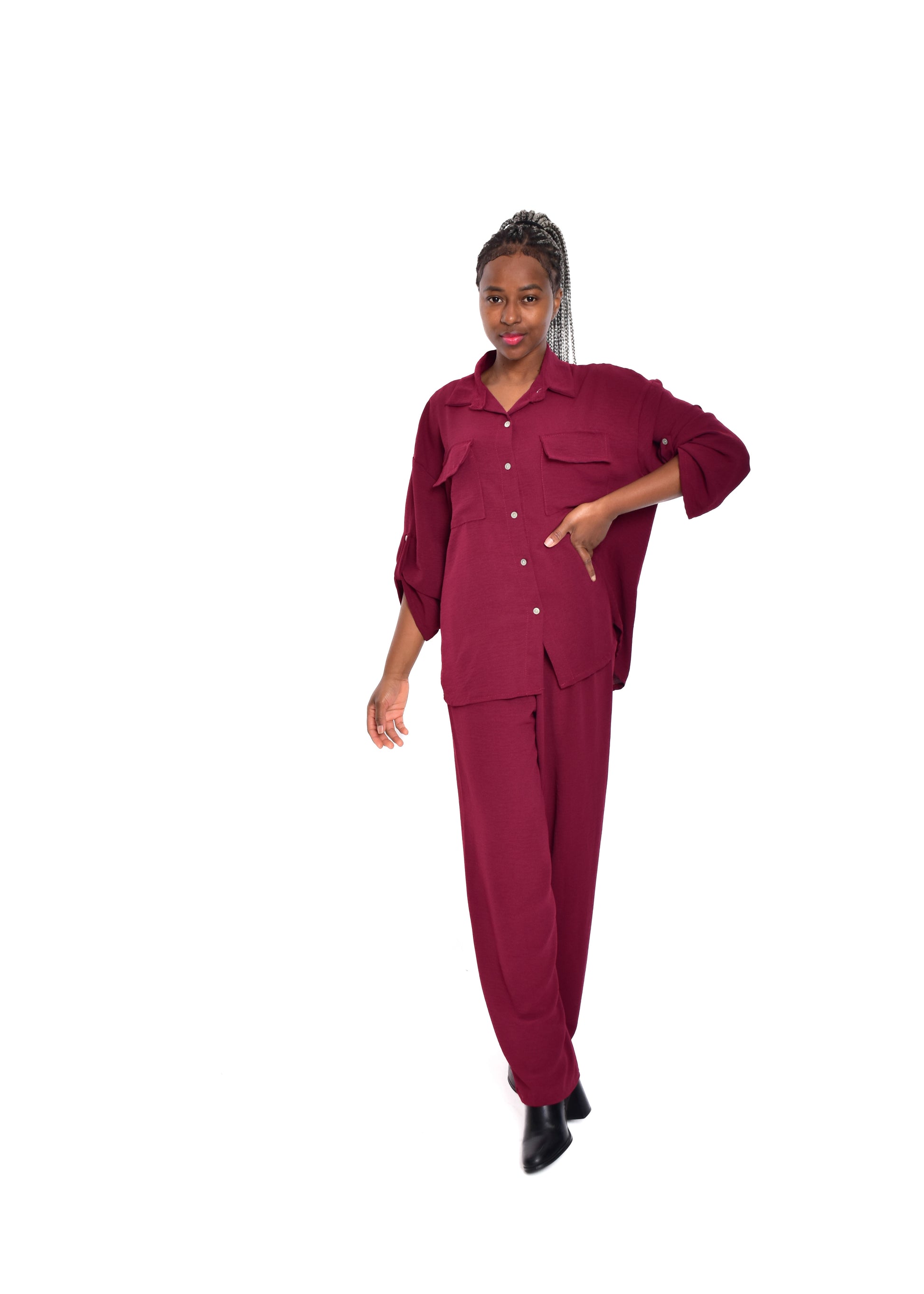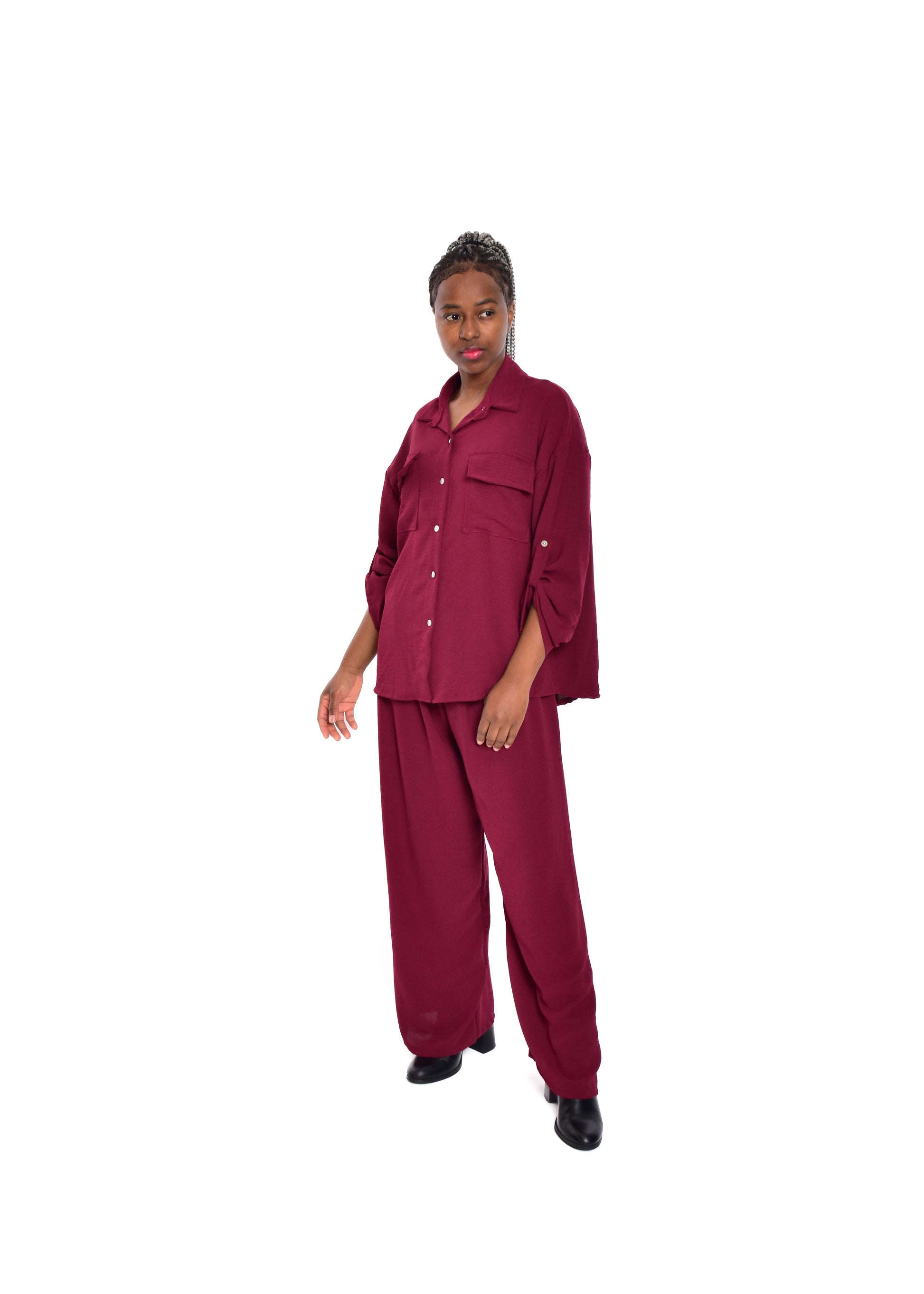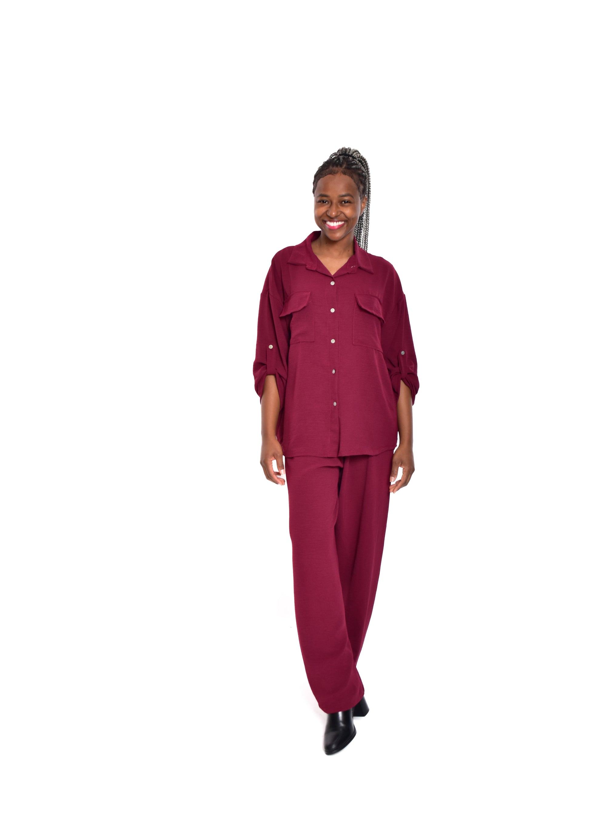CONJUNTO BLUSA+ PANTALÓN- GRANATE