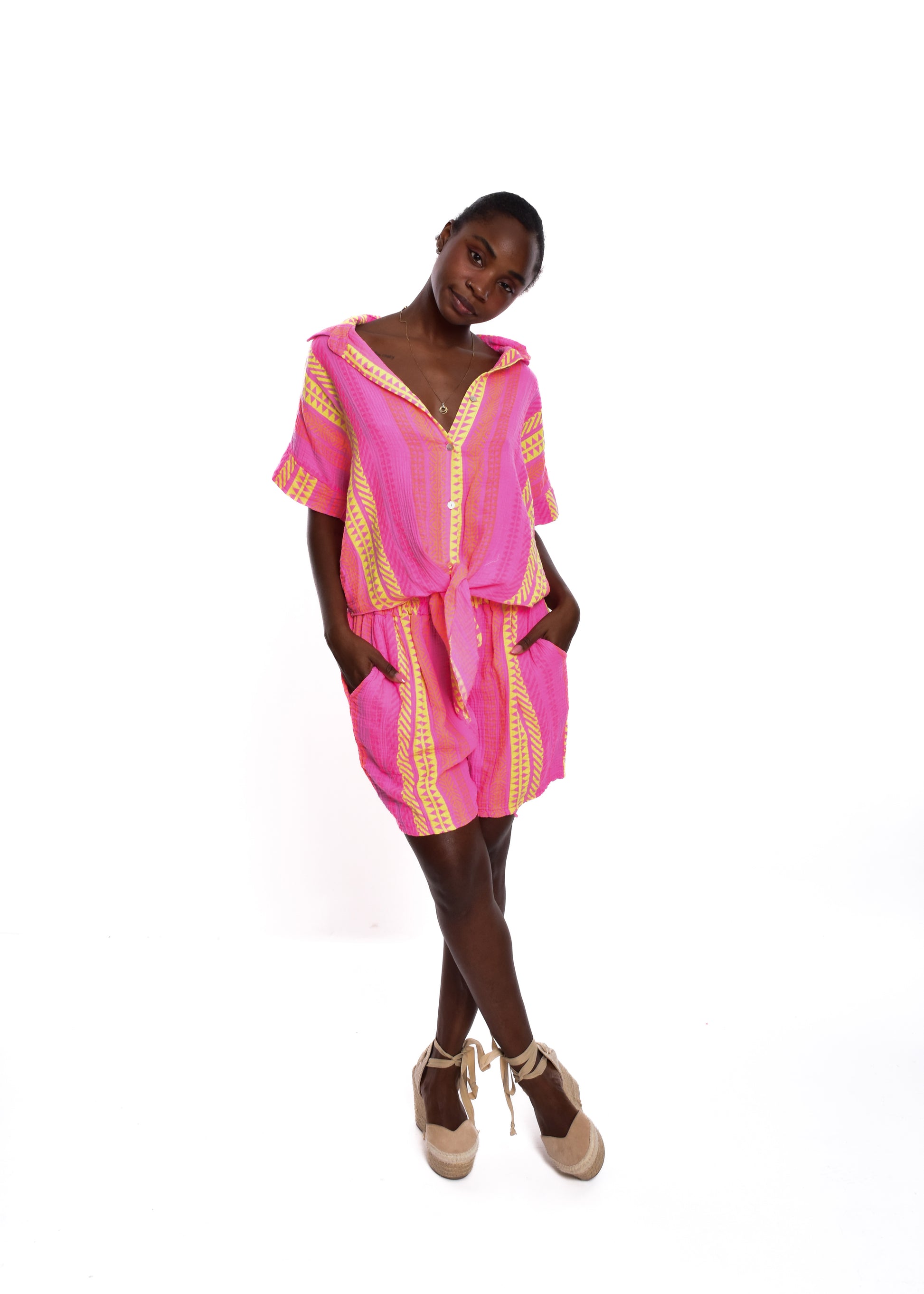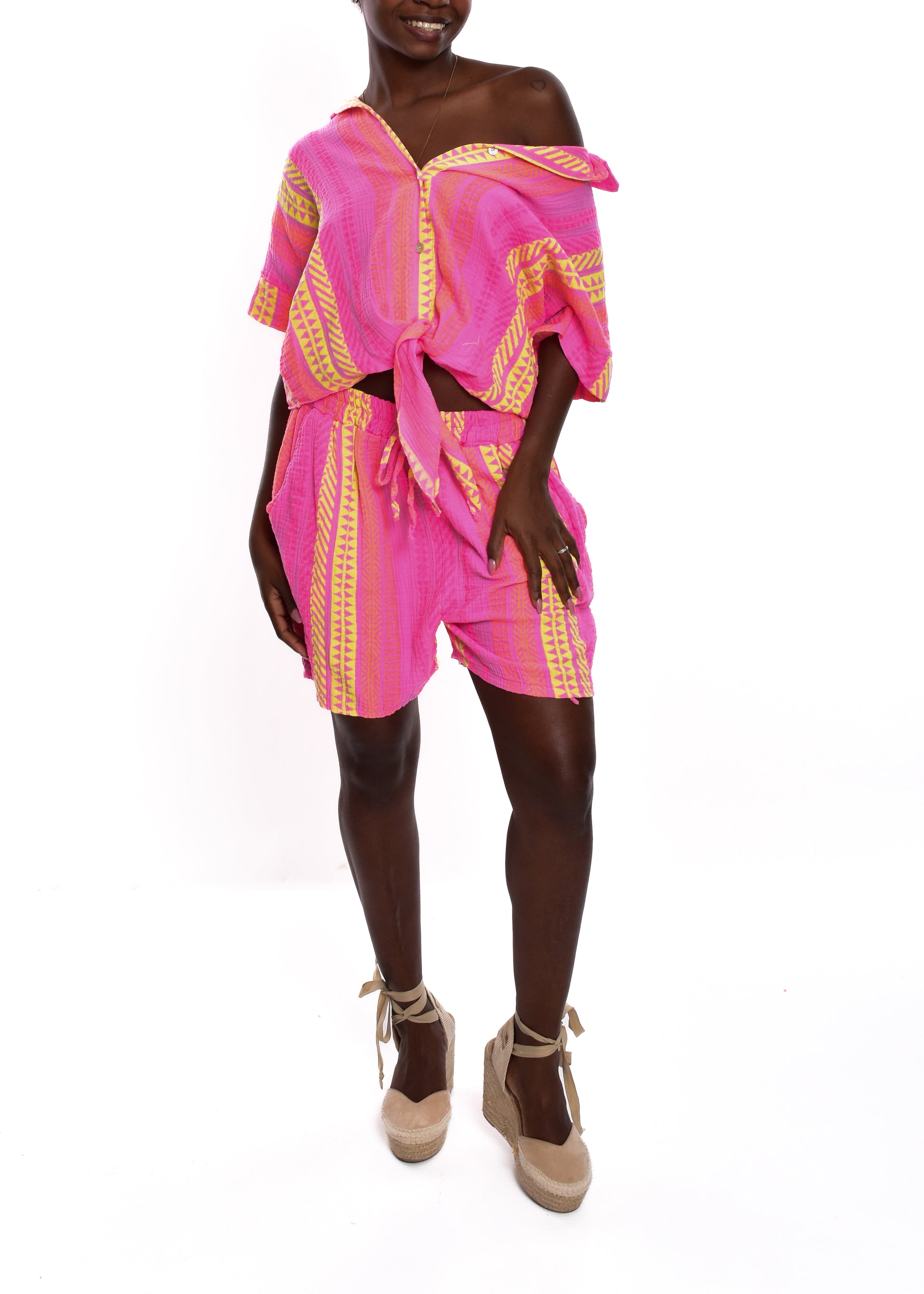 Conjunto de blusa + pantalón.El pantalón lleva goma en la cintura. Este modelo está disponible en talla única, en este caso es apto hasta una talla 42.