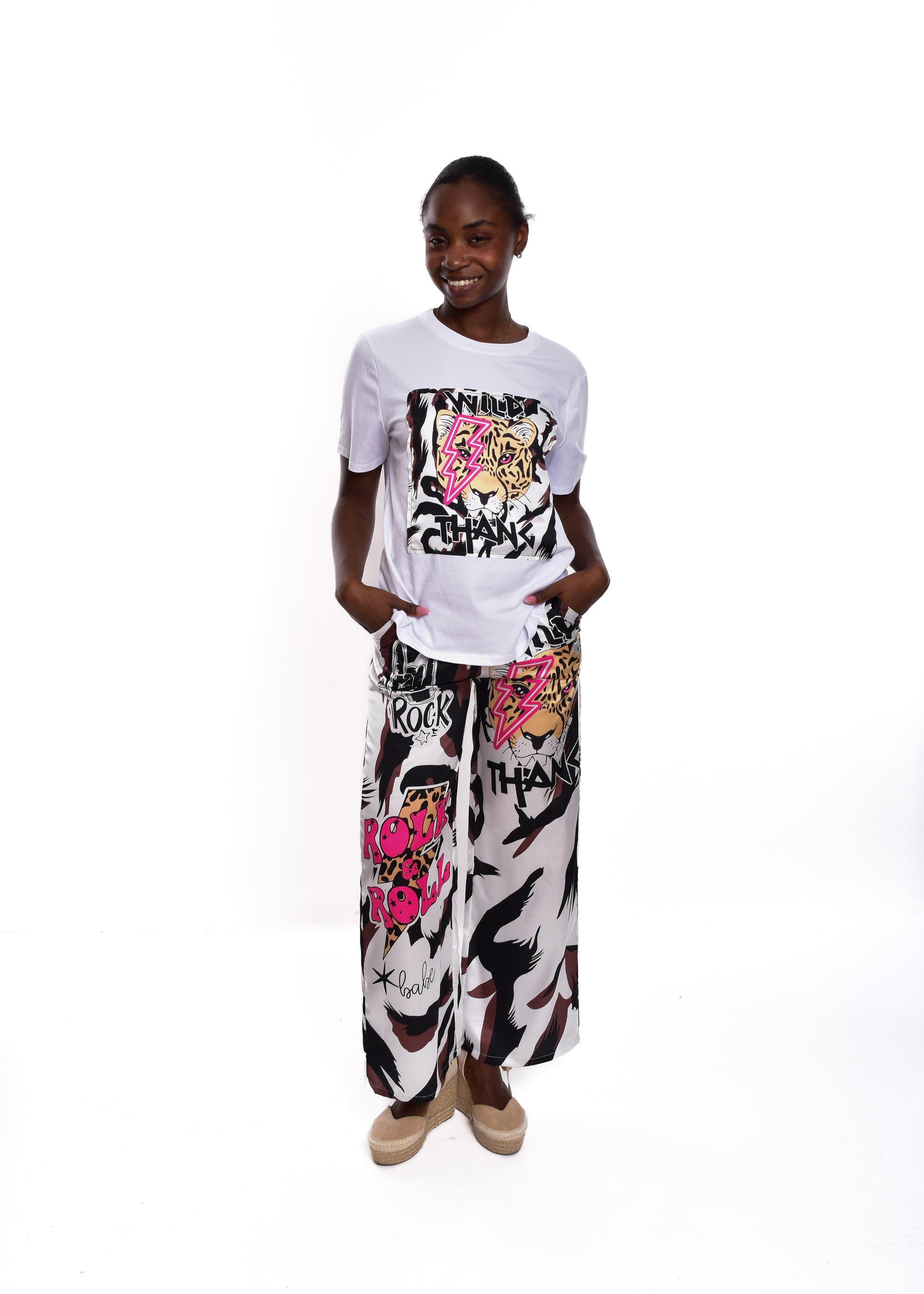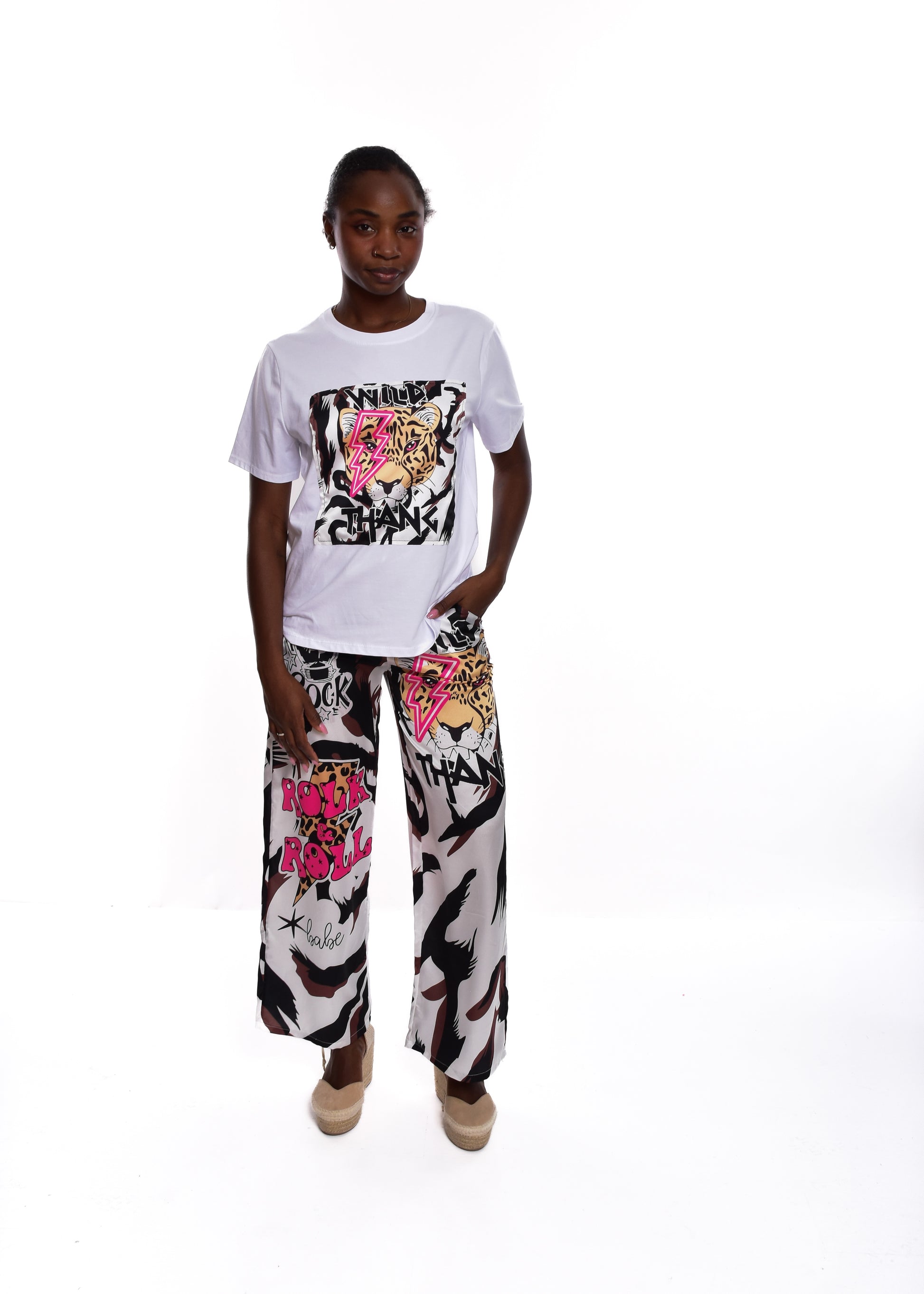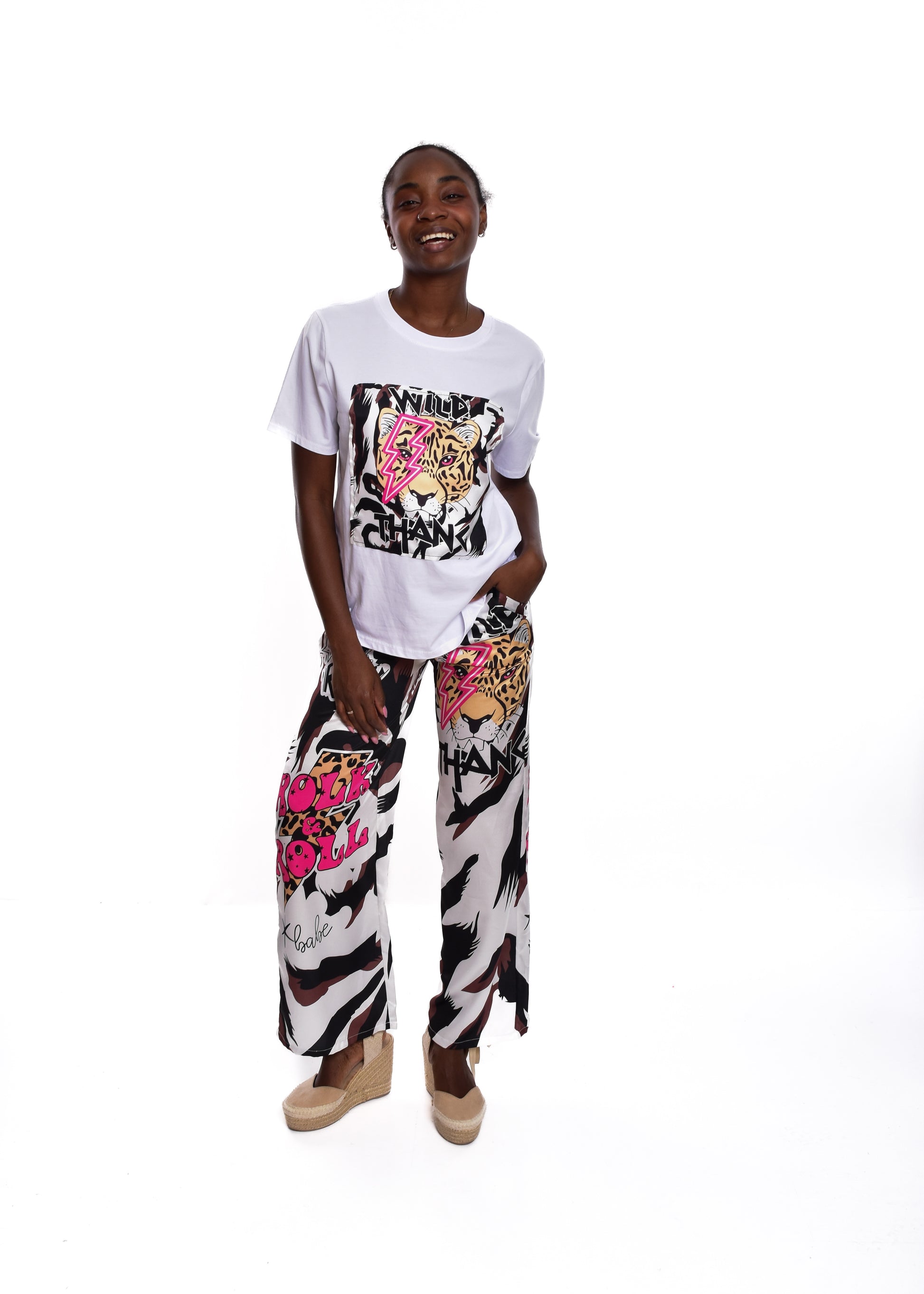 Conjunto de top + pantalón.El pantalón lleva goma en la cintura. Este modelo está disponible en talla única, en este caso es apto hasta una talla 40.