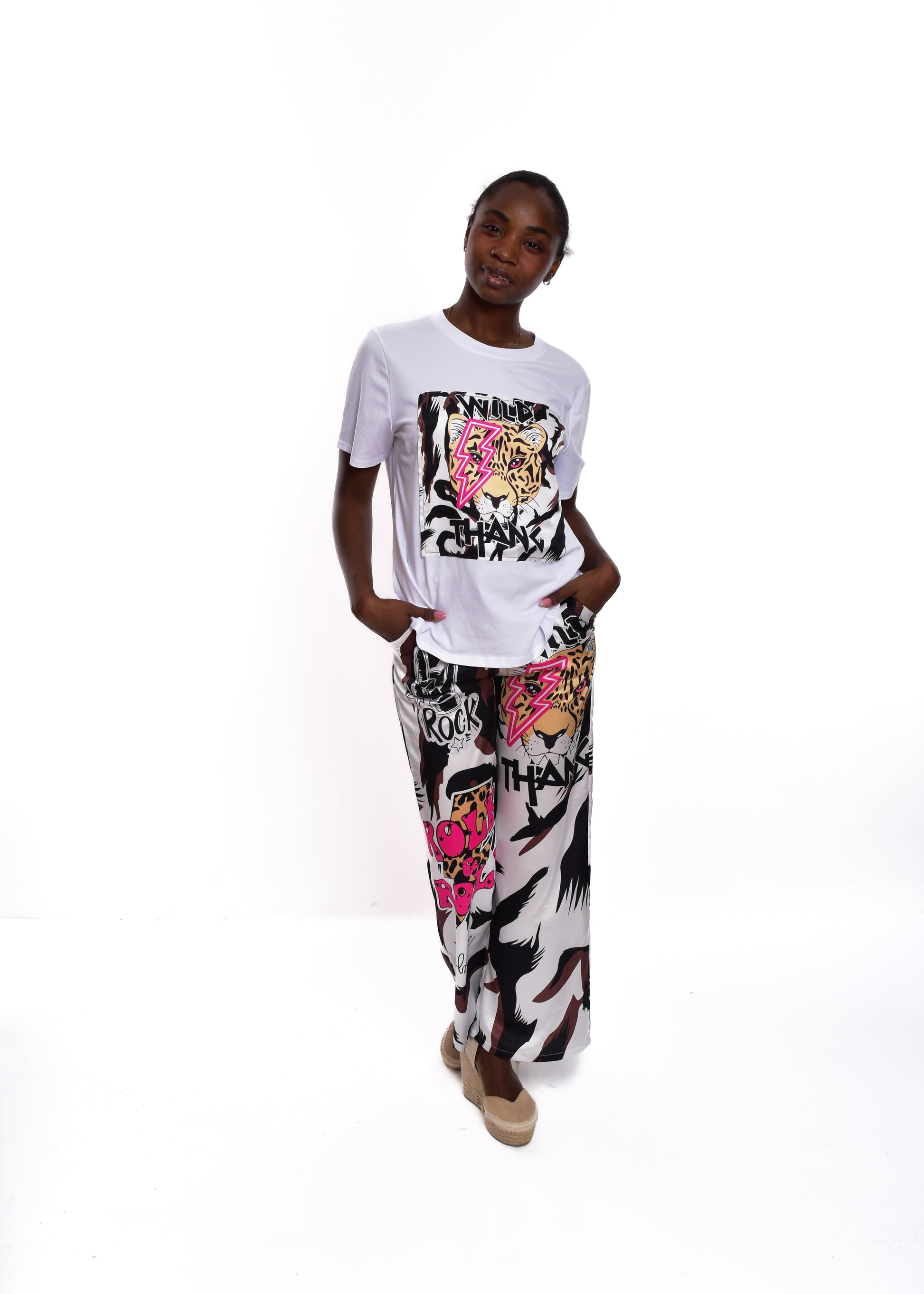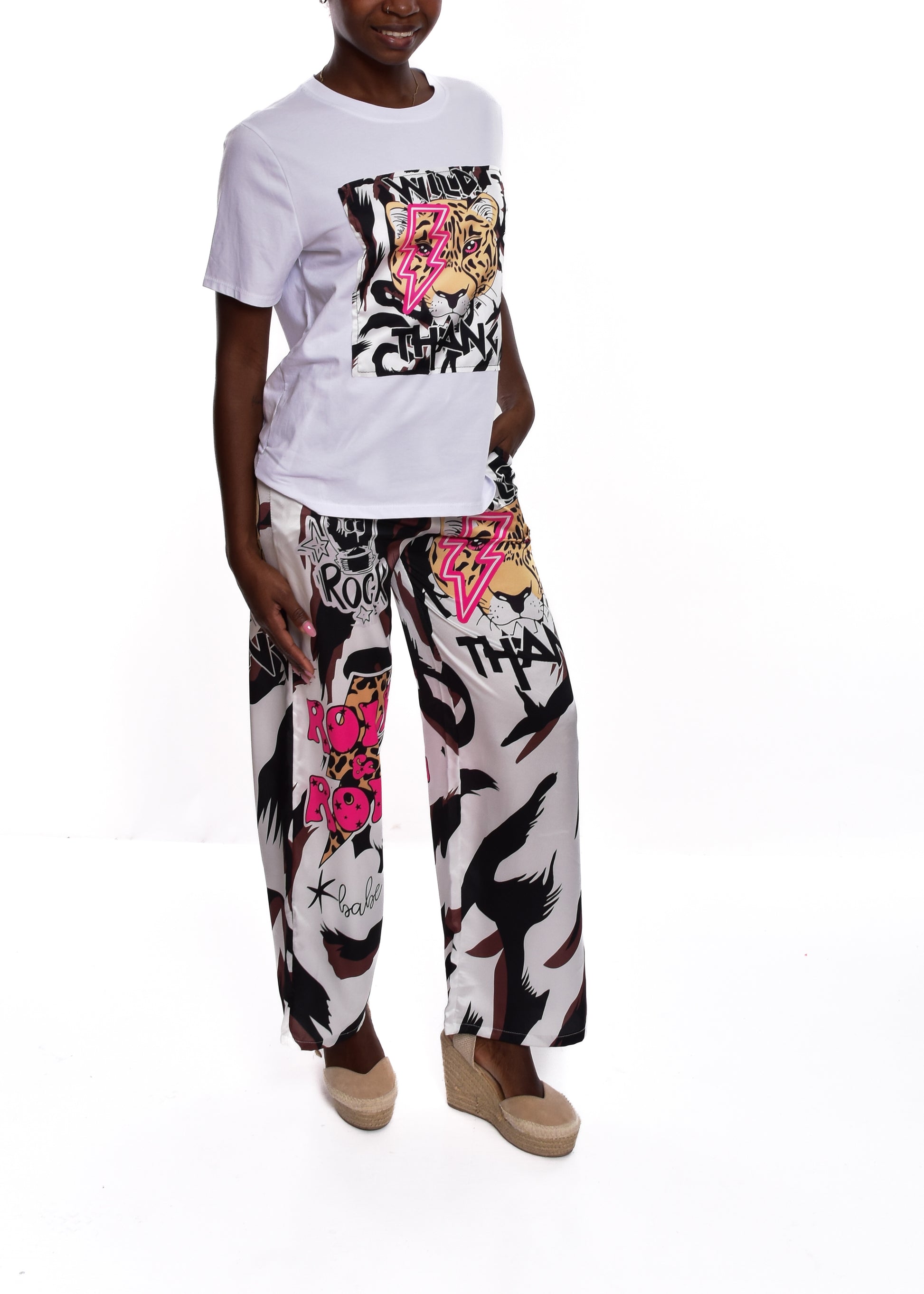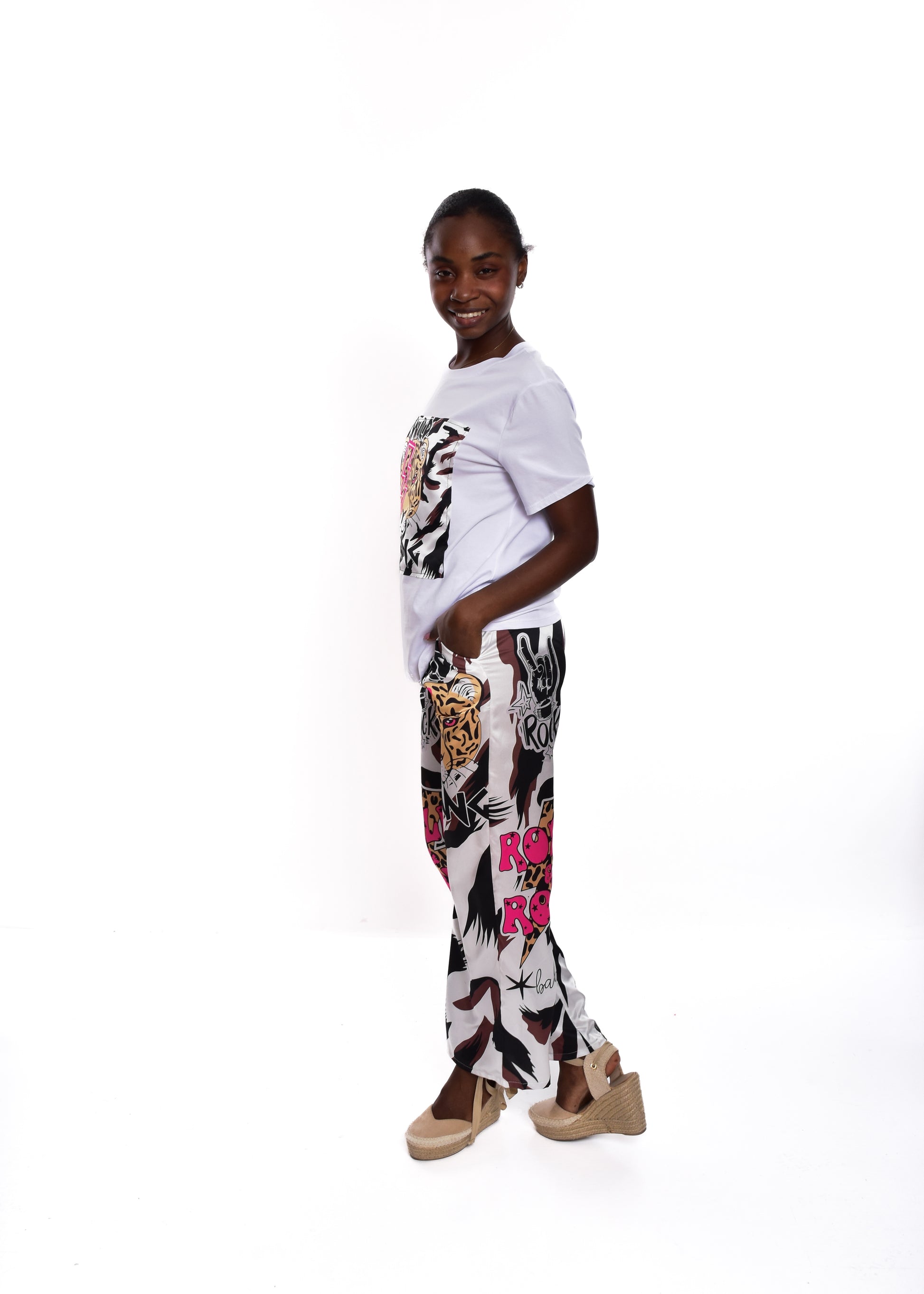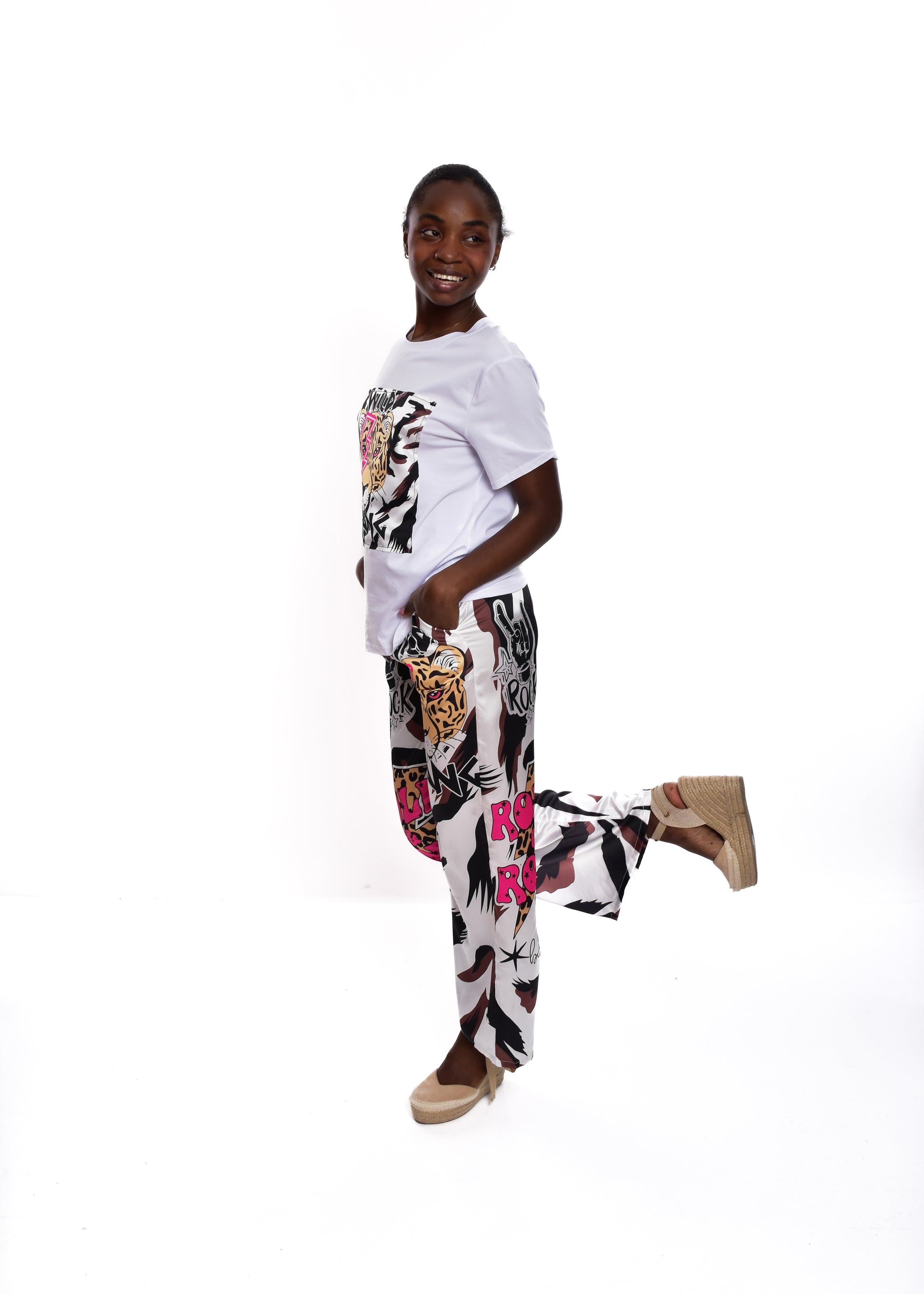 Conjunto de top + pantalón.El pantalón lleva goma en la cintura. Este modelo está disponible en talla única, en este caso es apto hasta una talla 40.