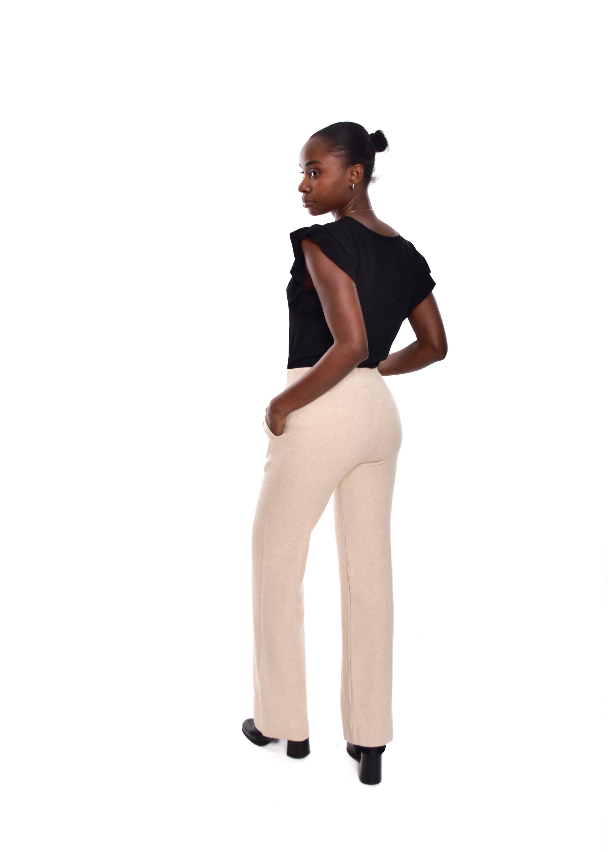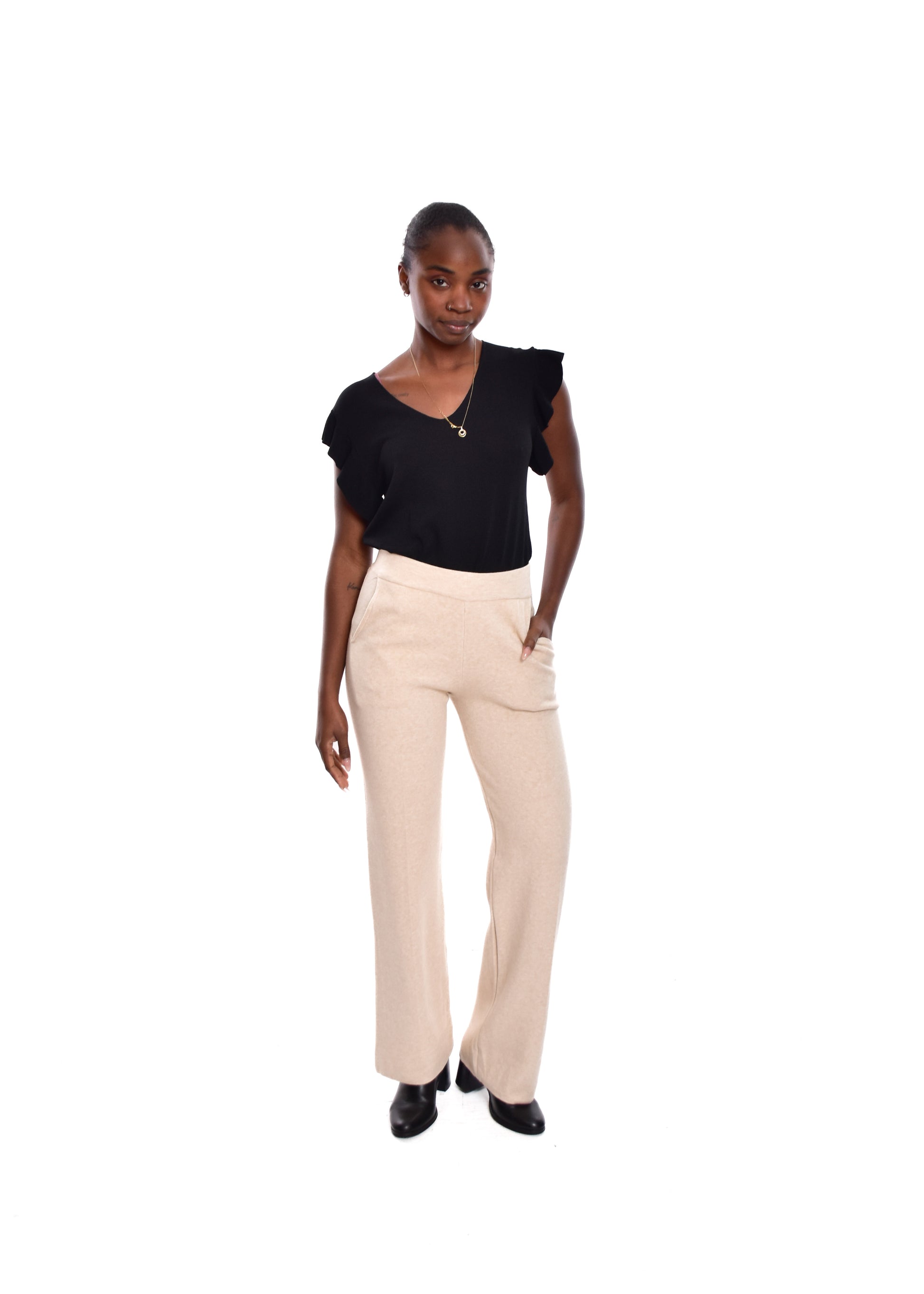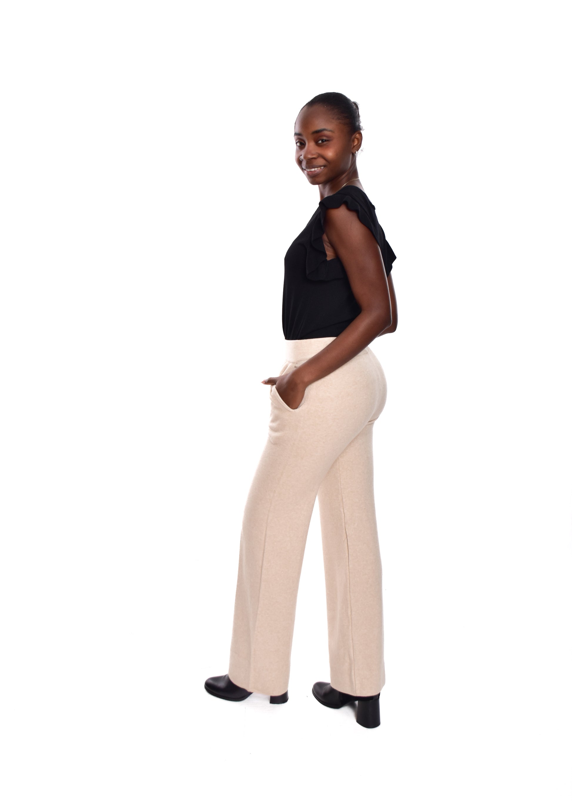 Pantalón grueso en tejido de punto.Lleva goma en la cintura. Este modelo está disponible en doble tallaje, en este caso es apto hasta una talla 42.