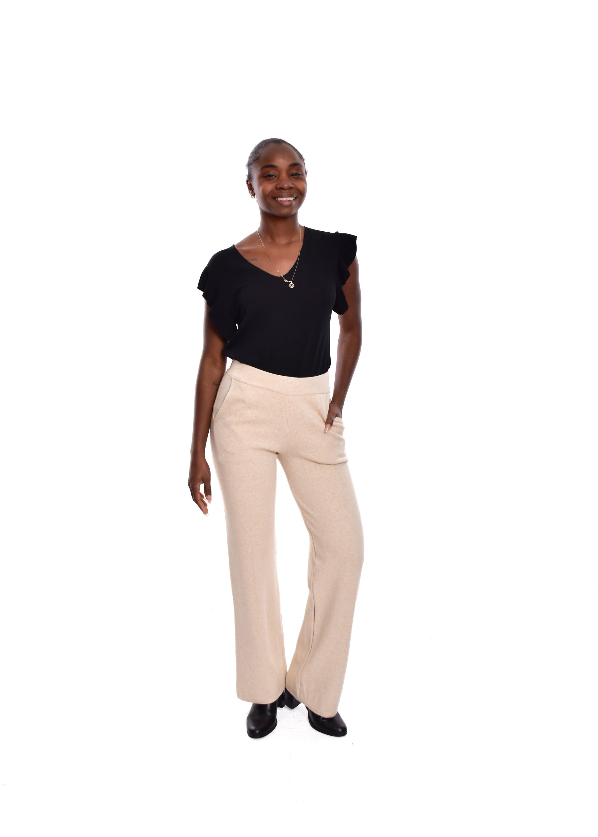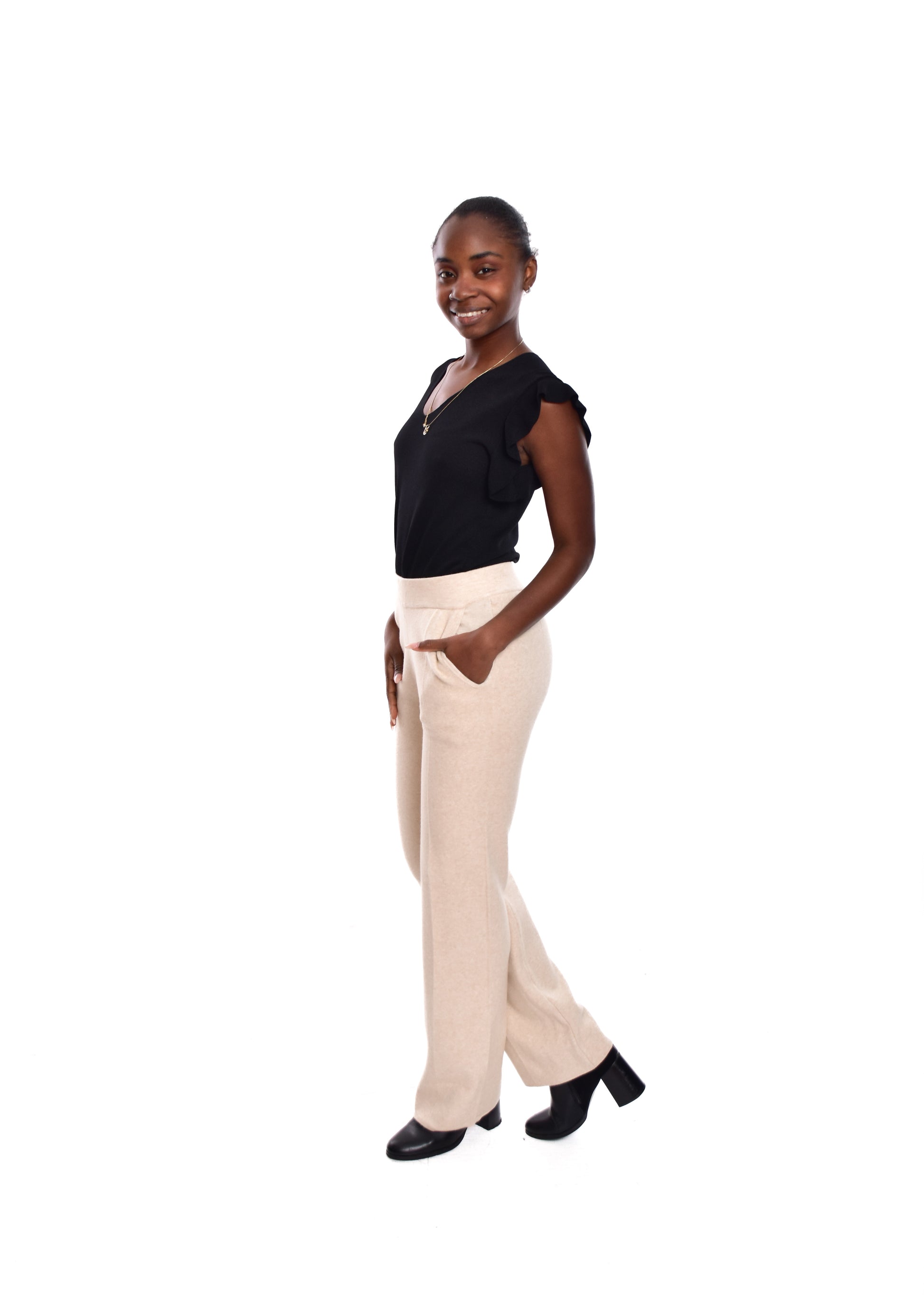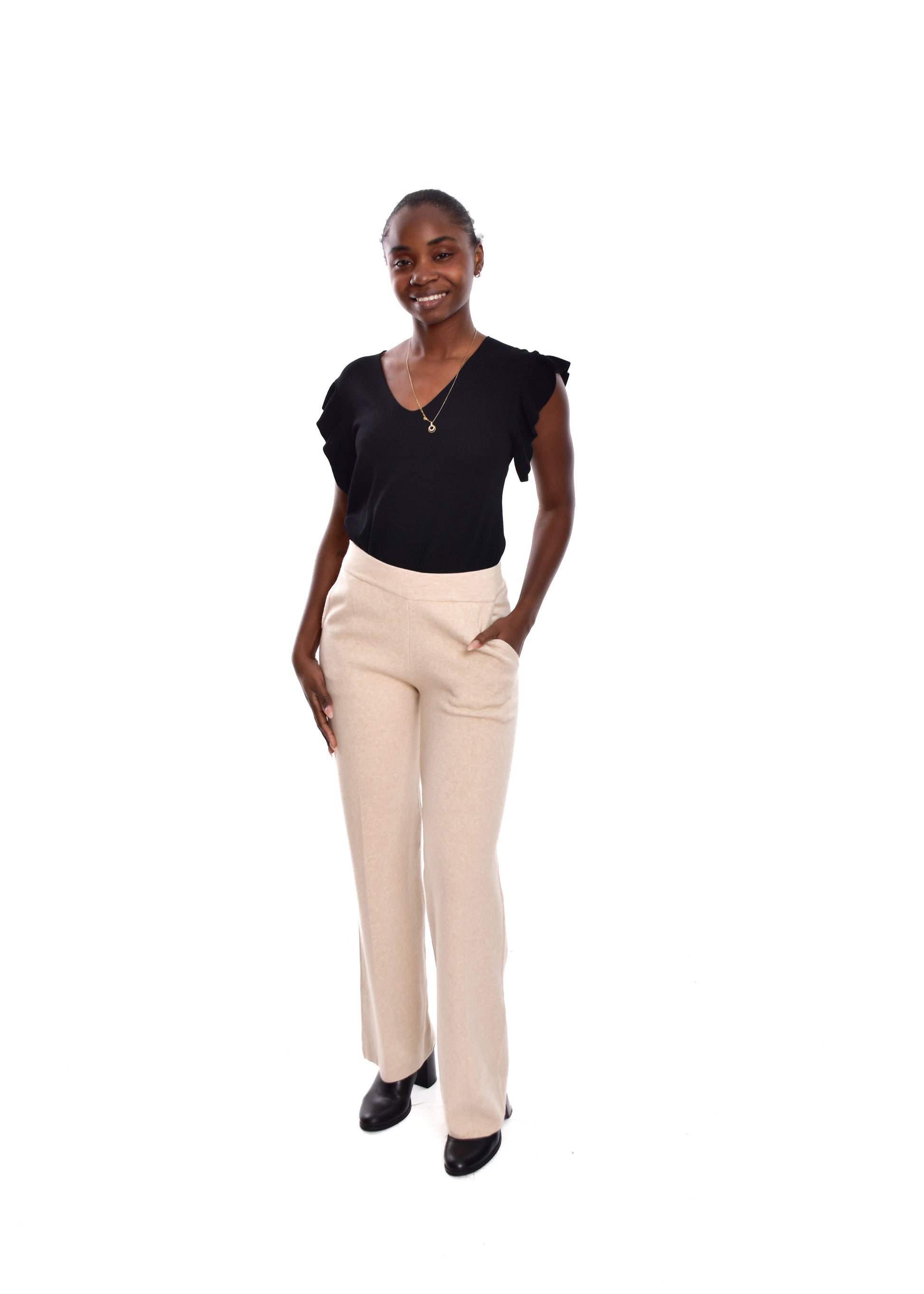 Pantalón grueso en tejido de punto.Lleva goma en la cintura. Este modelo está disponible en doble tallaje, en este caso es apto hasta una talla 42.
