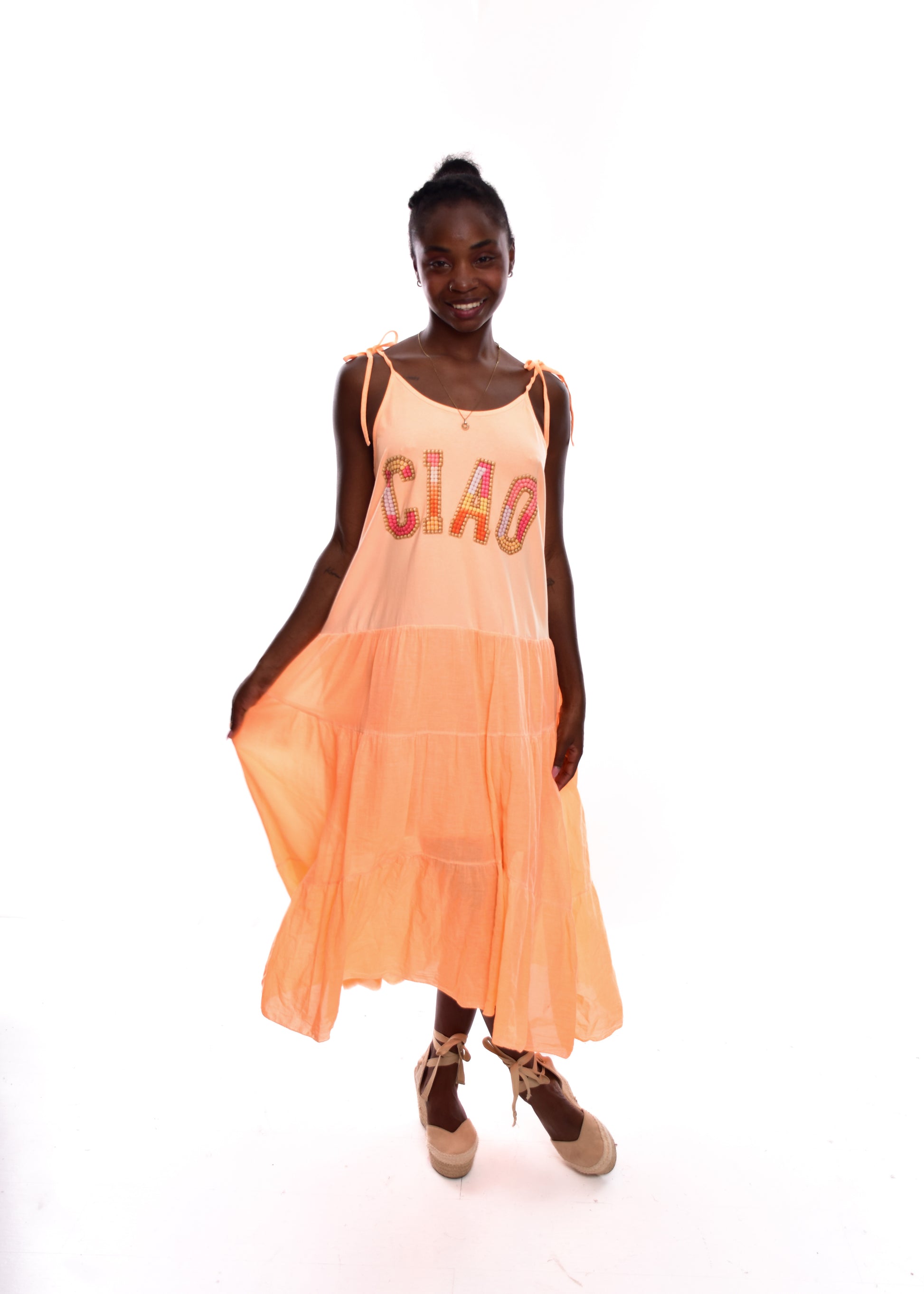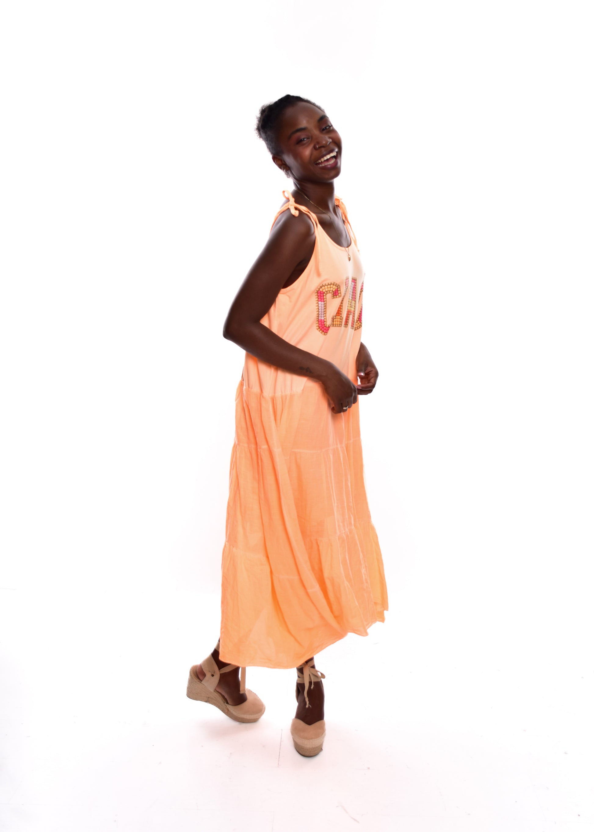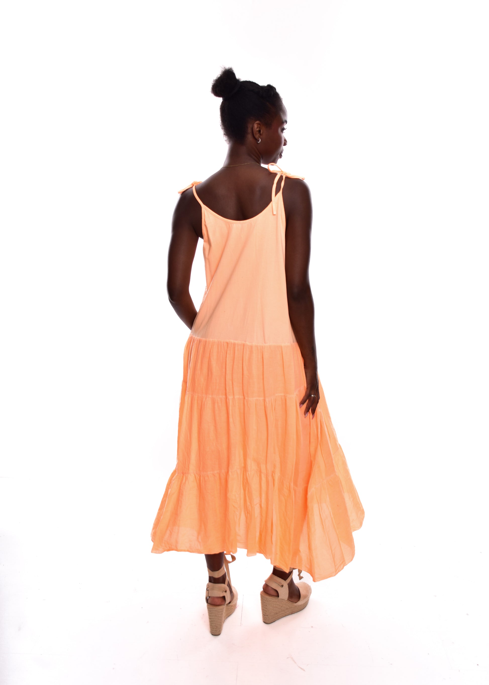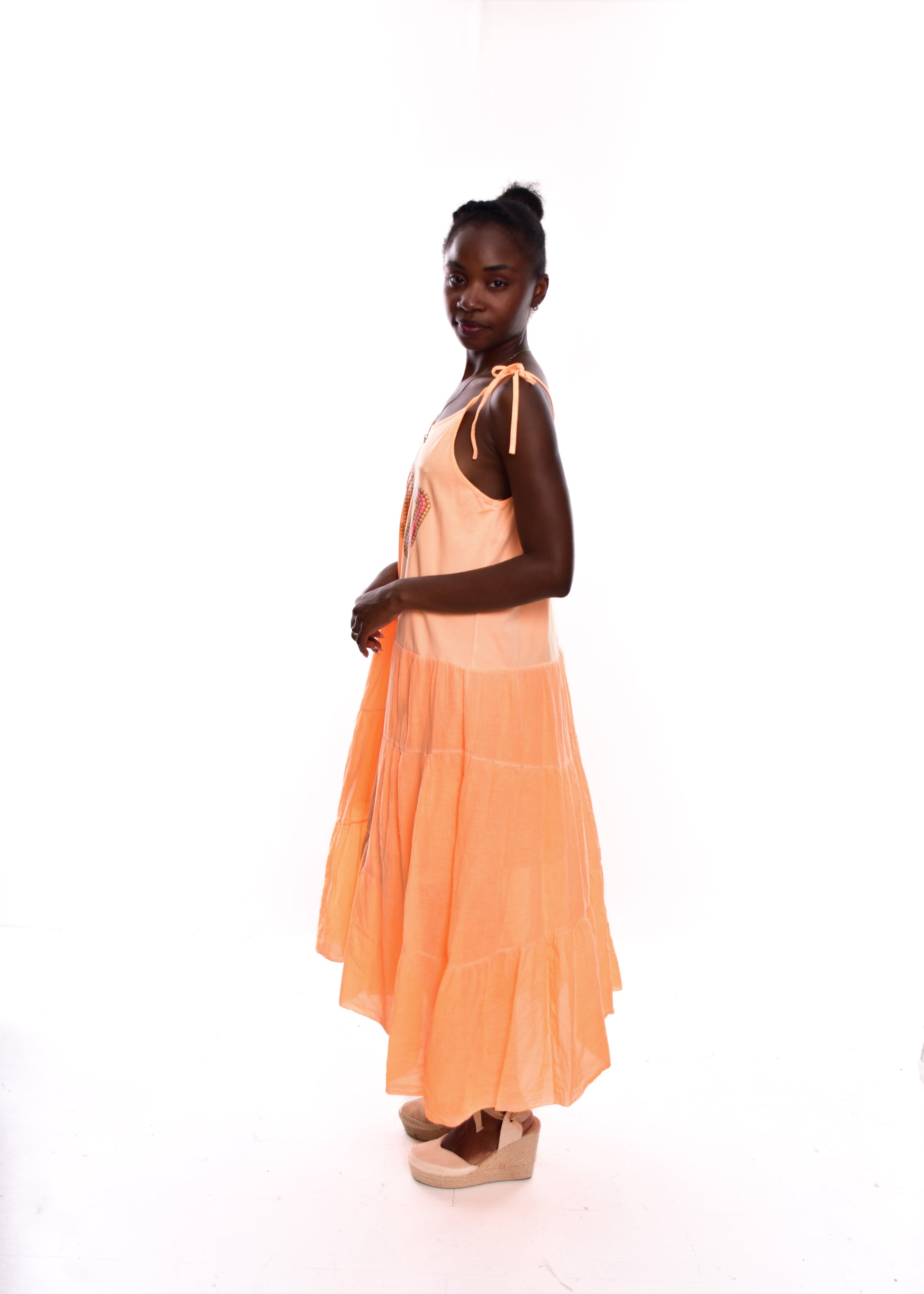 Vestido veraniego. Tejido de algodón. Incorpora forro. Este modelo está disponible en talla única. En este caso es apto de una 38 a una 44.