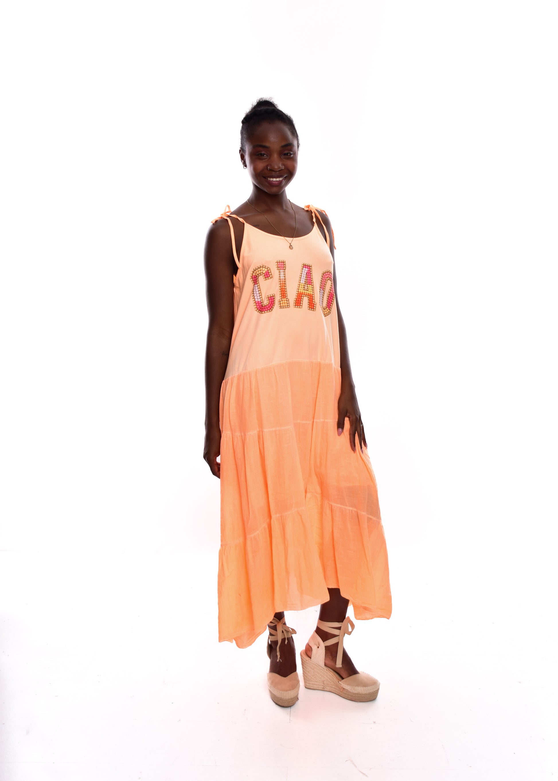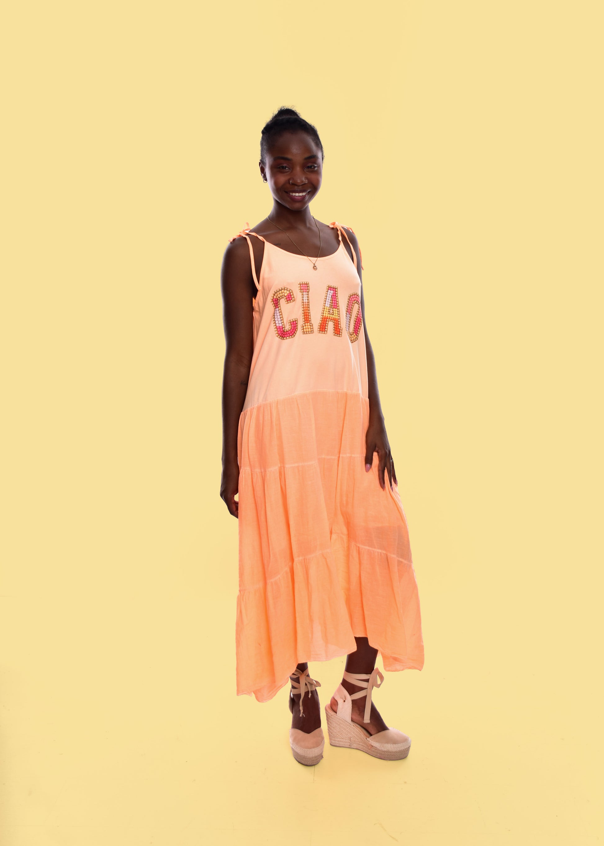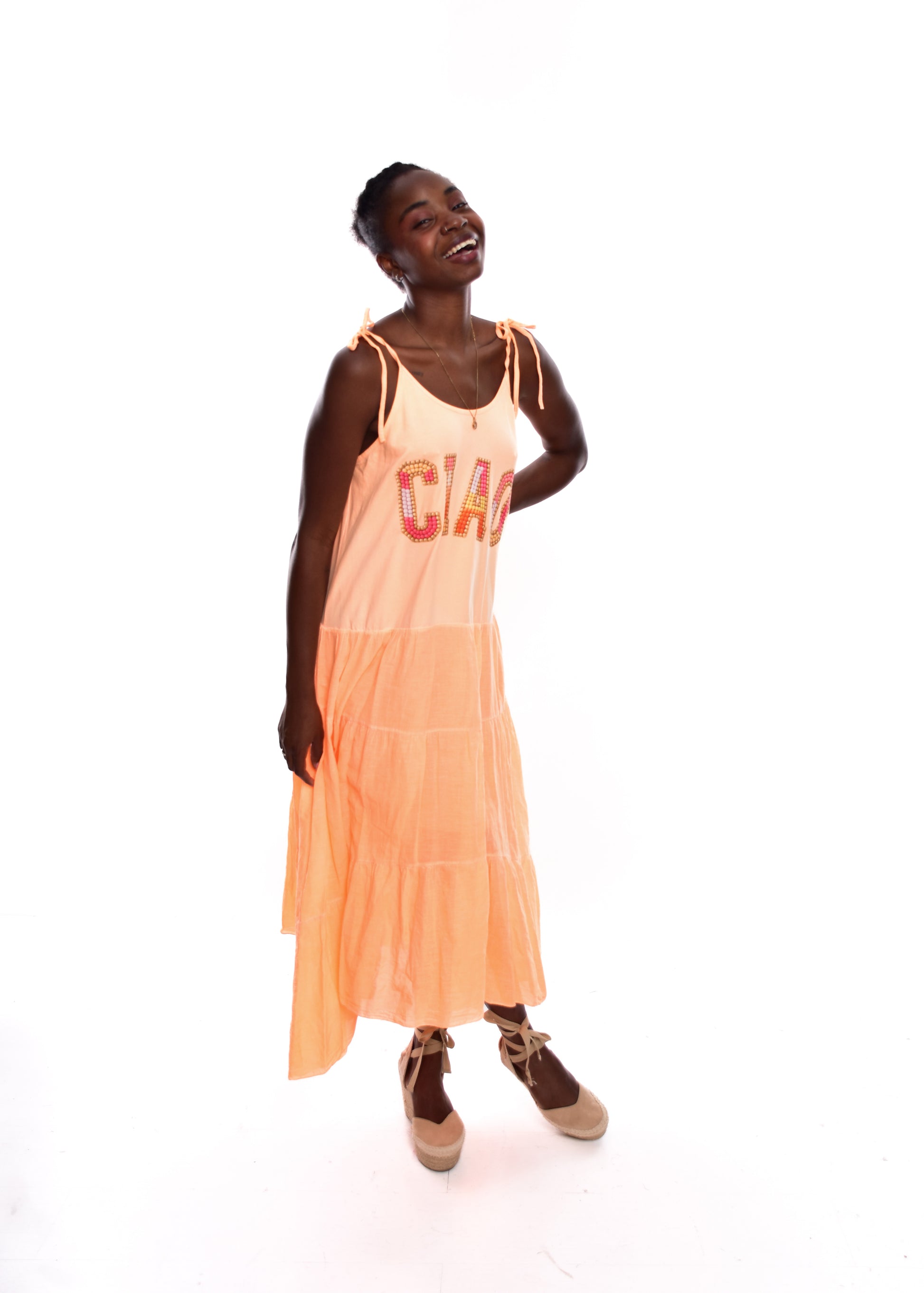Vestido veraniego. Tejido de algodón. Incorpora forro. Este modelo está disponible en talla única. En este caso es apto de una 38 a una 44.