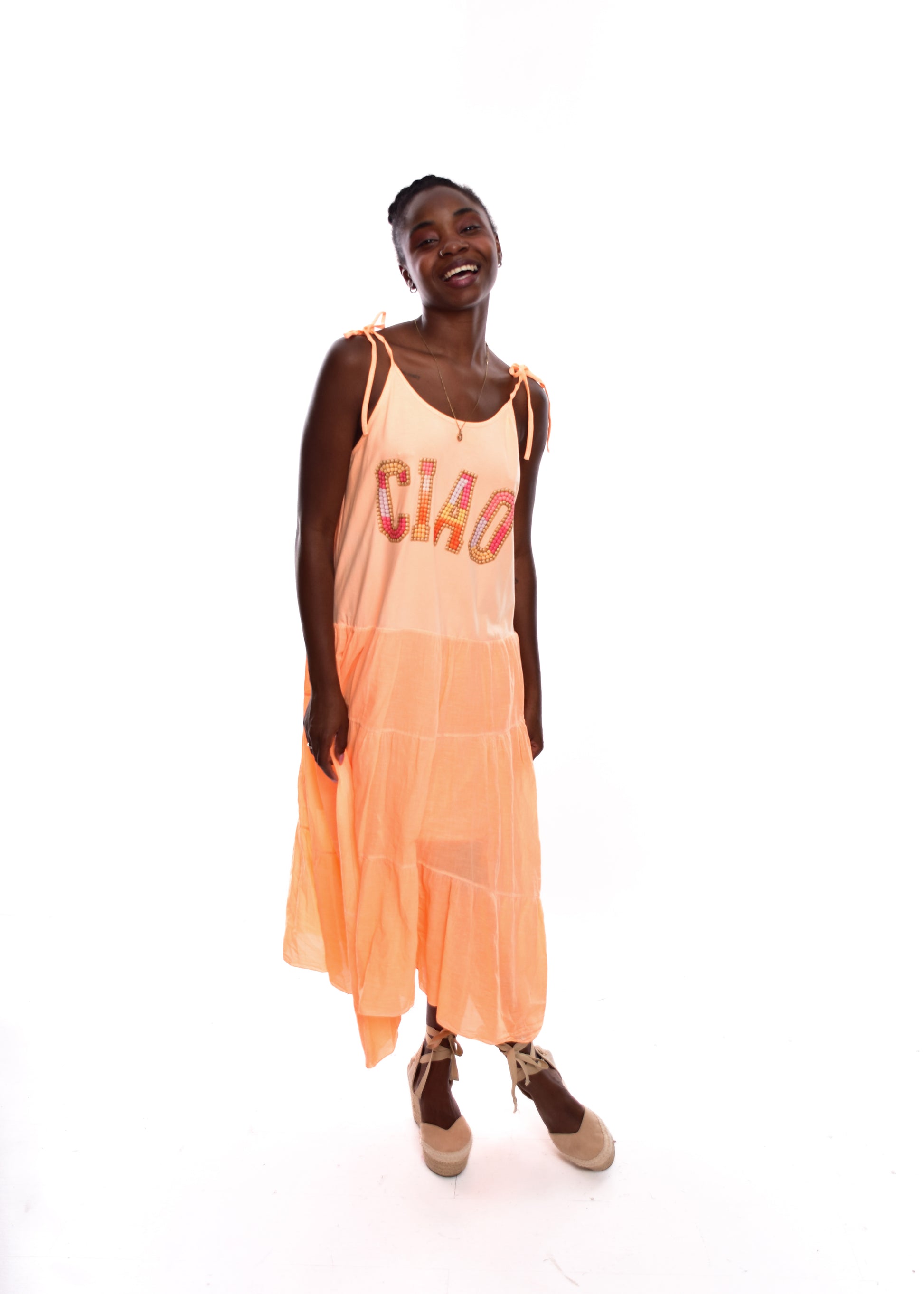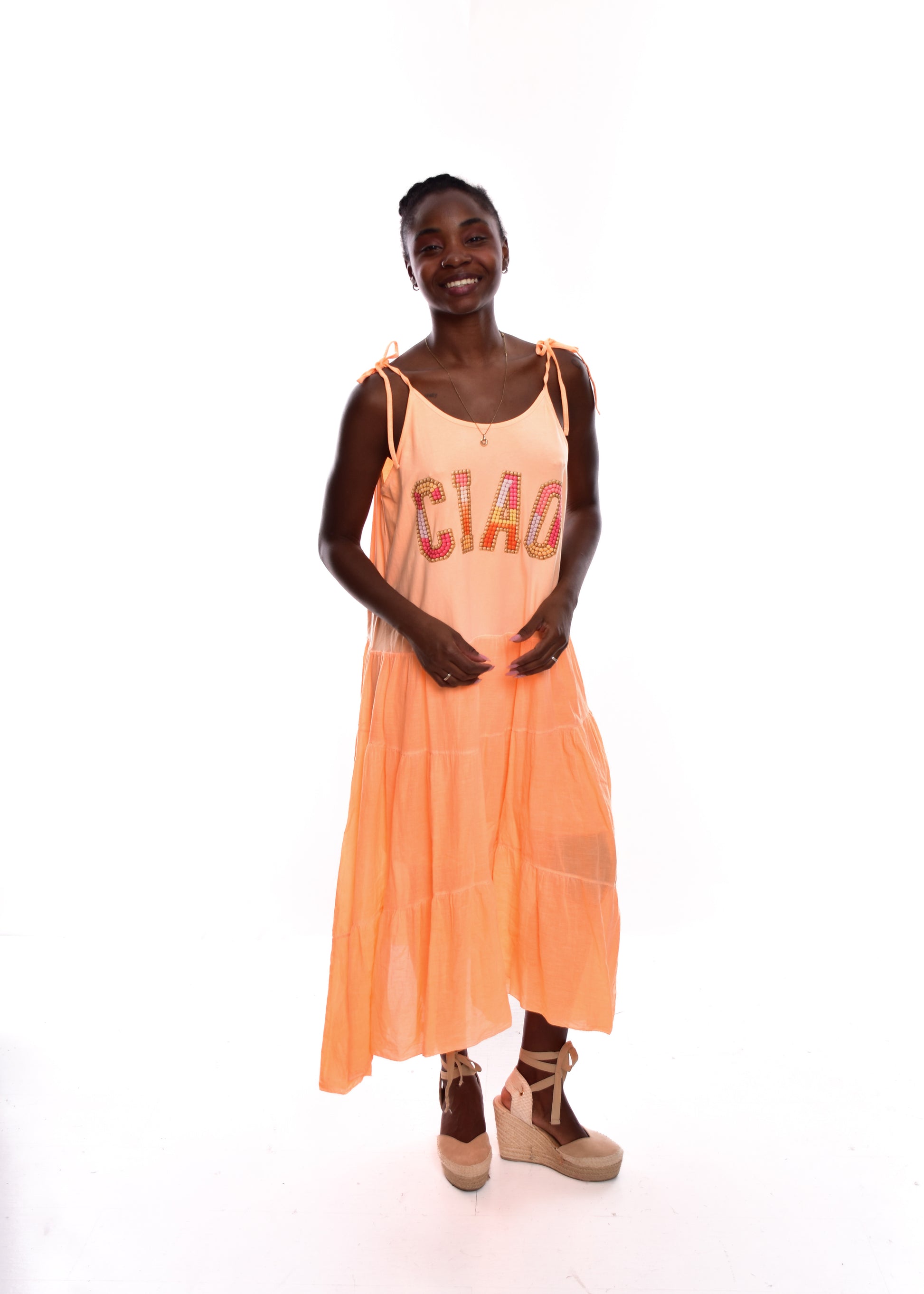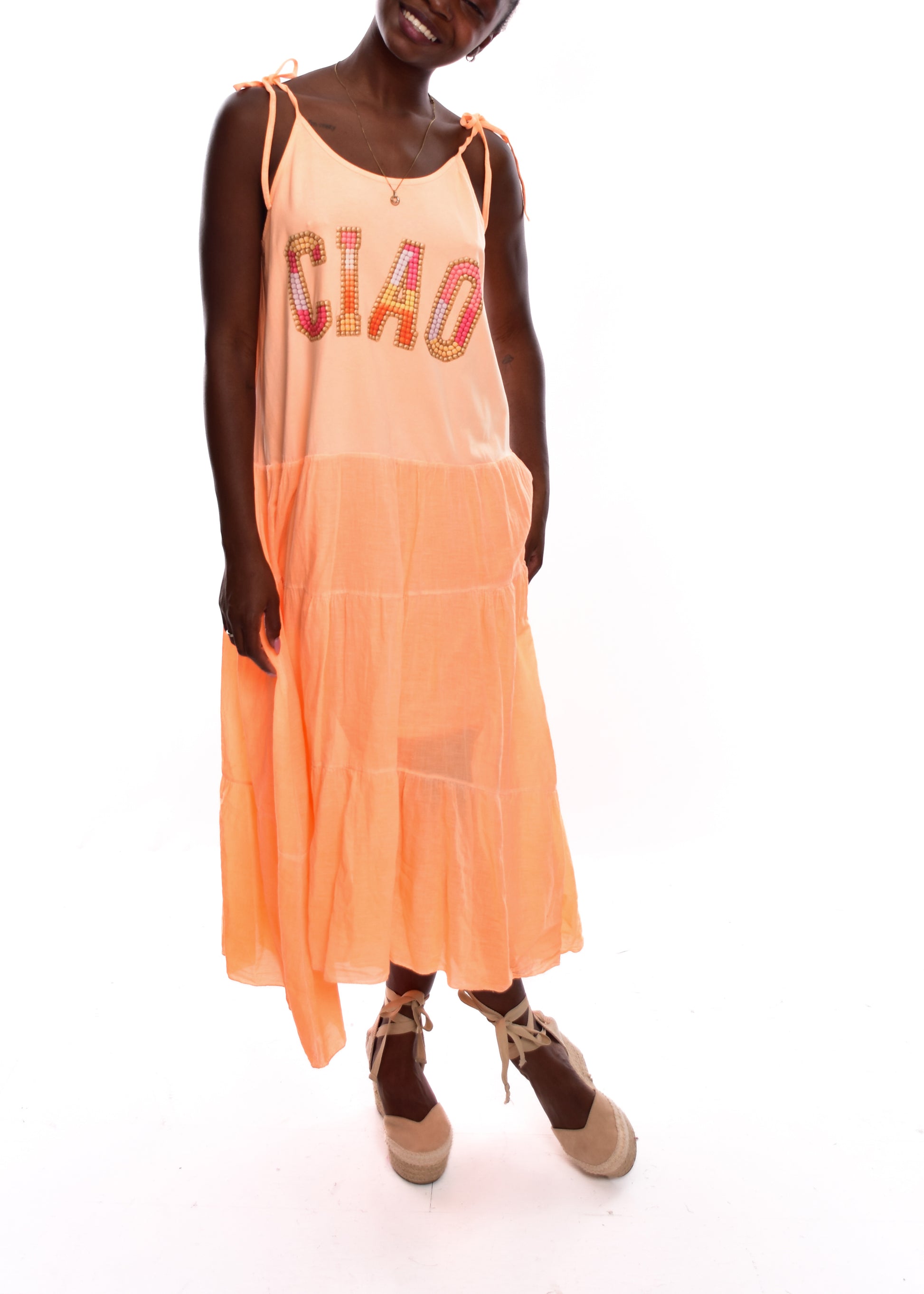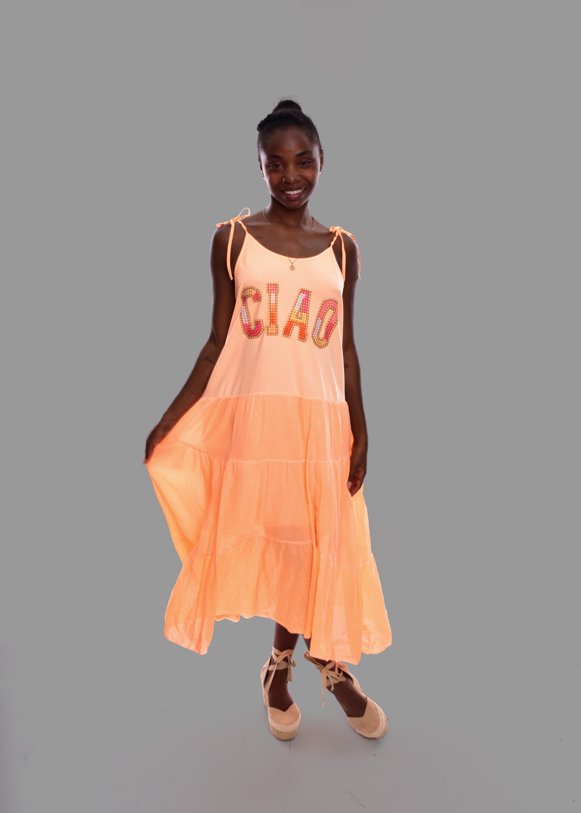 Vestido veraniego. Tejido de algodón. Incorpora forro. Este modelo está disponible en talla única. En este caso es apto de una 38 a una 44.