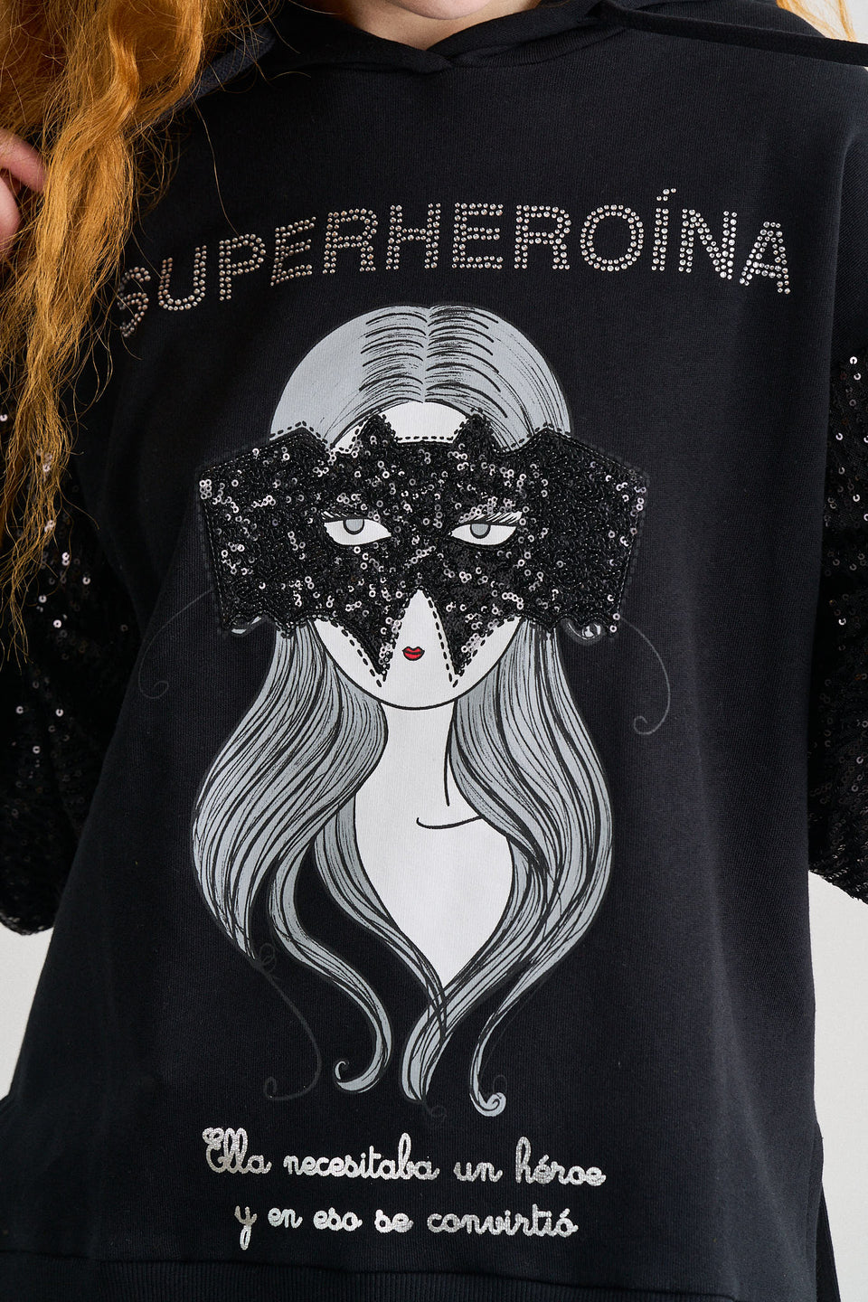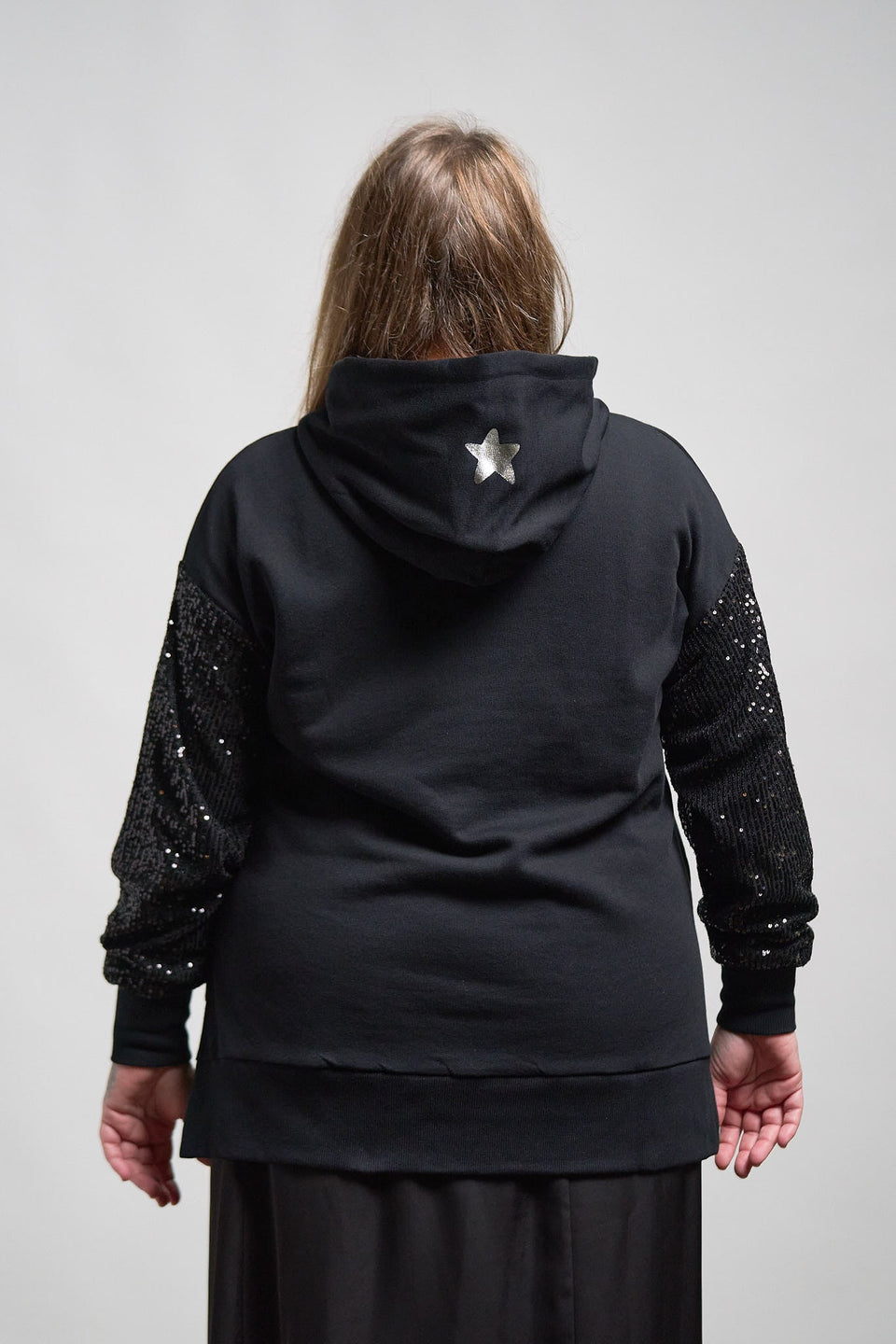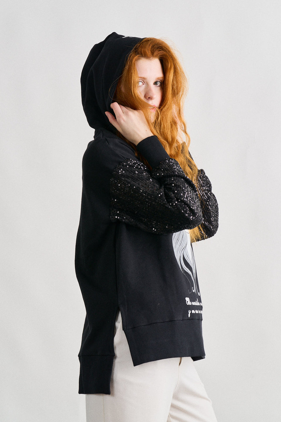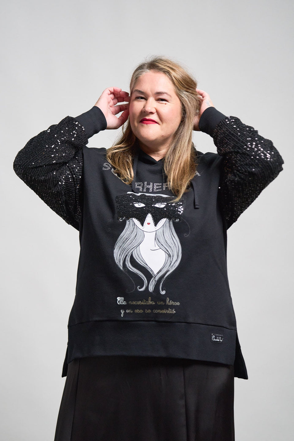 -Sudadera felpada, con aberturas laterales y largos desiguales.