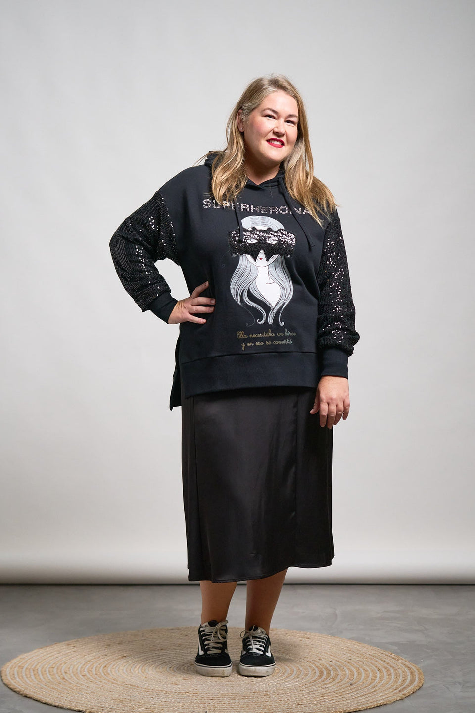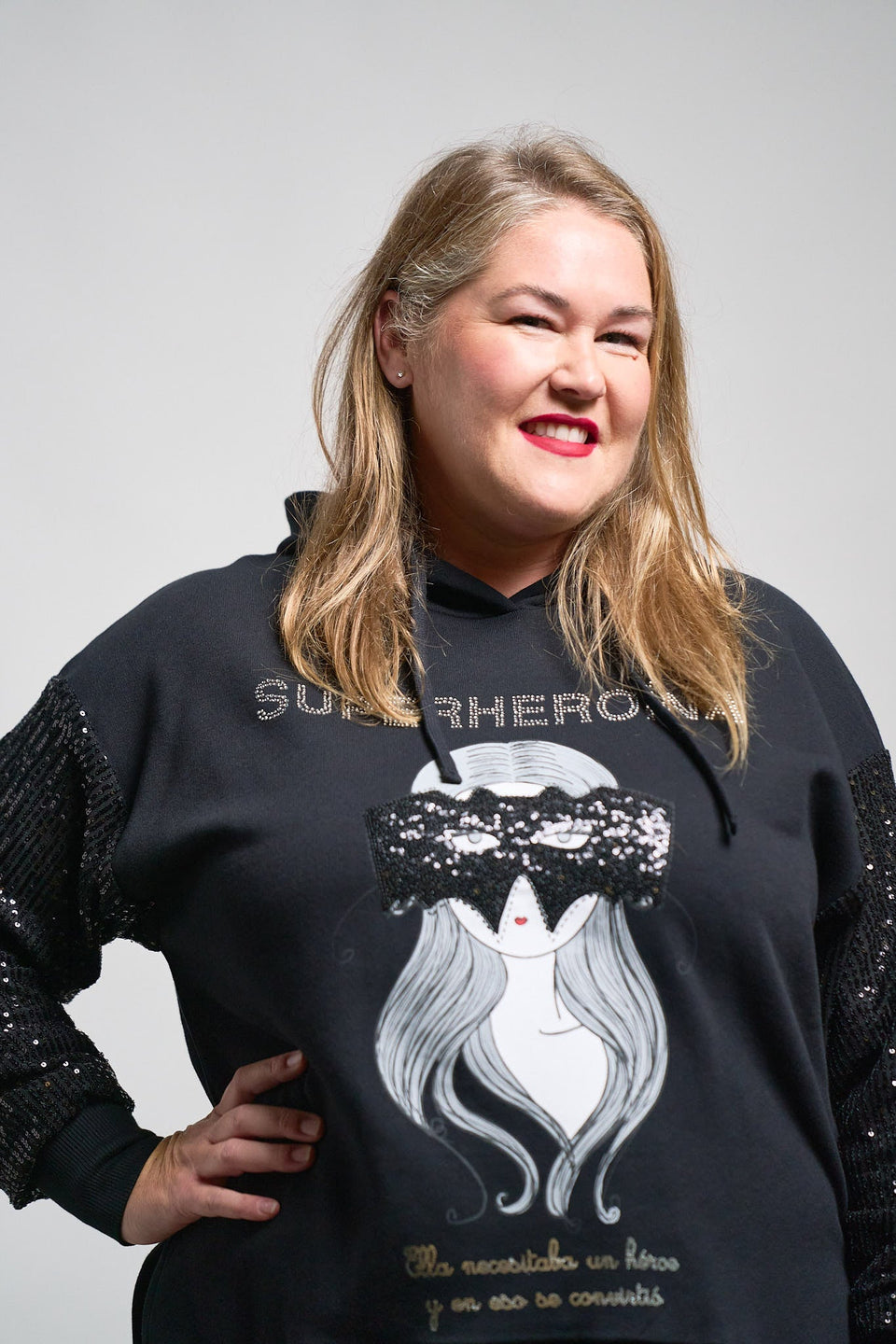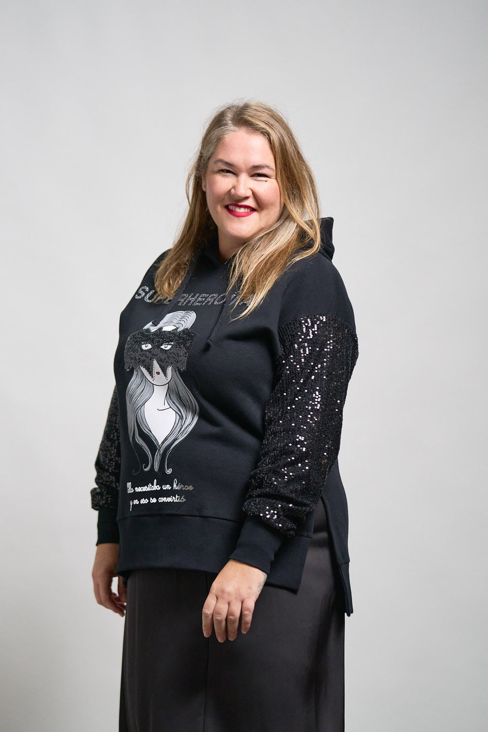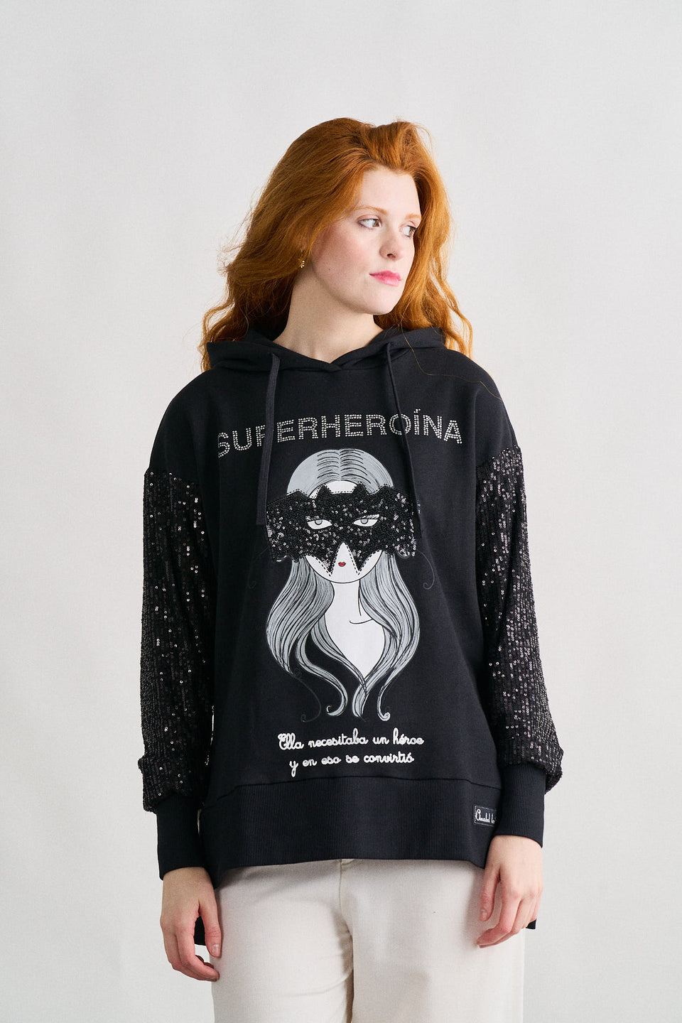 -Sudadera felpada, con aberturas laterales y largos desiguales.