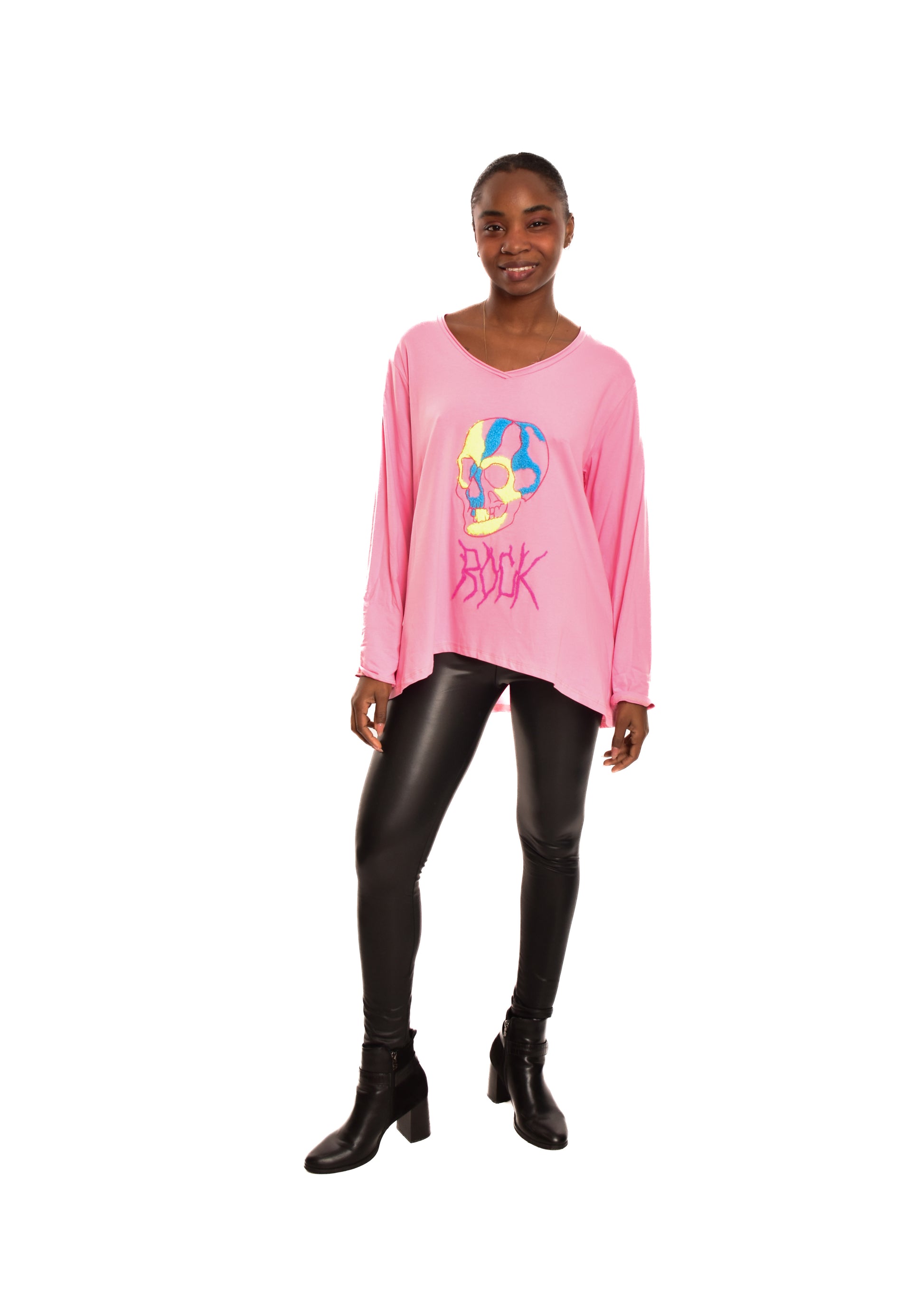 Camiseta de algodón con corte oversize. Escote en pico. Estampado delantero.Esta prenda está disponible en talla única, en este caso es apto hasta una talla 44.