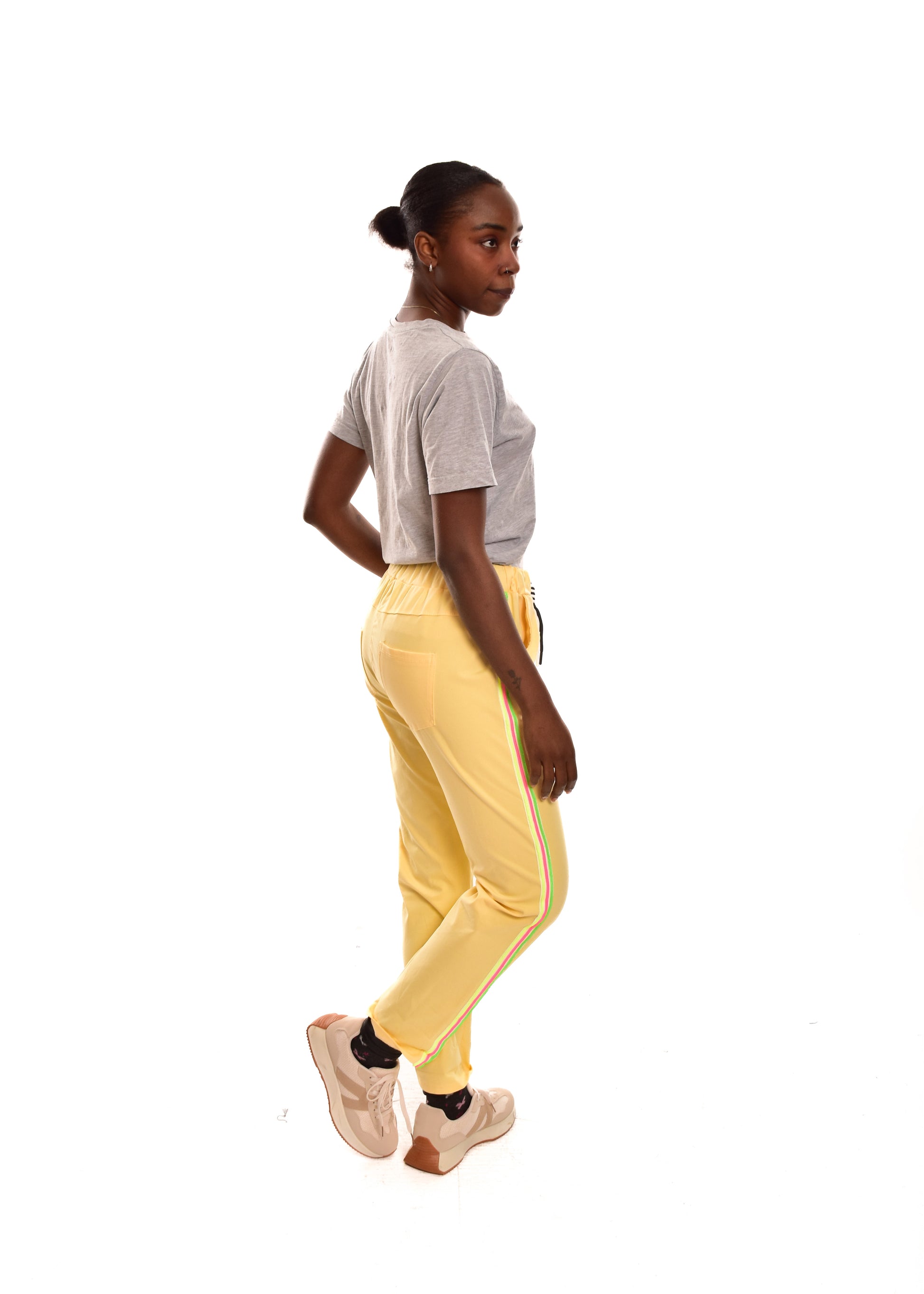 Pantalón de algodón con corte oversize. No lleva felpa interior. Bandas laterales multicolor.Esta prenda está disponible en talla única, en este caso es apto hasta una talla 44.