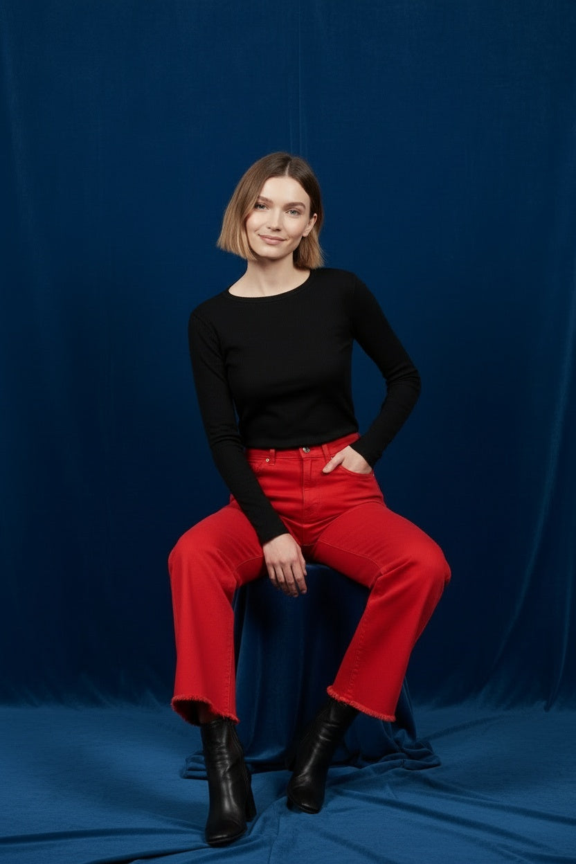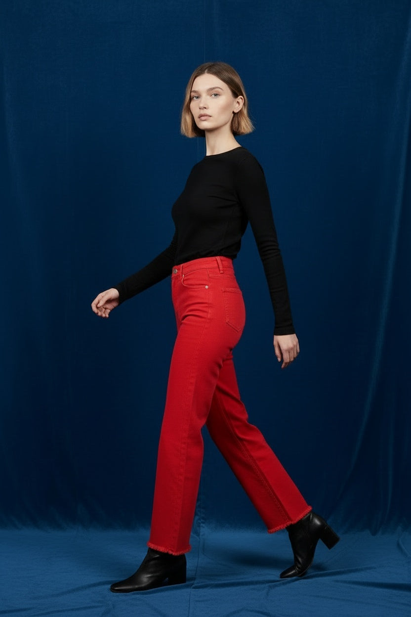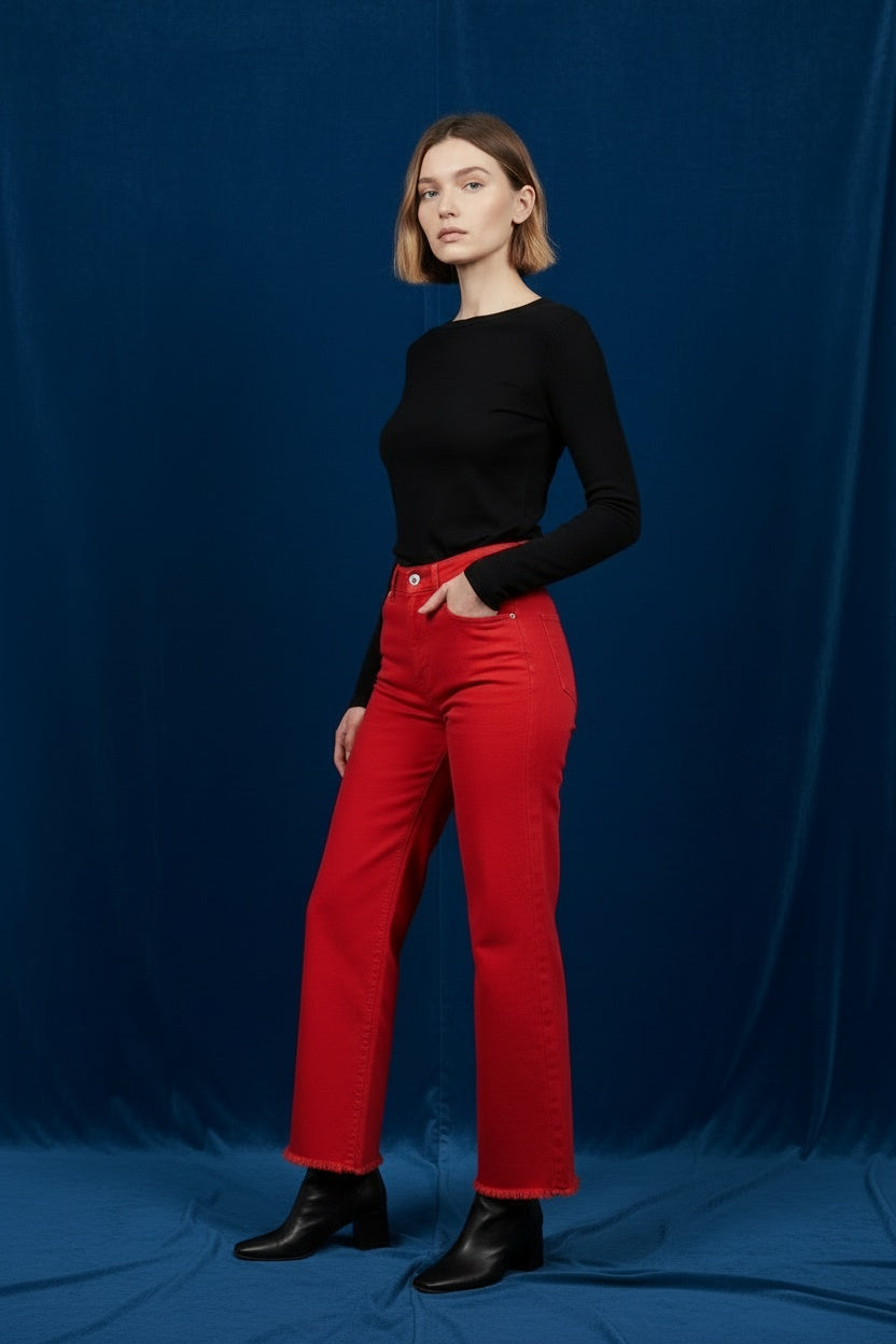 PANTALÓN VIVID DESFLECADO-ROJO