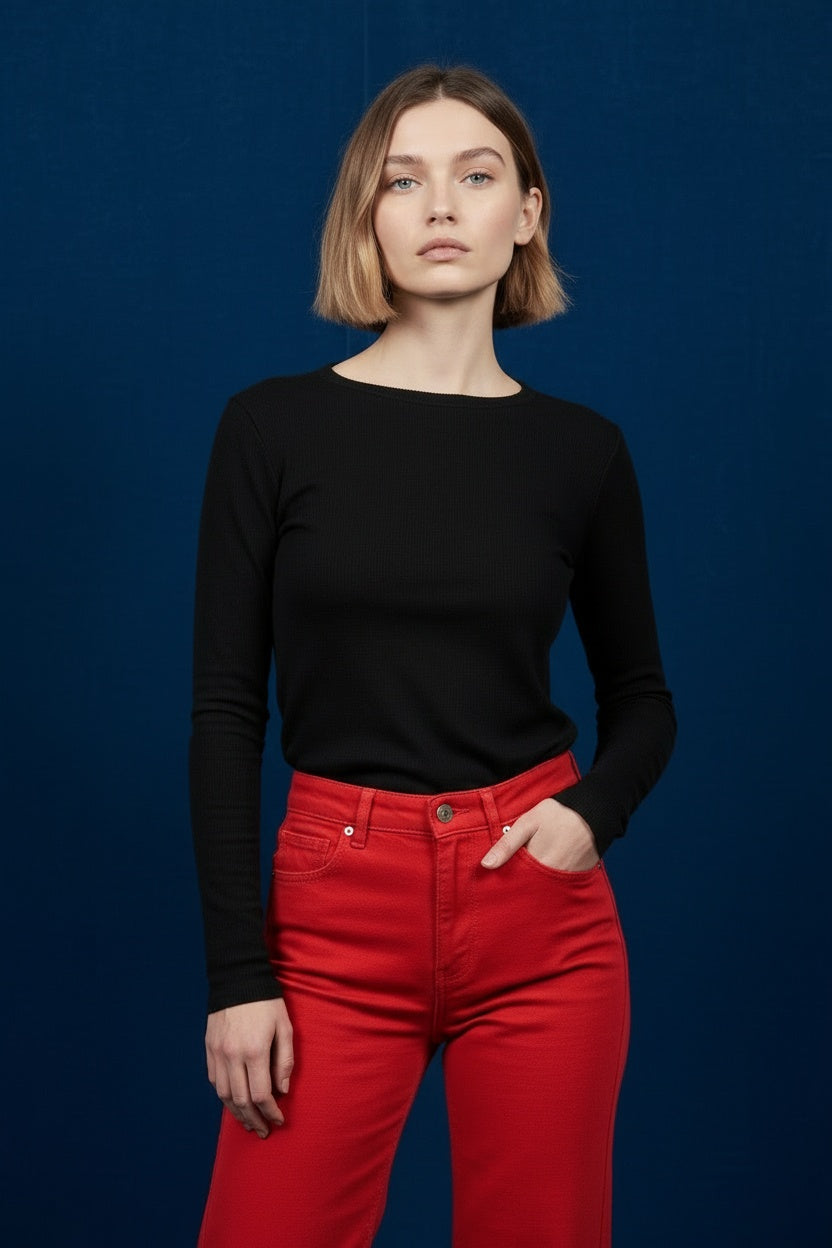 Pantalón push up con corte recto y desflecado. Esta prenda está disponible de la talla XS a la XXL , en este caso es apta hasta una talla 44. Si lo deseas puedes comprobar las medidas exactas de la prenda en el apartado " Talla y Medidas"
