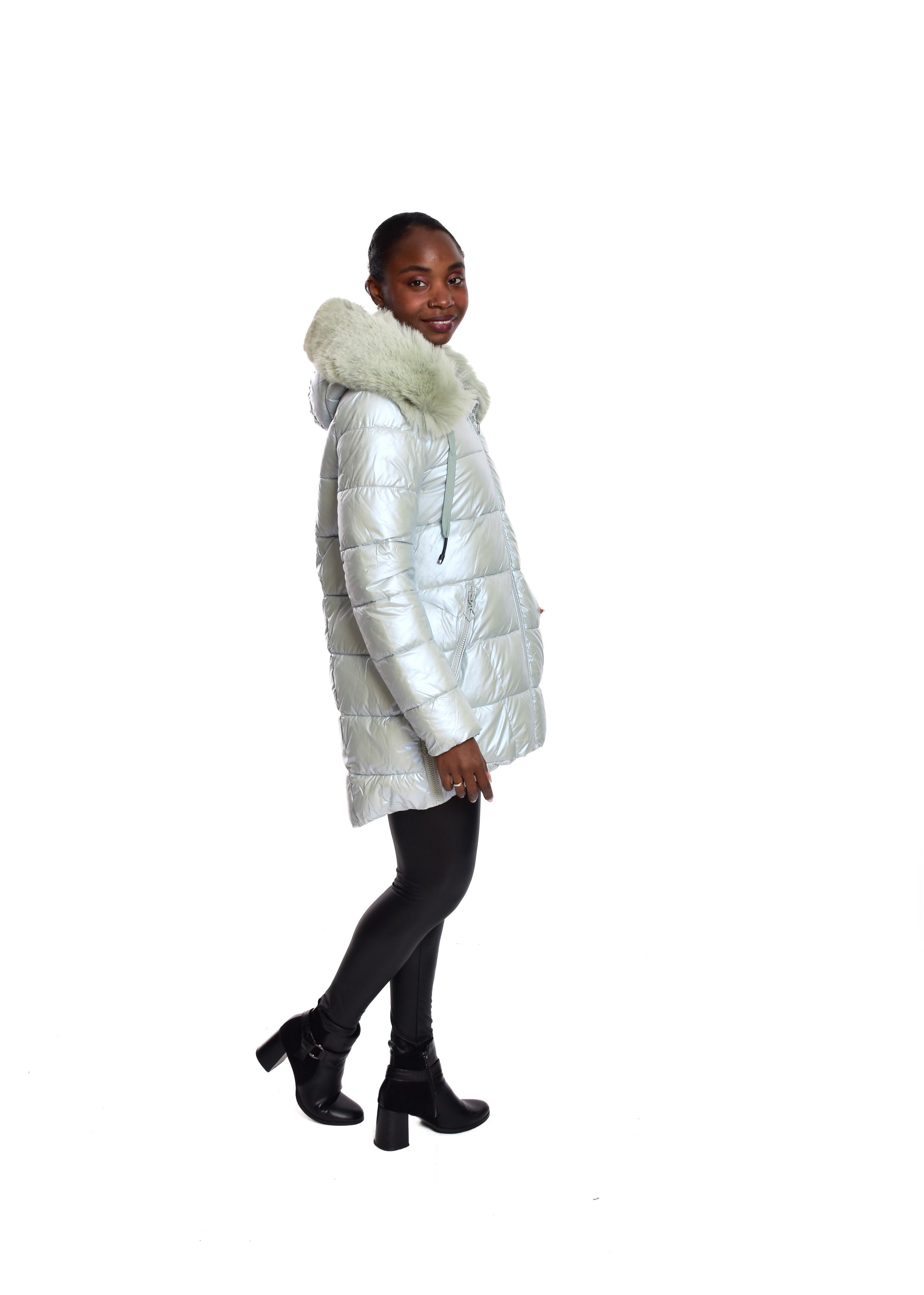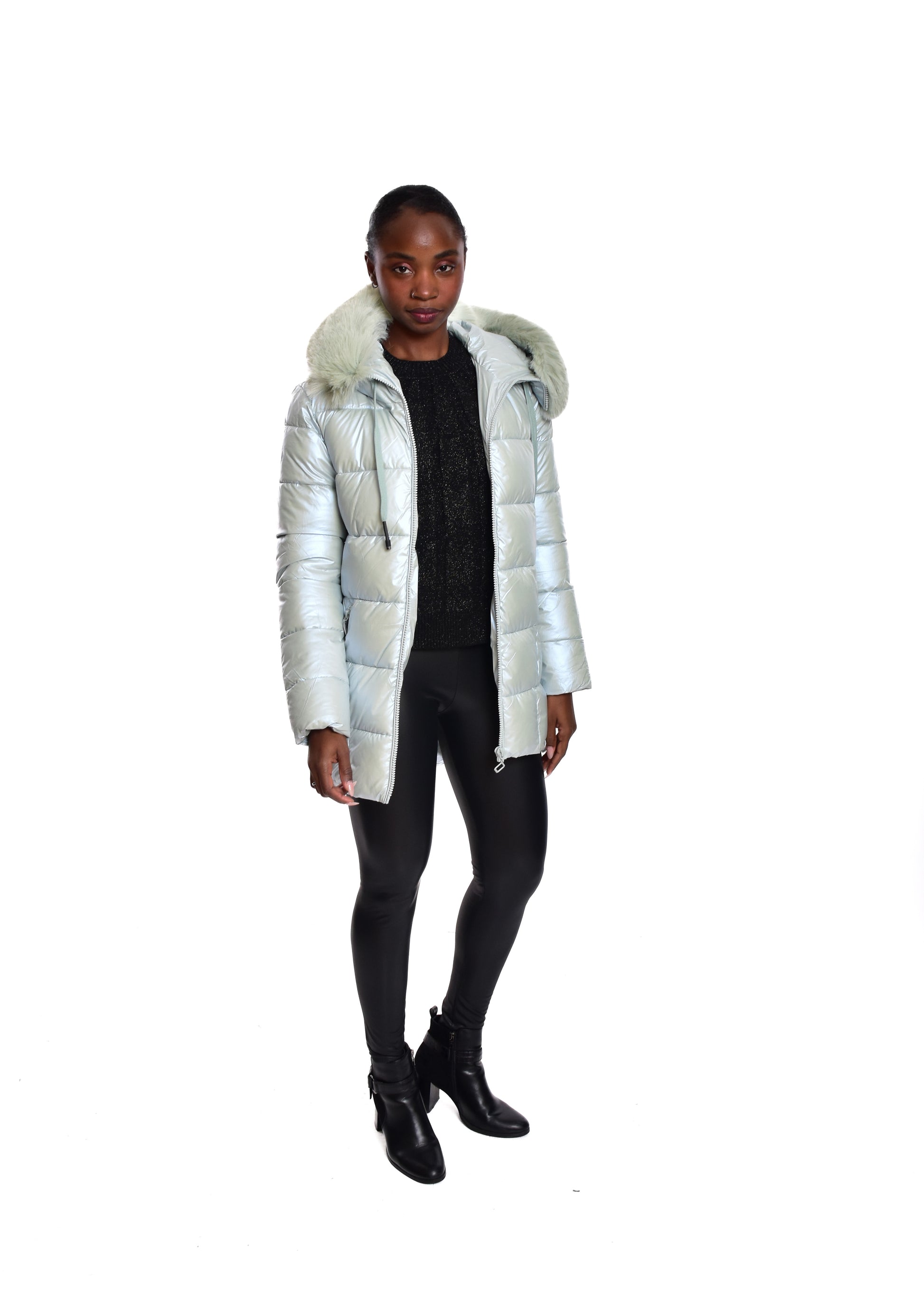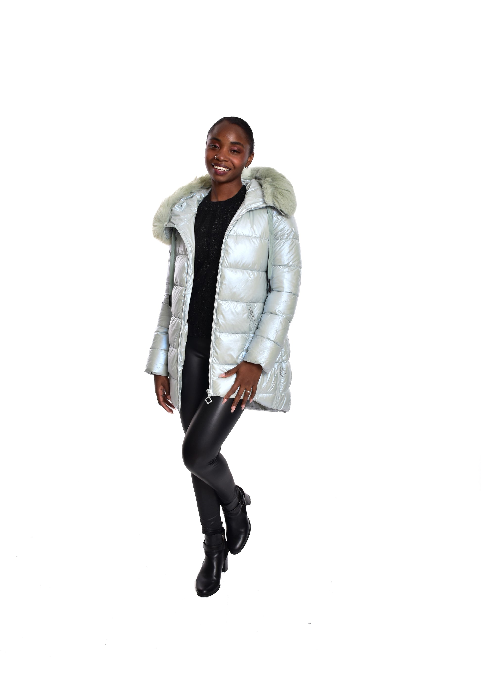 Cazadora Acolchada con efecto brillante. Cuenta con múltiples bolsillos. El pelo de la capucha se puede retirar.Este modelo está disponible de la talla S a la XXL, en este caso es apta hasta una talla 42.