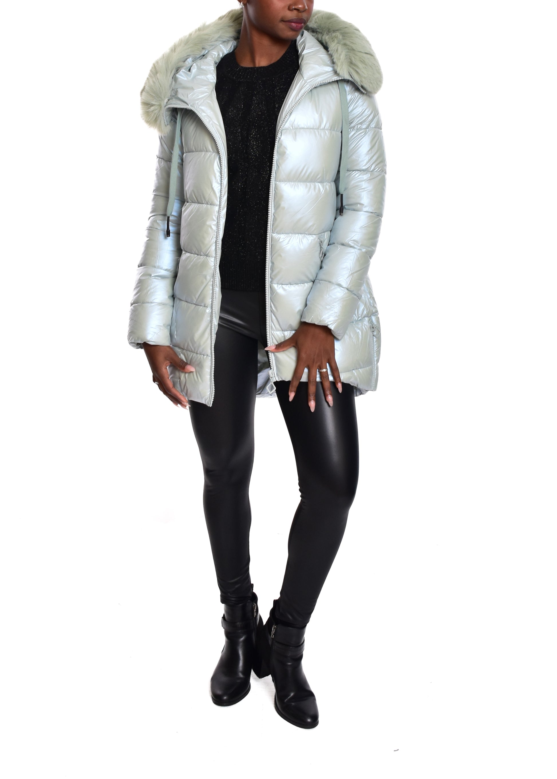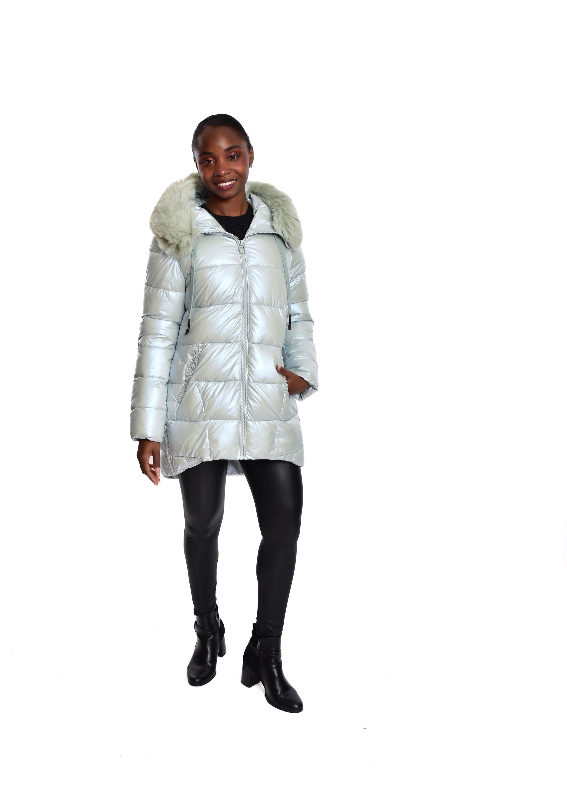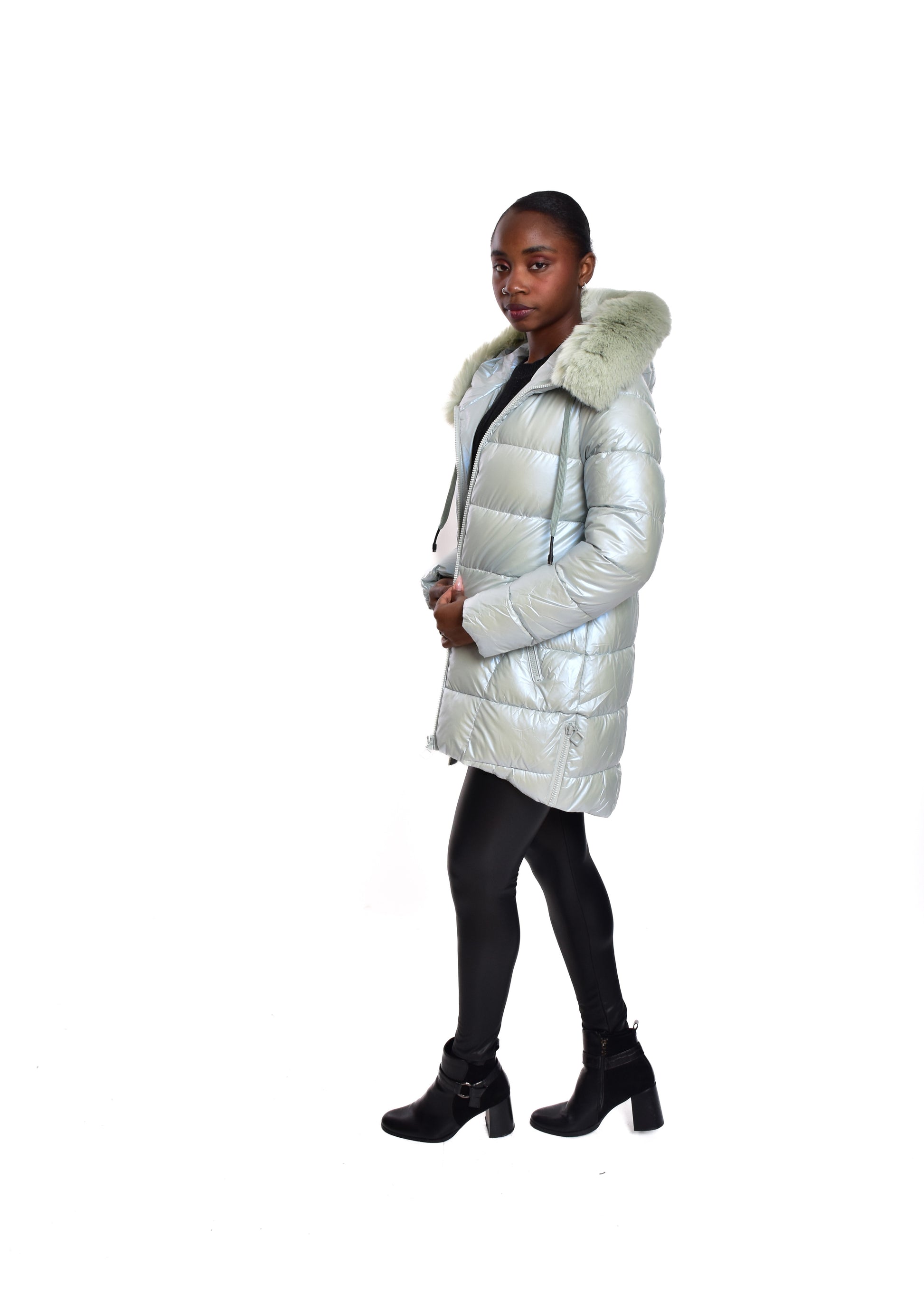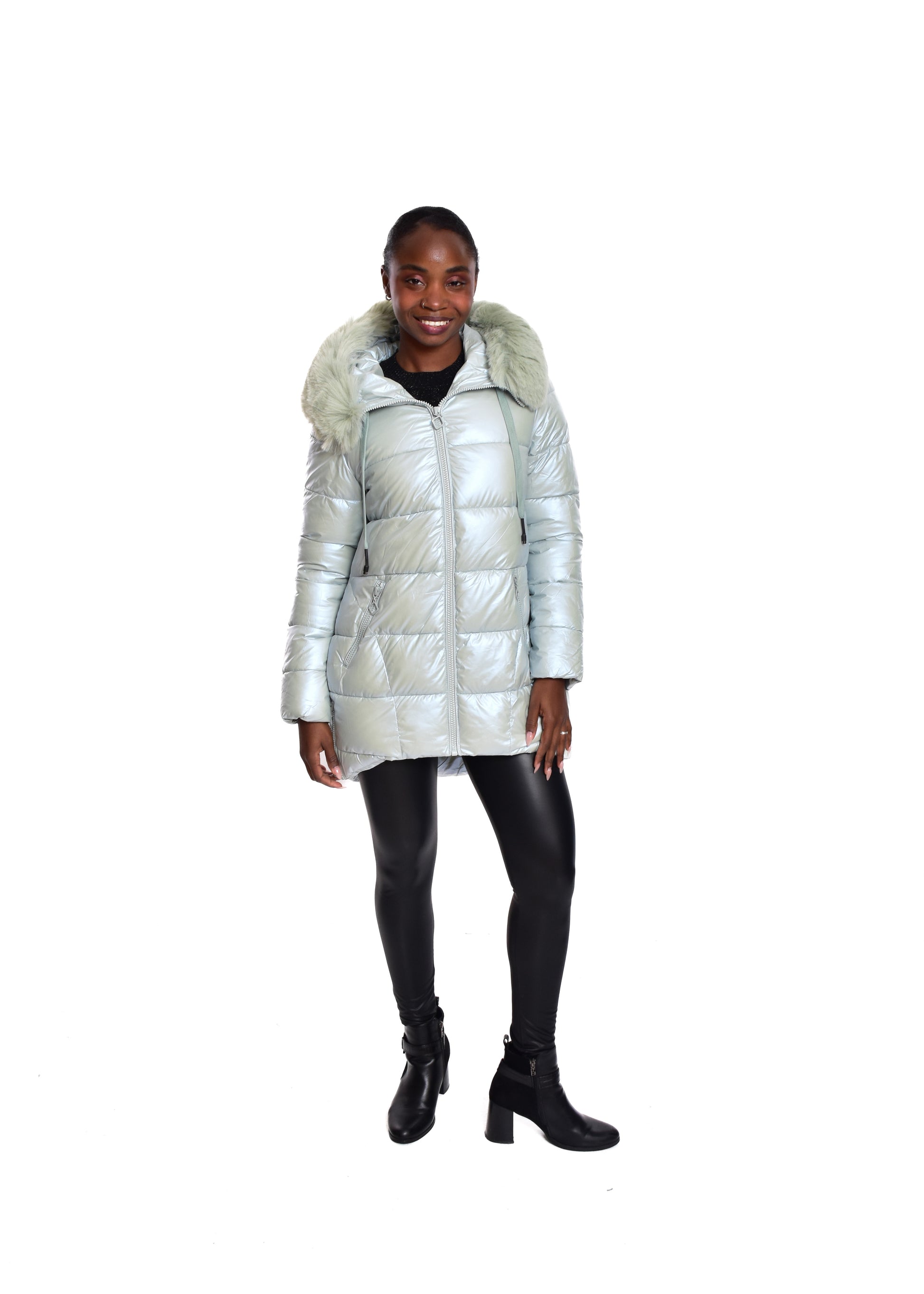 Cazadora Acolchada con efecto brillante. Cuenta con múltiples bolsillos. El pelo de la capucha se puede retirar.Este modelo está disponible de la talla S a la XXL, en este caso es apta hasta una talla 42.