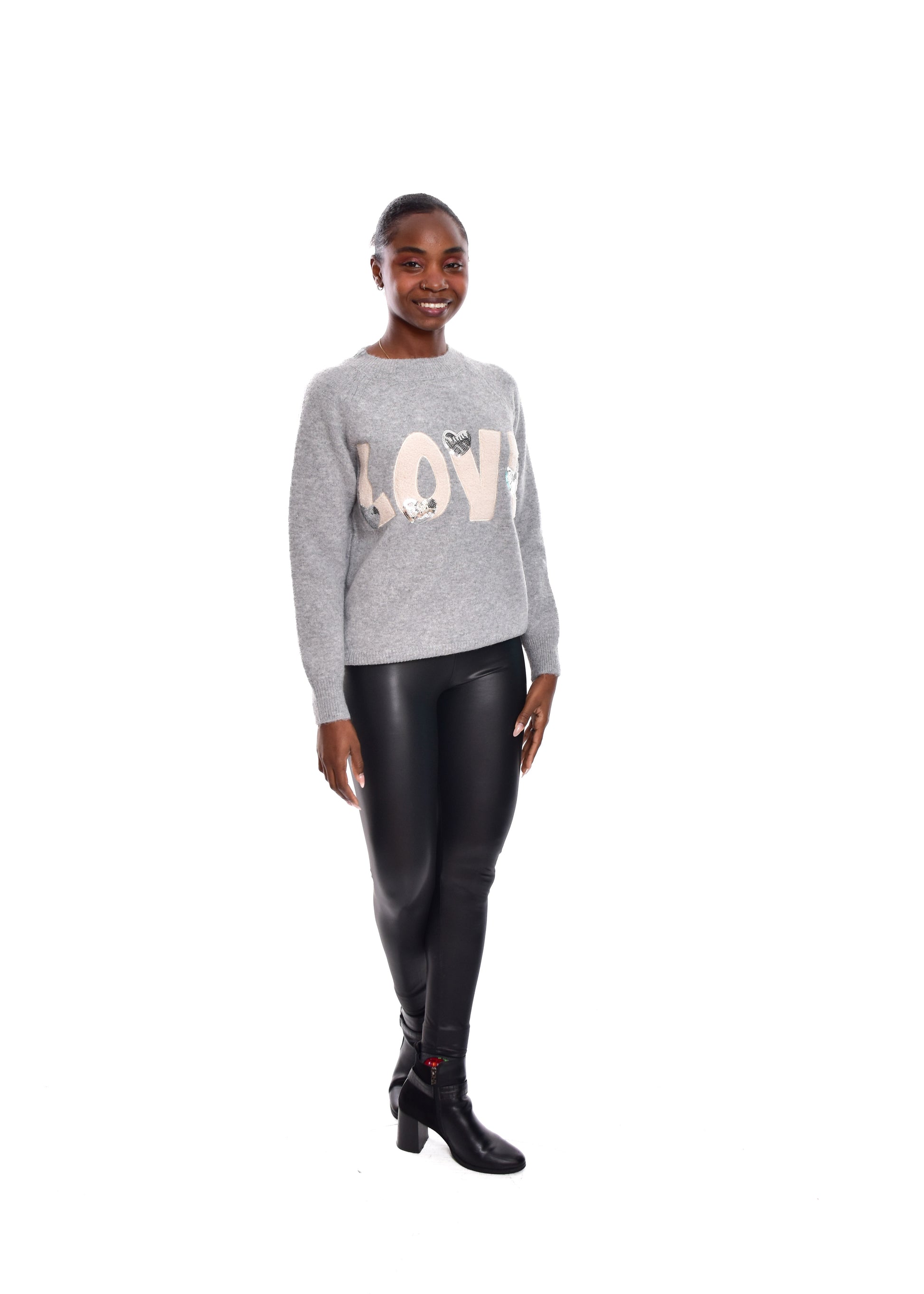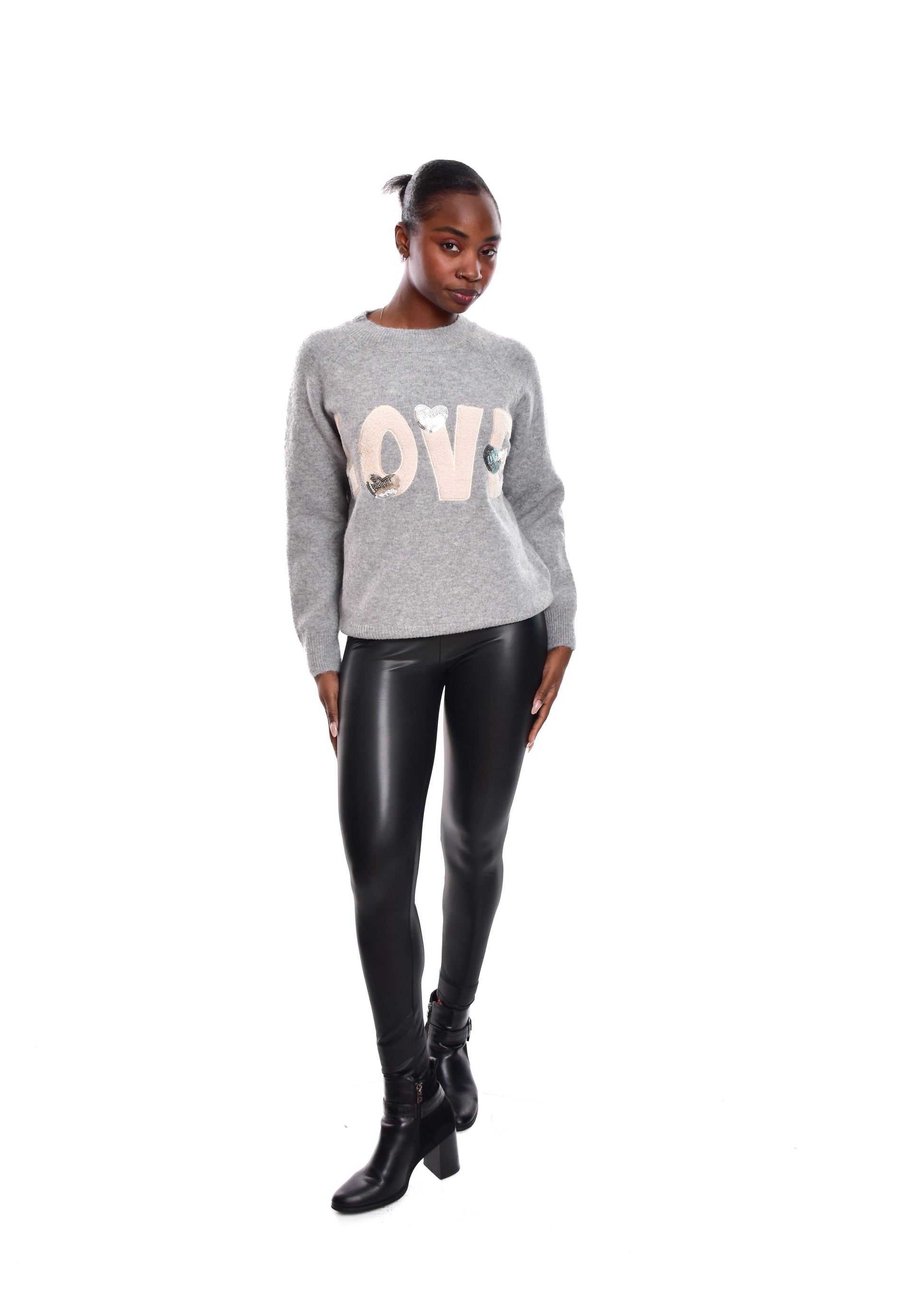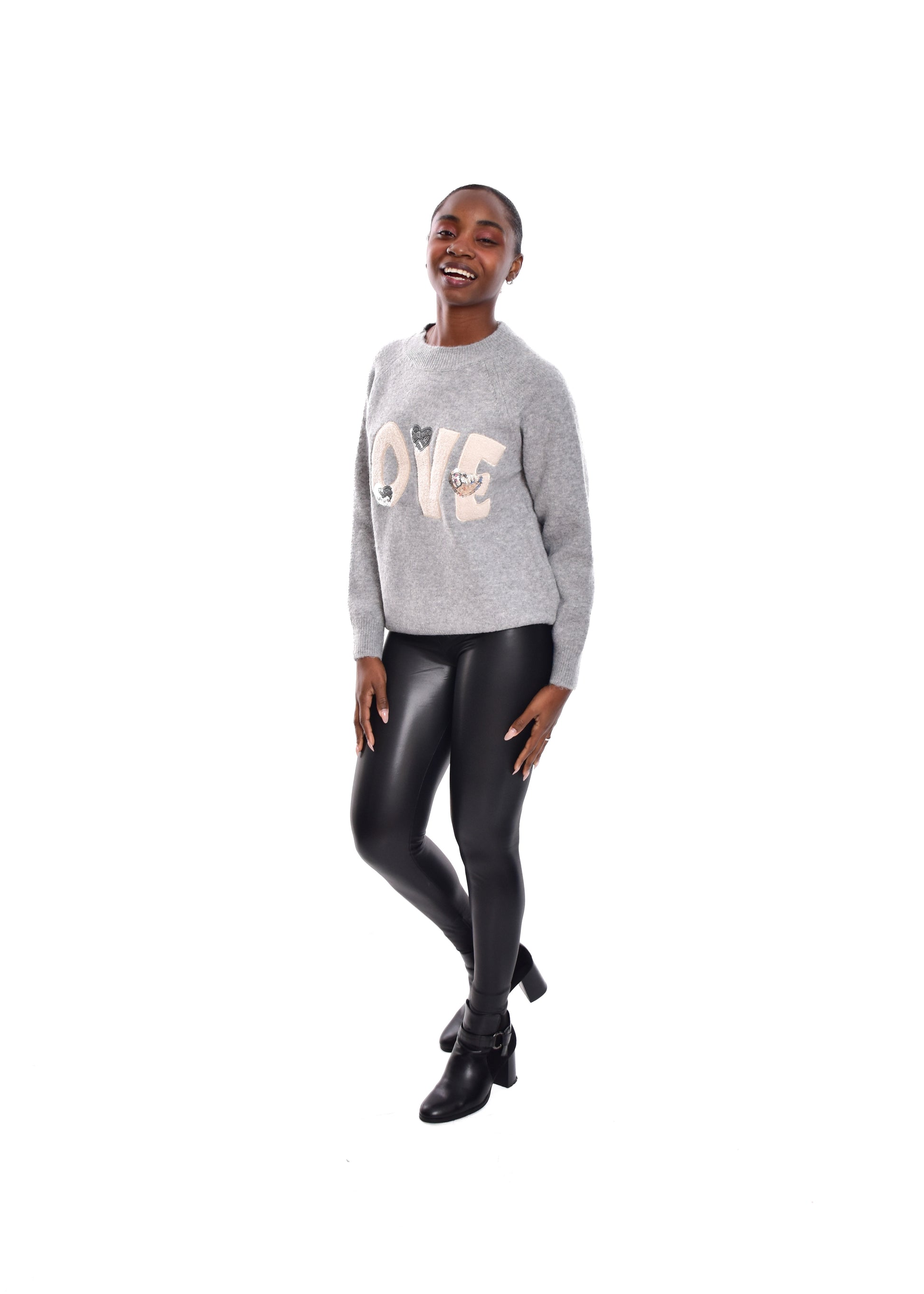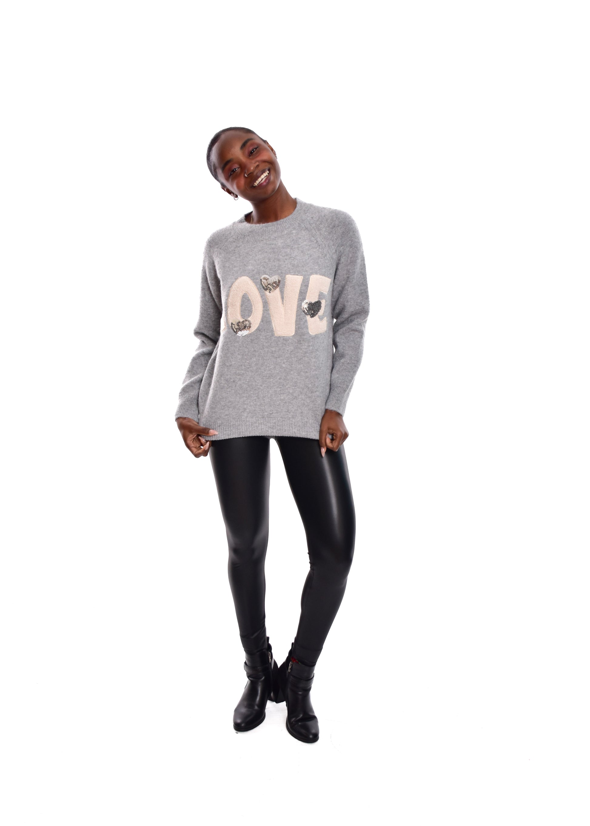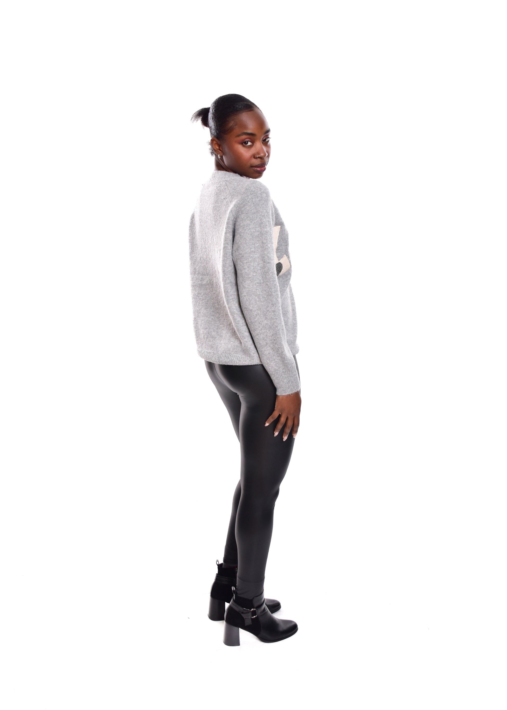 Jersey de punto grueso. Combinado con parche frontal. Esta prenda está disponible en talla única, en este caso es apto hasta una talla 42.