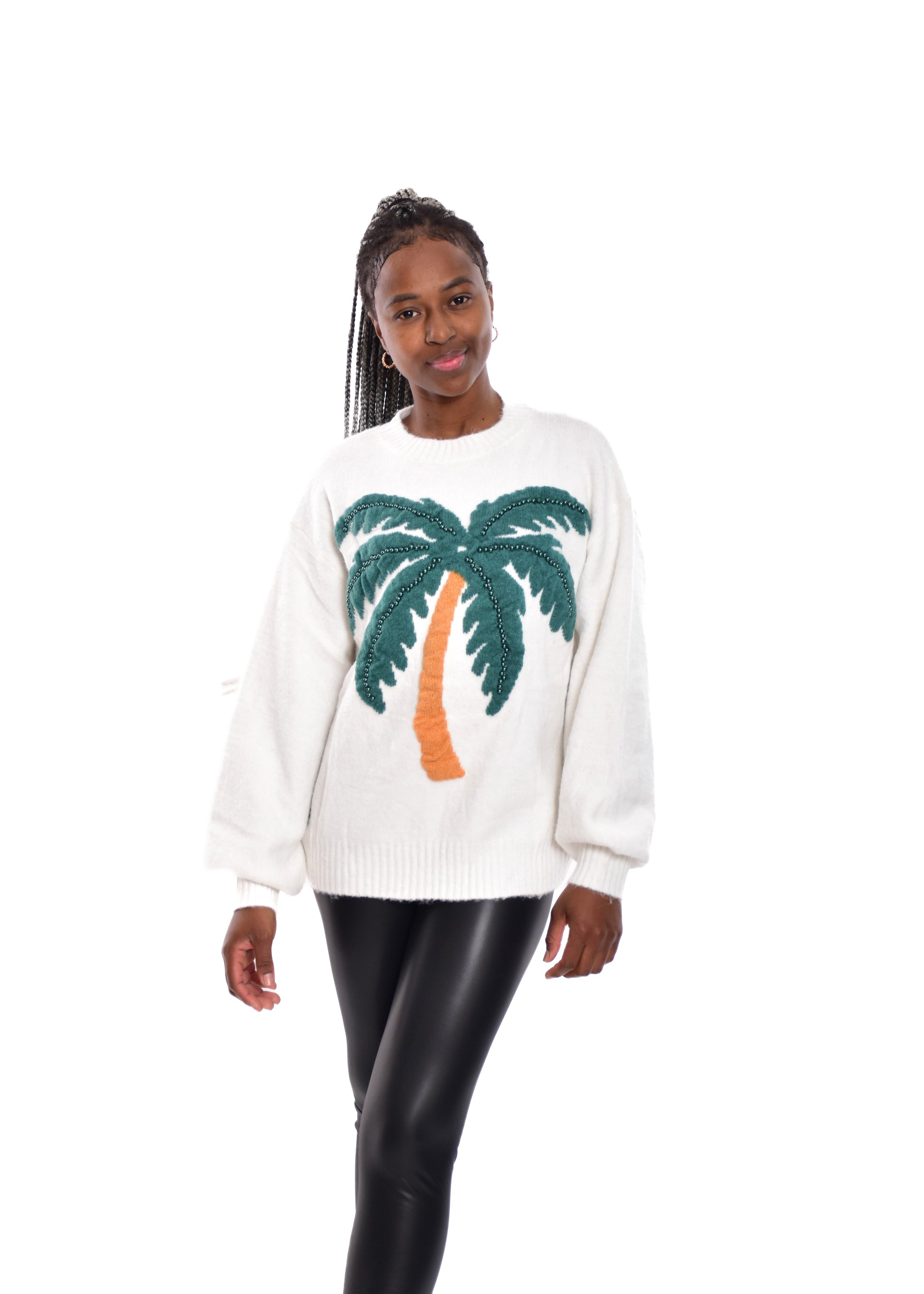 Jersey grueso con detalles en pedrería.Esta prenda está disponible en doble talla S/M y L/XL, en este caso es apto hasta una talla 44.