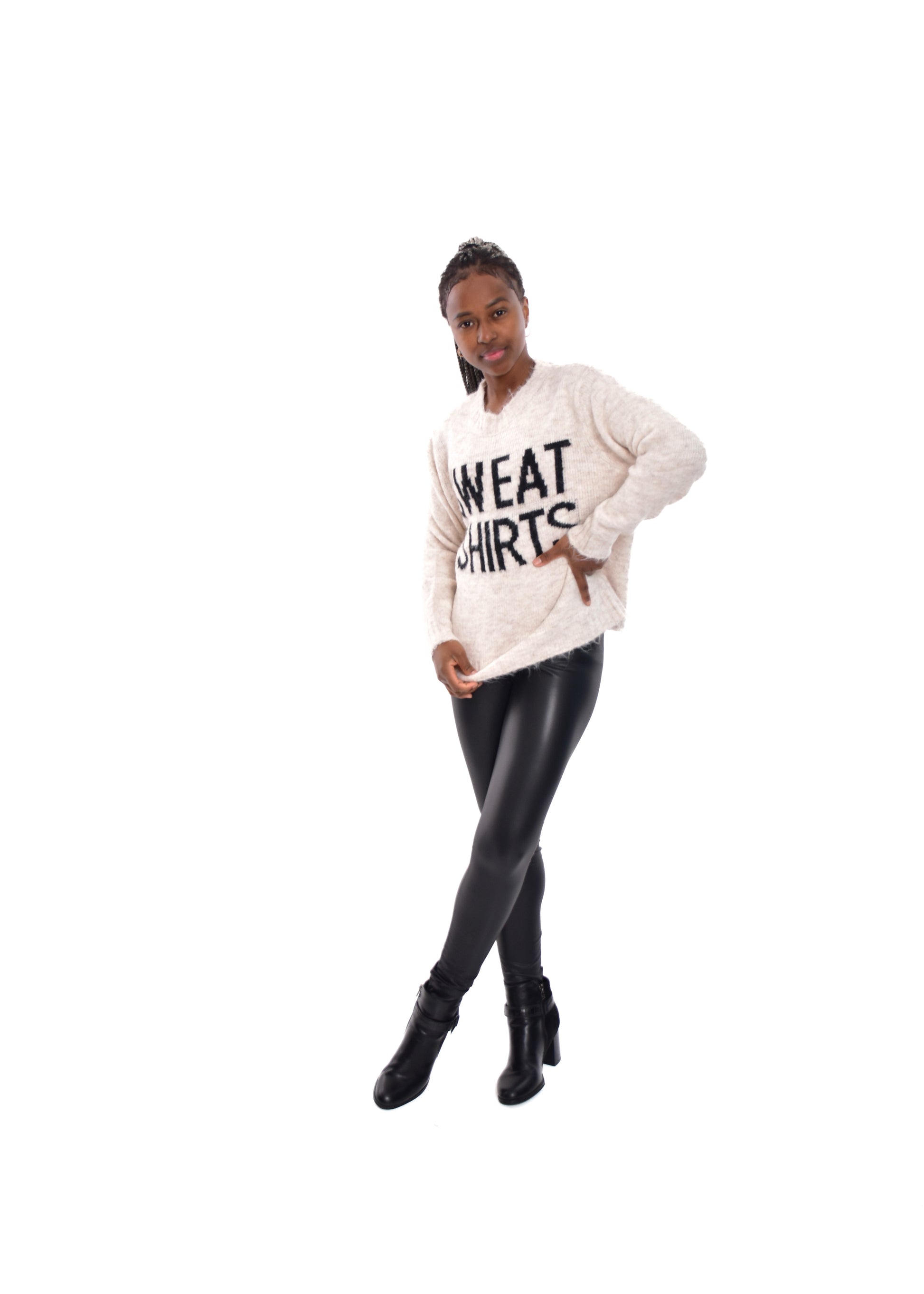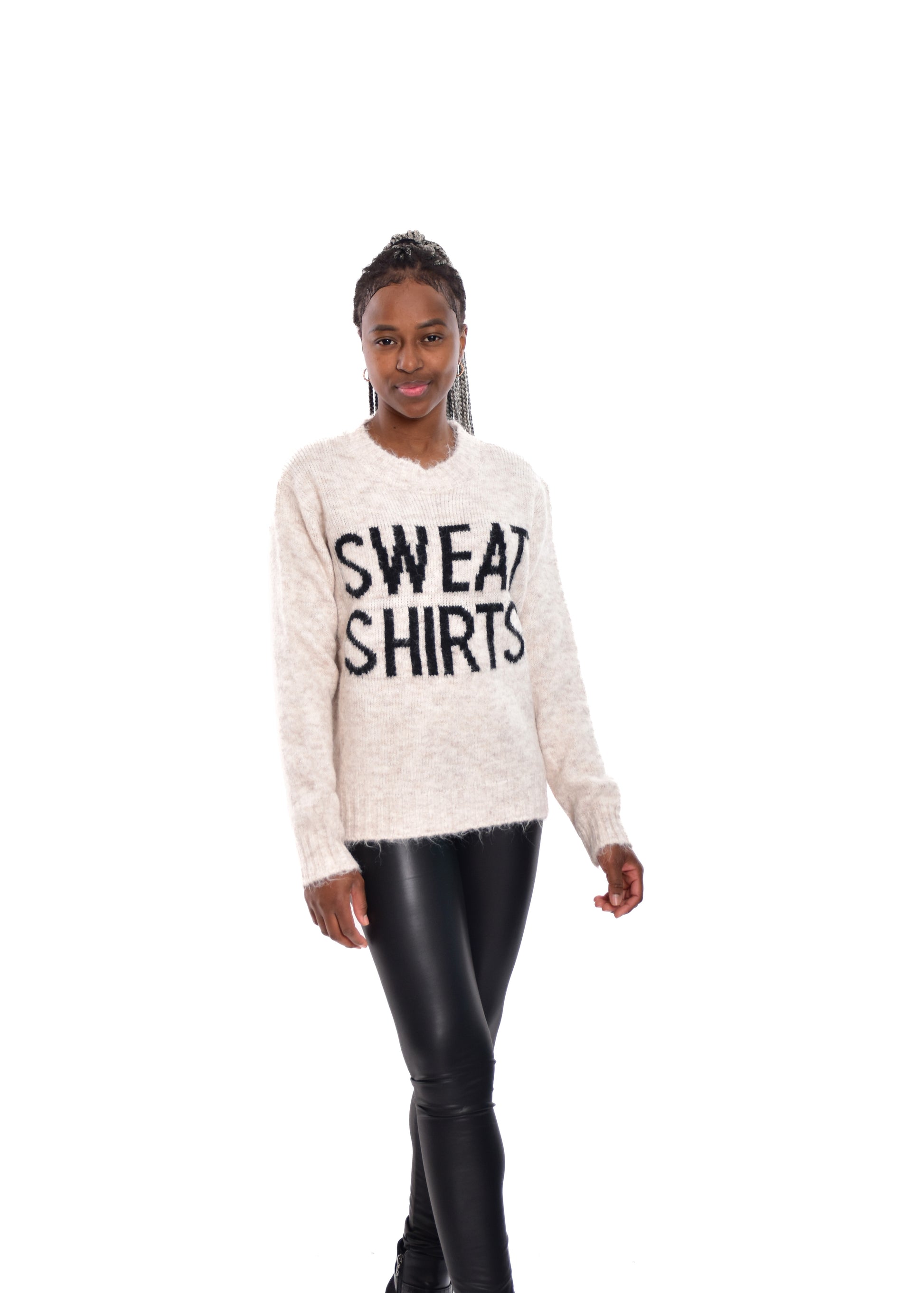 Jersey grueso. Estampado de letras. Detalles en dorado.Esta prenda está disponible en doble tallaje, en este caso es apto hasta una talla 42.