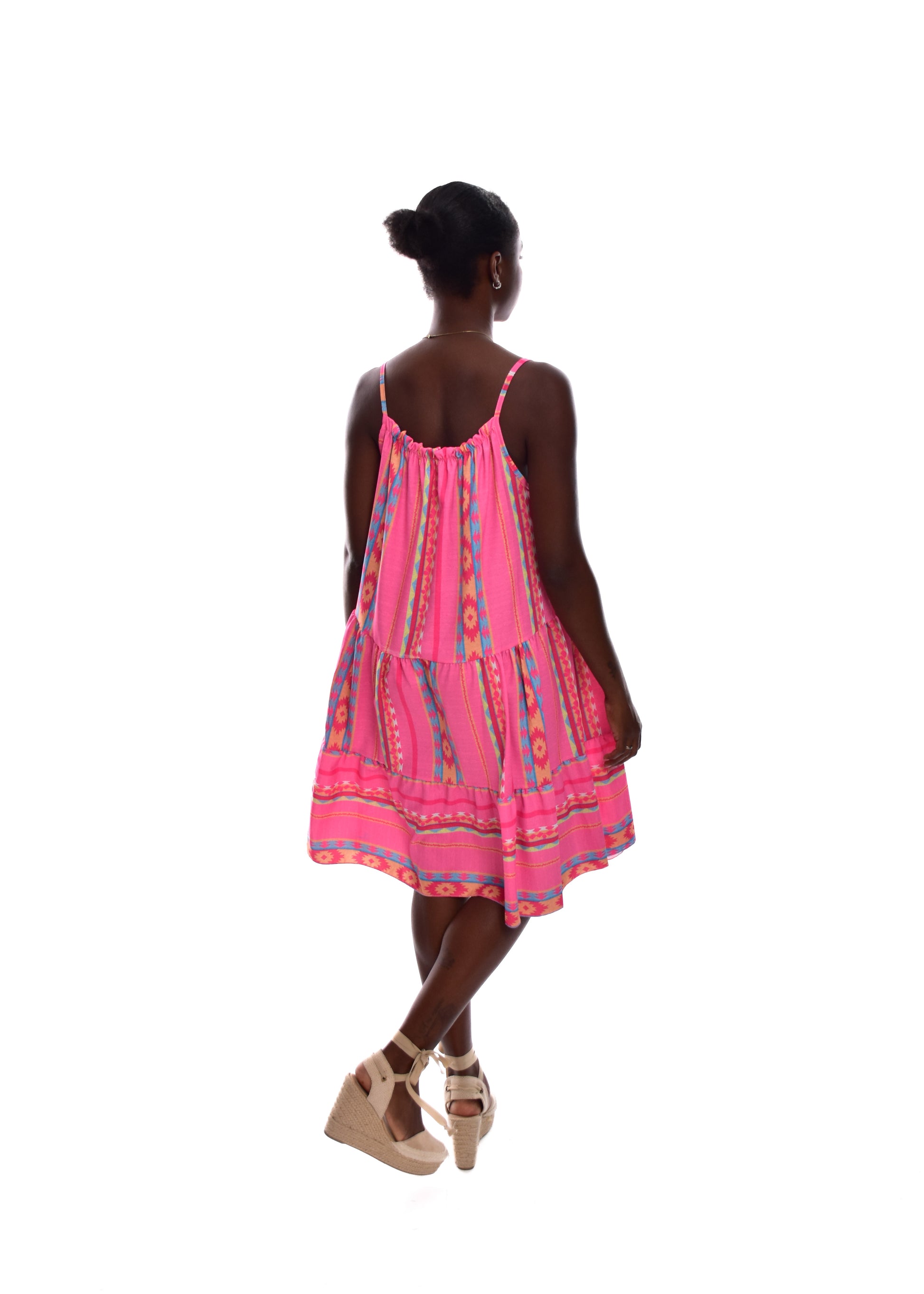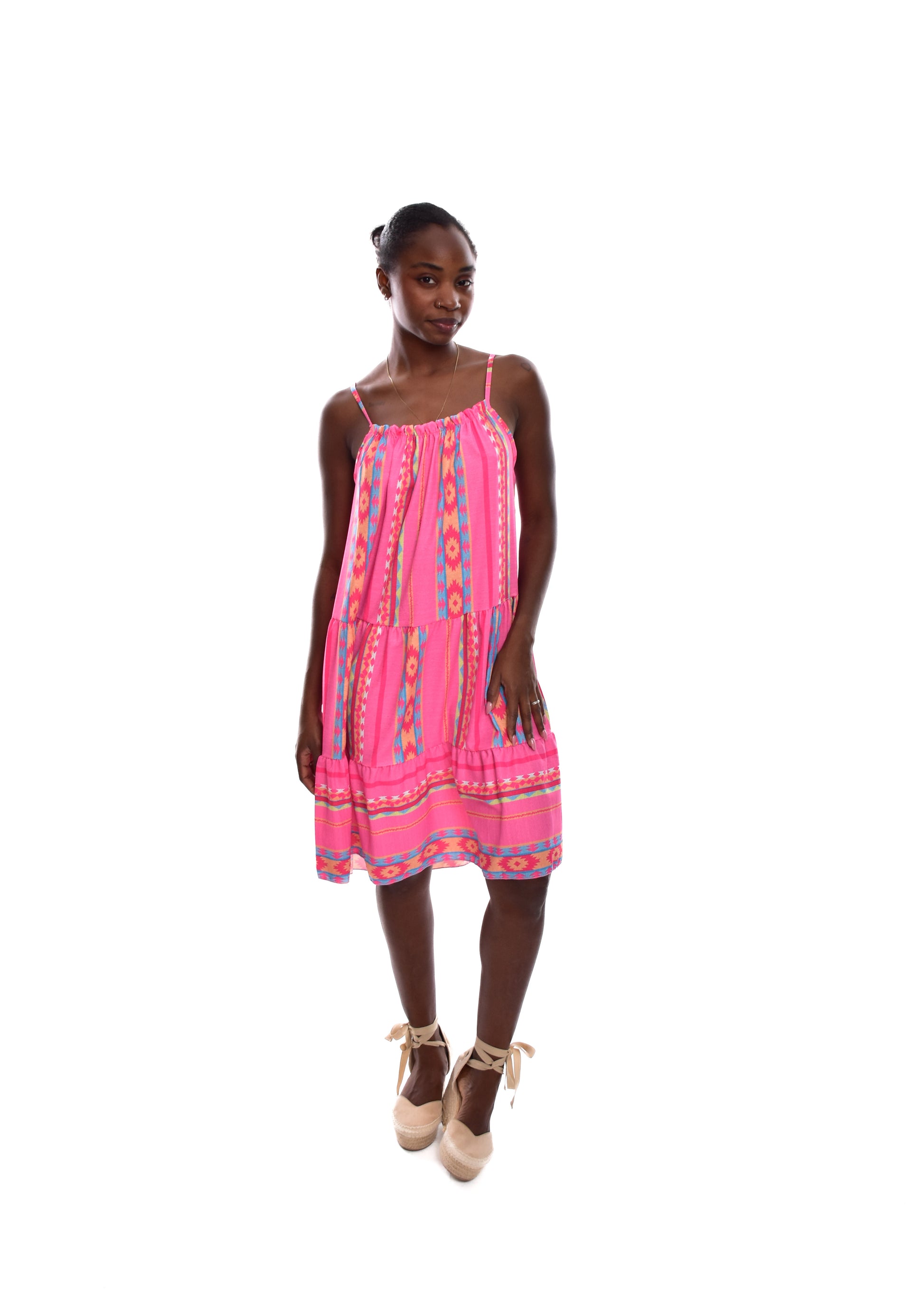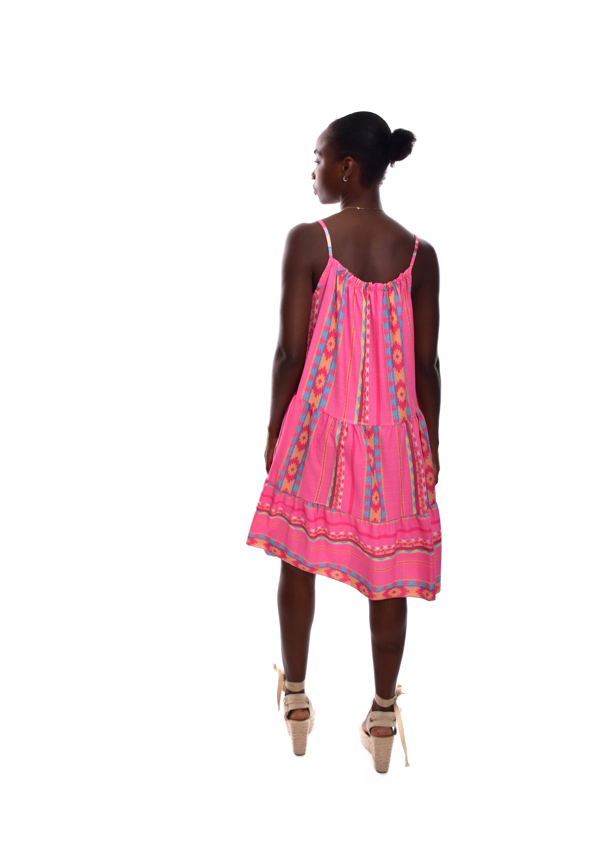 El Vestido Cenefas Fucsia destaca por su diseño fluido y favorecedor, acompañado de un original estampado de cenefas en tonos fucsia que llenan de personalidad la prenda. Su corte suelto aporta comodidad sin renunciar al estilo, convirtiéndolo en una opción versátil para el día a día o para ocasiones más especiales en las que quieras resaltar con un toque de color.
