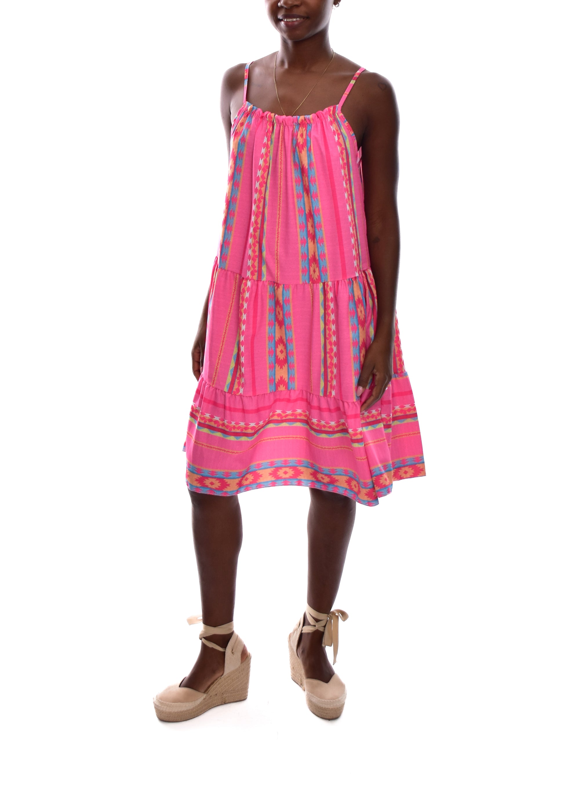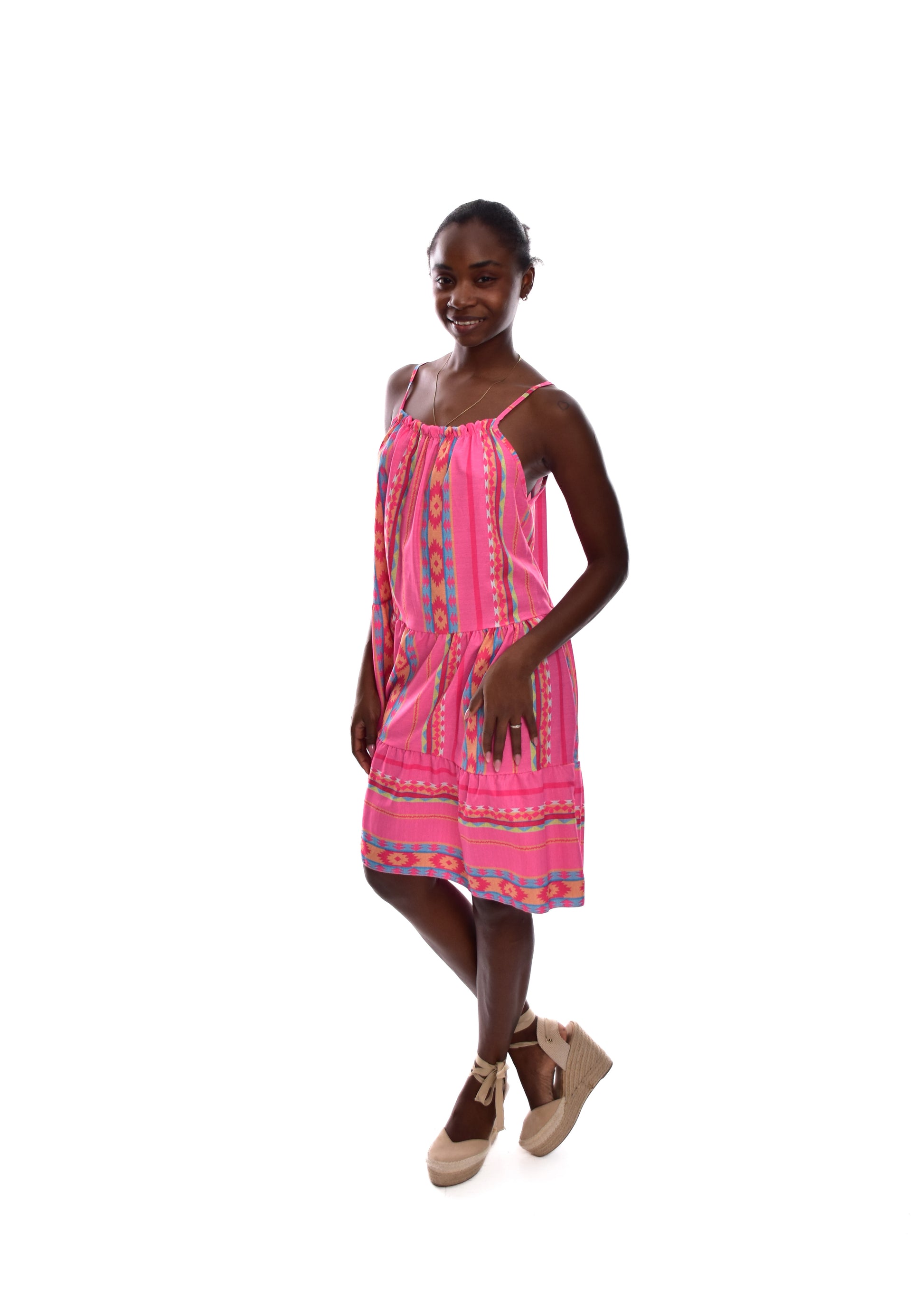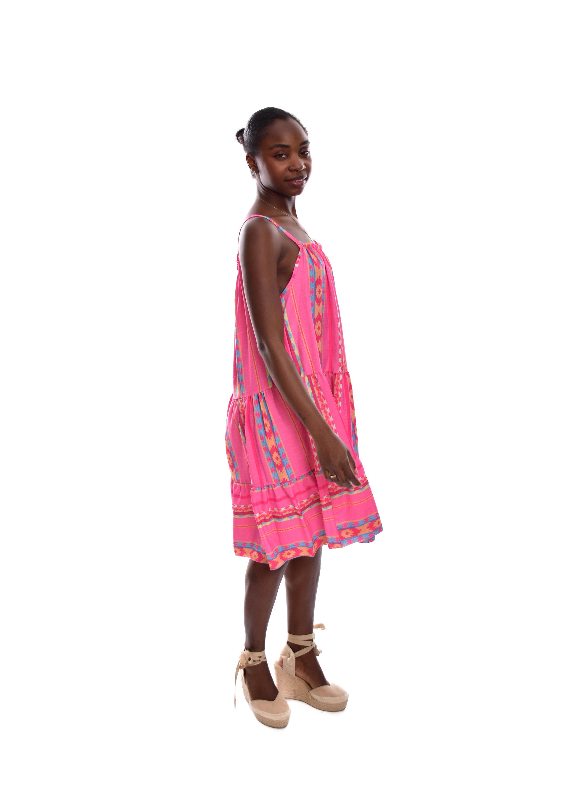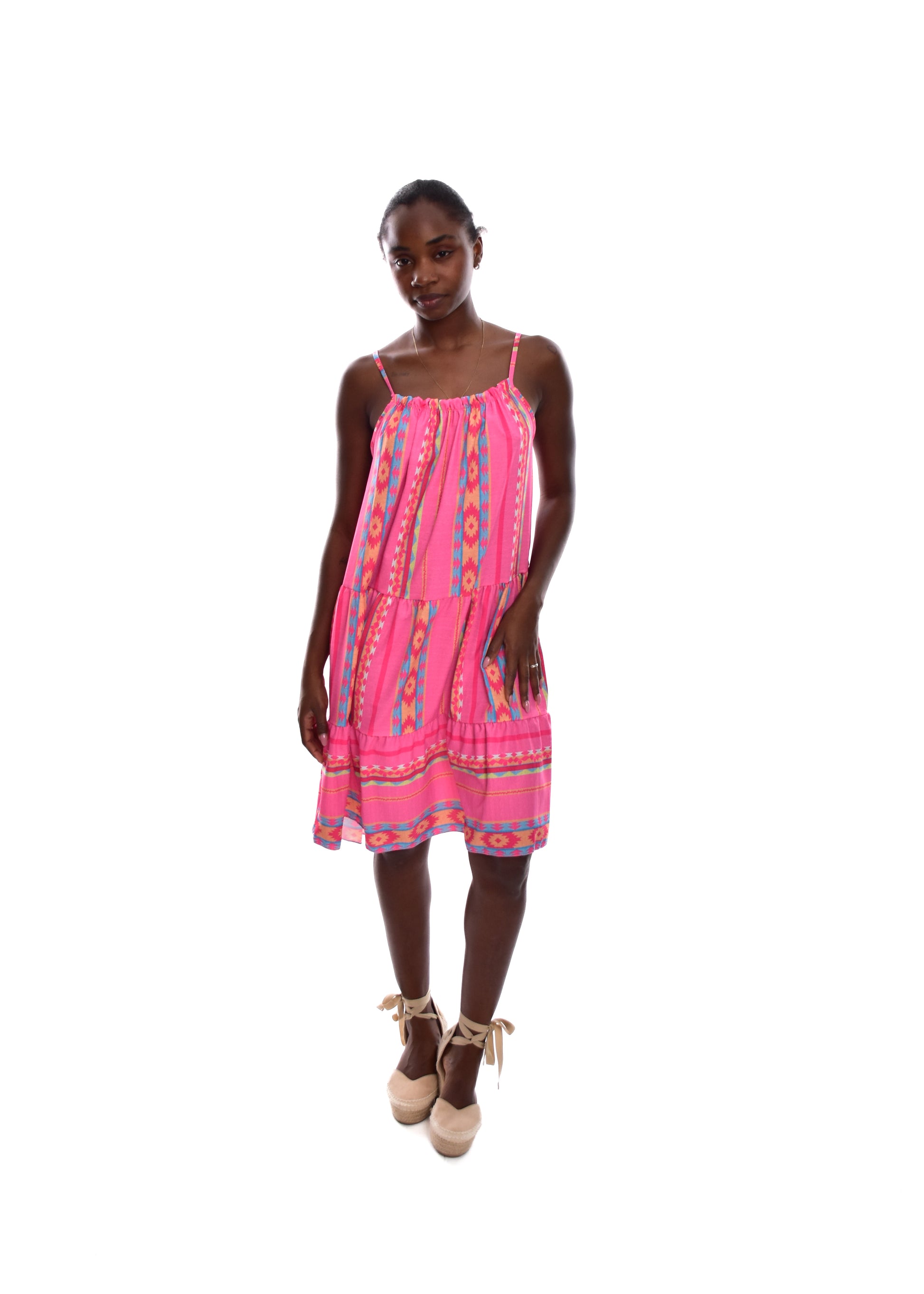 El Vestido Cenefas Fucsia destaca por su diseño fluido y favorecedor, acompañado de un original estampado de cenefas en tonos fucsia que llenan de personalidad la prenda. Su corte suelto aporta comodidad sin renunciar al estilo, convirtiéndolo en una opción versátil para el día a día o para ocasiones más especiales en las que quieras resaltar con un toque de color.