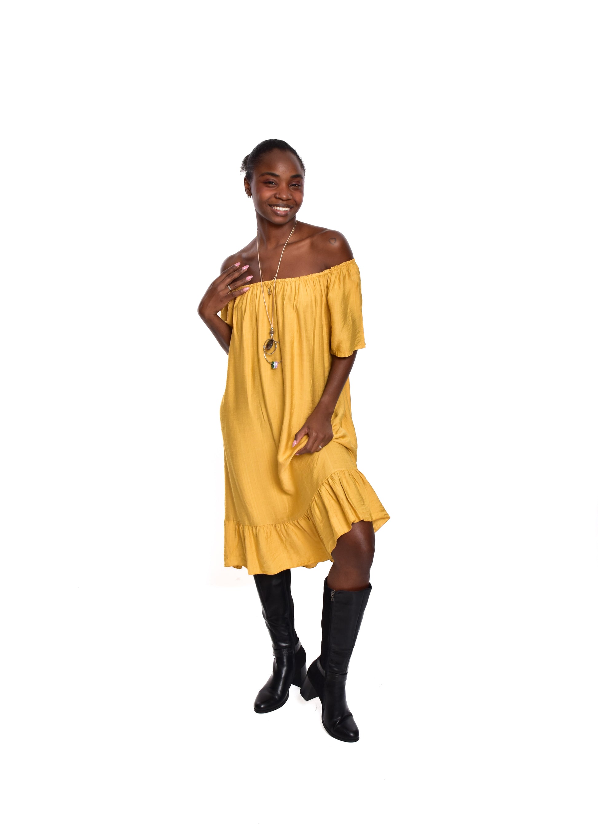 El Vestido Liso Mostaza es una prenda fluida y versátil que combina estilo y comodidad. Confeccionado en un tejido ligero, este vestido ofrece una silueta favorecedora y un toque de elegancia. Ideal para diversas ocasiones, desde eventos especiales hasta salidas informales.