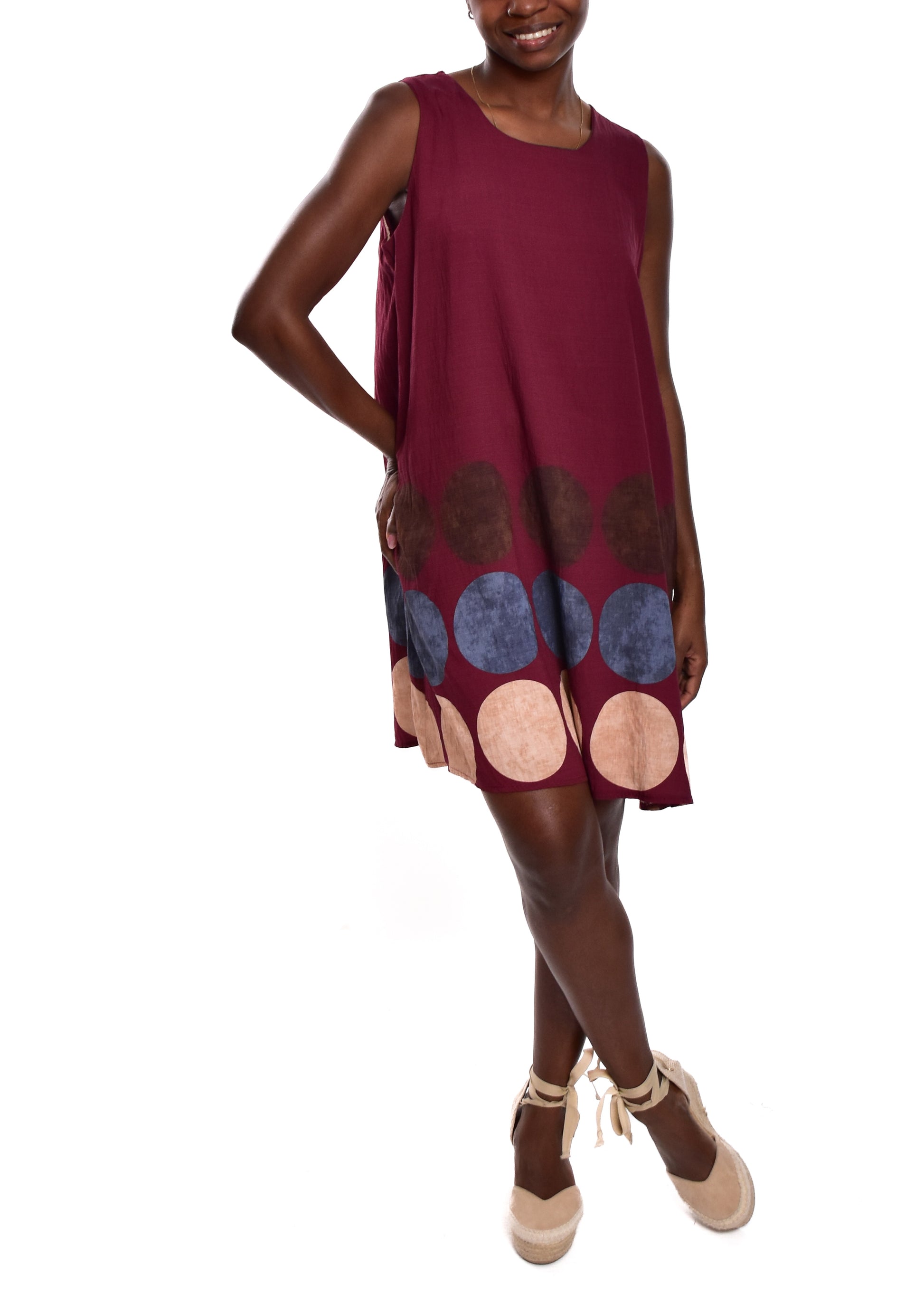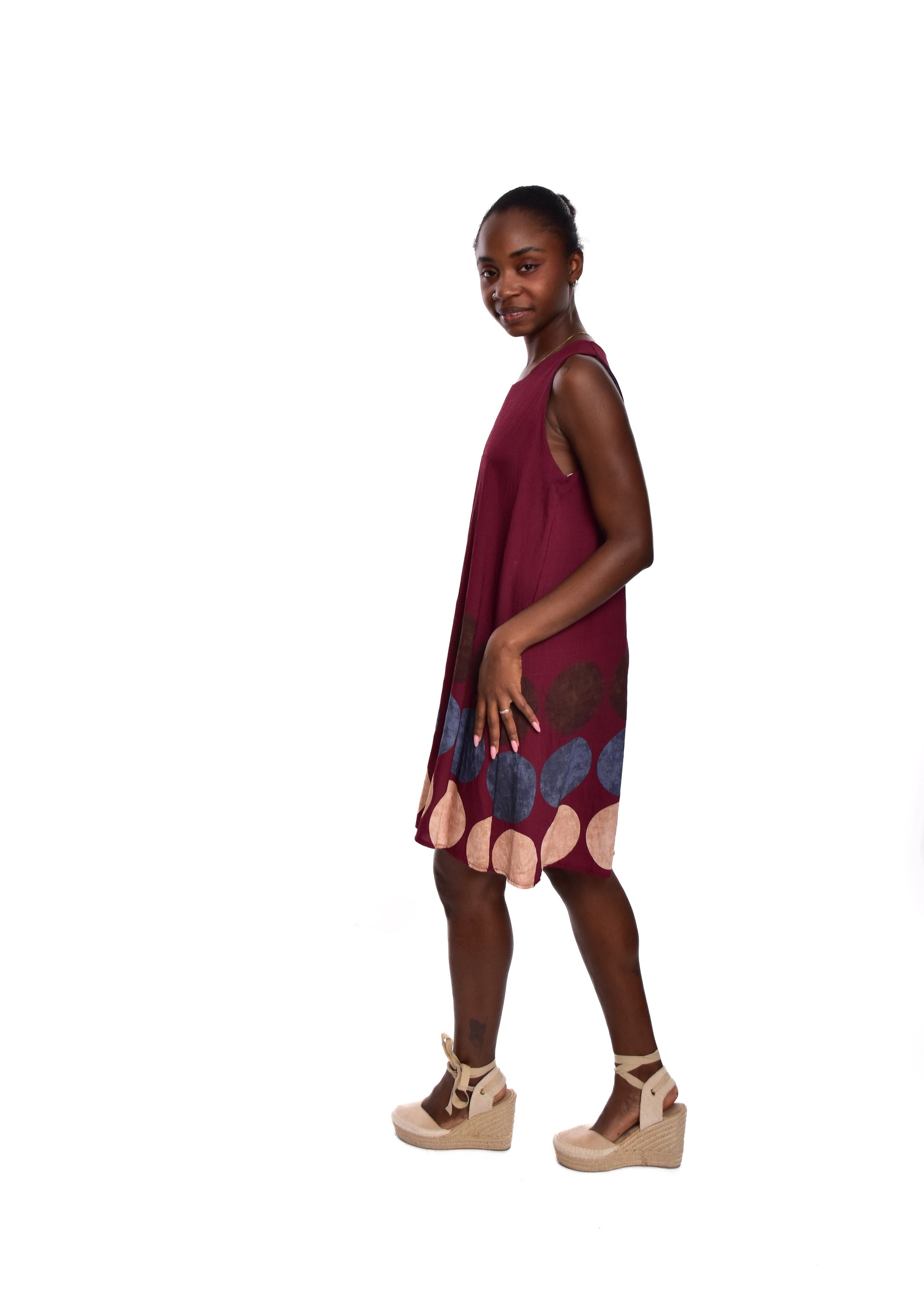 El Vestido Topos Granate es una prenda de estilo vintage que combina elegancia y comodidad. Confeccionado en un tejido suave y fluido, este vestido ofrece una silueta favorecedora y un toque de color vibrante. Ideal para diversas ocasiones, desde eventos especiales hasta salidas informales.