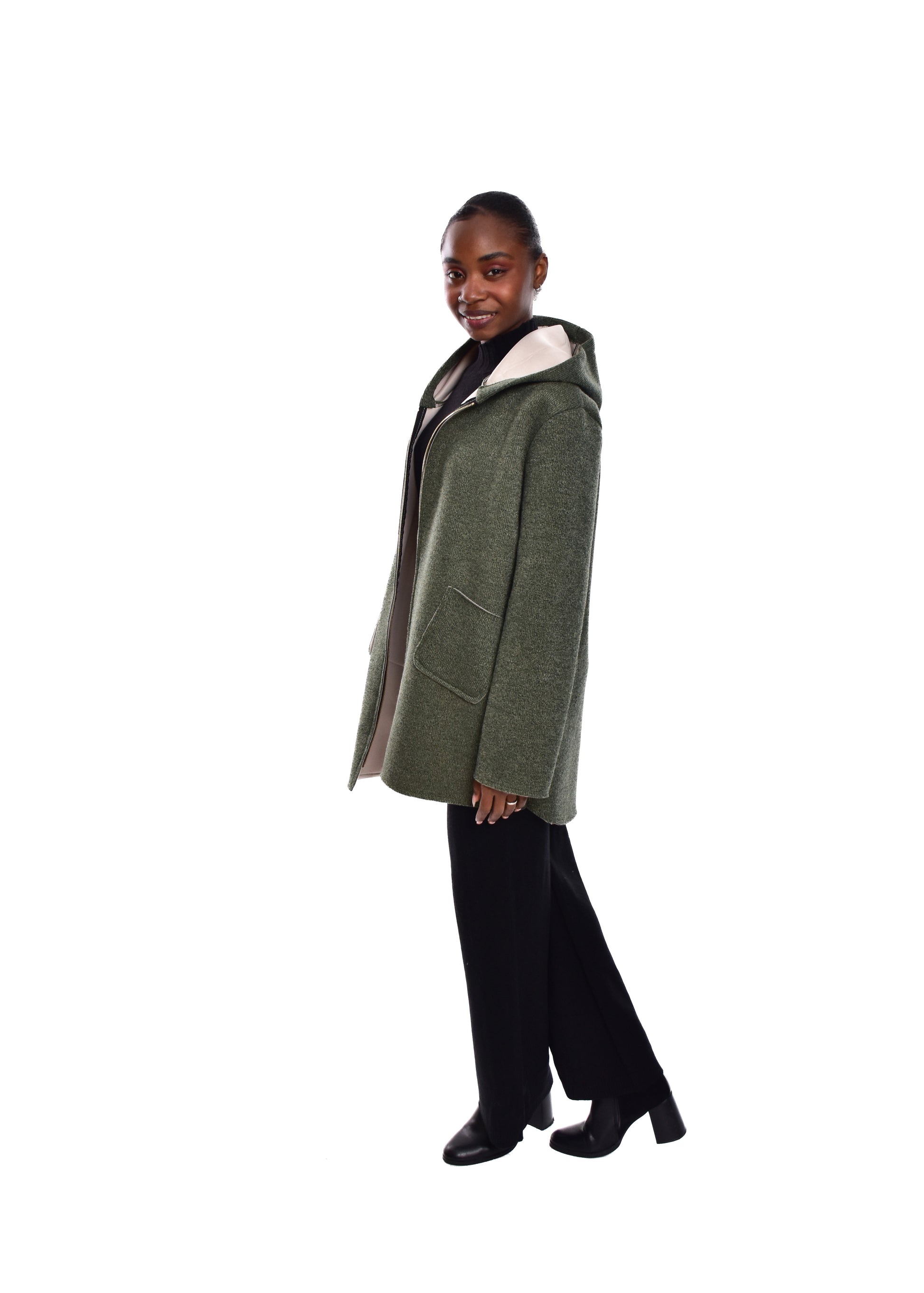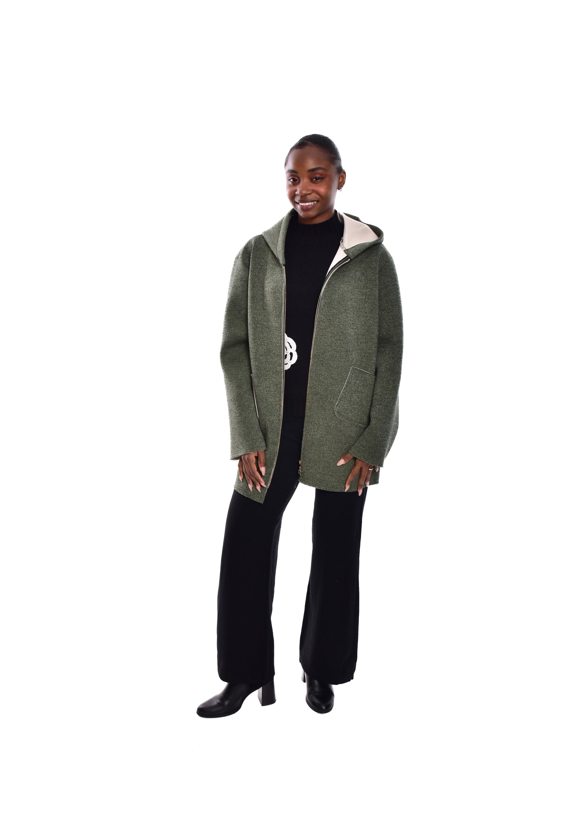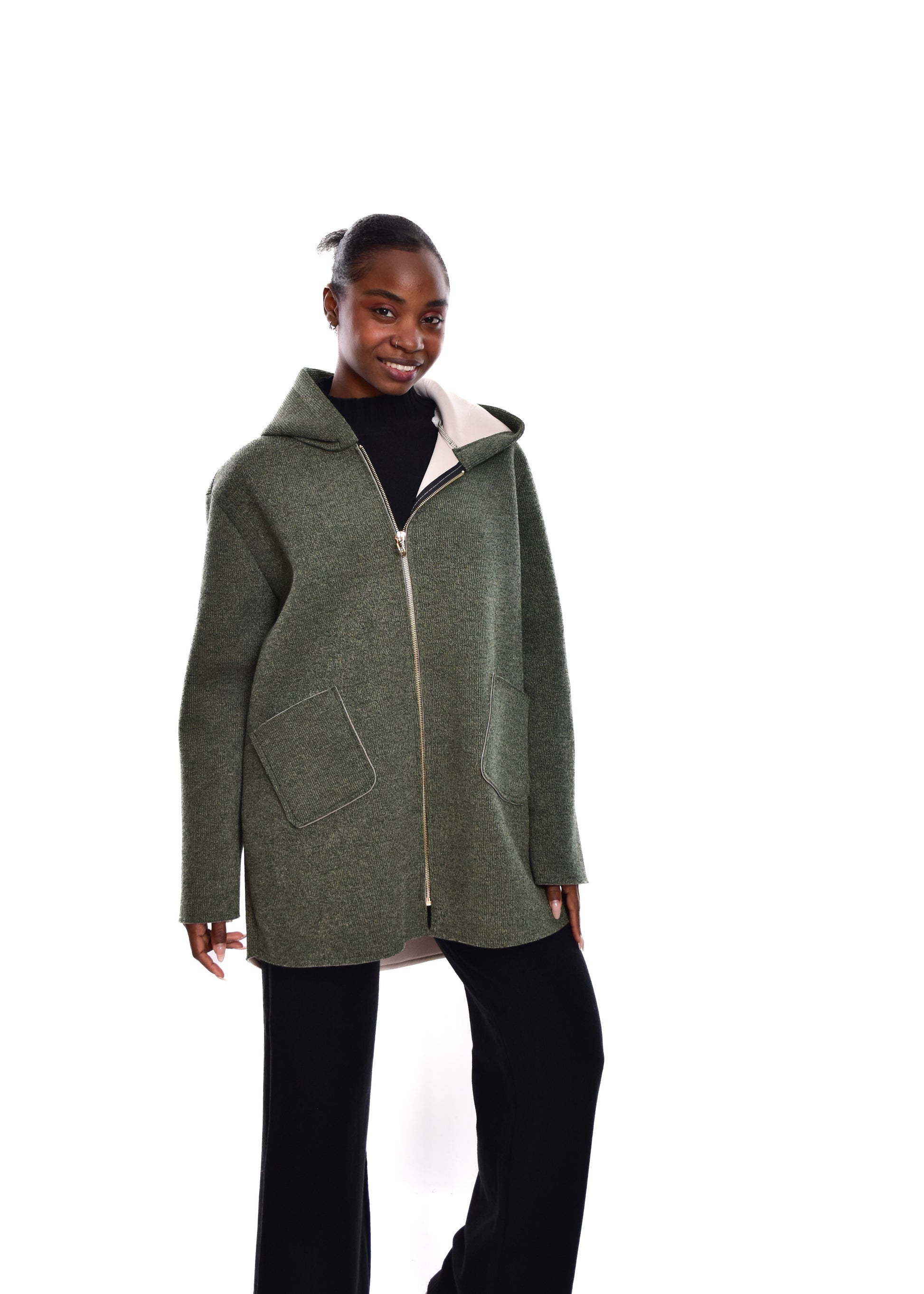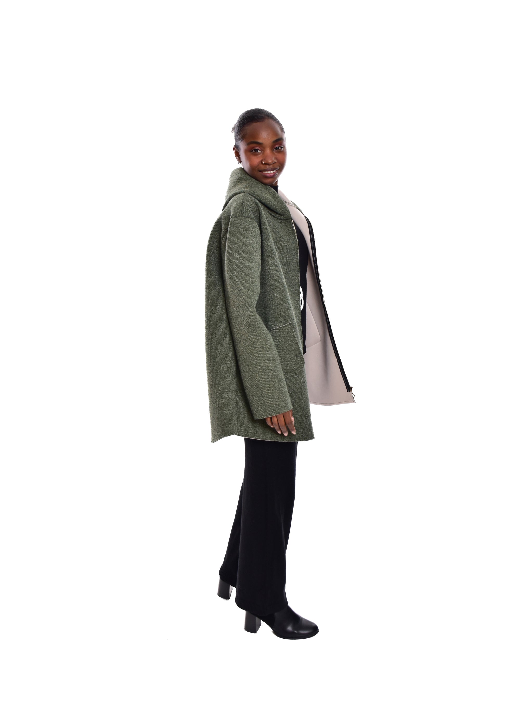 Neoprene coat. Includes pockets. Unlined. This model is available in one size, in this case it fits up to size 42.