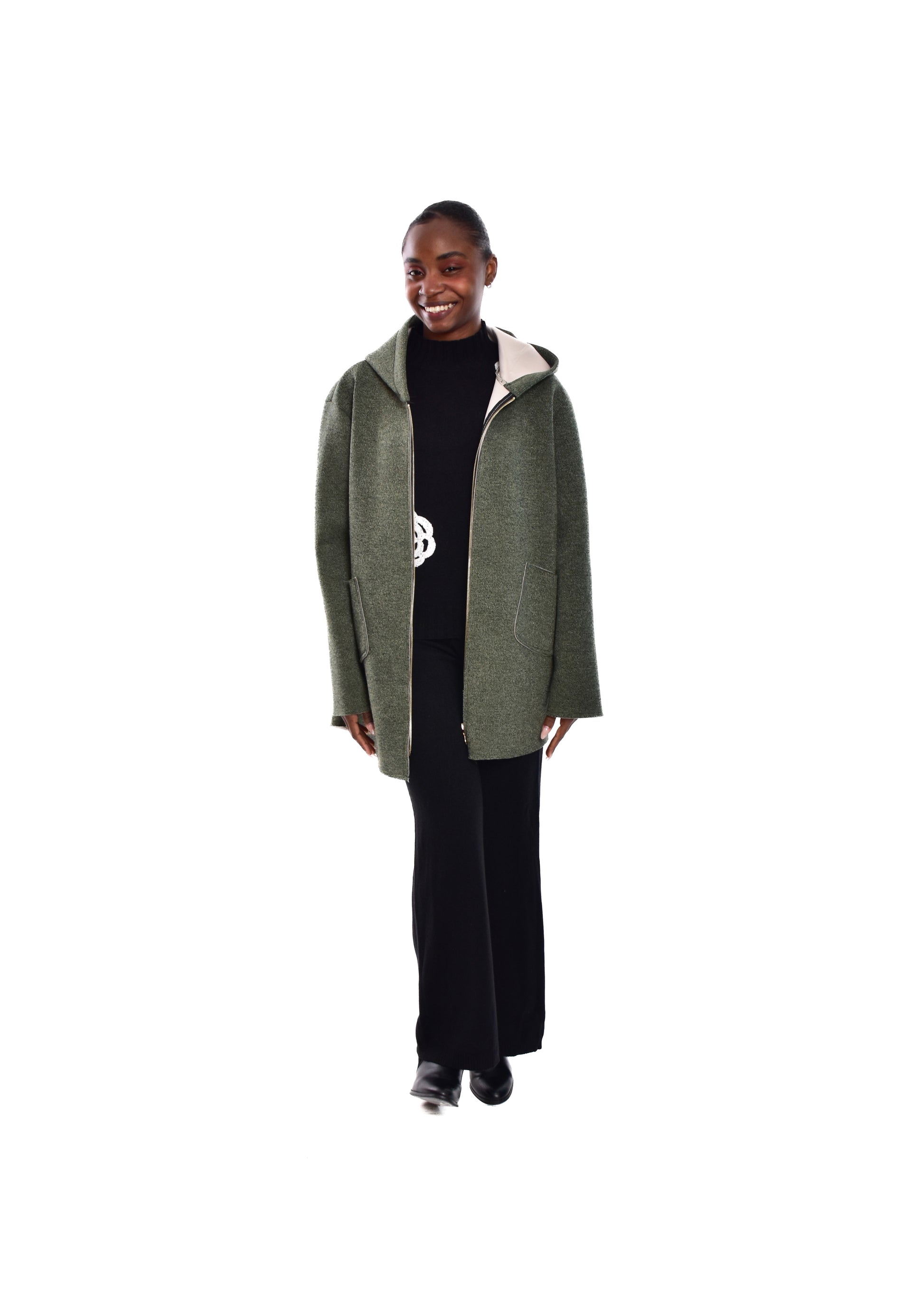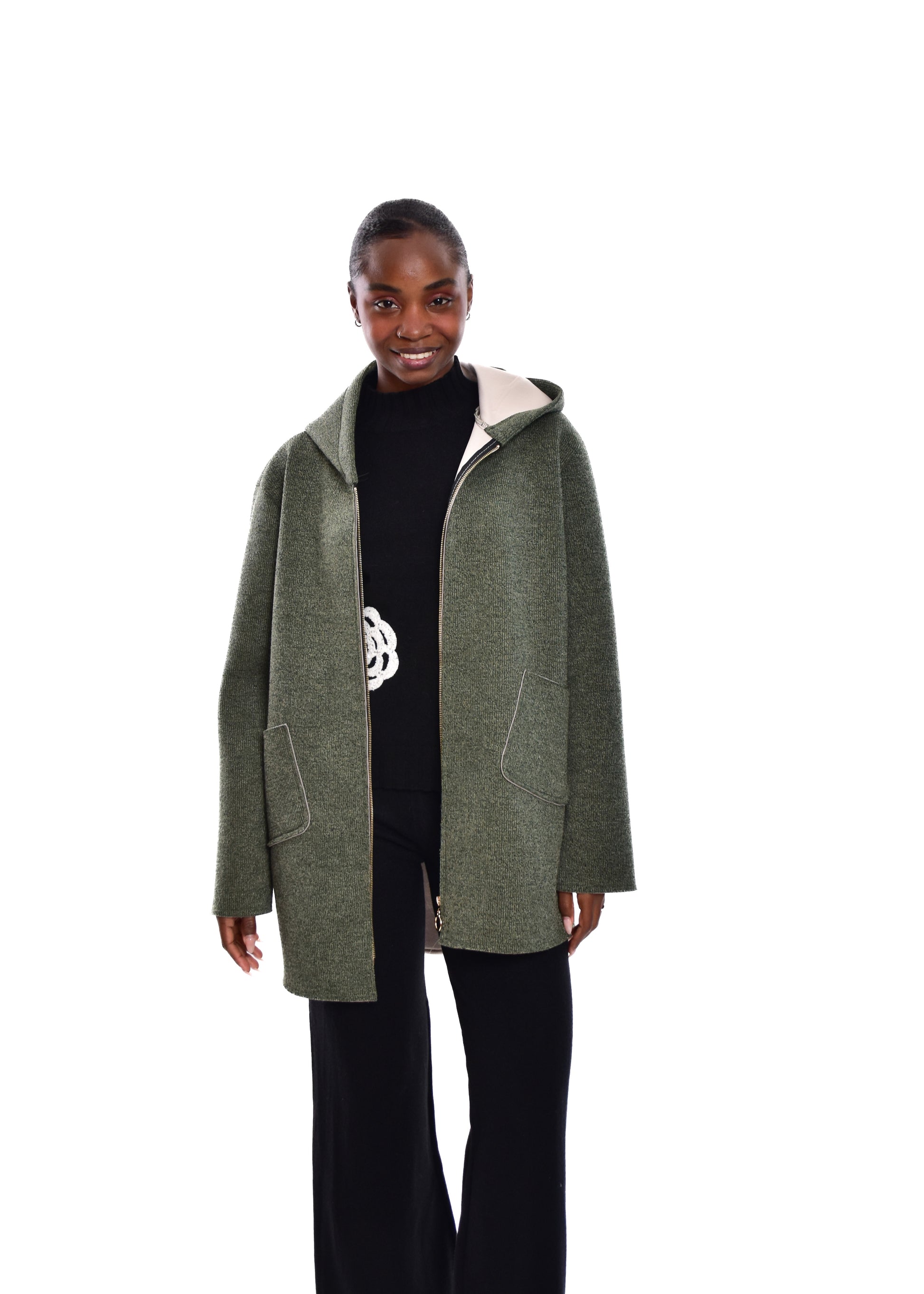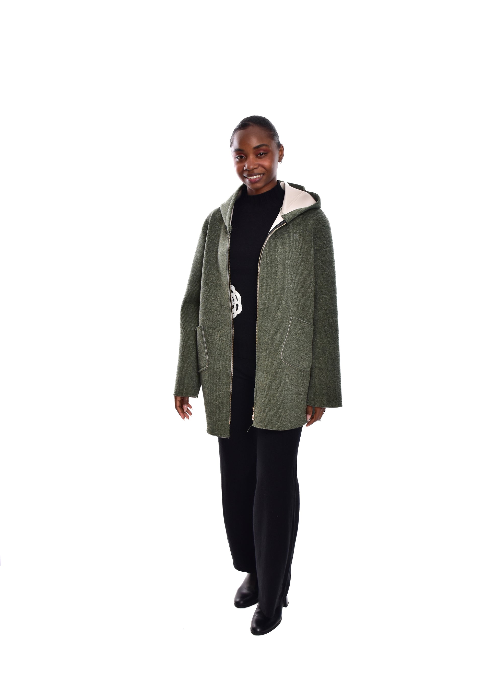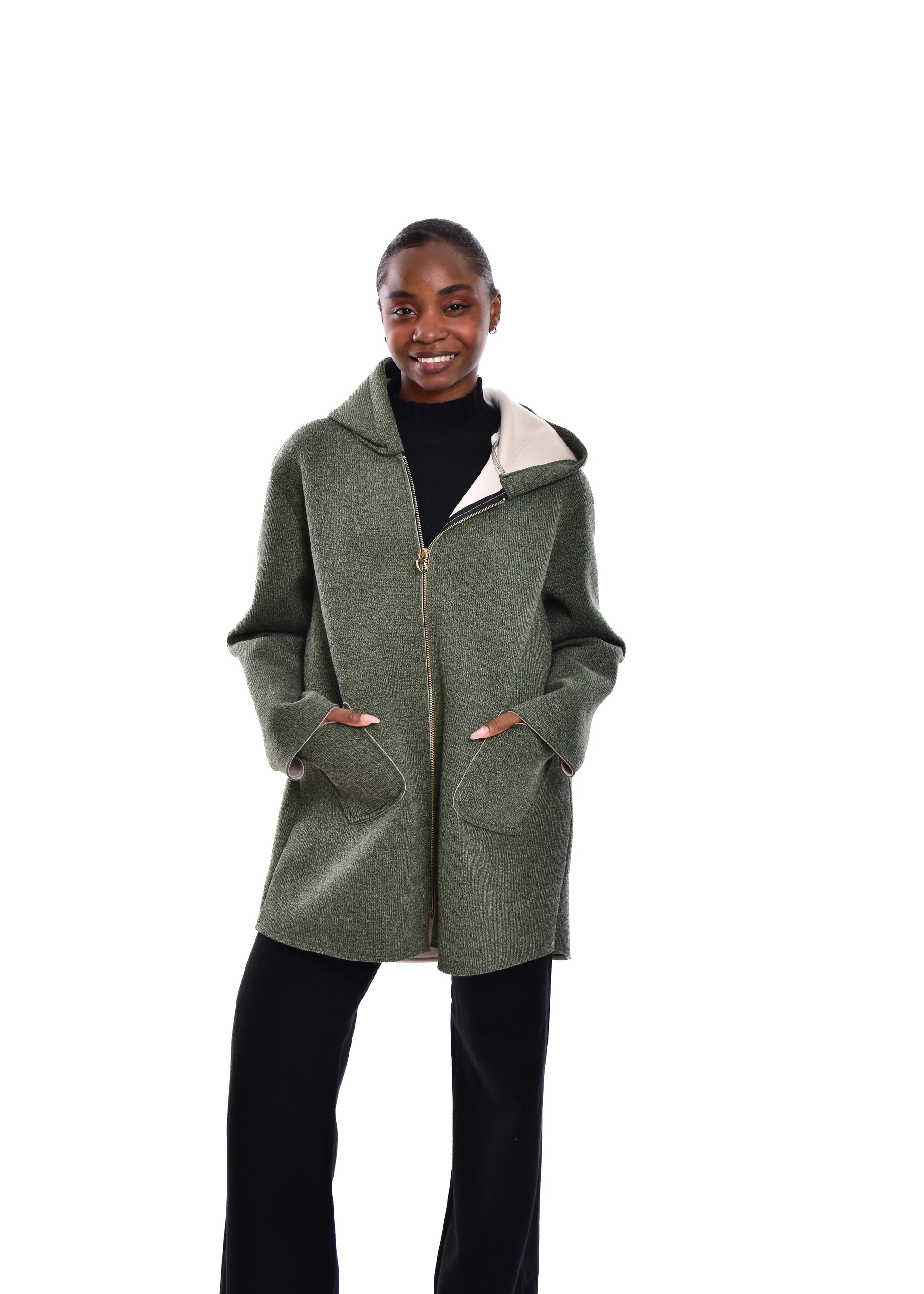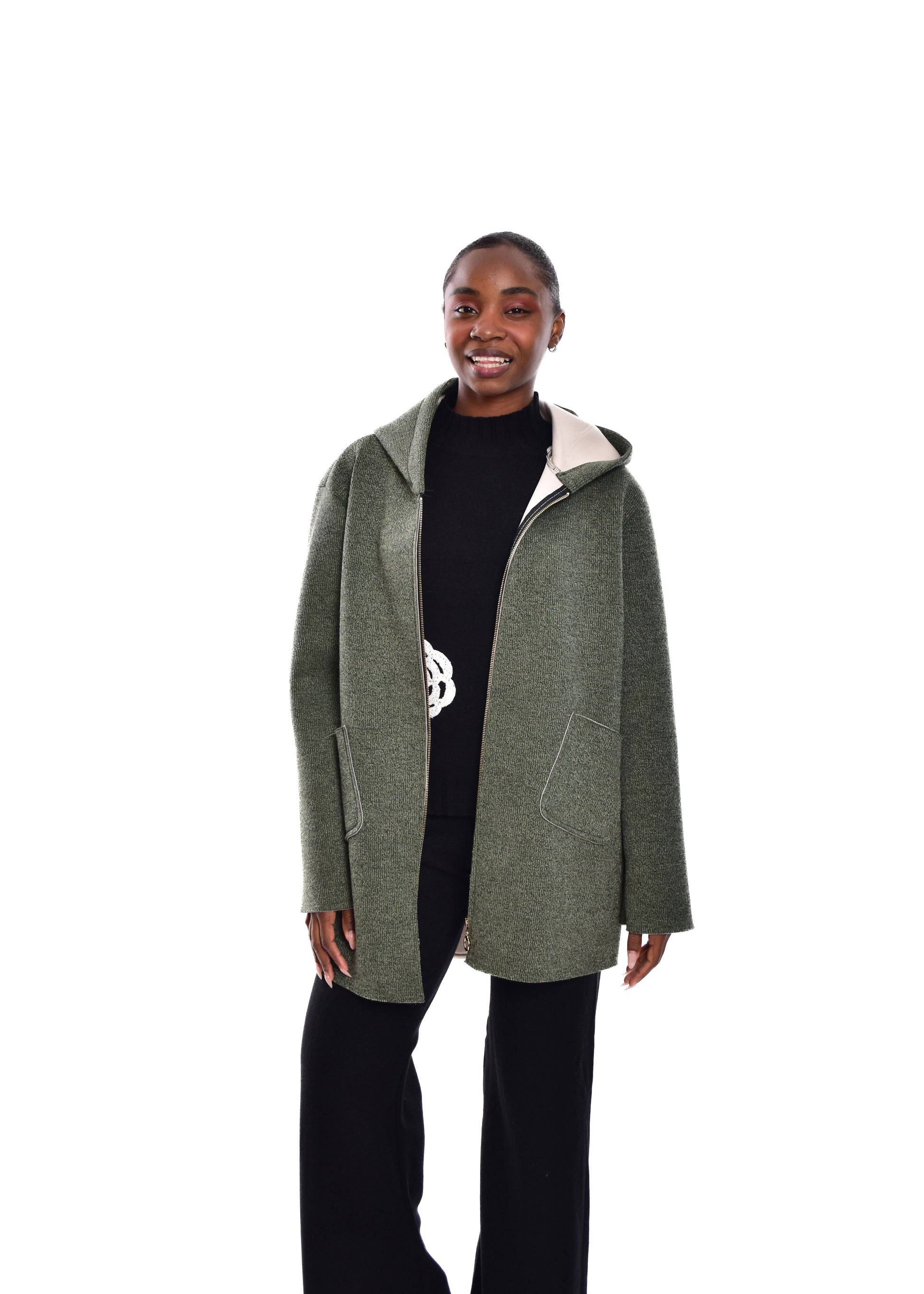 Neoprene coat. Includes pockets. Unlined. This model is available in one size, in this case it fits up to size 42.