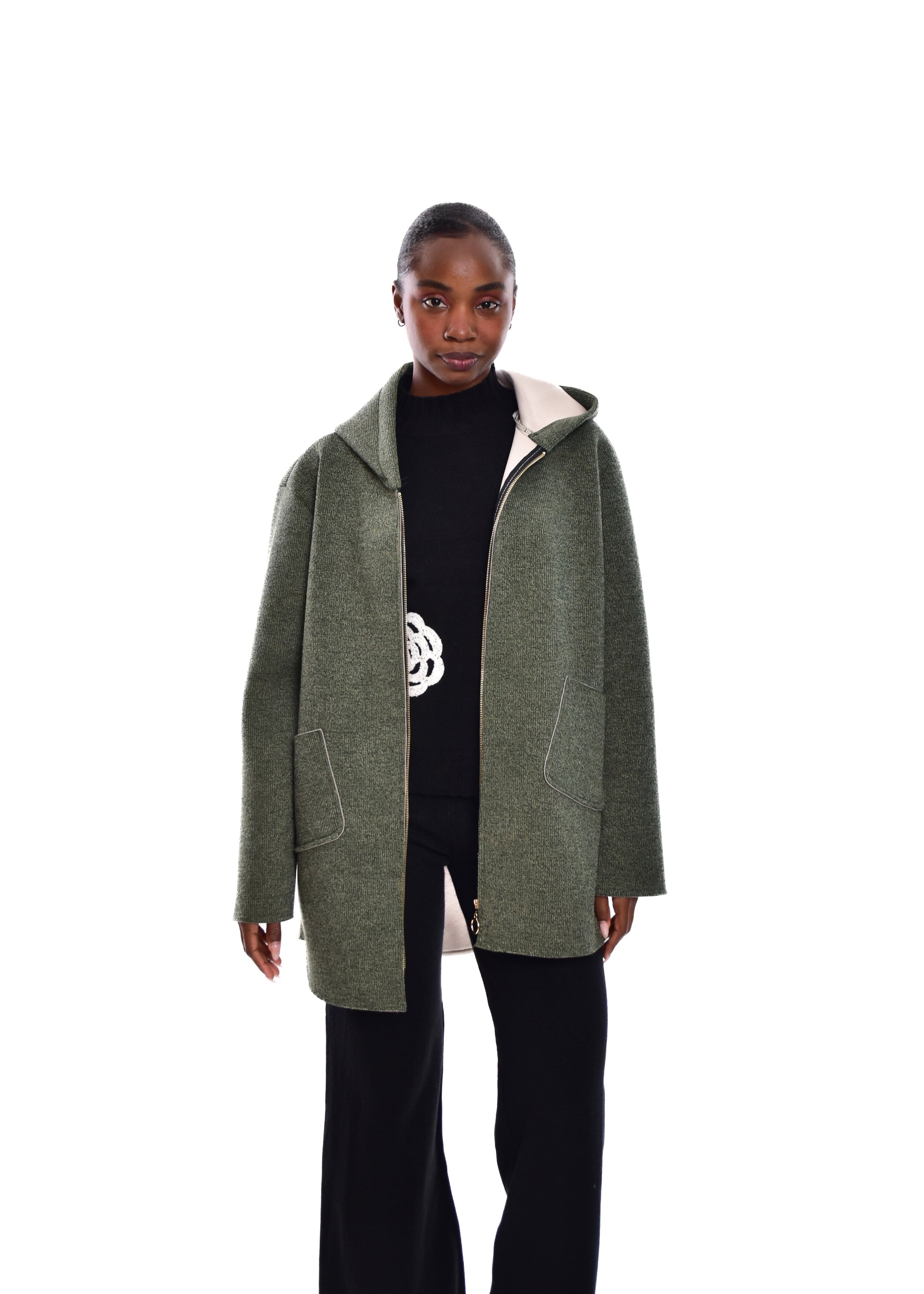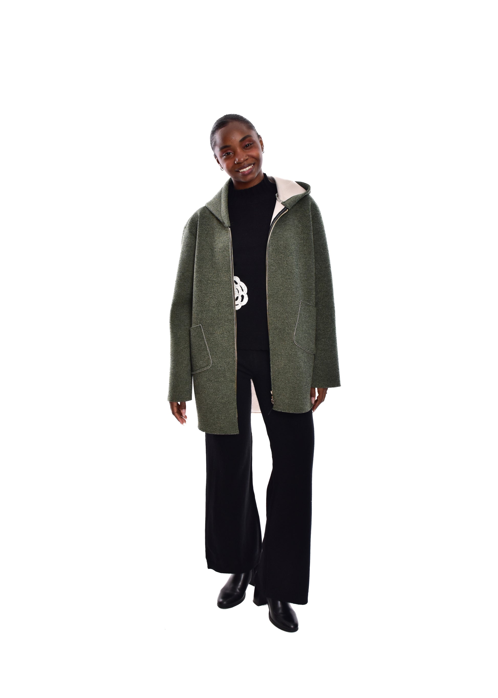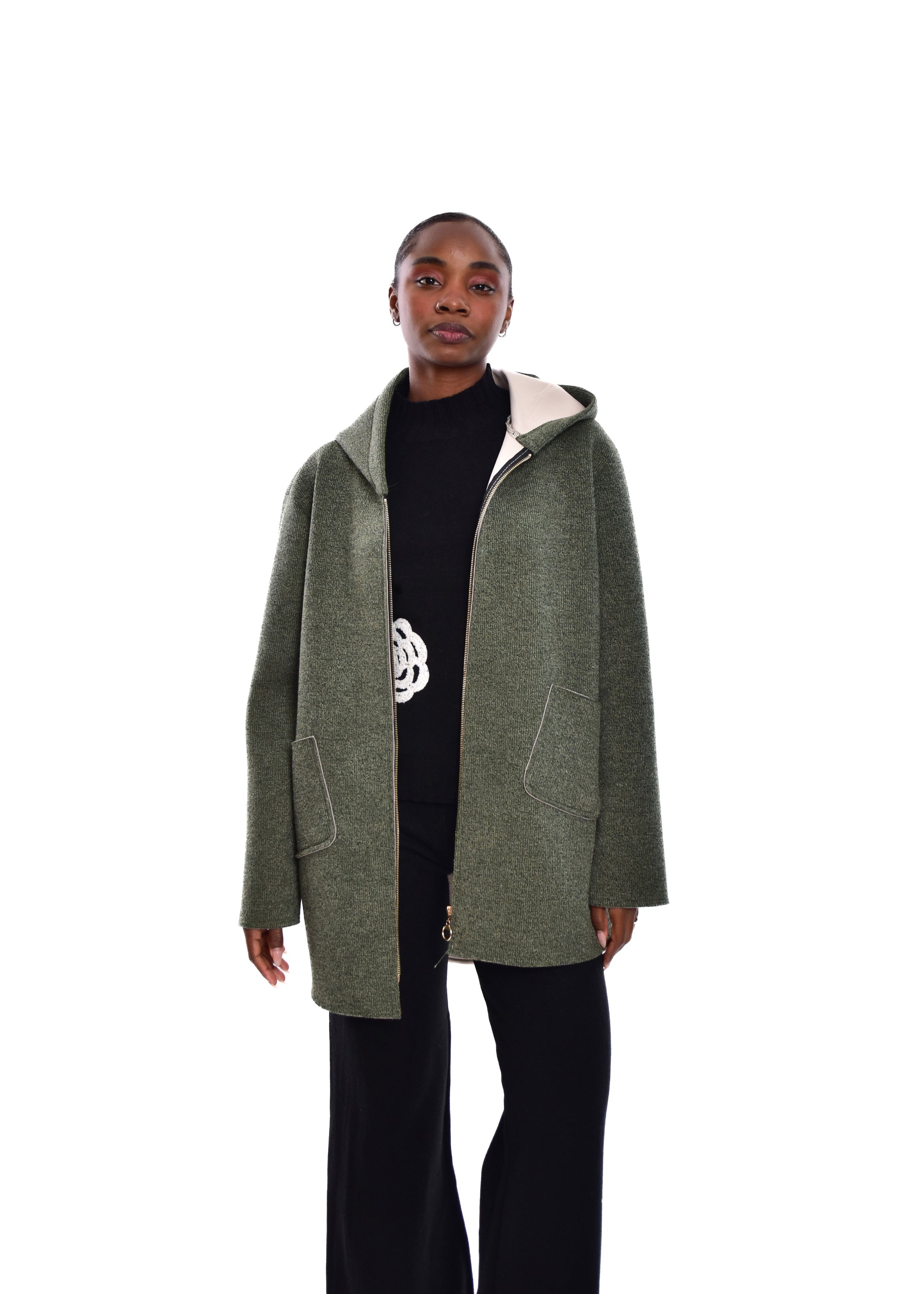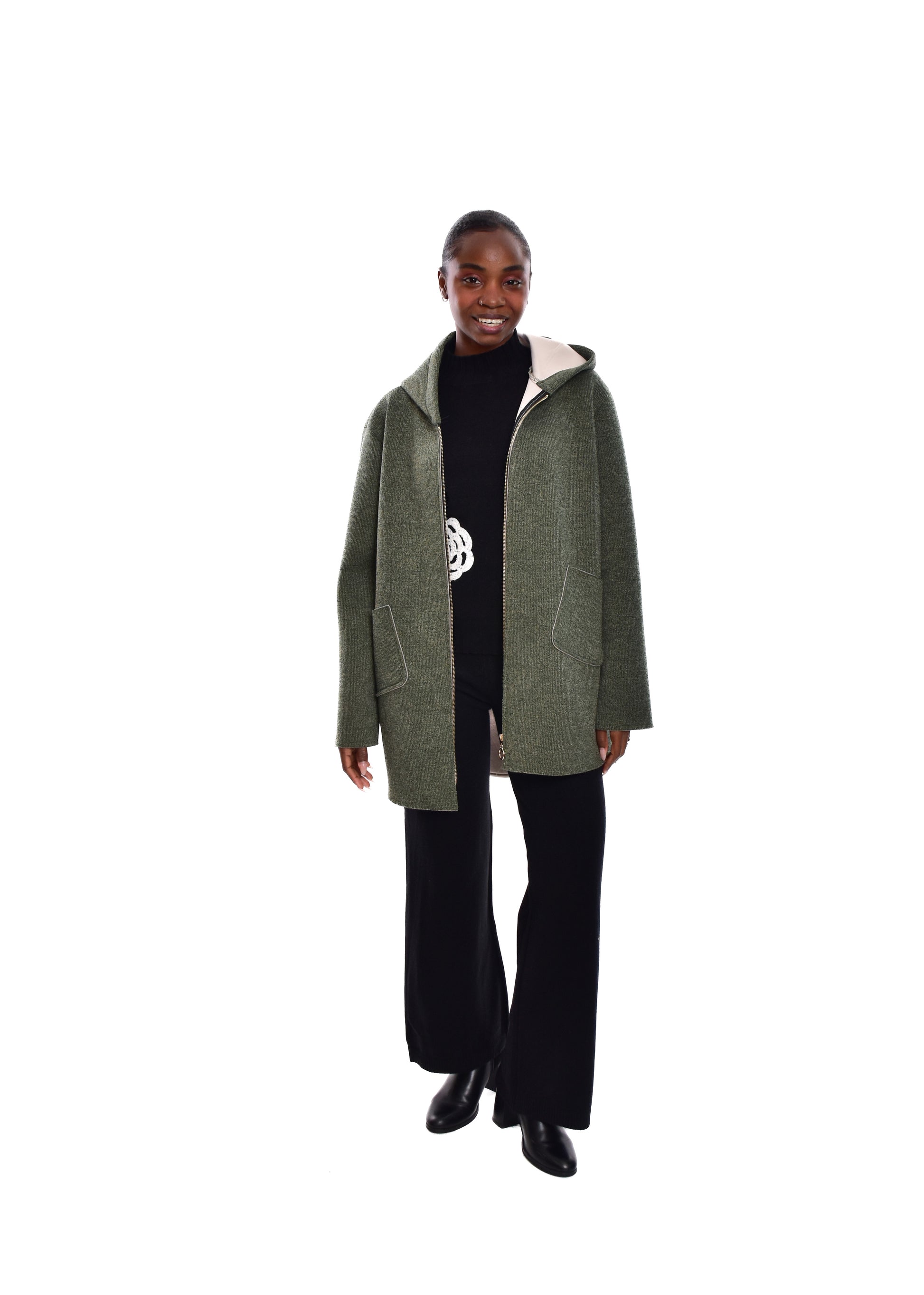 Neoprene coat. Includes pockets. Unlined. This model is available in one size, in this case it fits up to size 42.