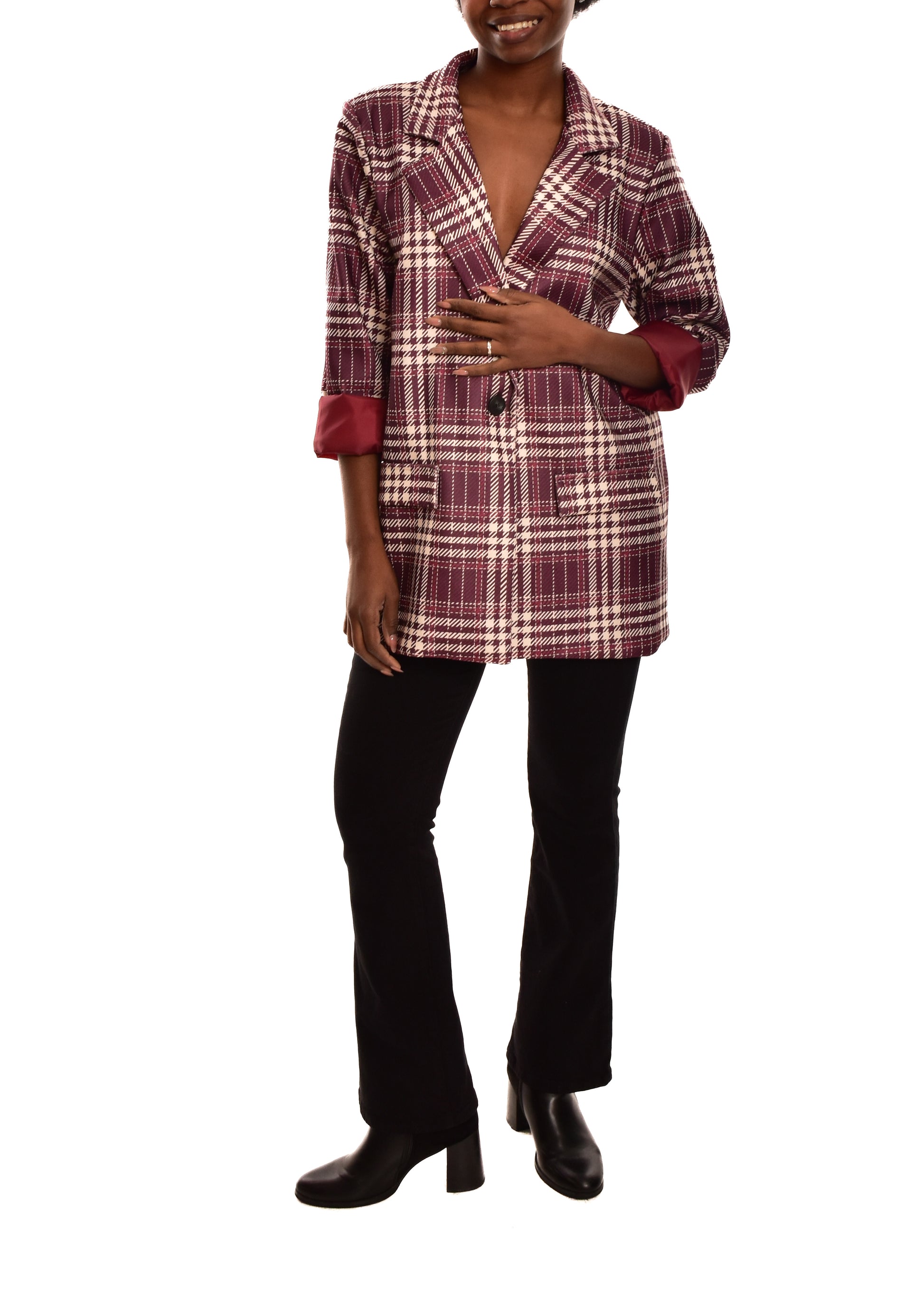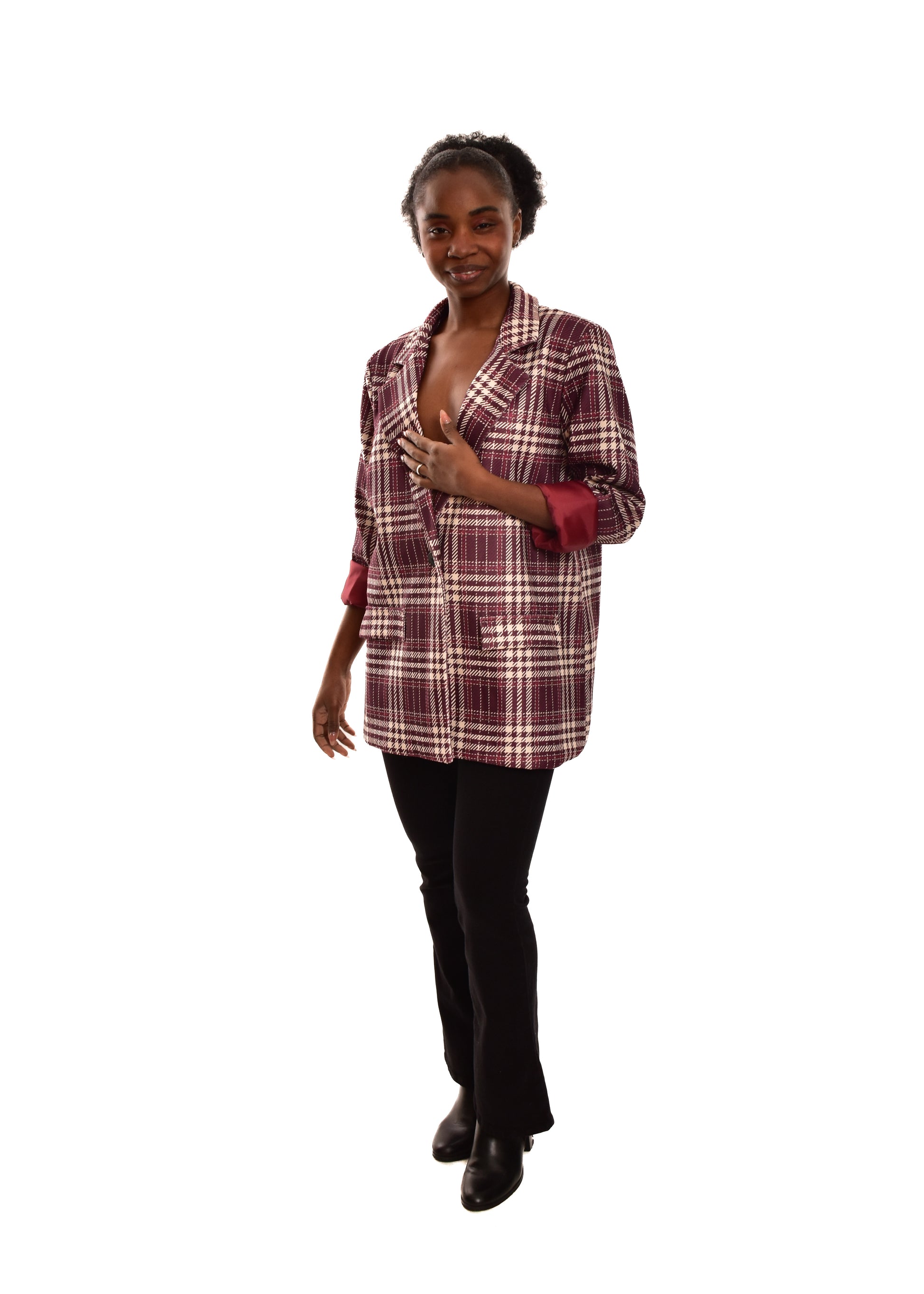 Blazer Oversize con estampado de cuadros. Lleva forro. Cuenta con hombreras. Este modelo está disponible en talla única, en este caso es apto hasta una talla 44.