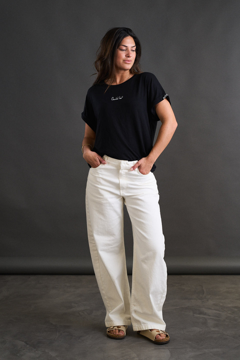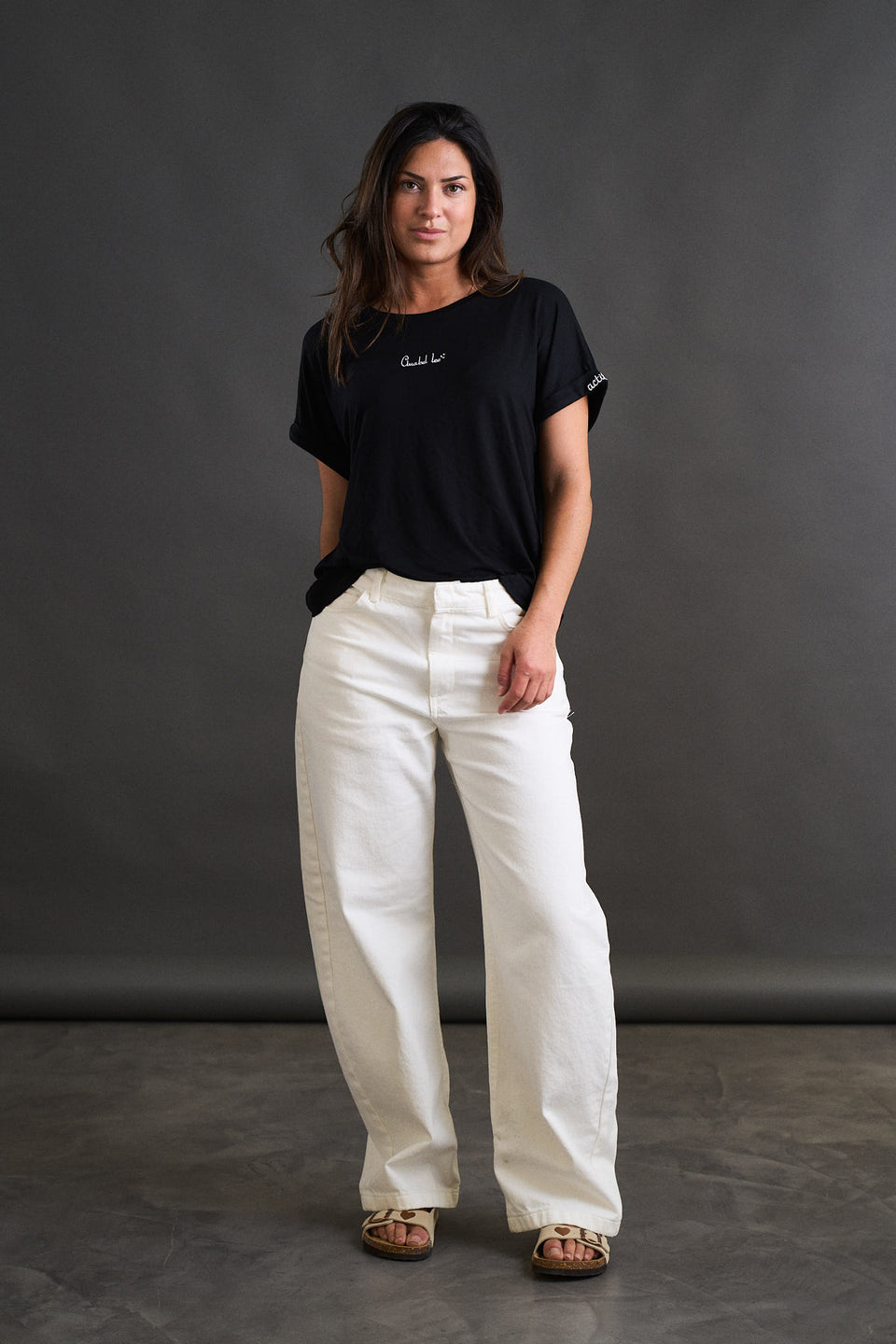 -Camiseta de corte recto y oversize, de marga corta y cuello redondo.