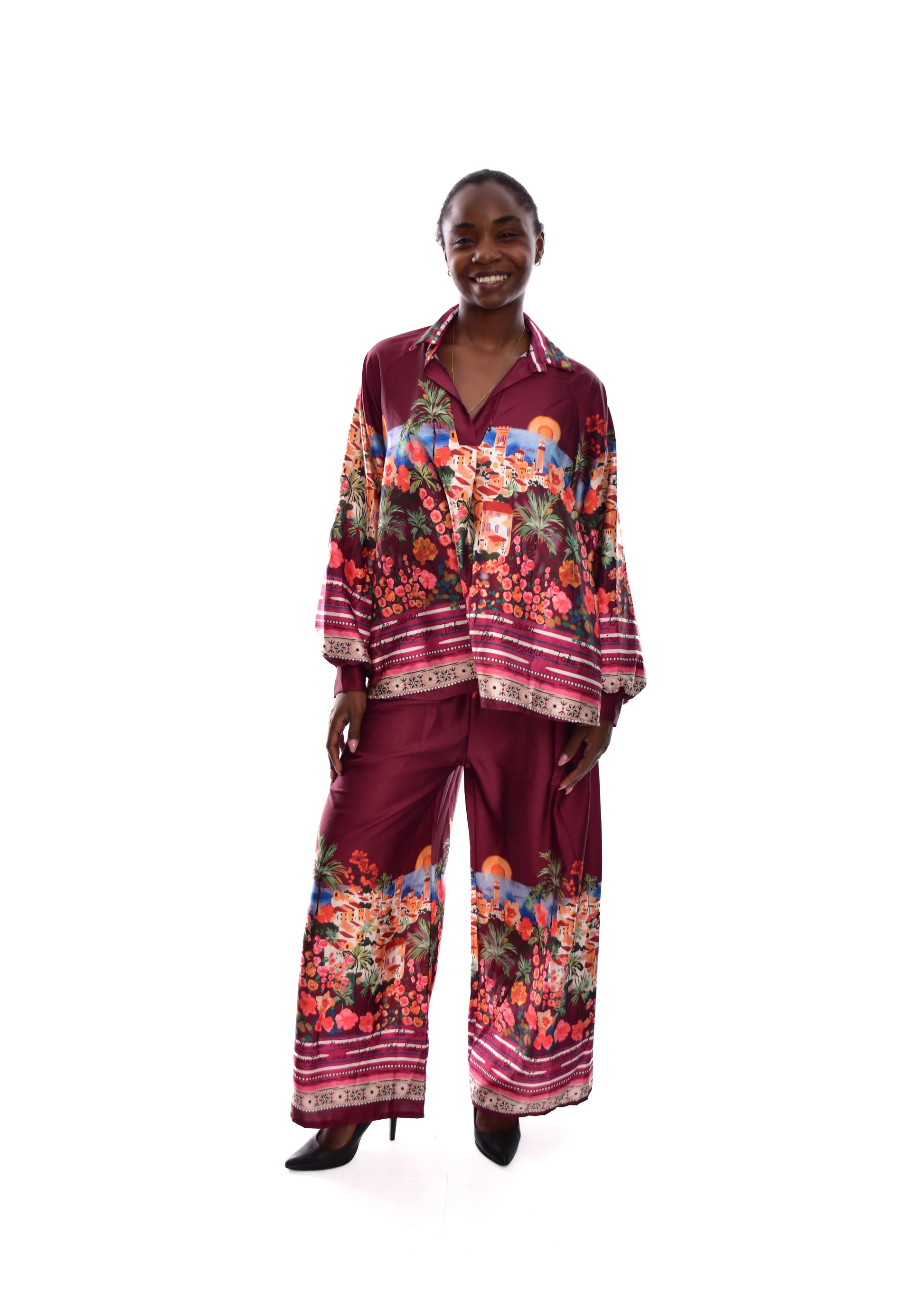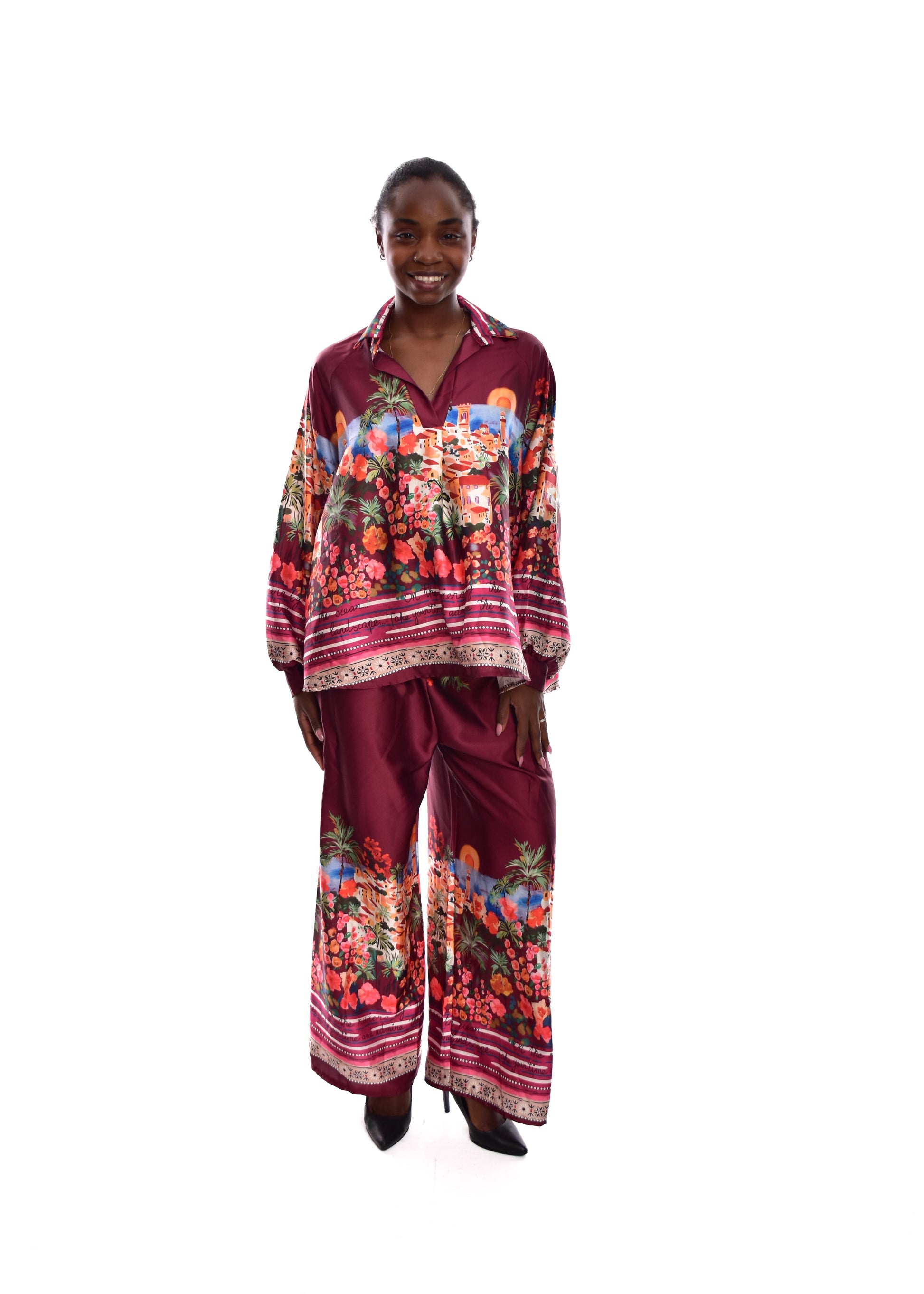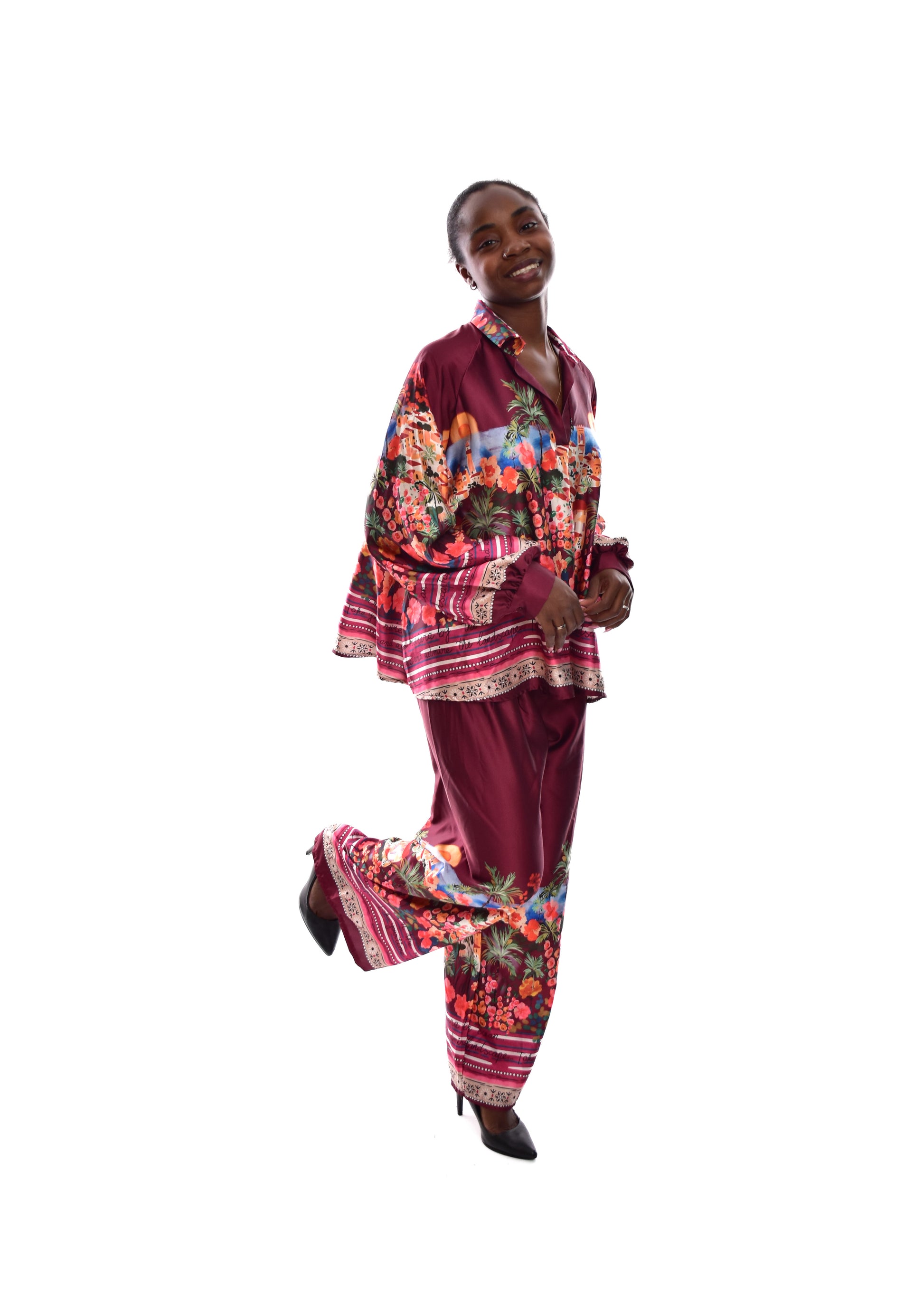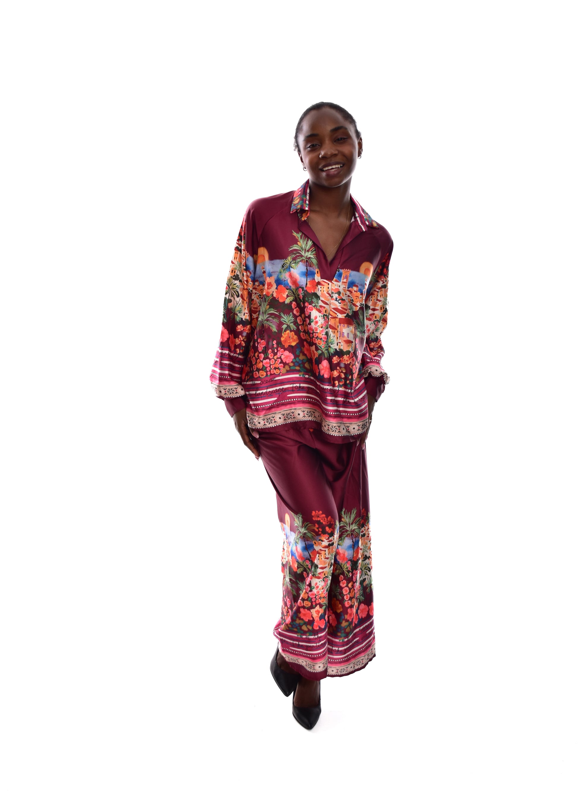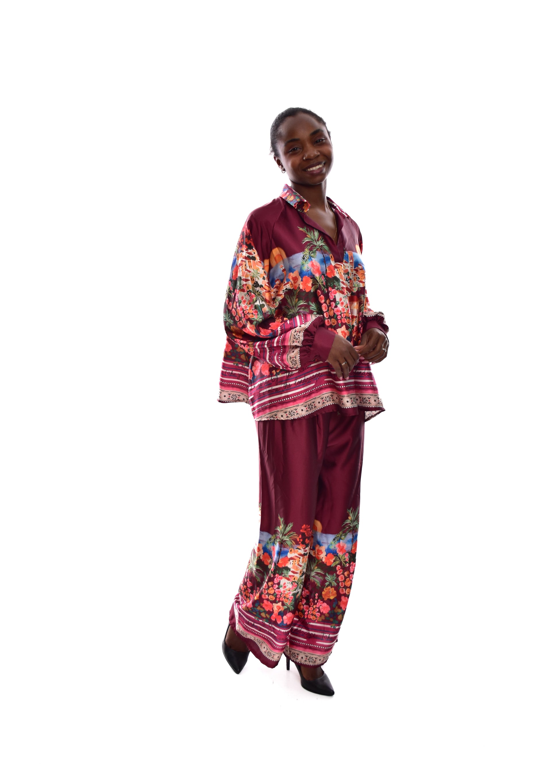 Conjunto de Blusa + pantalón.El pantalón lleva goma en la cintura. Este modelo está disponible en talla única, en este caso es apto hasta una talla 44.