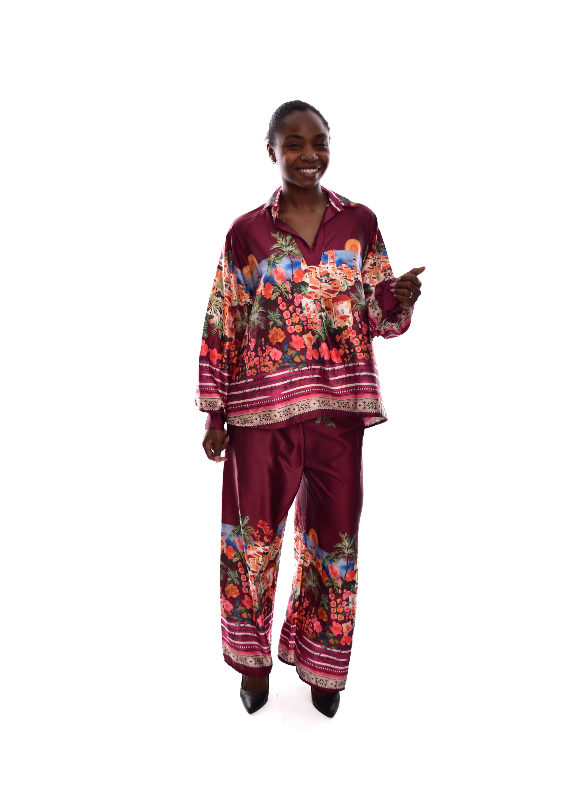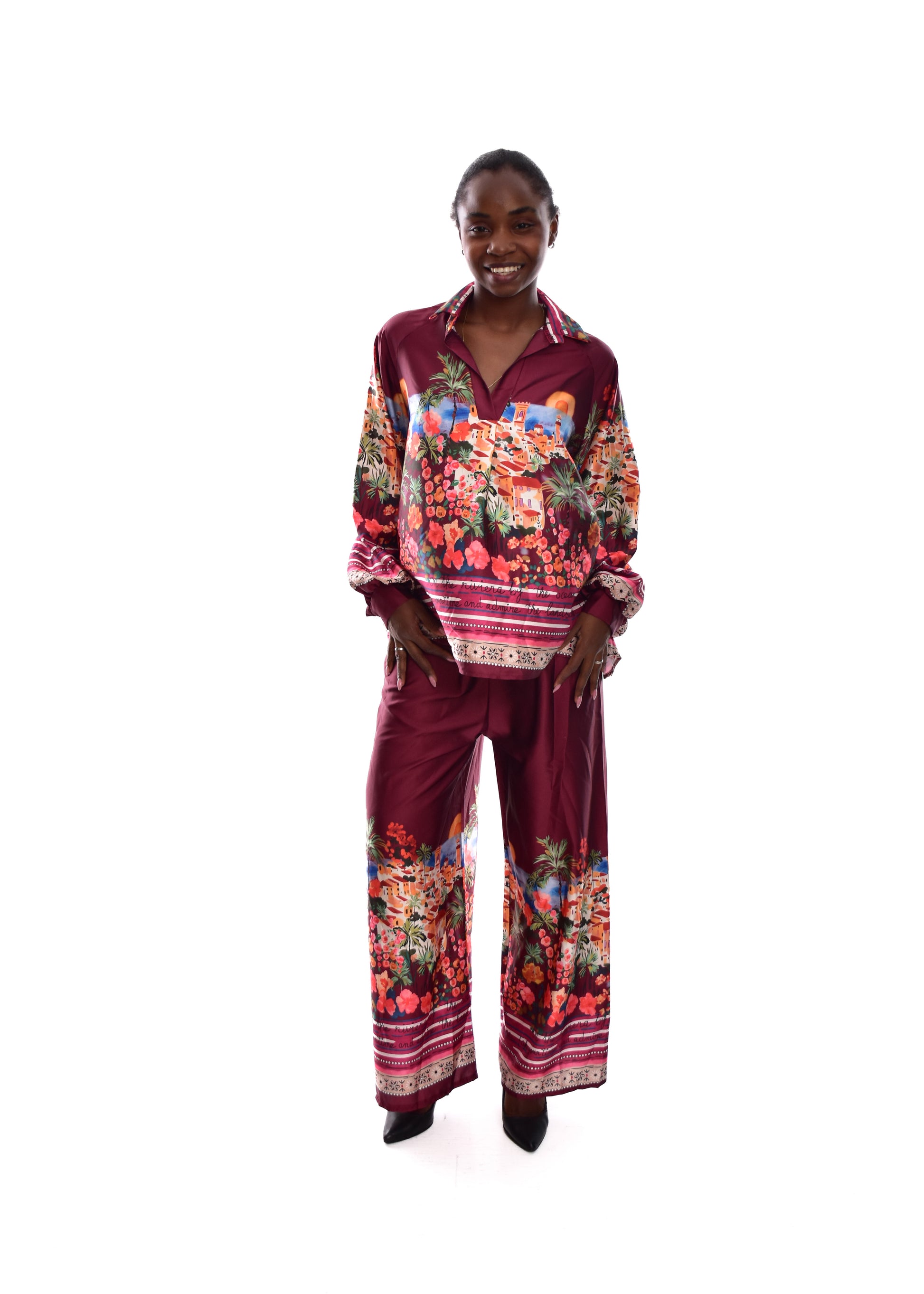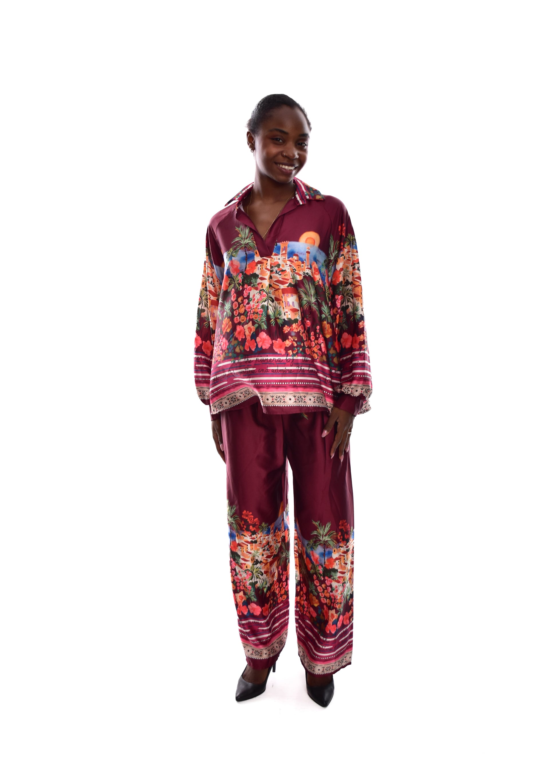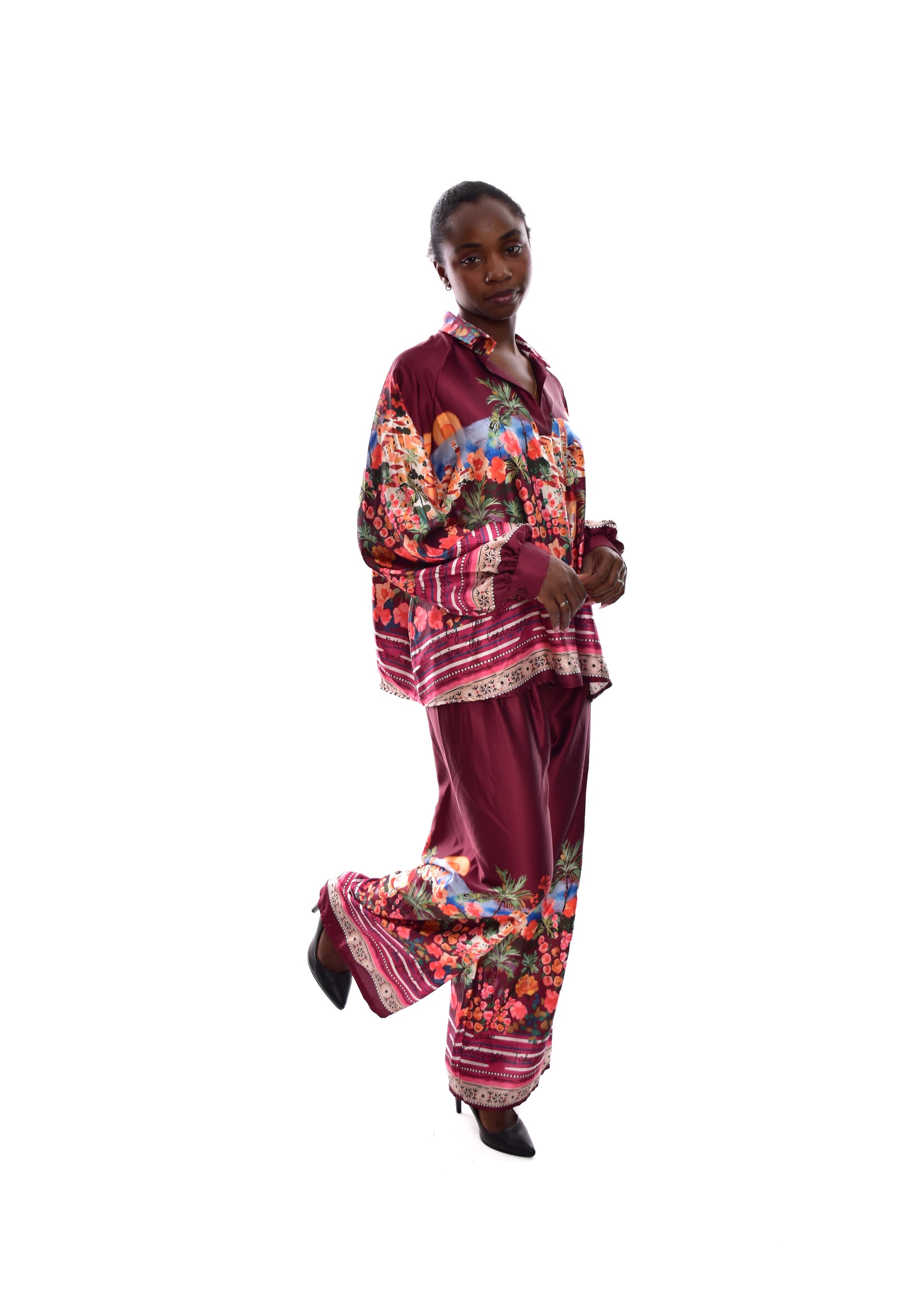 Conjunto de Blusa + pantalón.El pantalón lleva goma en la cintura. Este modelo está disponible en talla única, en este caso es apto hasta una talla 44.