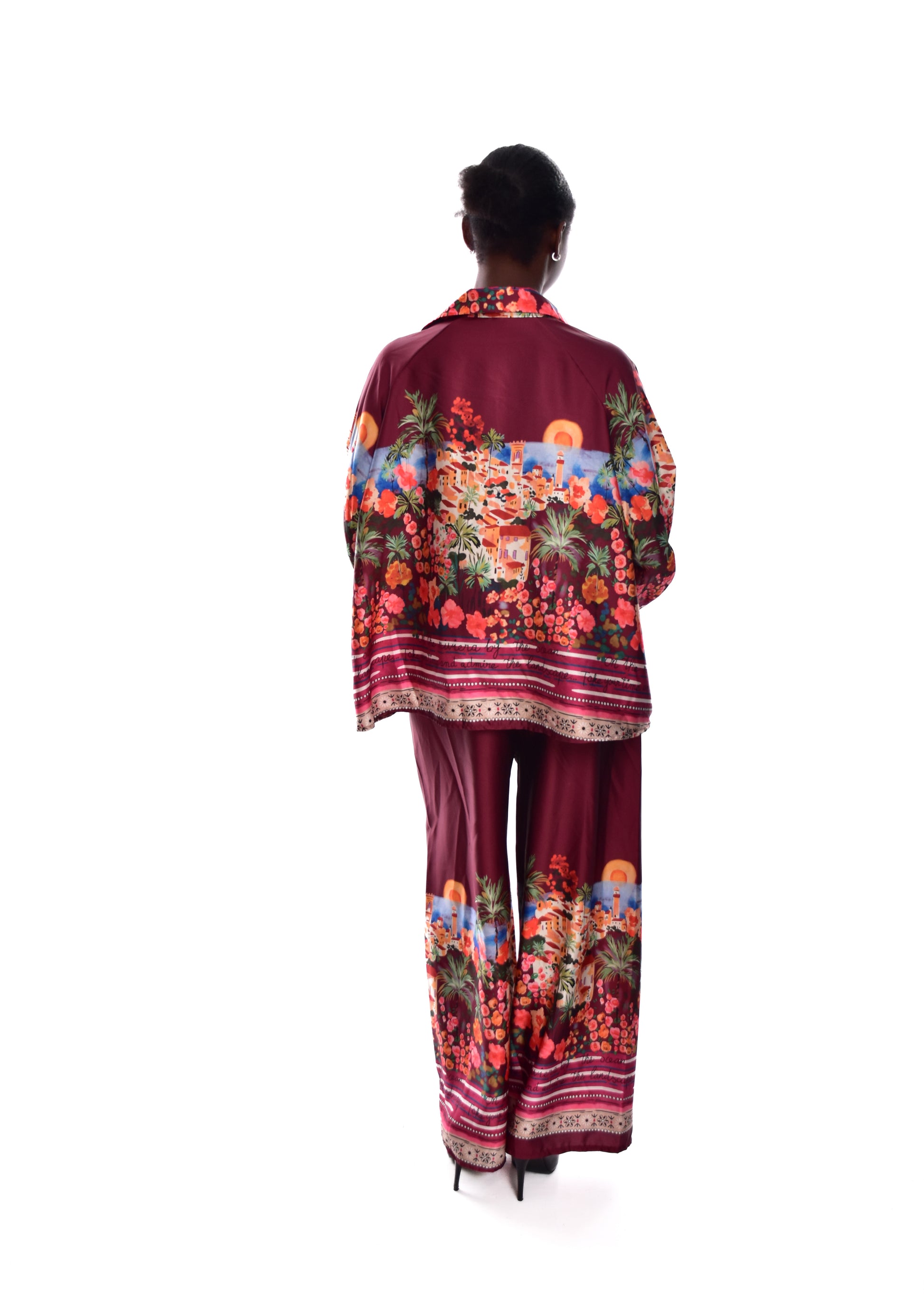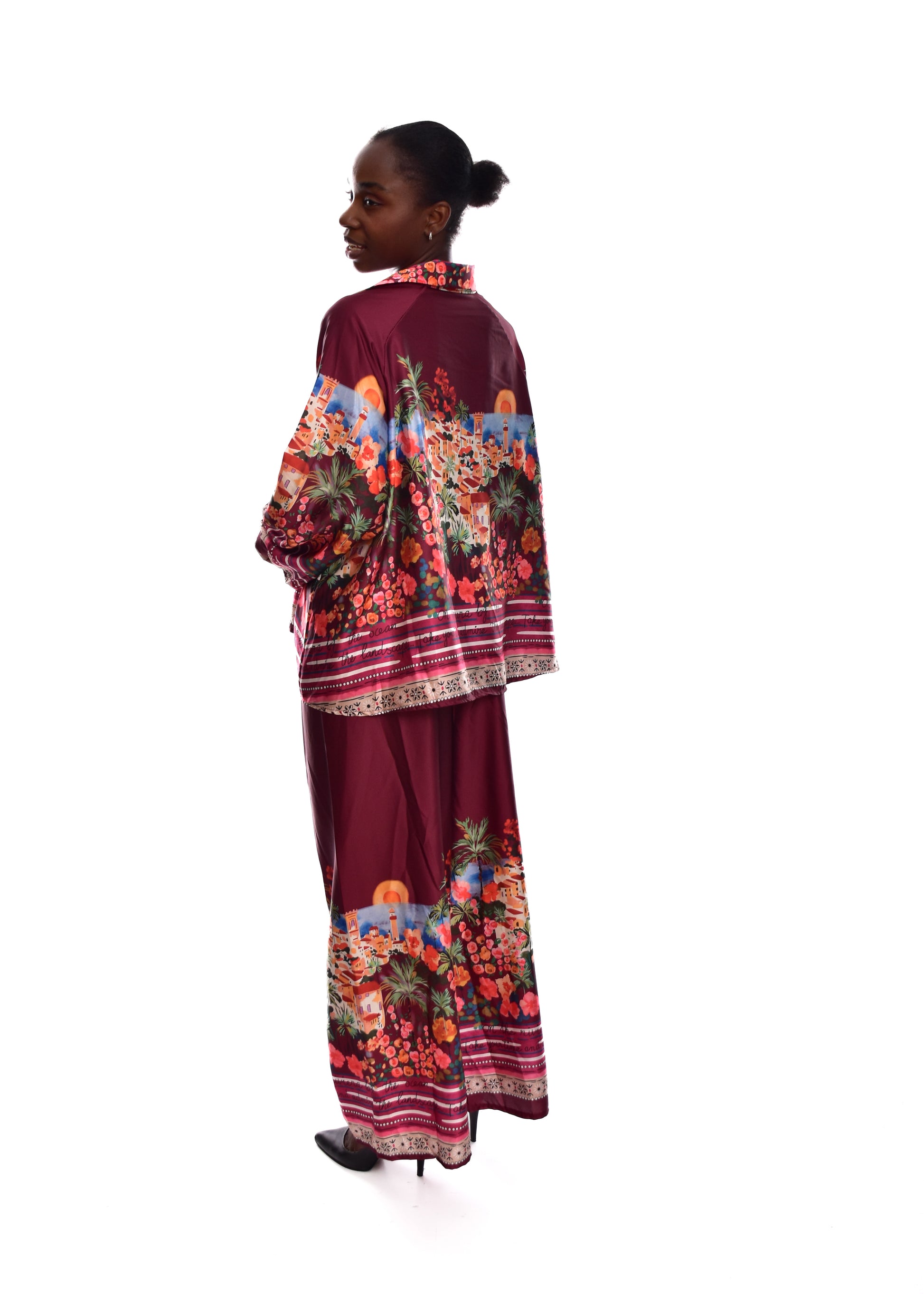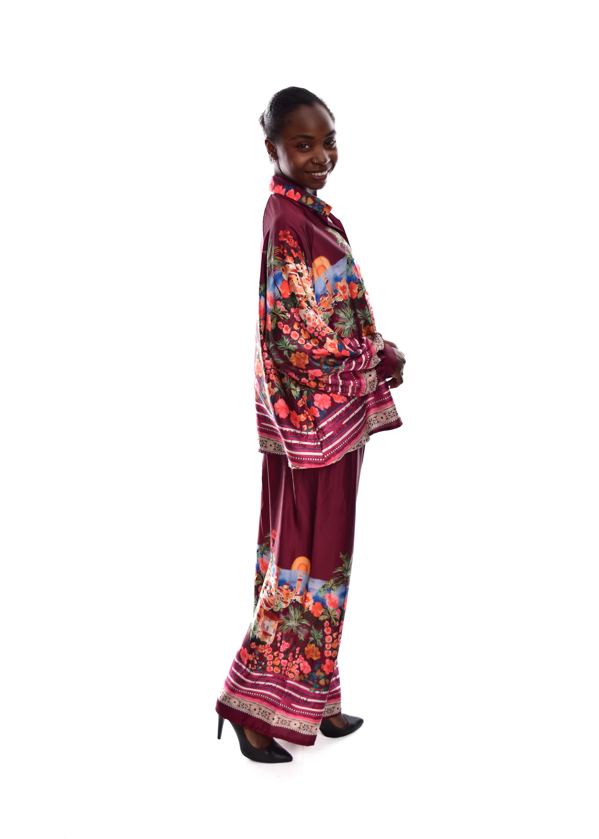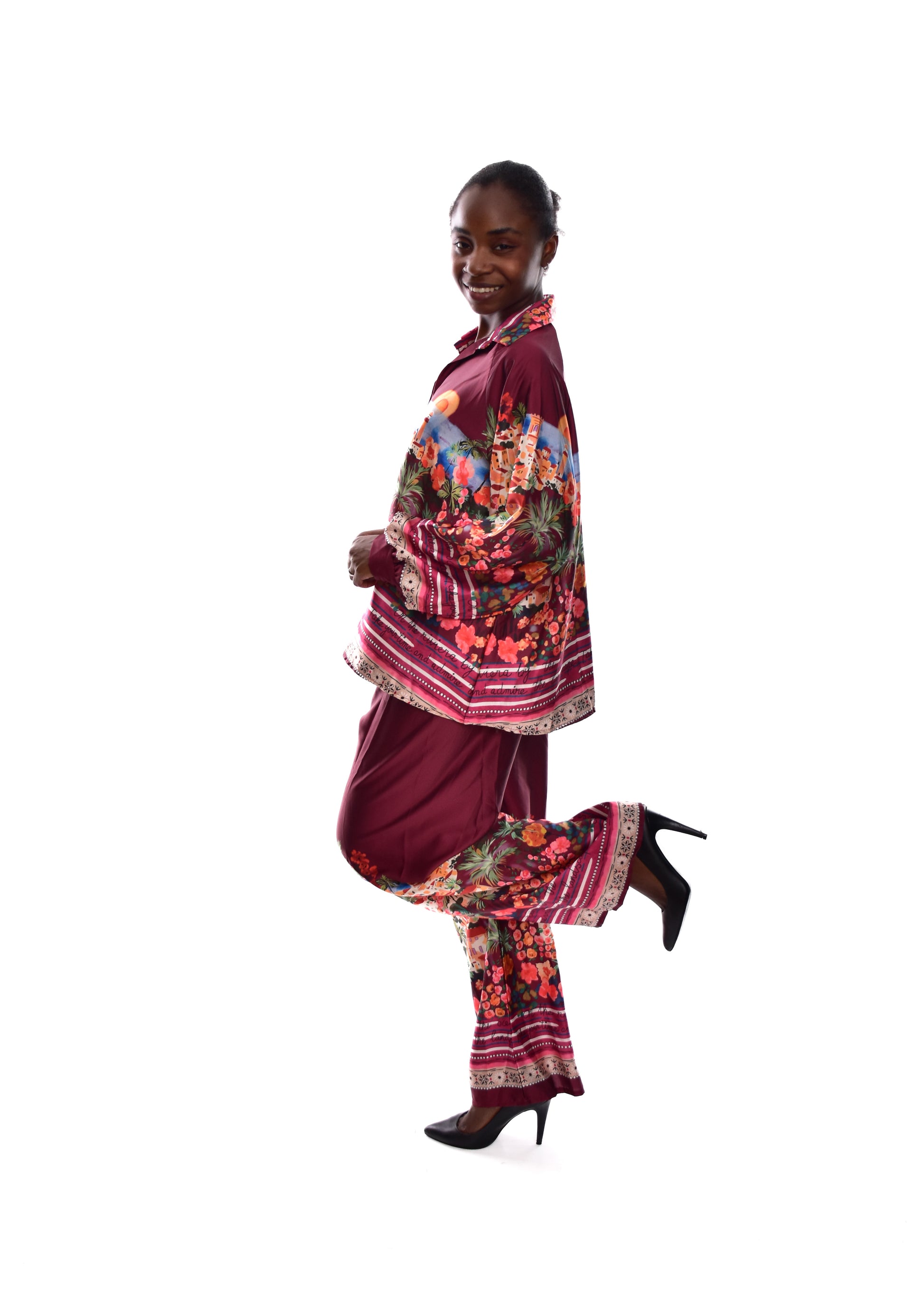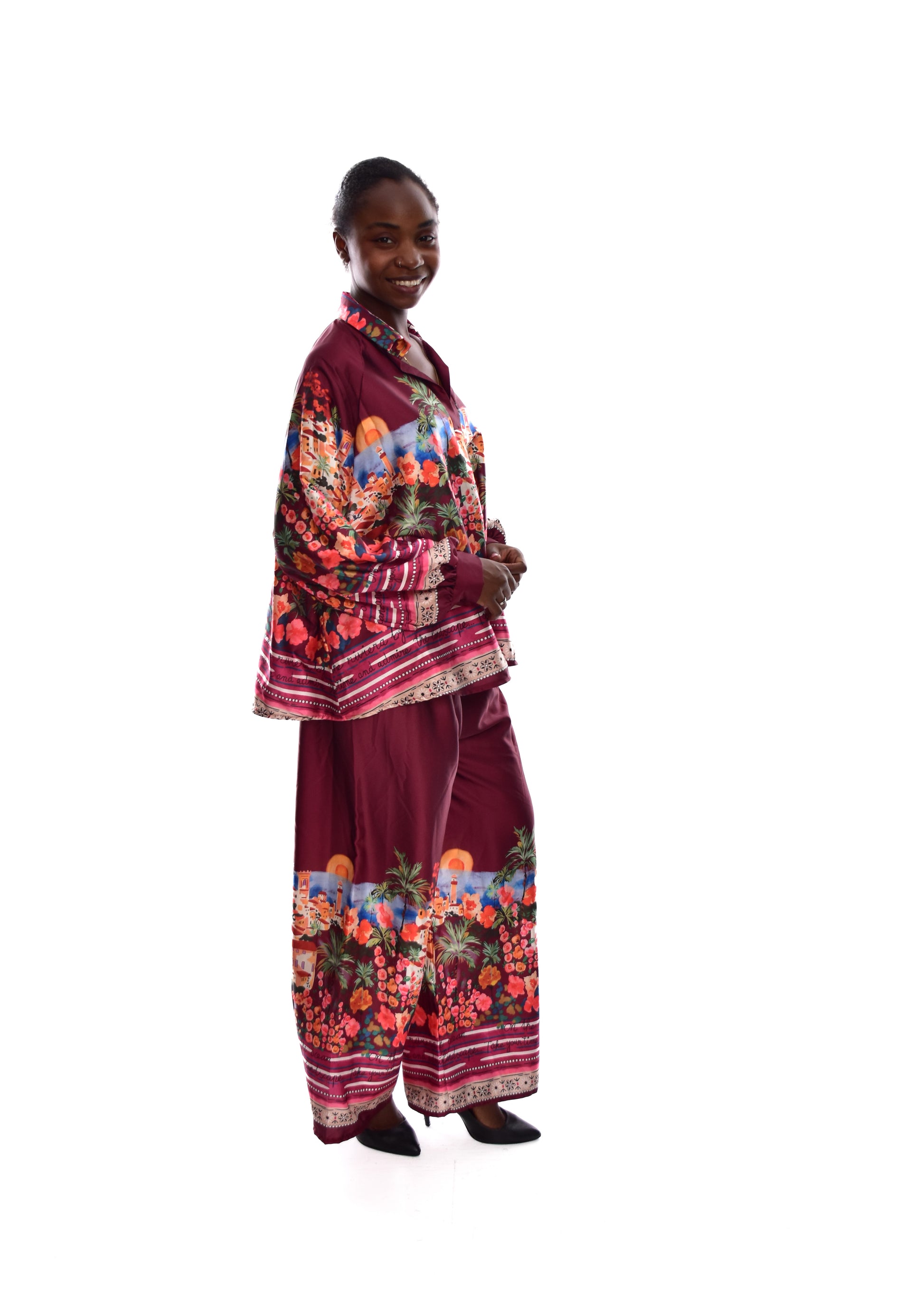 Conjunto de Blusa + pantalón.El pantalón lleva goma en la cintura. Este modelo está disponible en talla única, en este caso es apto hasta una talla 44.