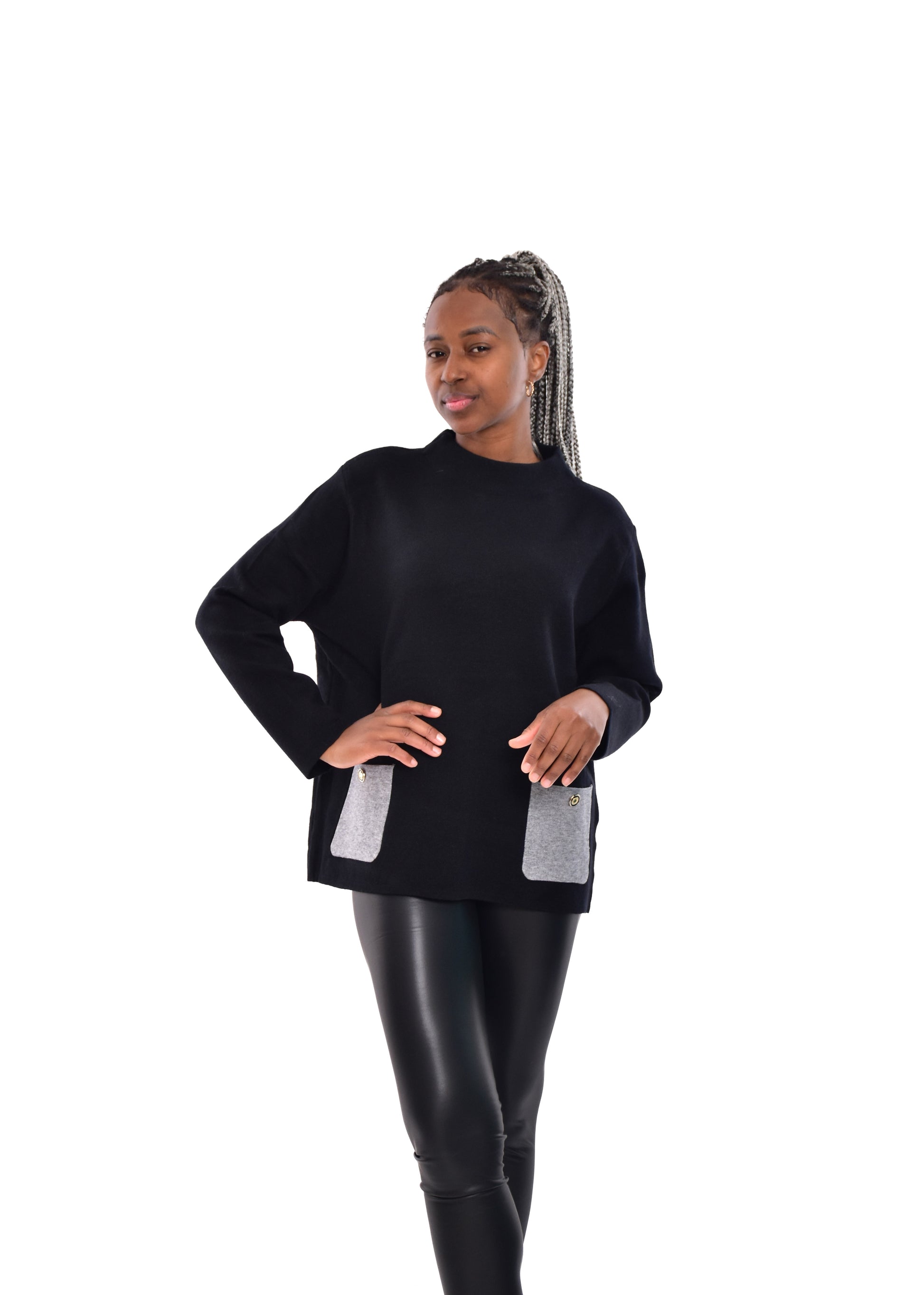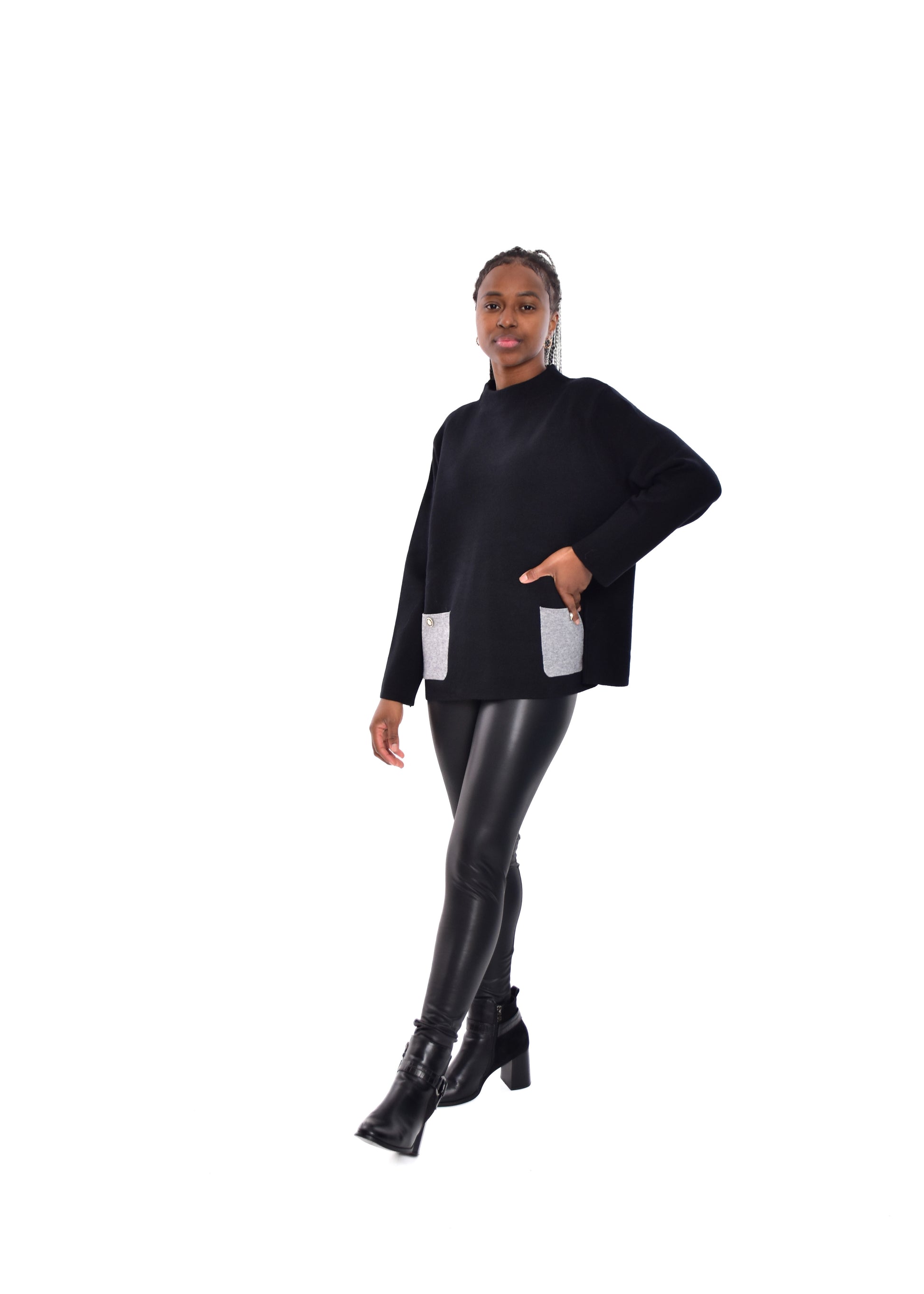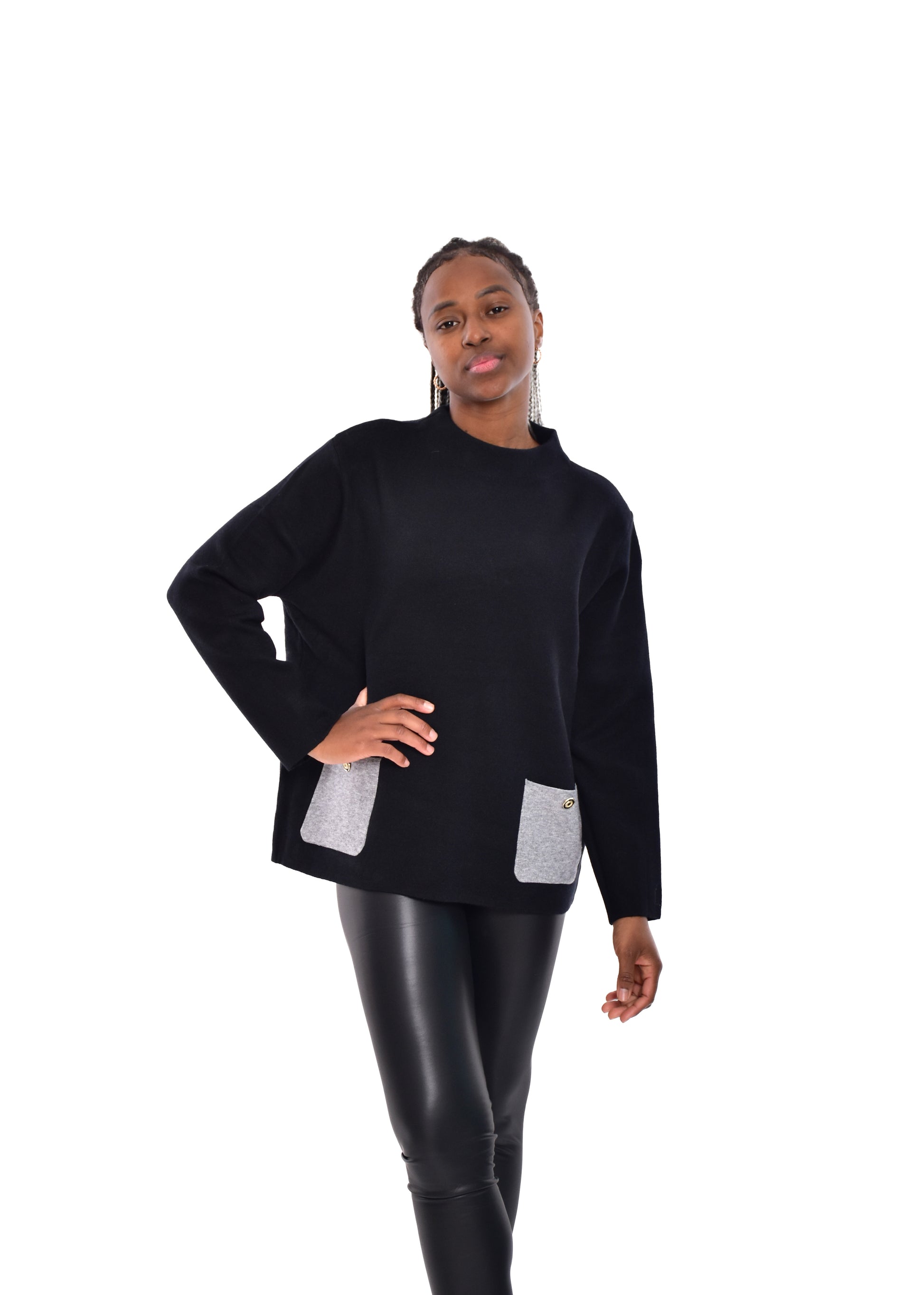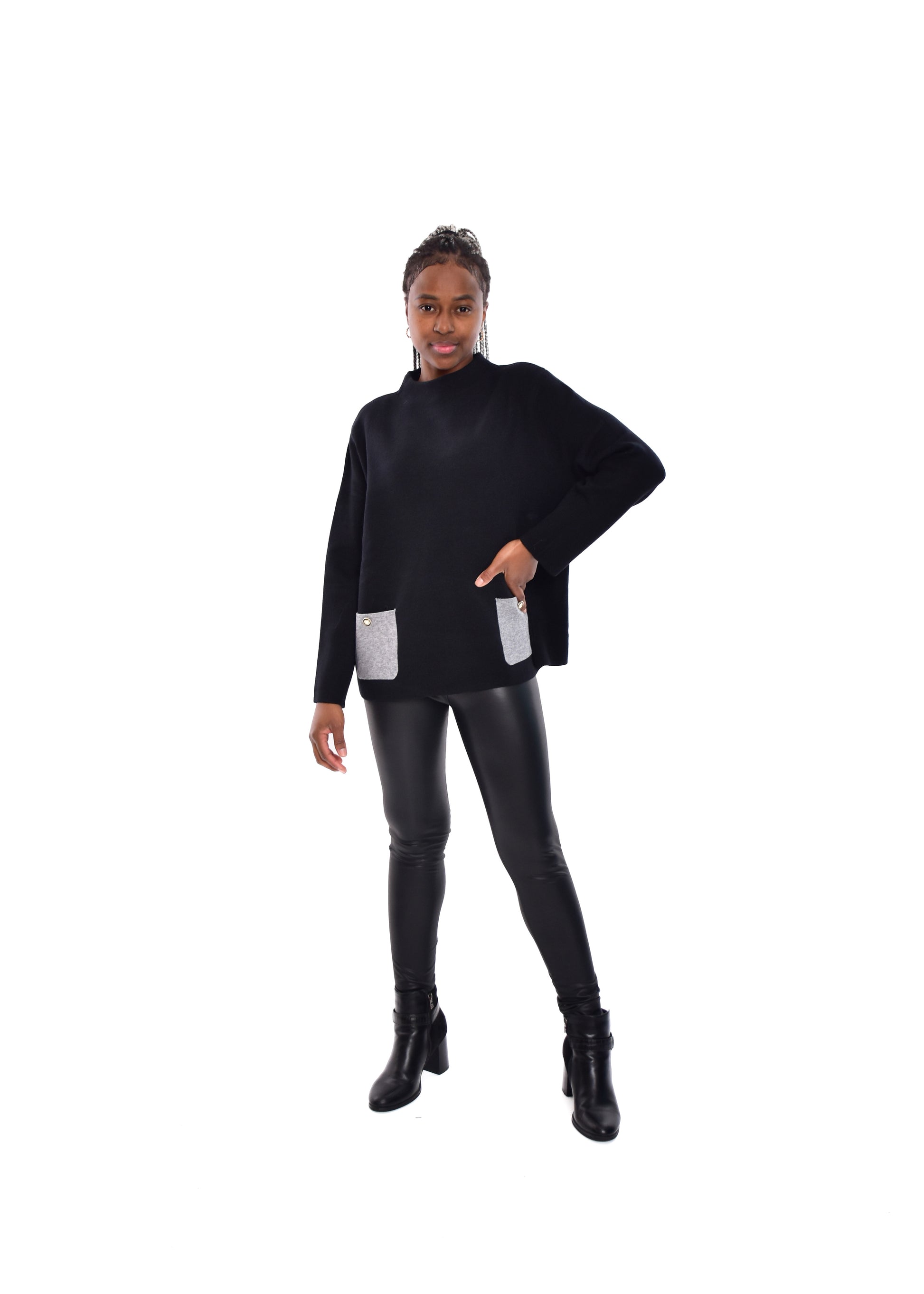 Jersey grueso. Cuello chimenea. Bolsillos frontales.Esta prenda está disponible en talla única, en este caso es apto hasta una talla 44.