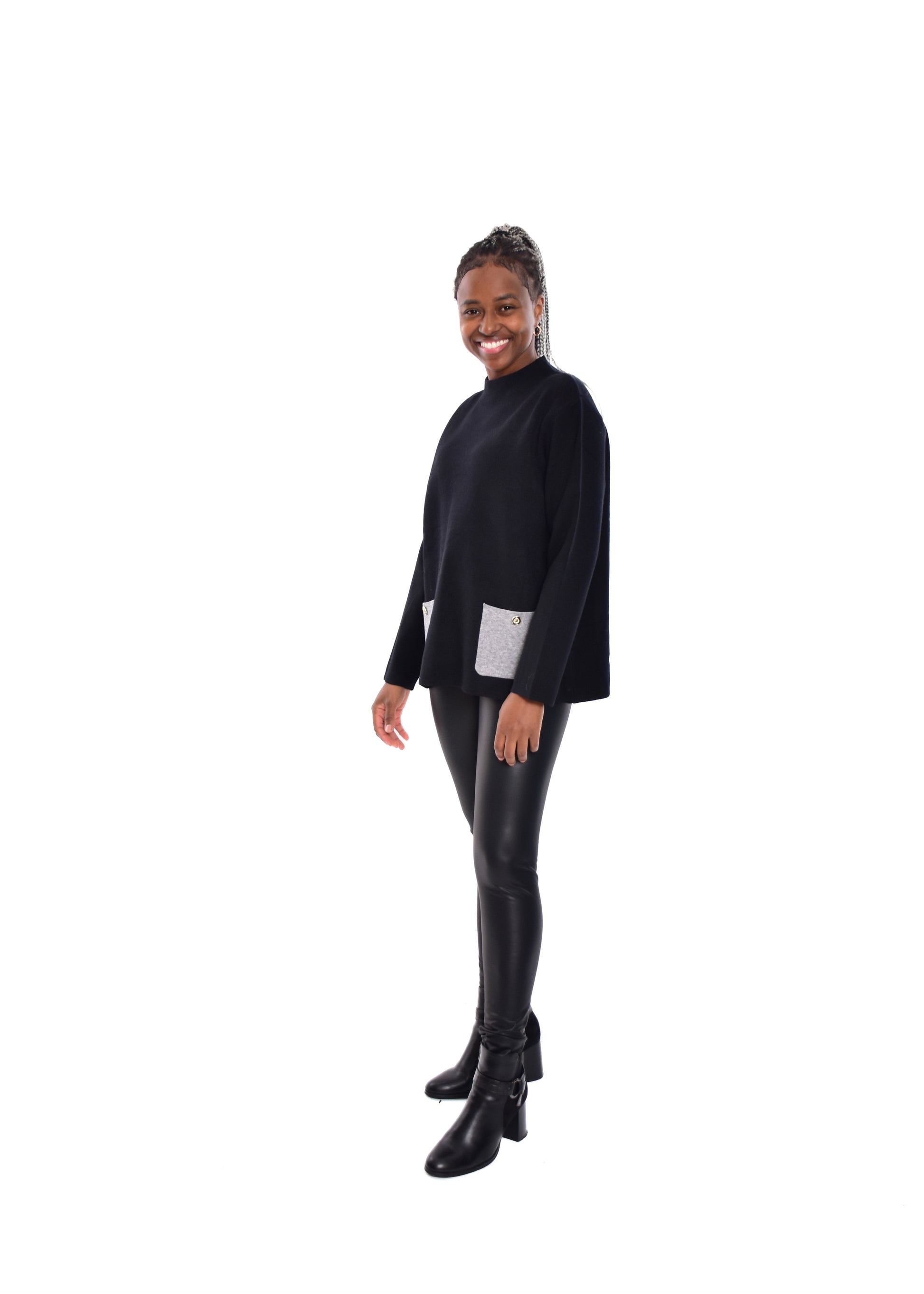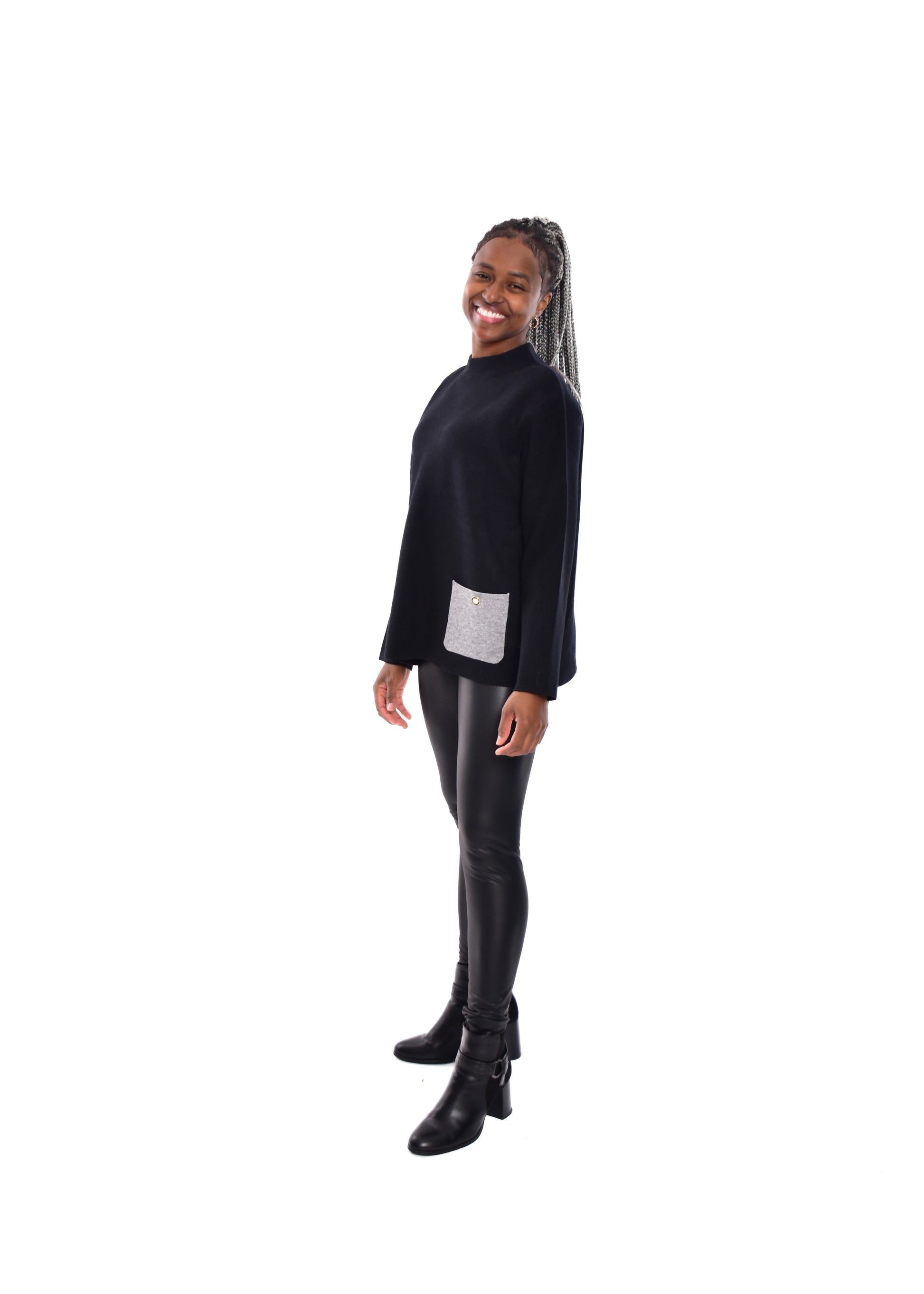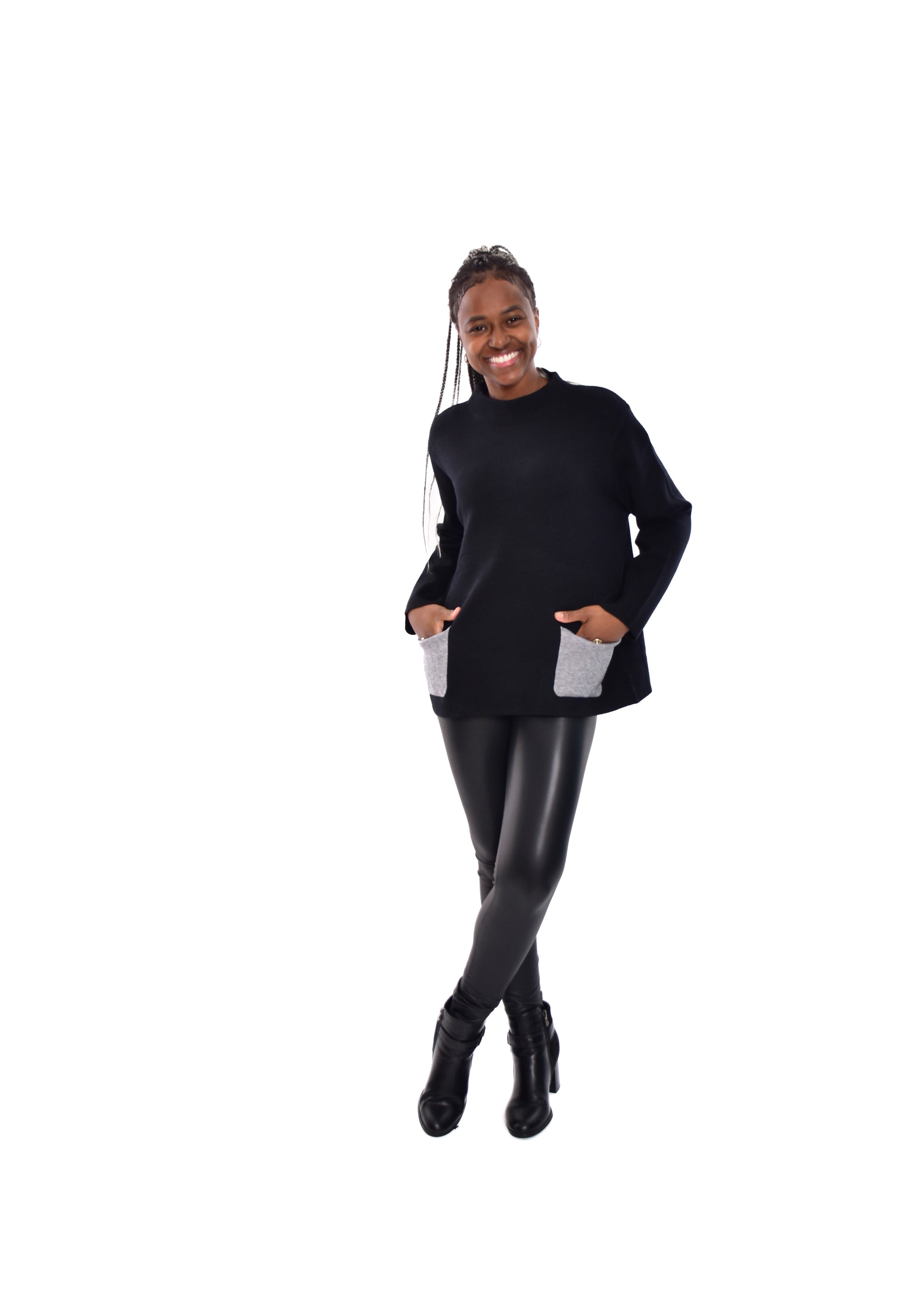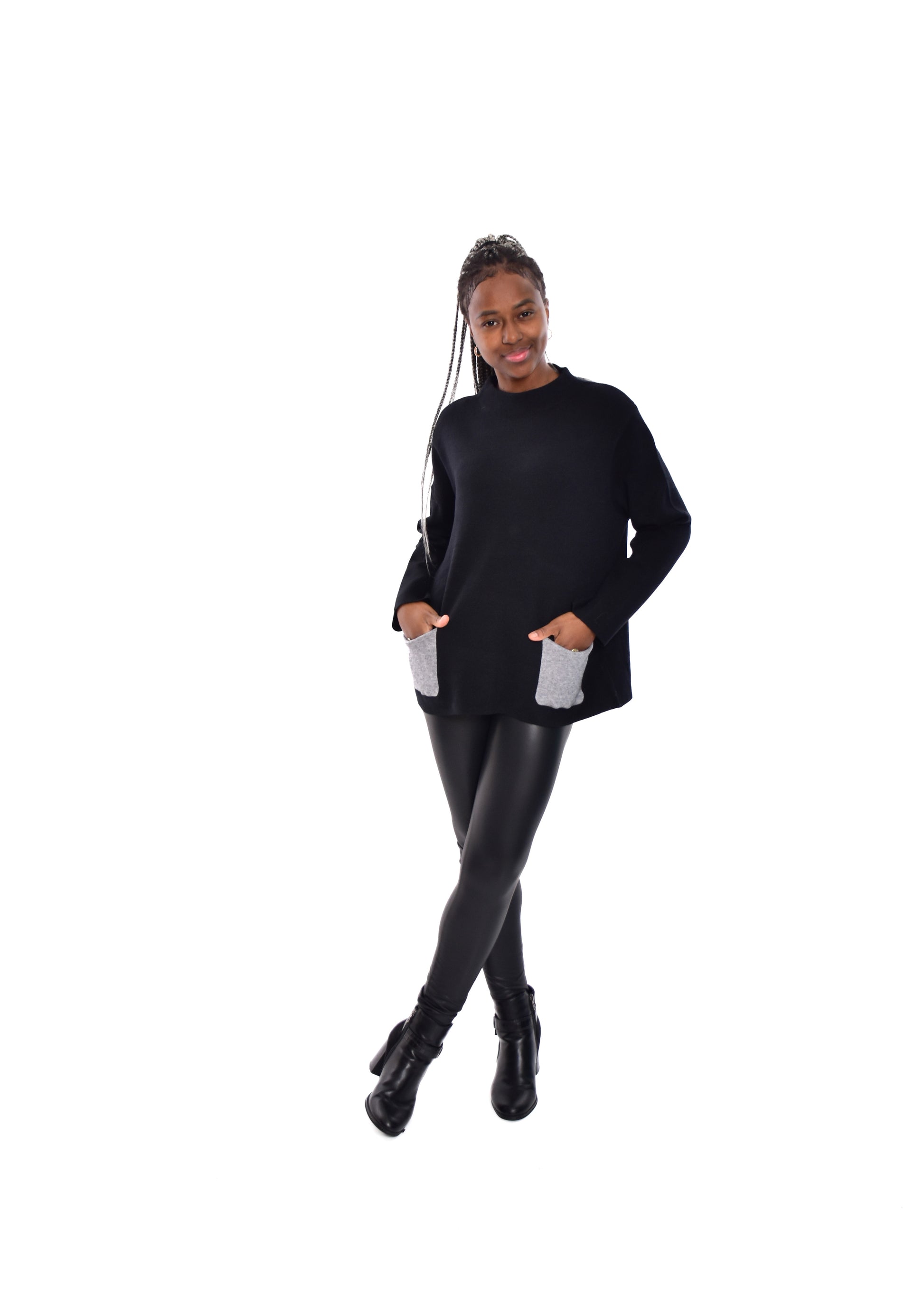 Jersey grueso. Cuello chimenea. Bolsillos frontales.Esta prenda está disponible en talla única, en este caso es apto hasta una talla 44.