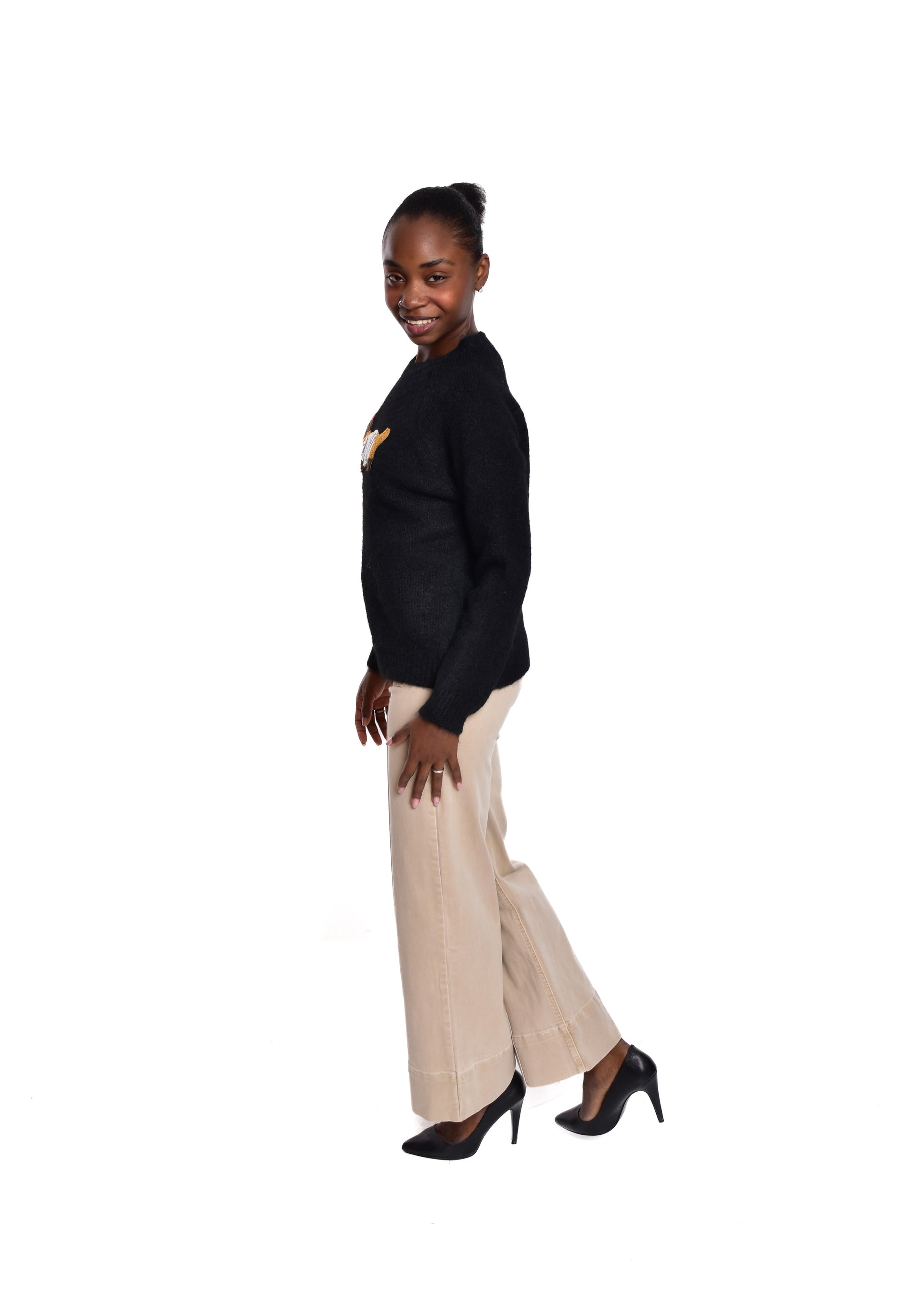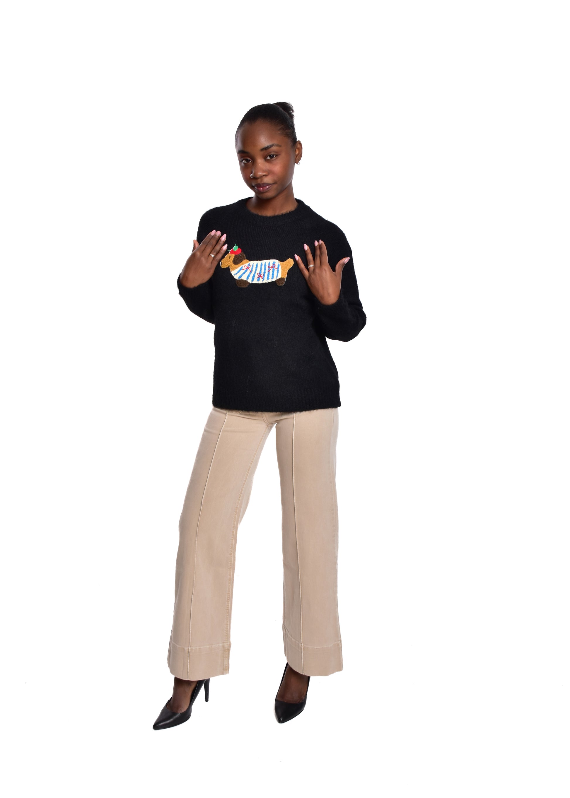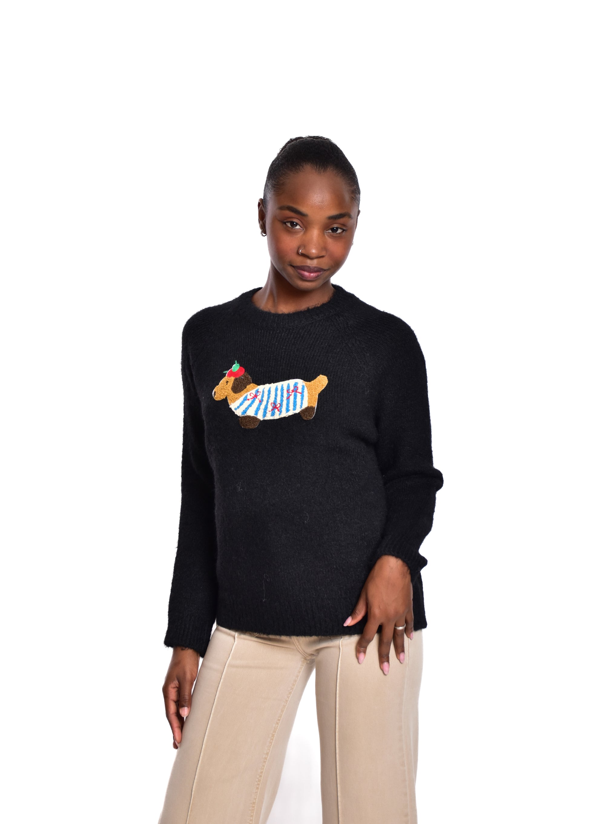 Jersey grueso con parche de perro. Este modelo está disponible en doble tallaje S/M y L/XL , en este caso es apto hasta una talla 42.