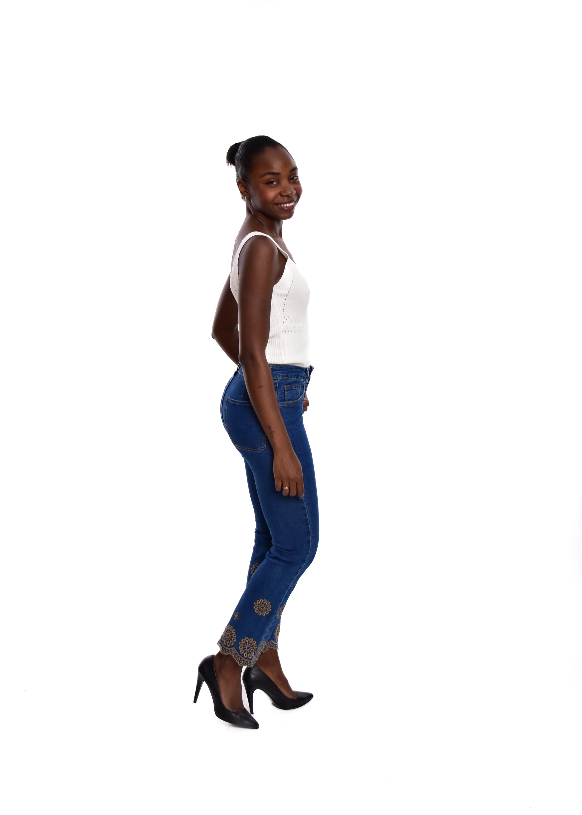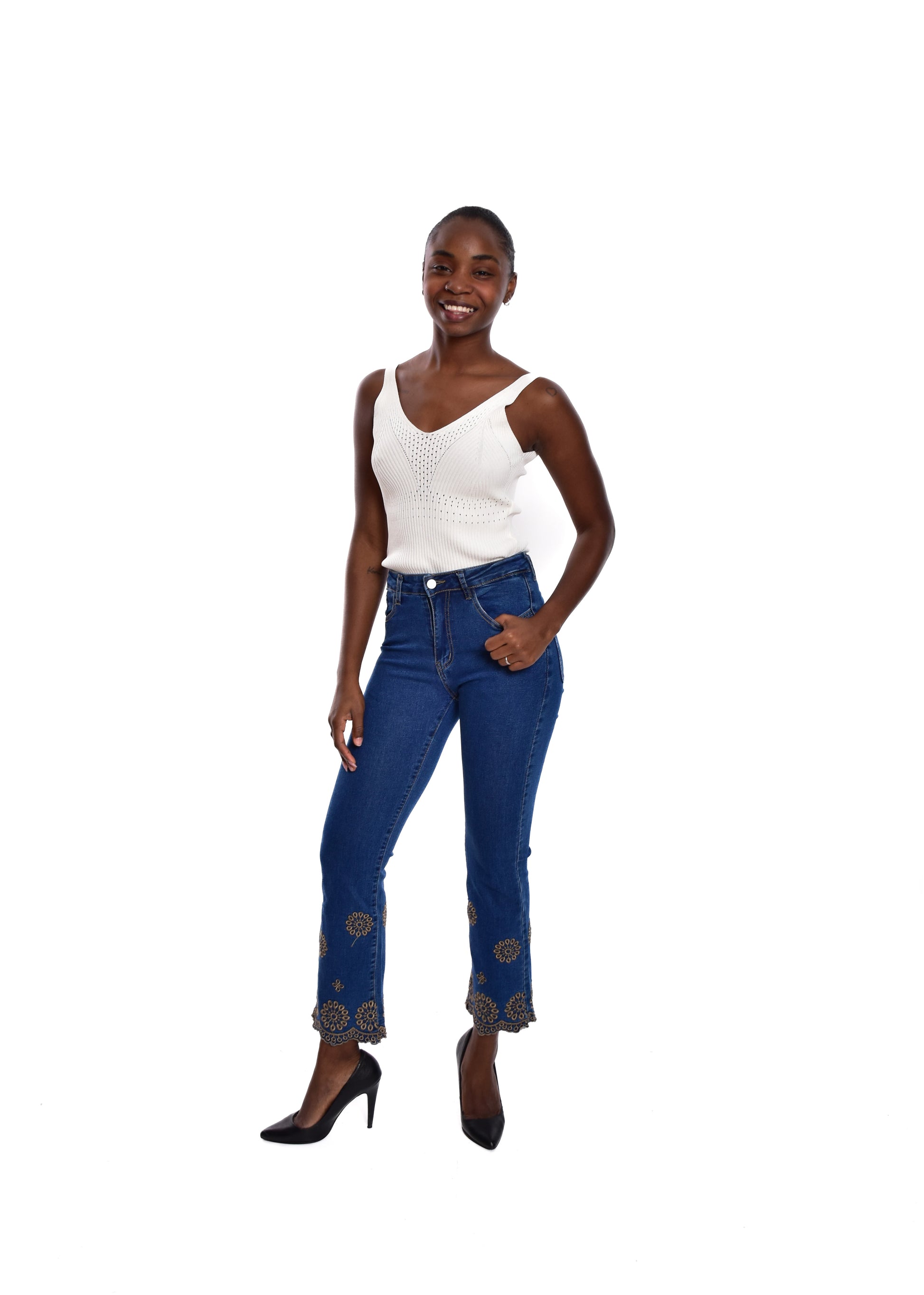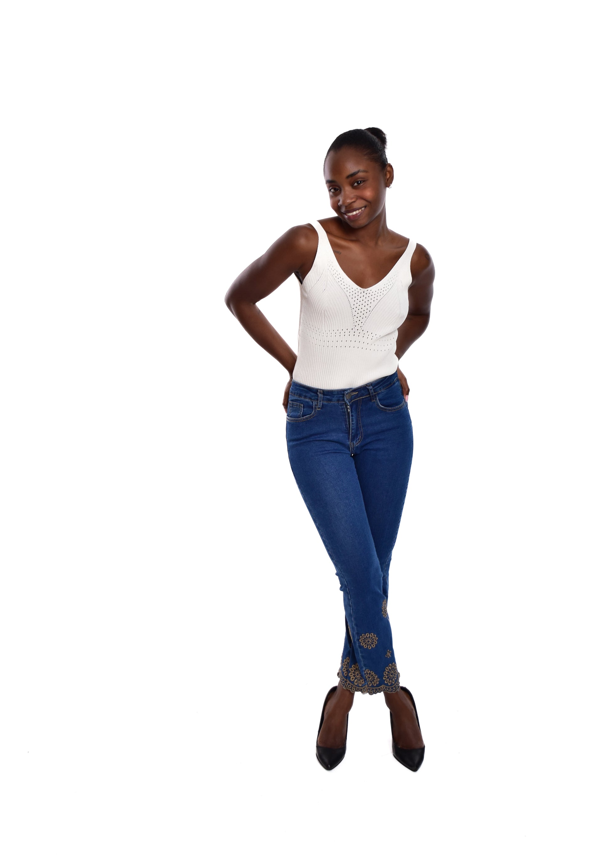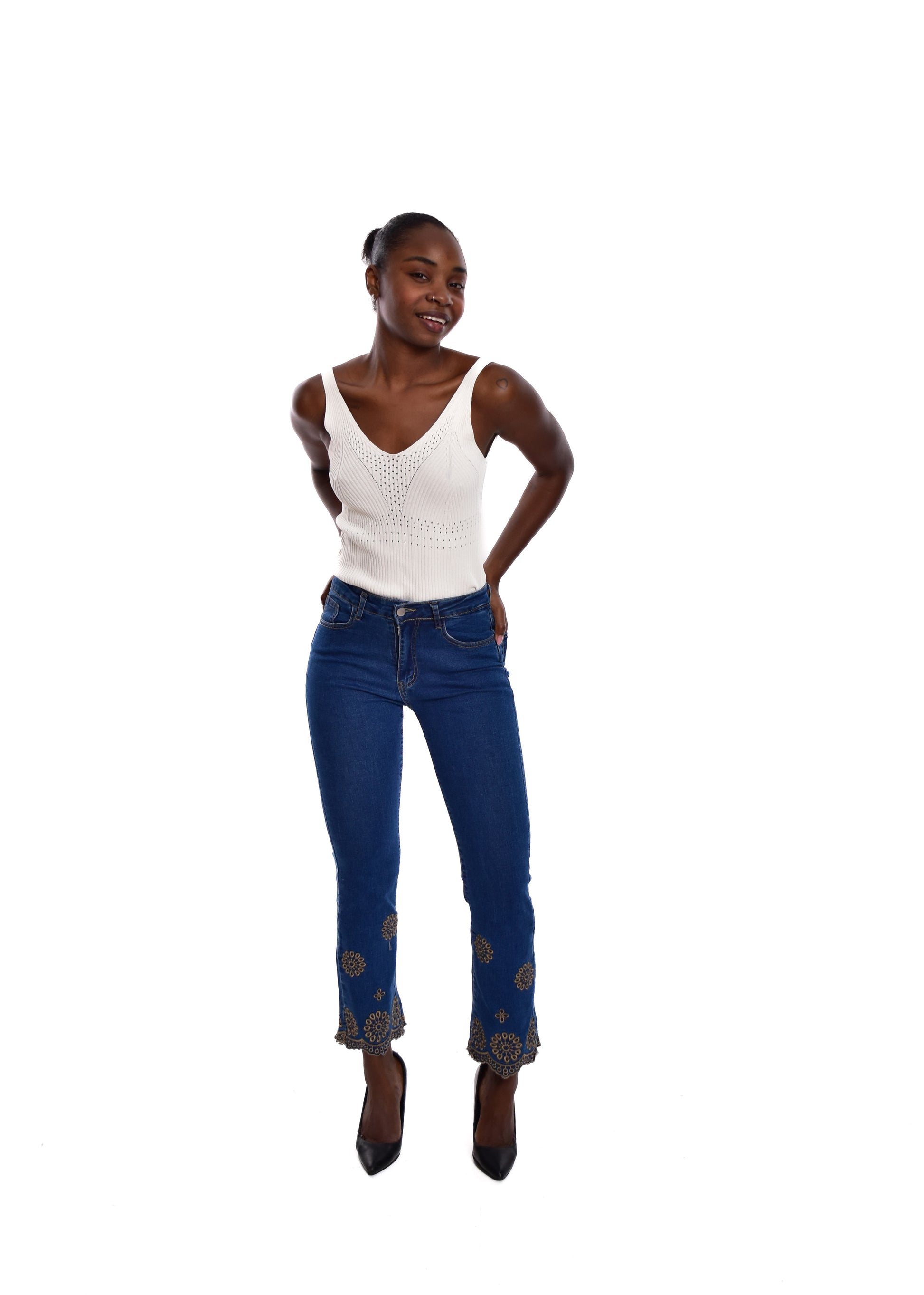 Pantalón acampado con bordados. Esta prenda está disponible de la talla XS a la XXL , en este caso es apta hasta una talla 44. Si lo deseas puedes comprobar las medidas exactas de la prenda en el apartado " Talla y Medidas"
