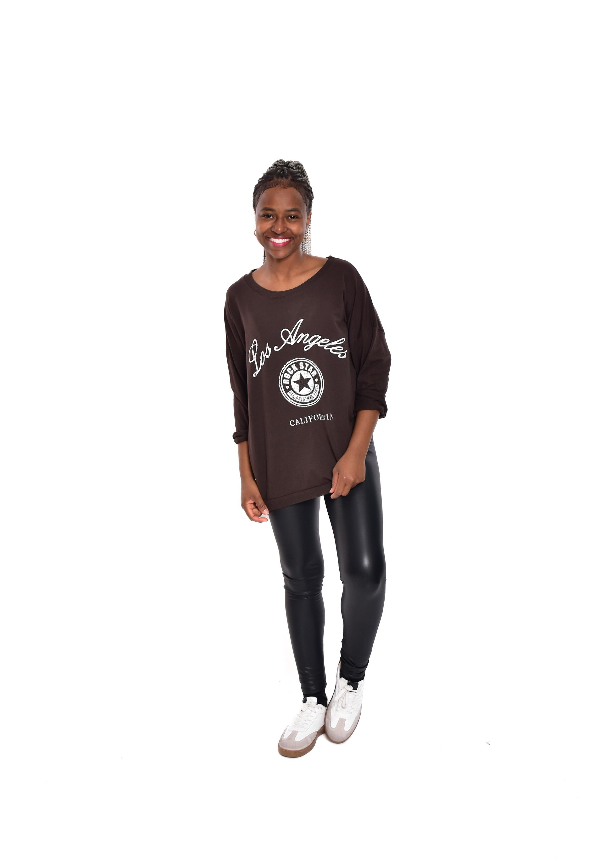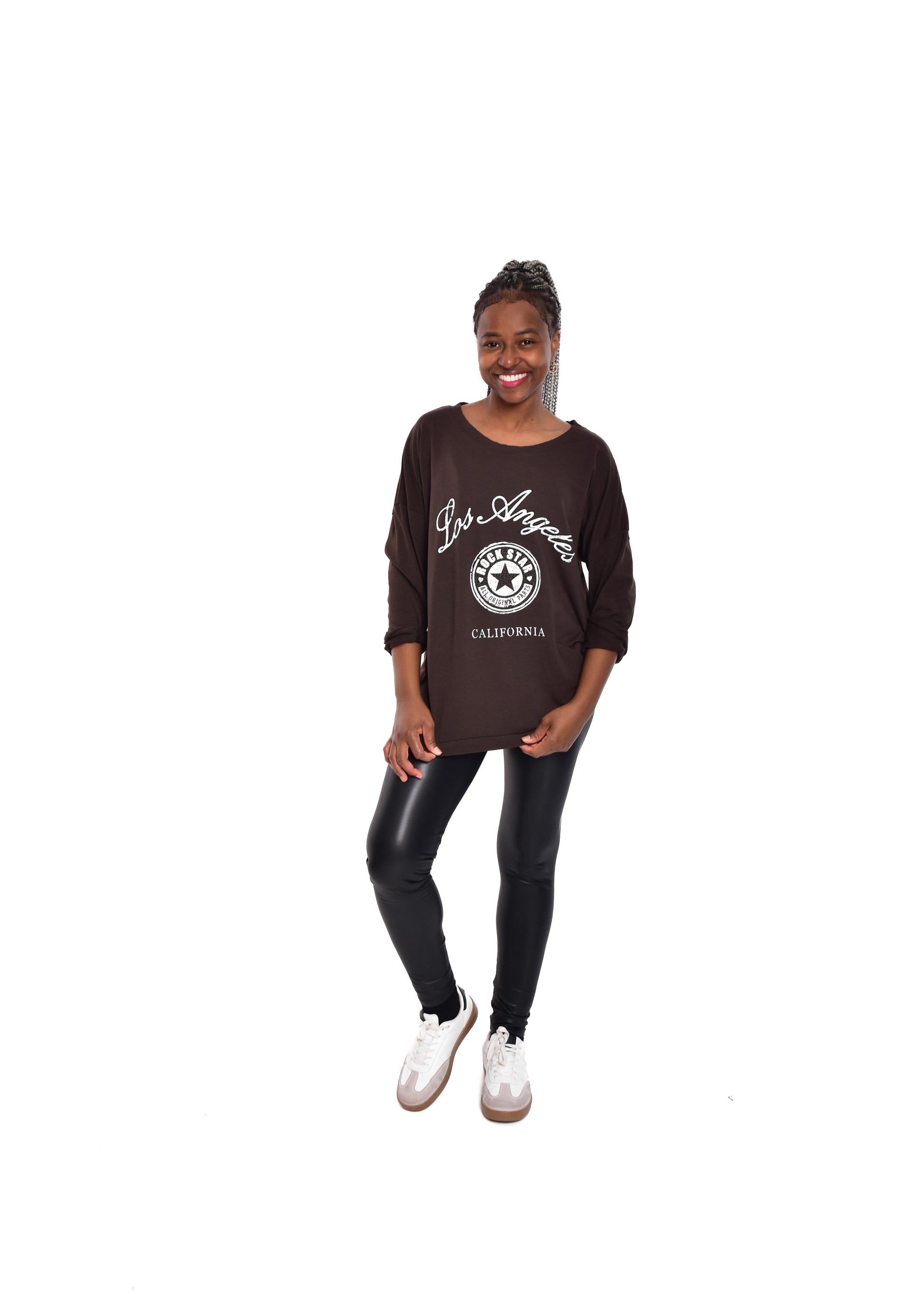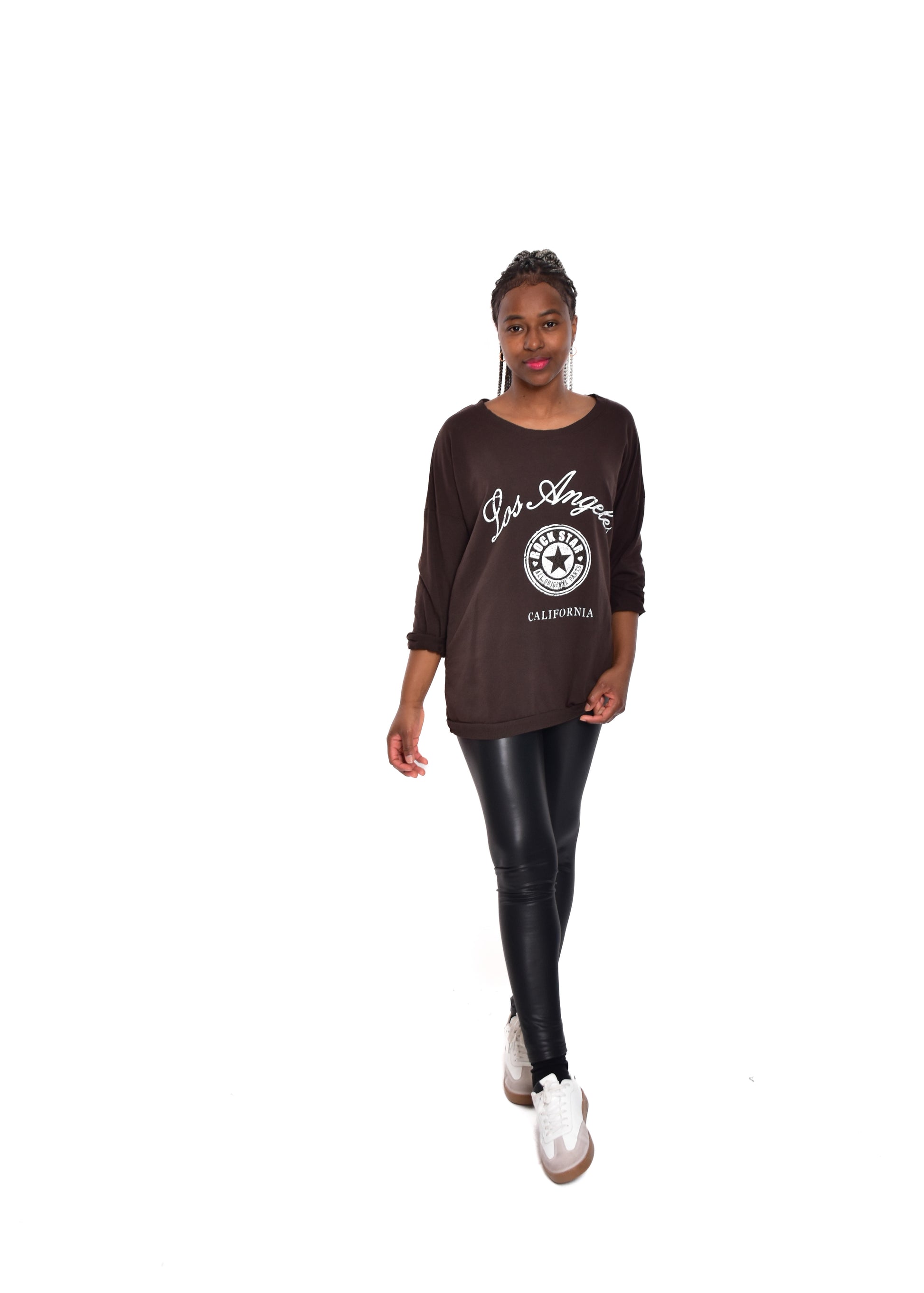 Sudadera de algodón finita. No lleva felpa interior. Multiestampada.Esta prenda está disponible en talla única, en este caso es apto hasta una talla 44.