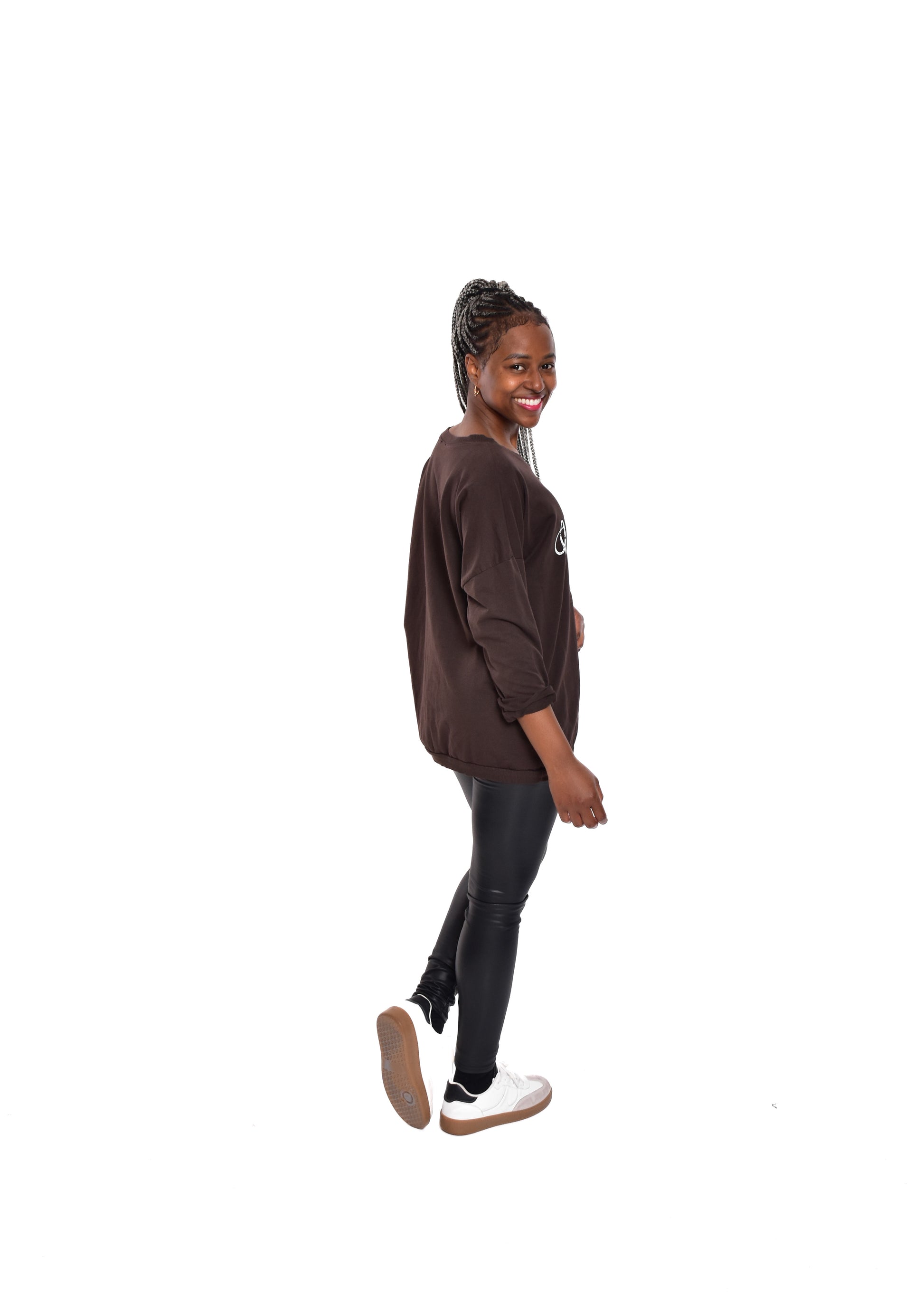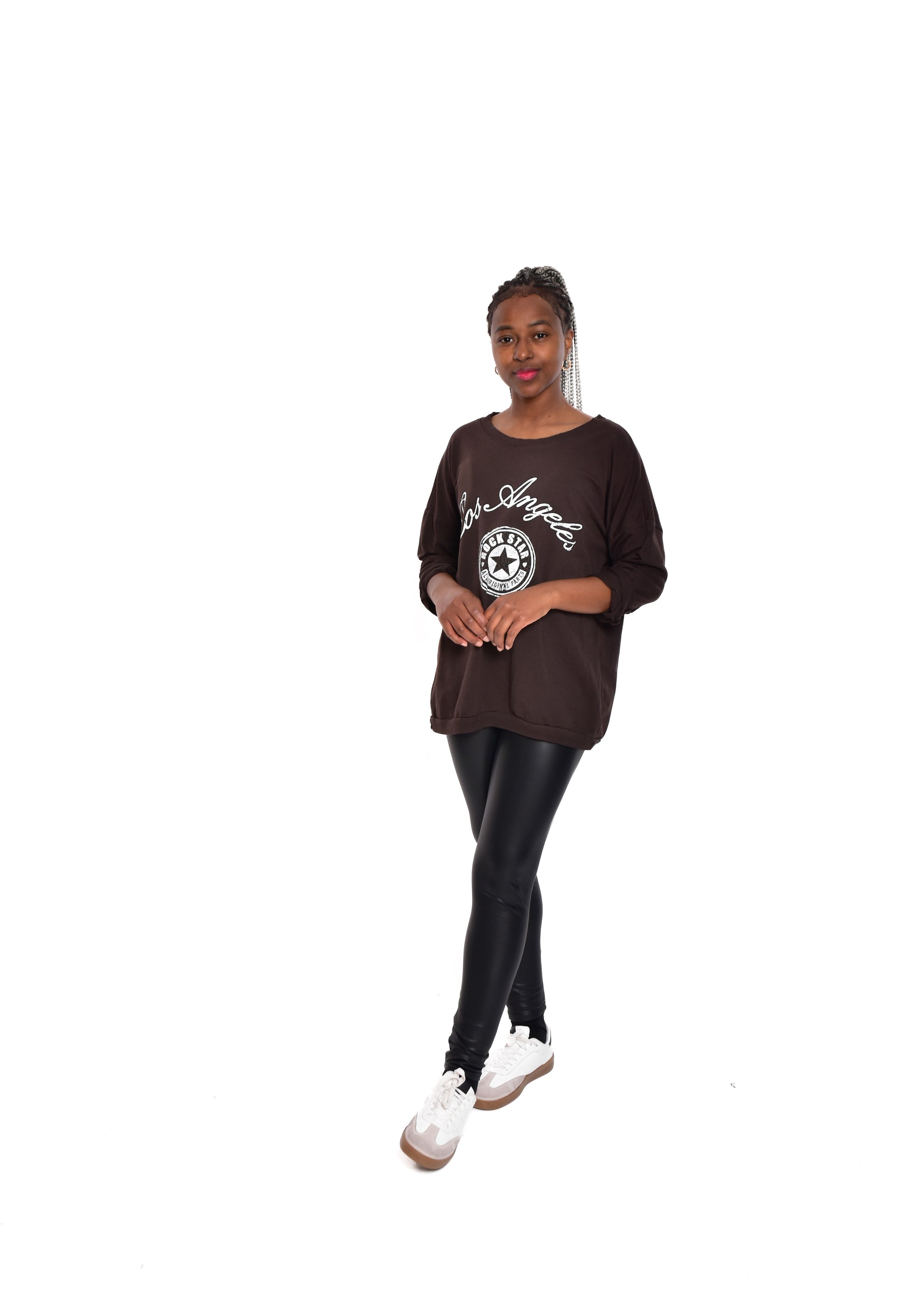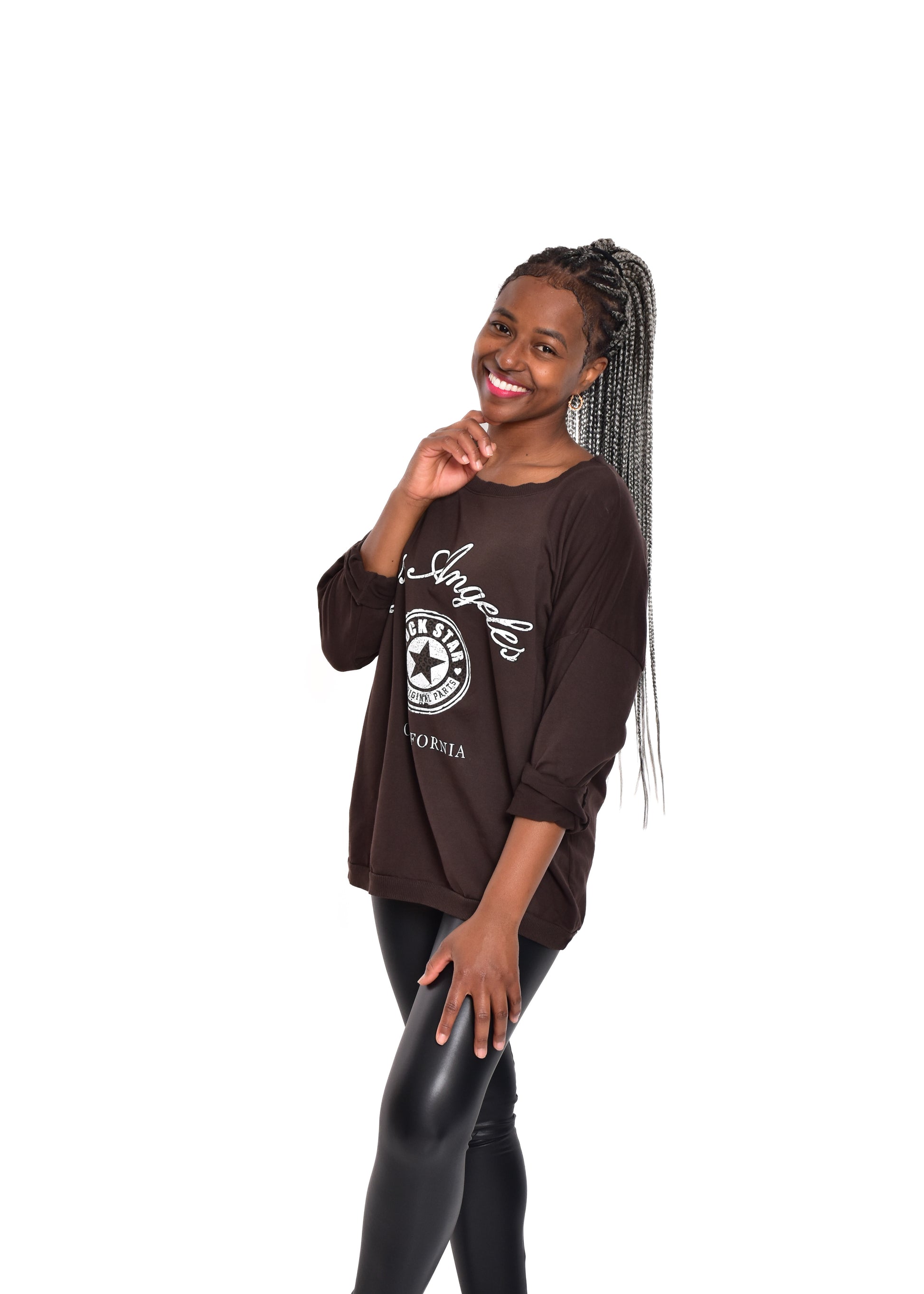 Sudadera de algodón finita. No lleva felpa interior. Multiestampada.Esta prenda está disponible en talla única, en este caso es apto hasta una talla 44.