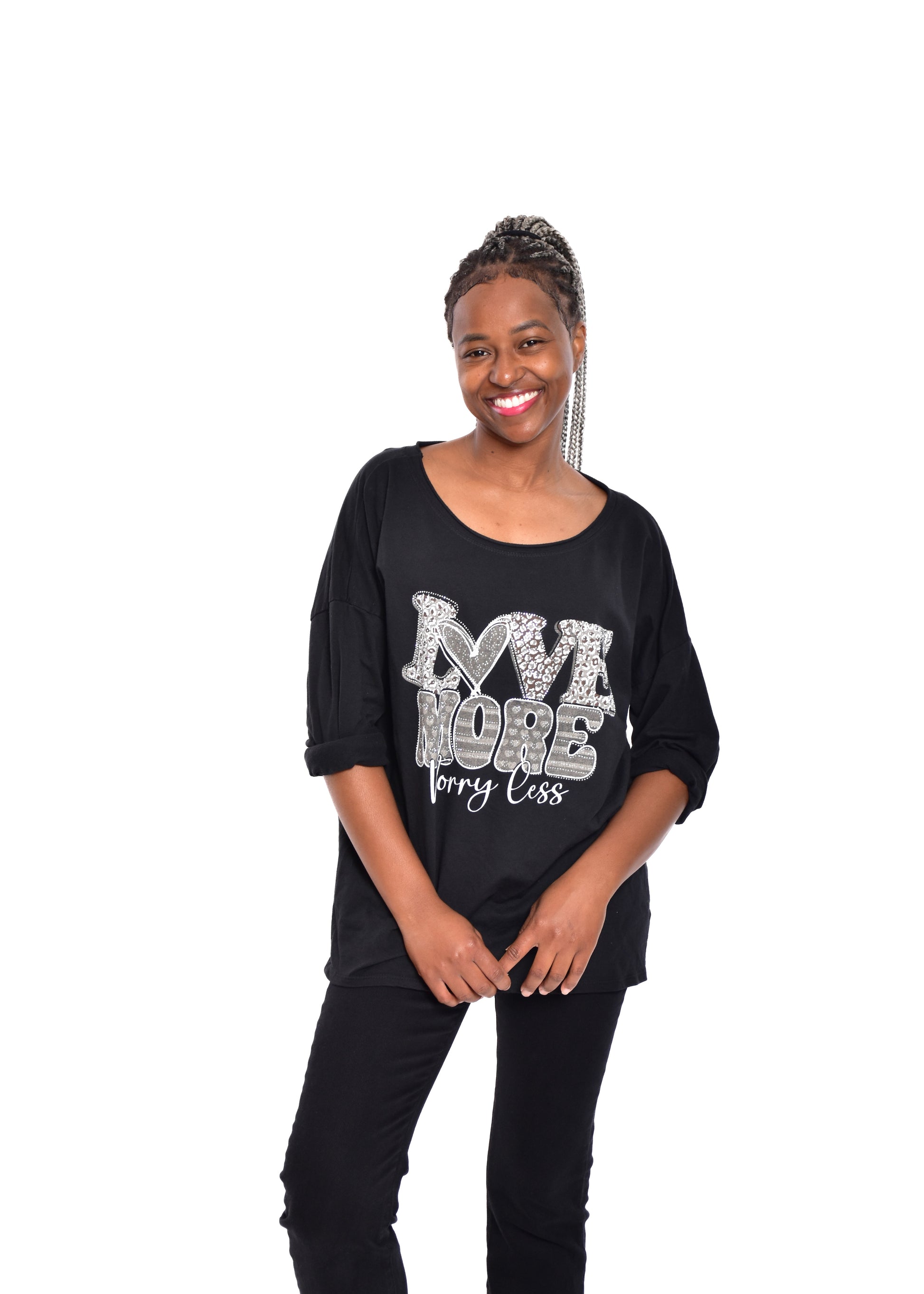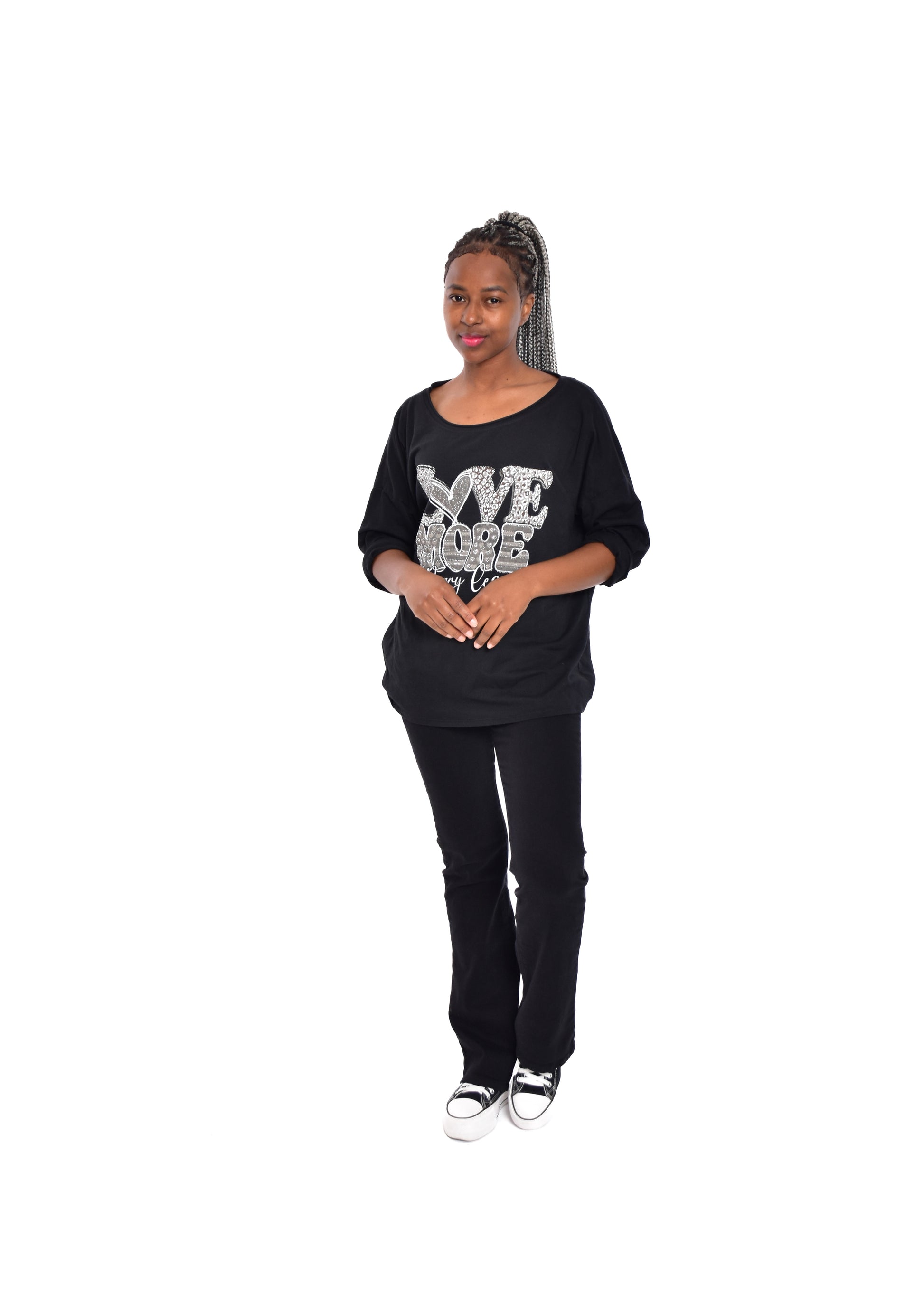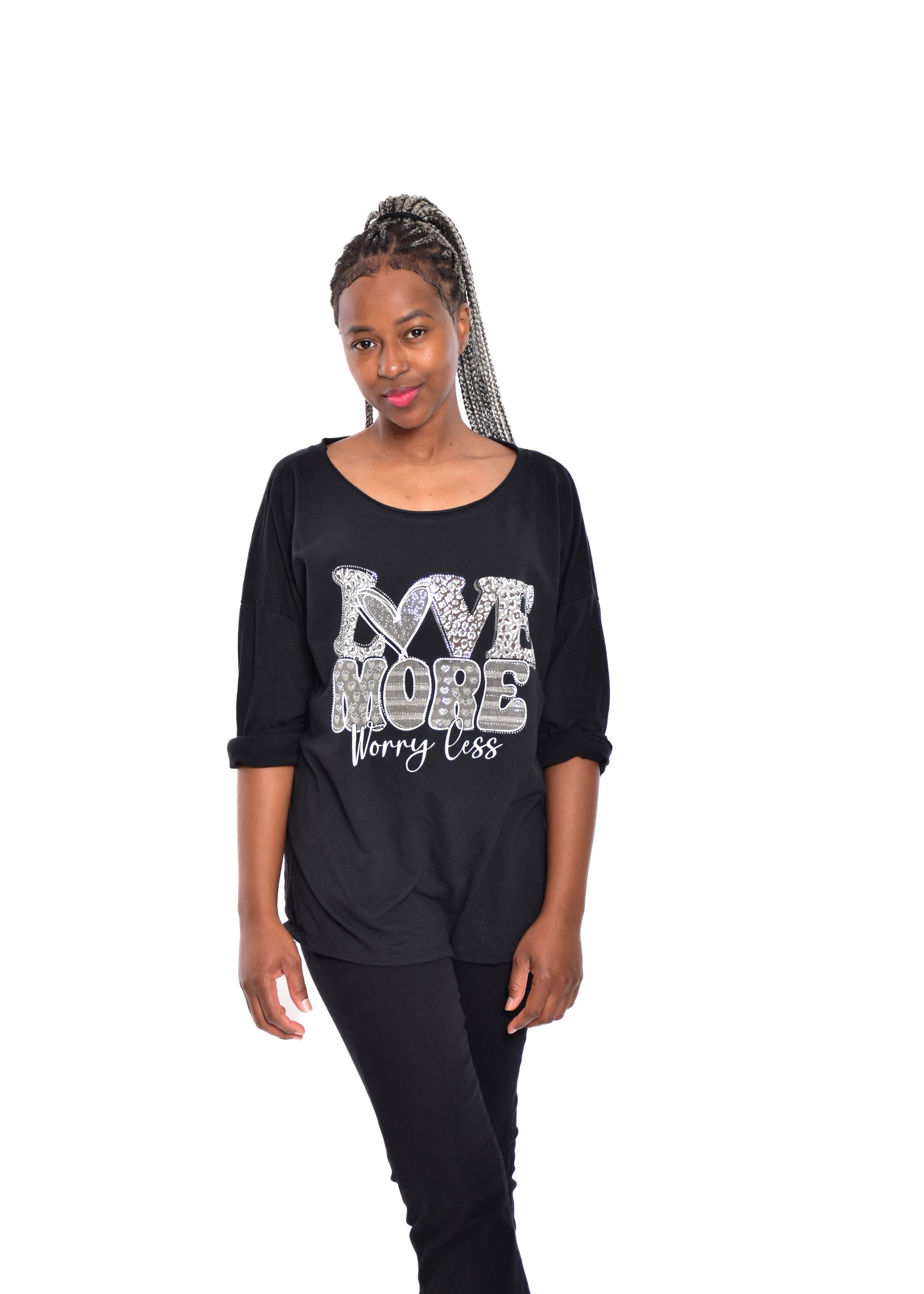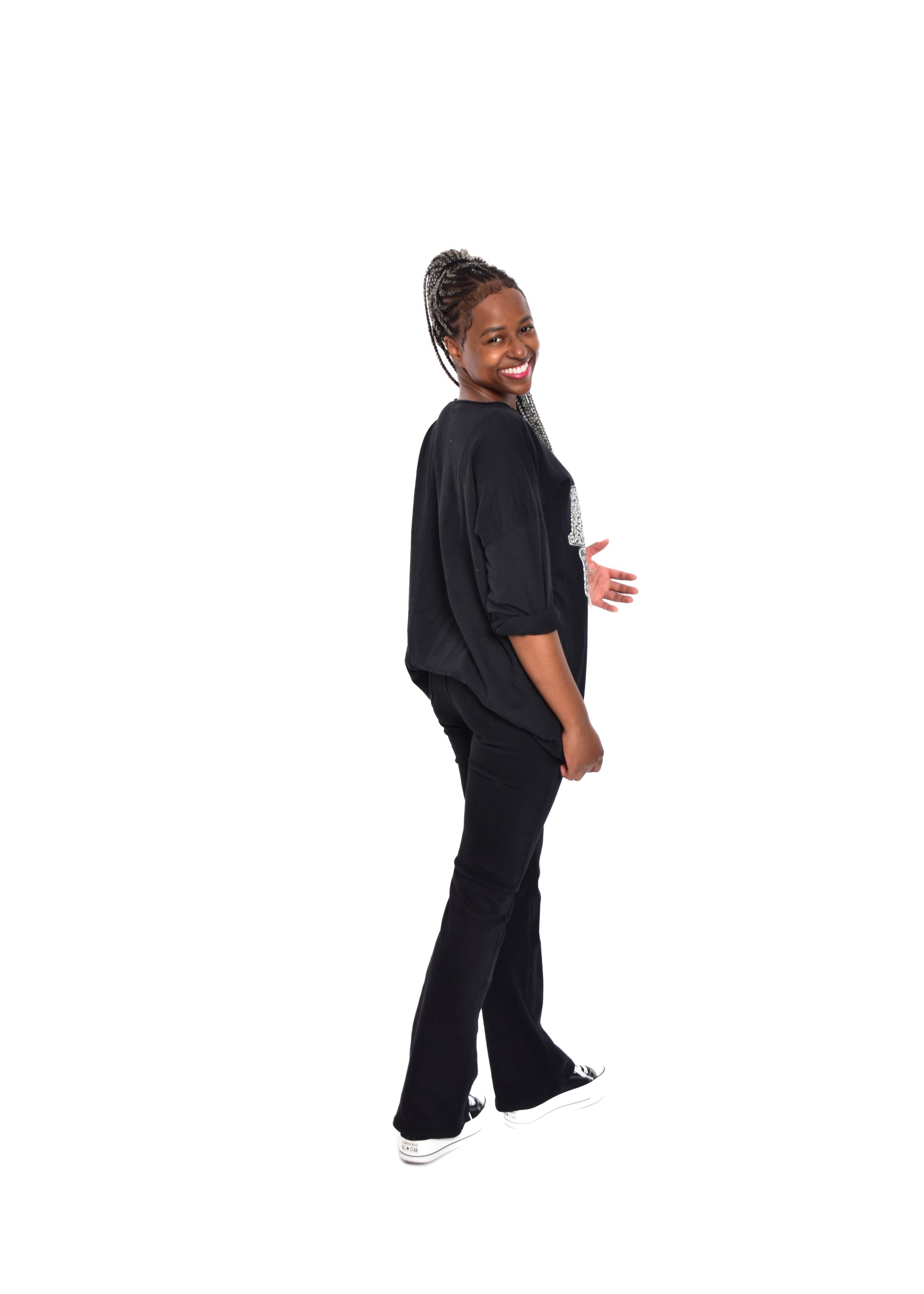 Sudadera de algodón con detalles en strass. Escote redondeado.No lleva felpa interior..Esta prenda está disponible en talla única, en este caso es apto hasta una talla 44.