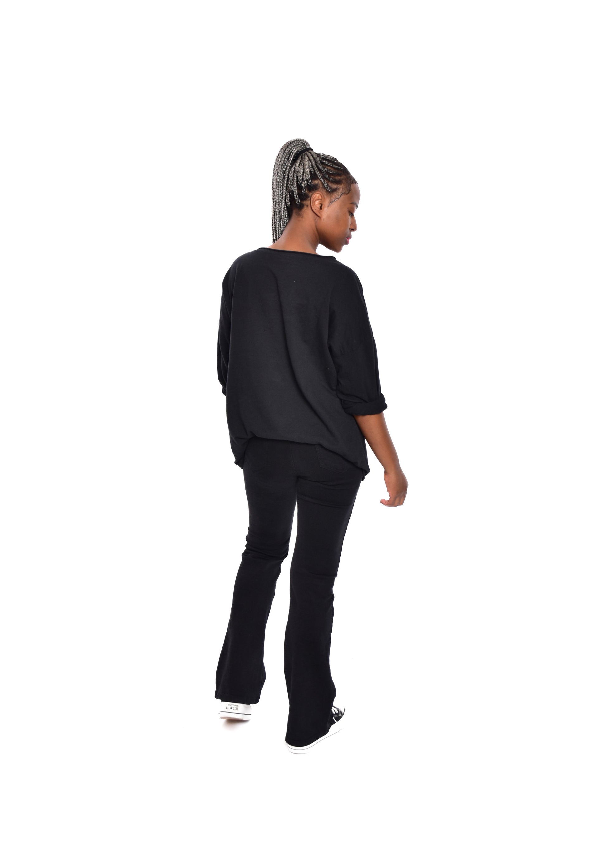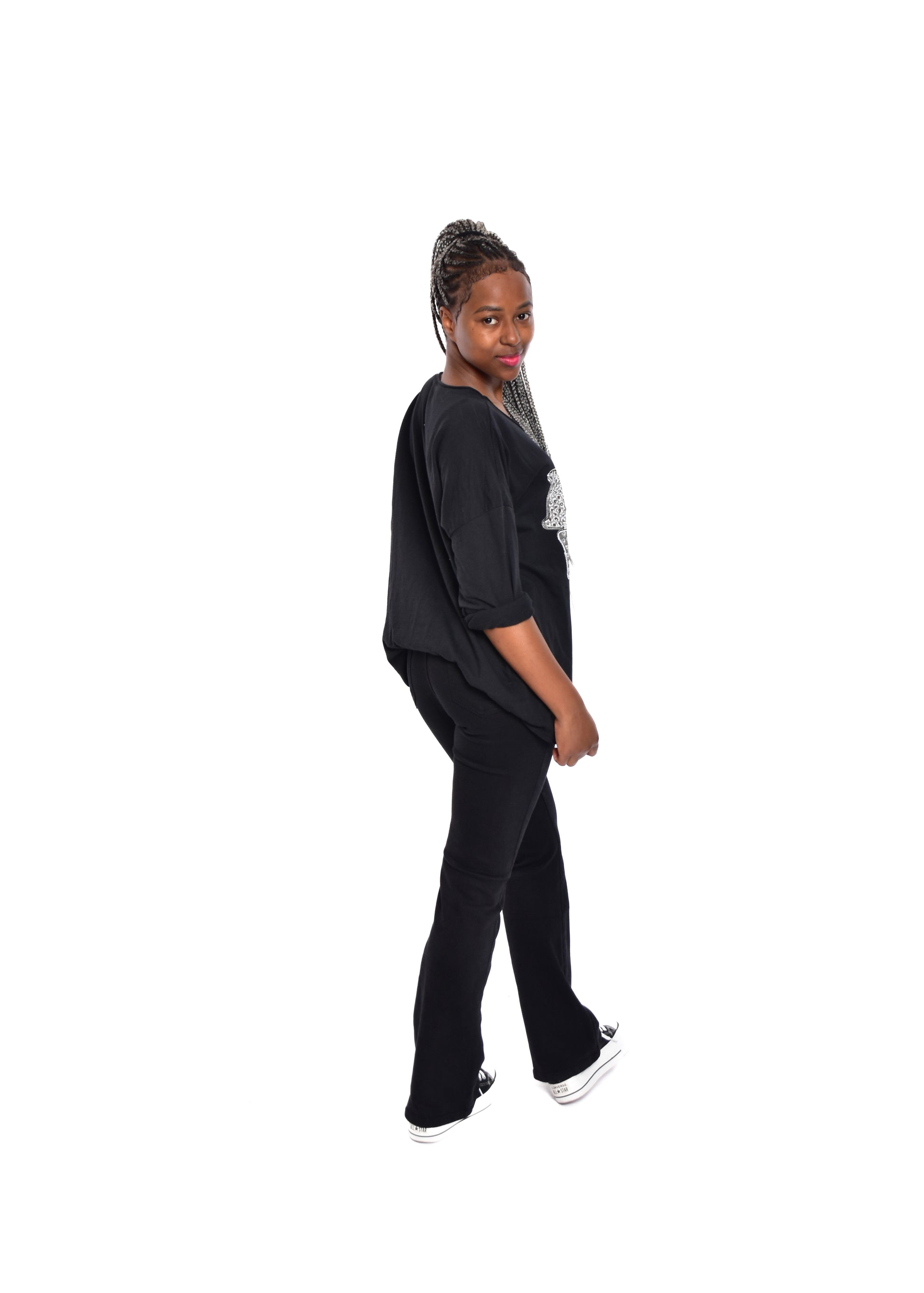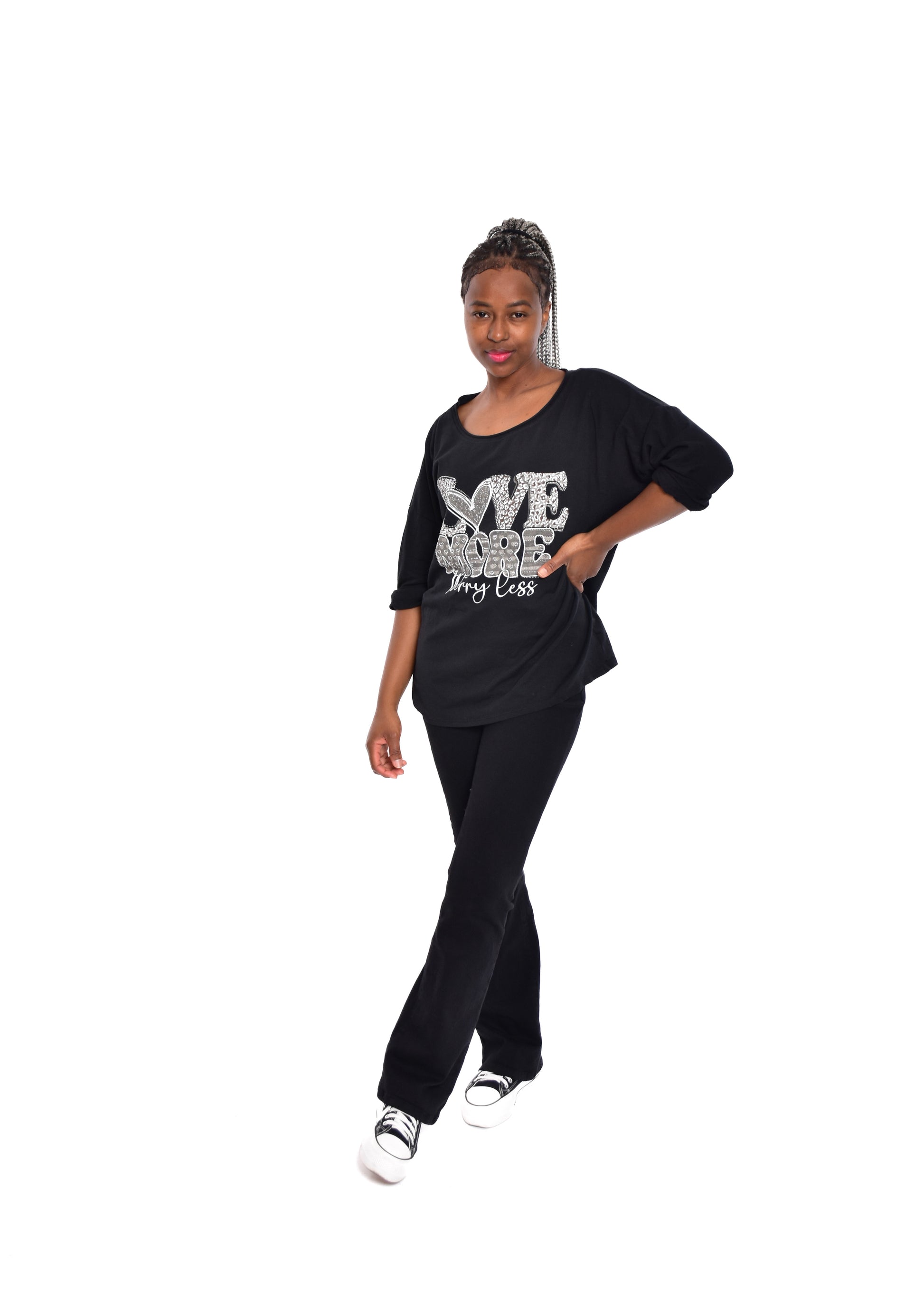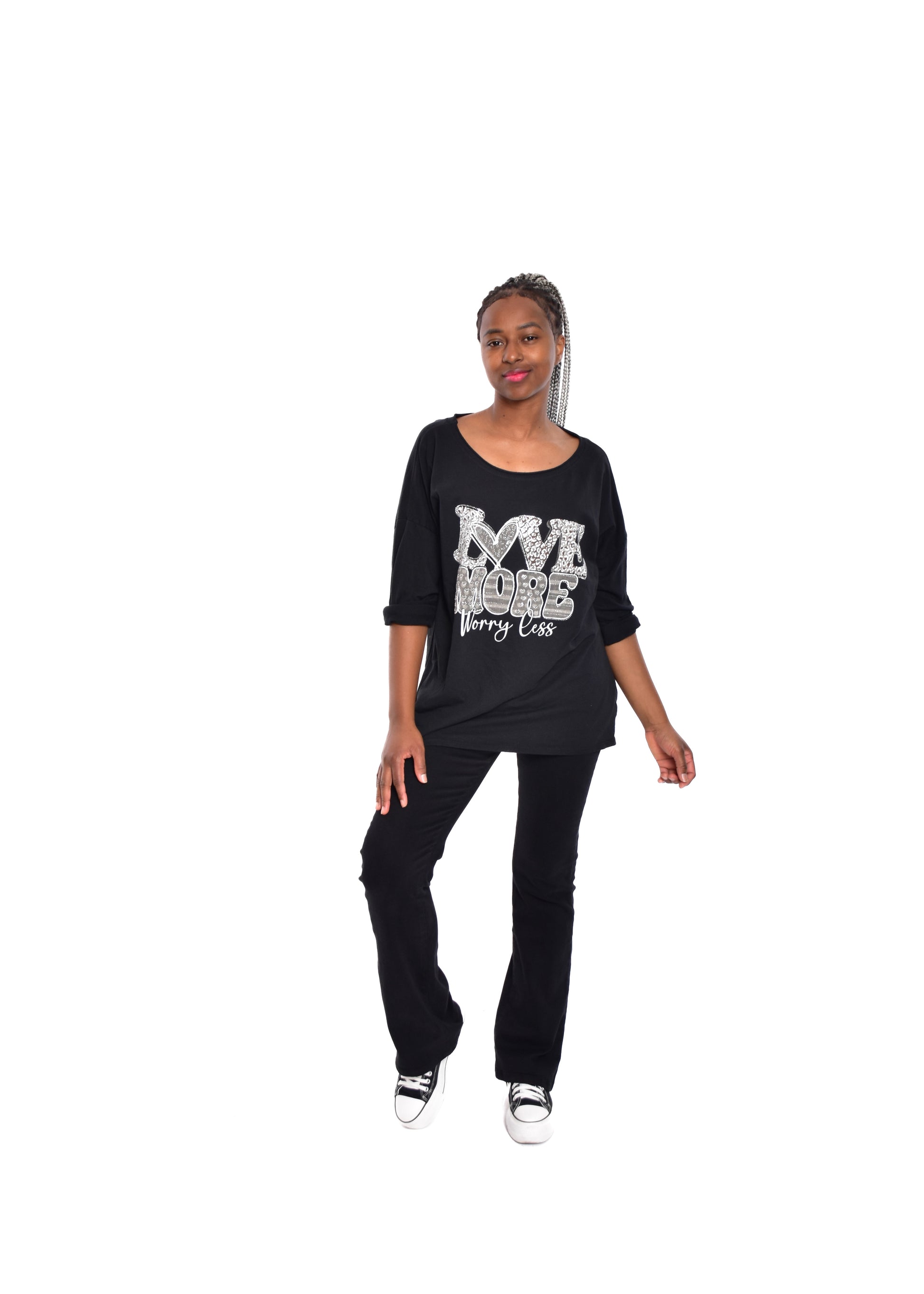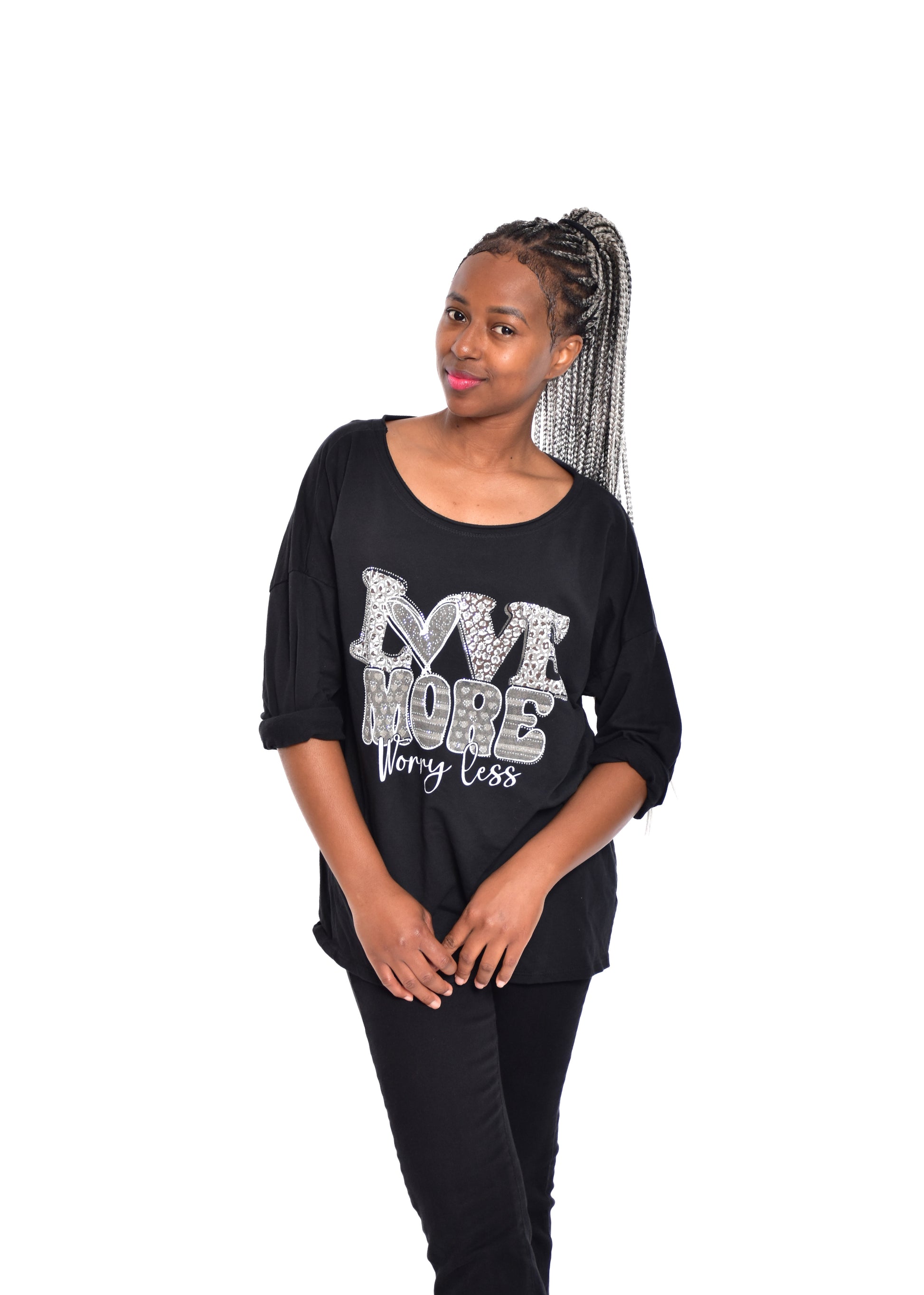 Sudadera de algodón con detalles en strass. Escote redondeado.No lleva felpa interior..Esta prenda está disponible en talla única, en este caso es apto hasta una talla 44.