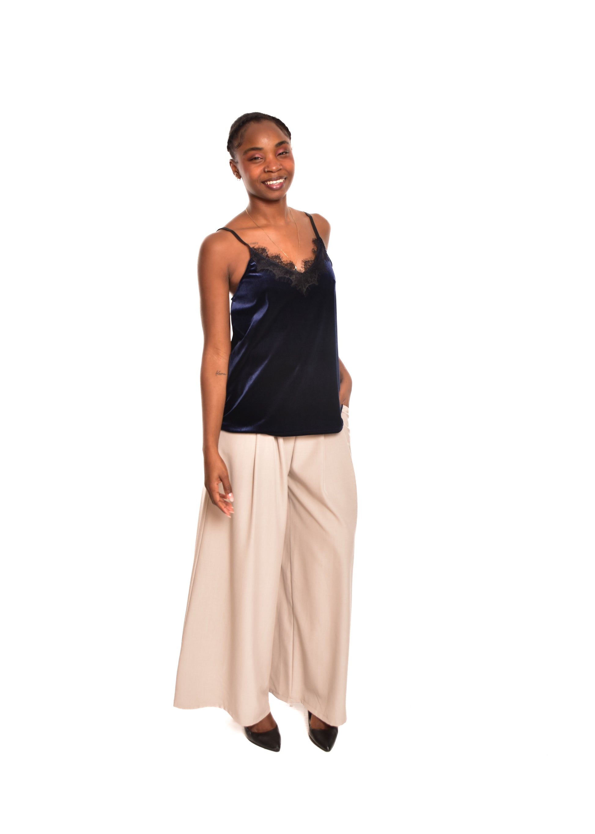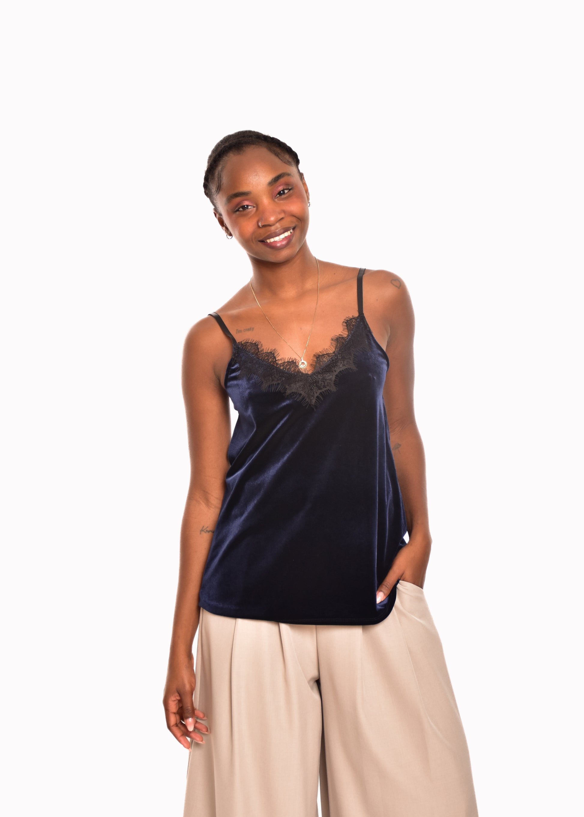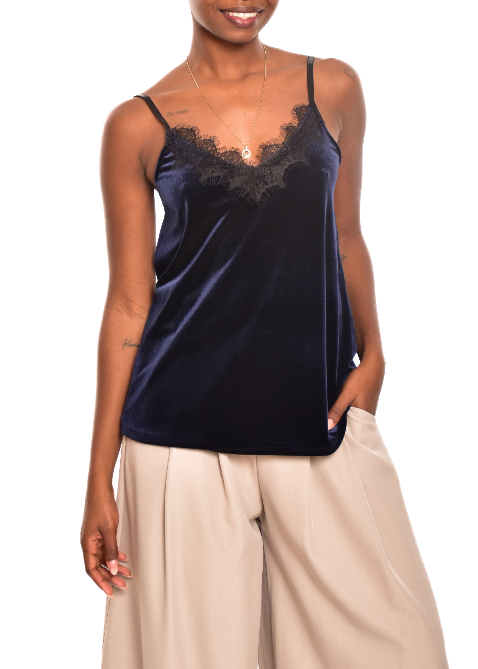 Blusa lencera con puntilla a la altura del escote.Tejido de terciopelo. Esta prenda es Talla Única, en este caso es apta hasta una talla 42. Si lo deseas puedes comprobar las medidas exactas de la prenda en el apartado " Talla y Medidas"
