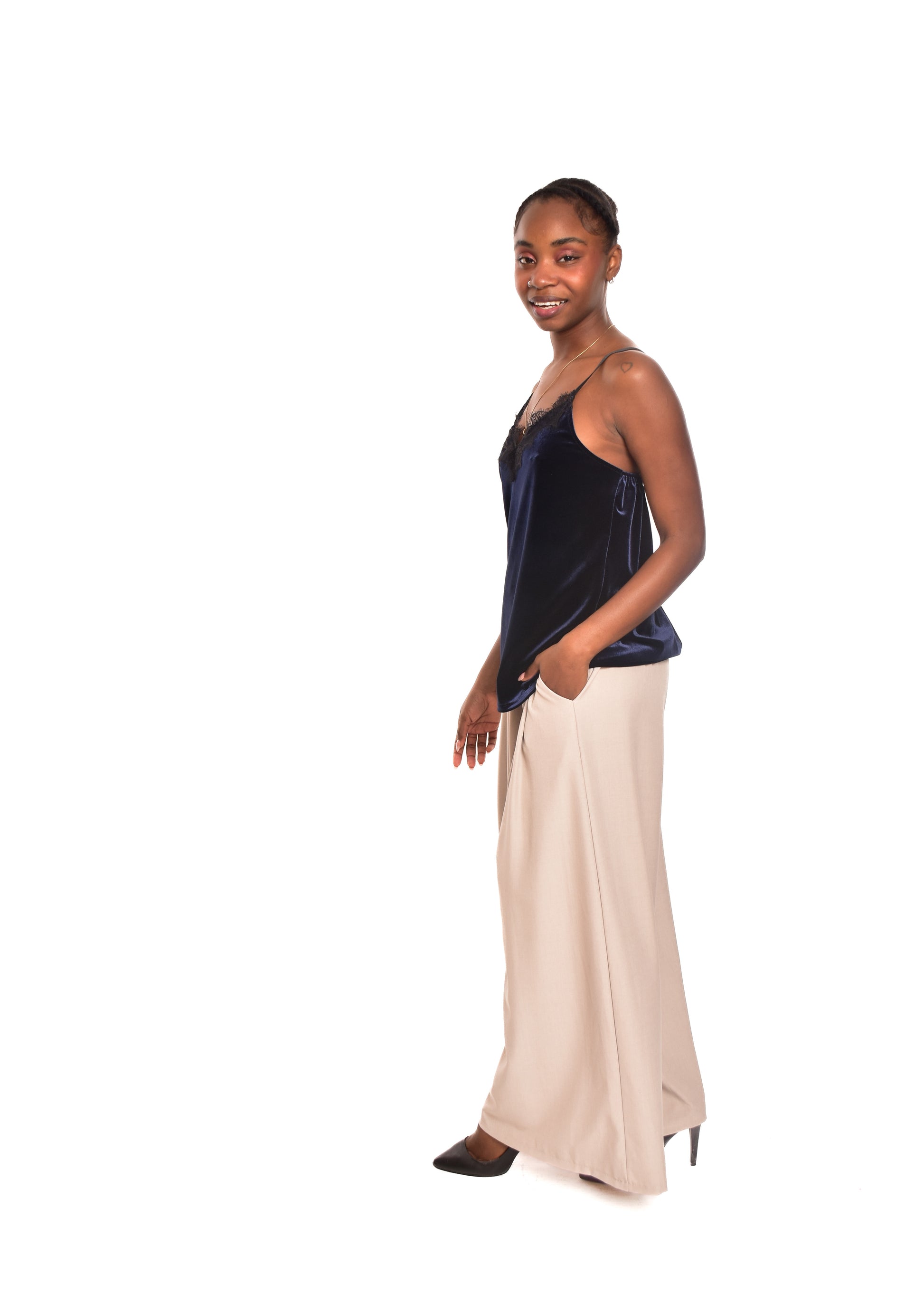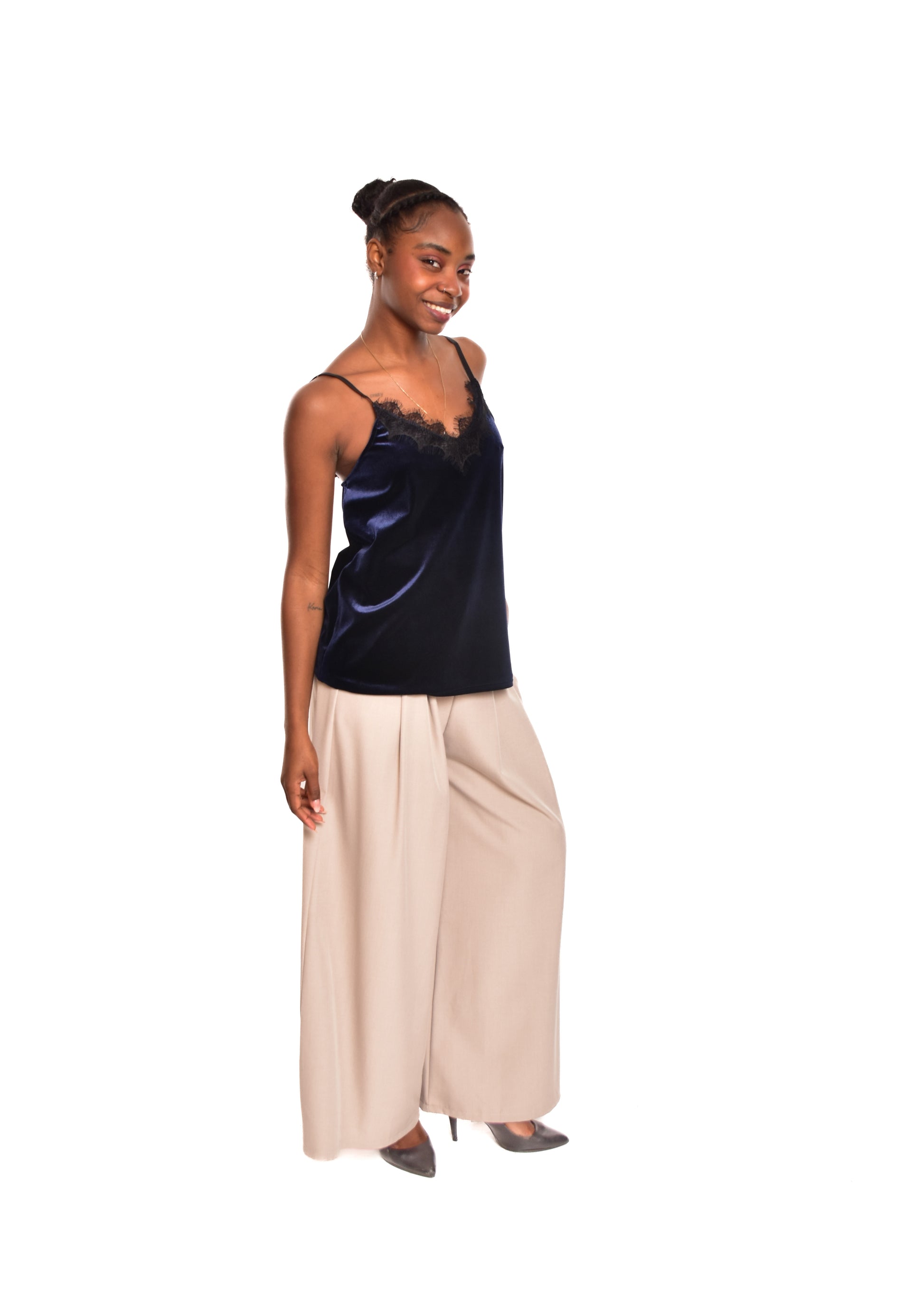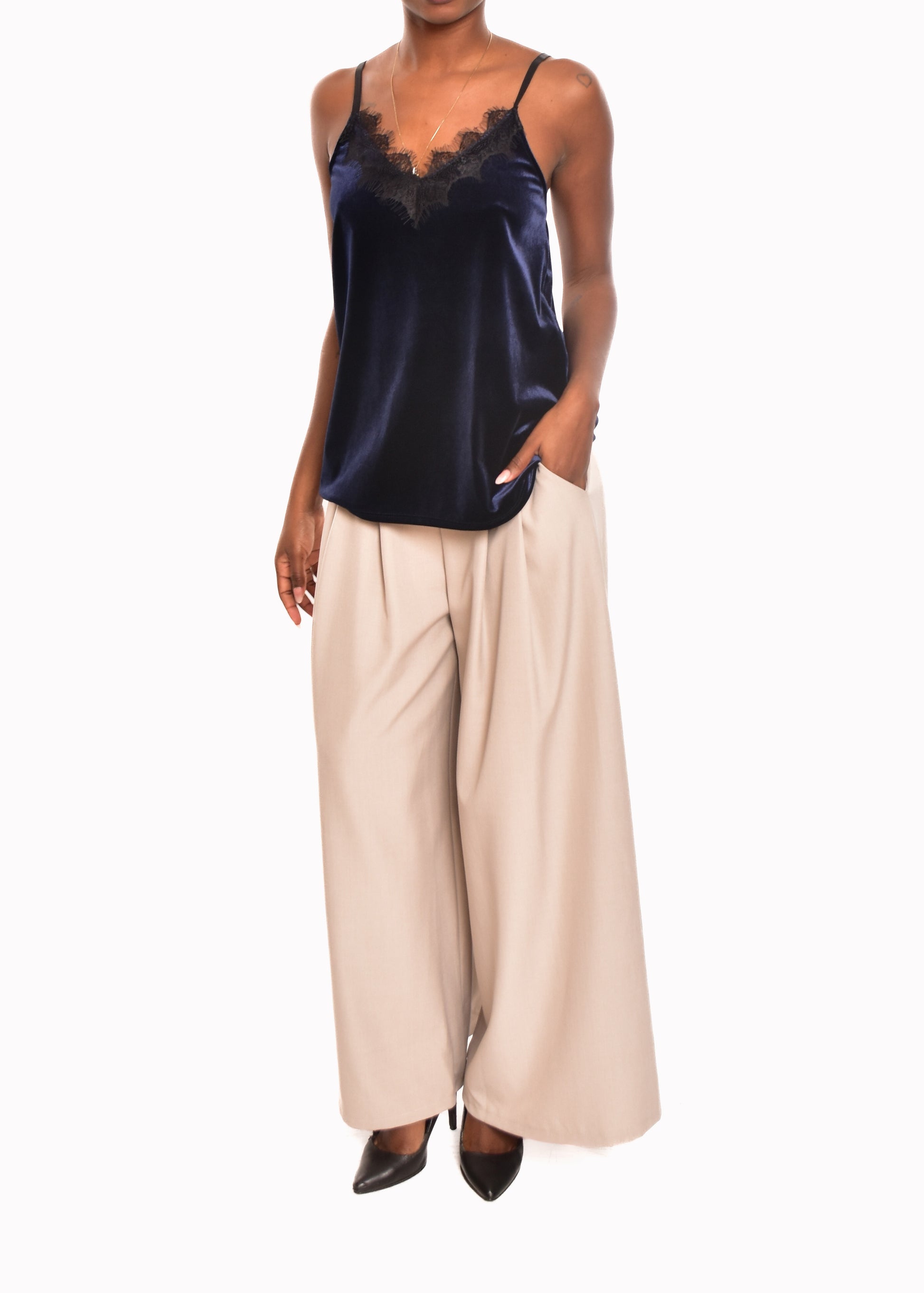 Blusa lencera con puntilla a la altura del escote.Tejido de terciopelo. Esta prenda es Talla Única, en este caso es apta hasta una talla 42. Si lo deseas puedes comprobar las medidas exactas de la prenda en el apartado " Talla y Medidas"