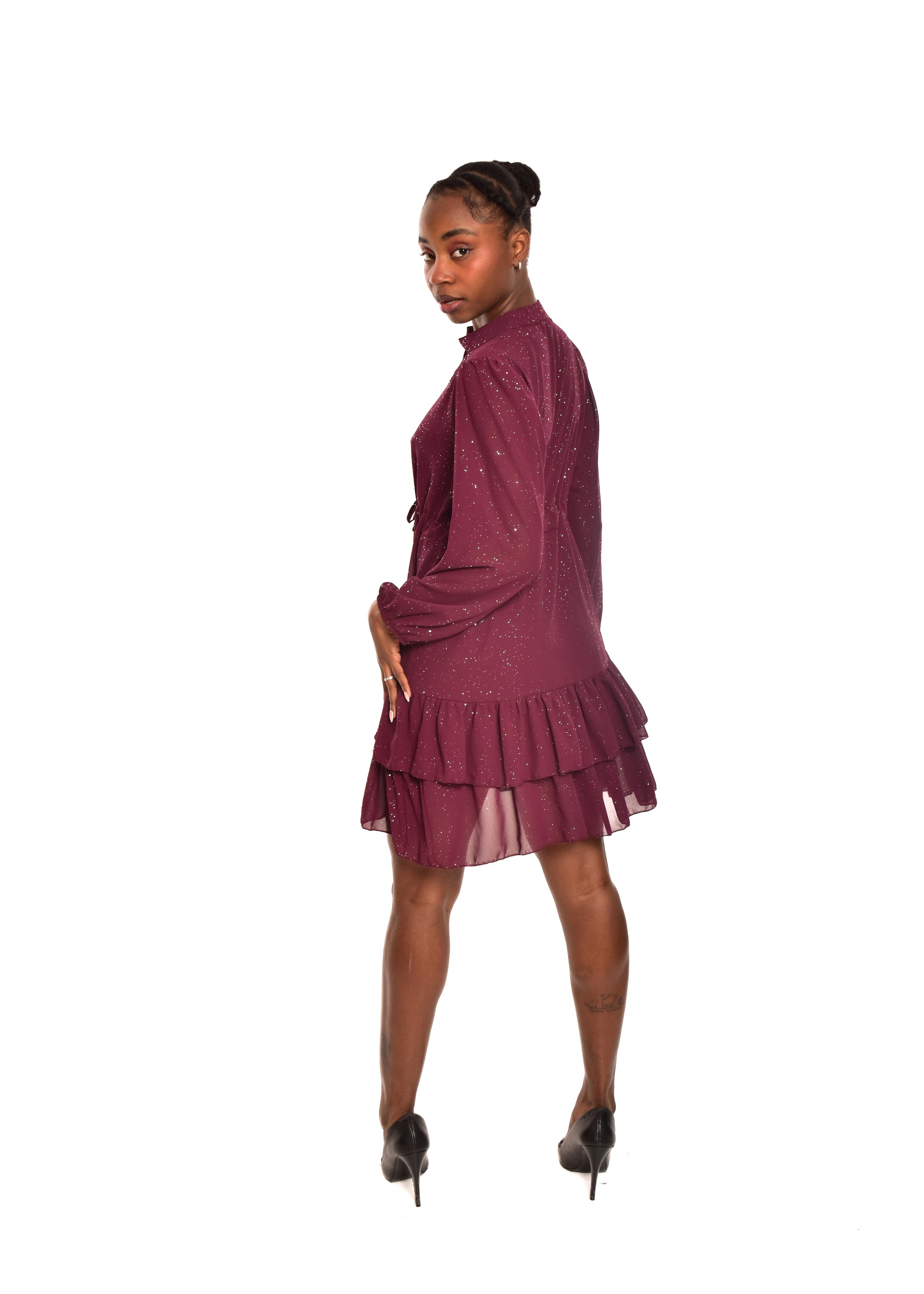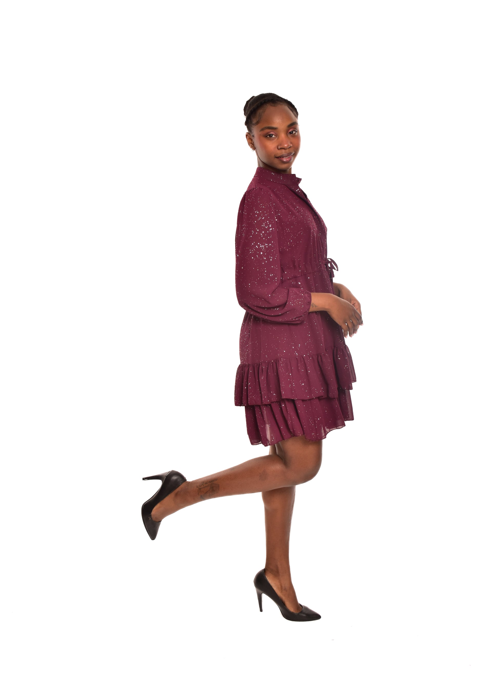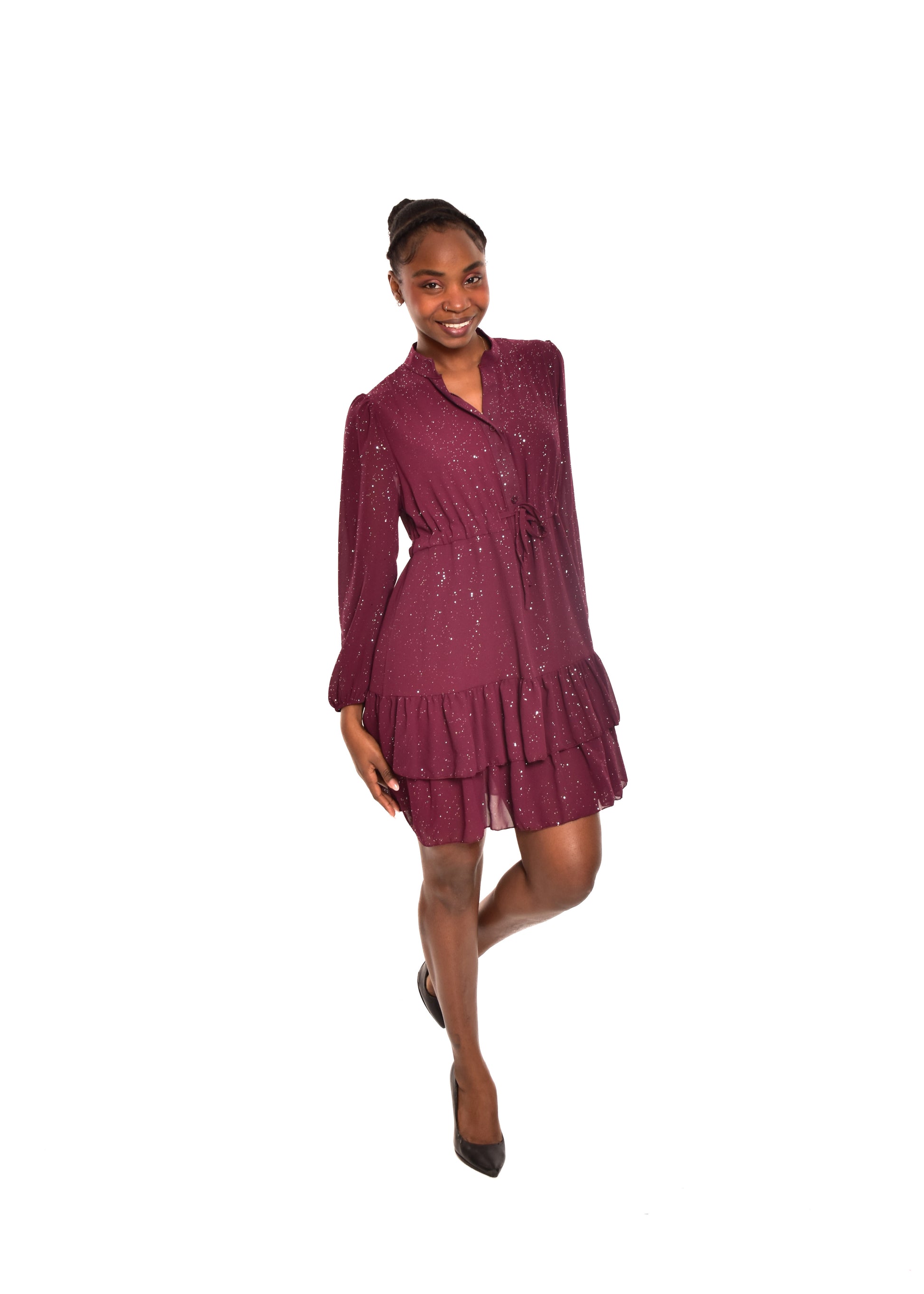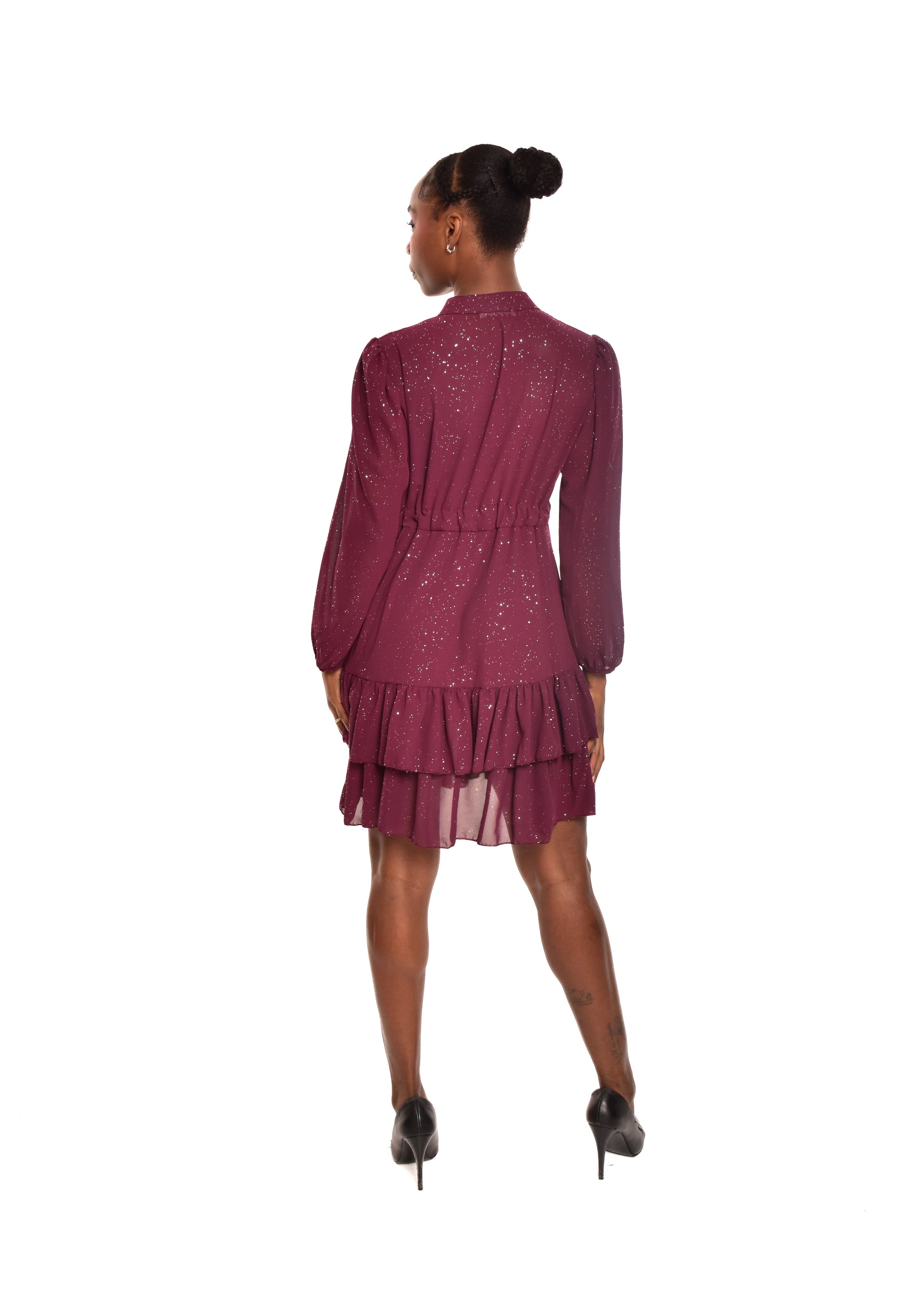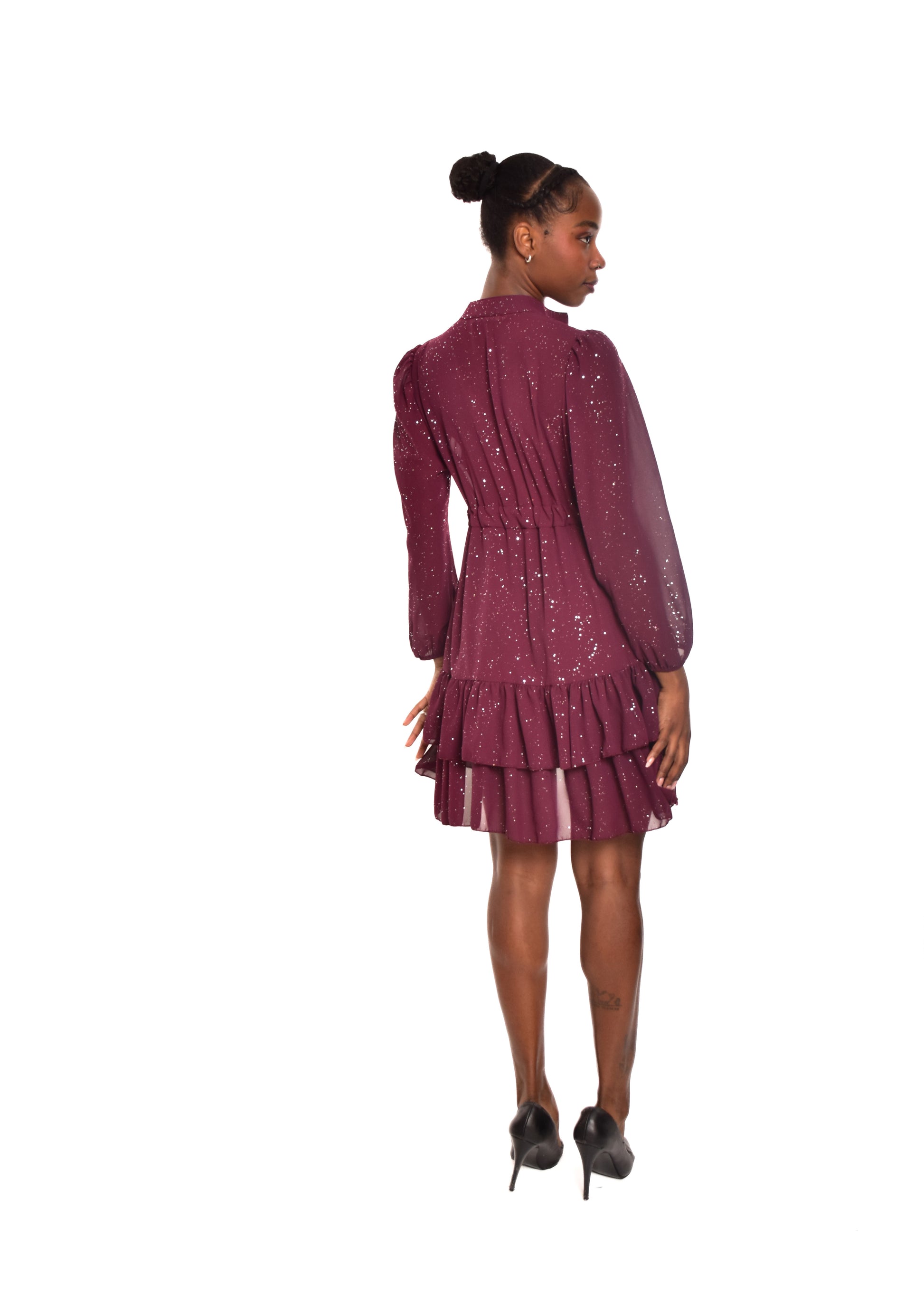 Vestido en tejido de gasa. Incorpora forro. Glitter en tono plata. Esta prenda está disponible en talla única, en este caso es apto hasta una talla 42.