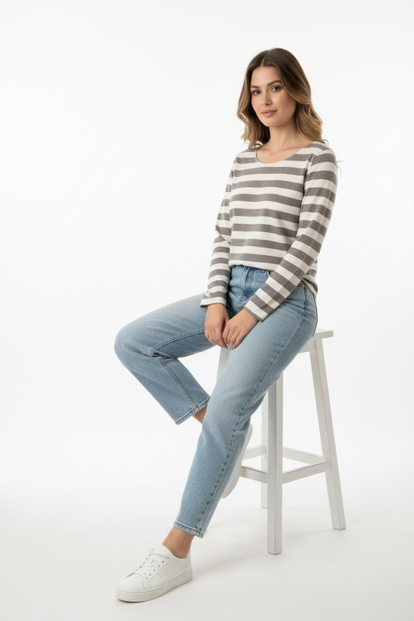 Jersey de punto finito. Esta prenda está disponible en talla única, en este caso es apto hasta una talla 40.