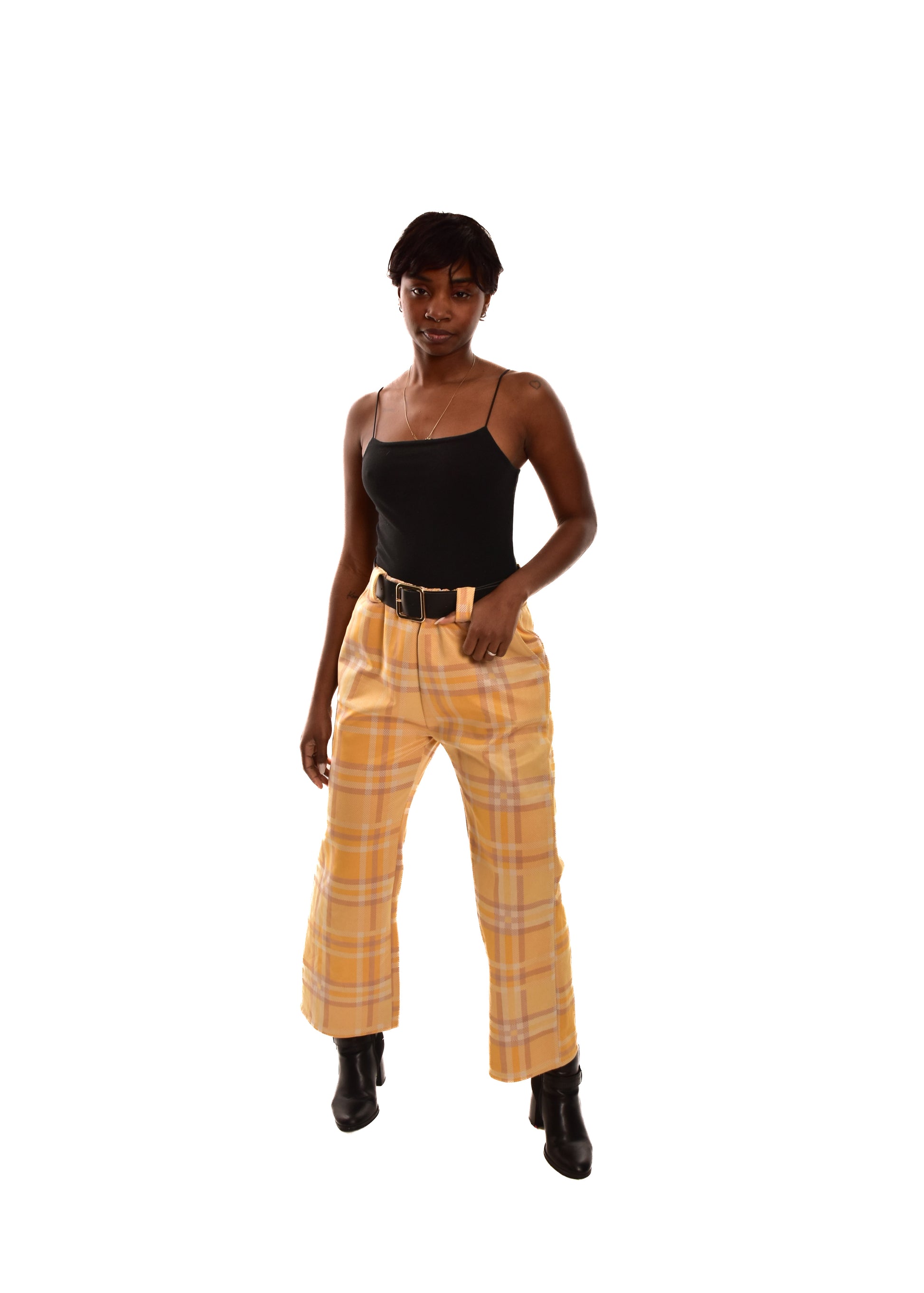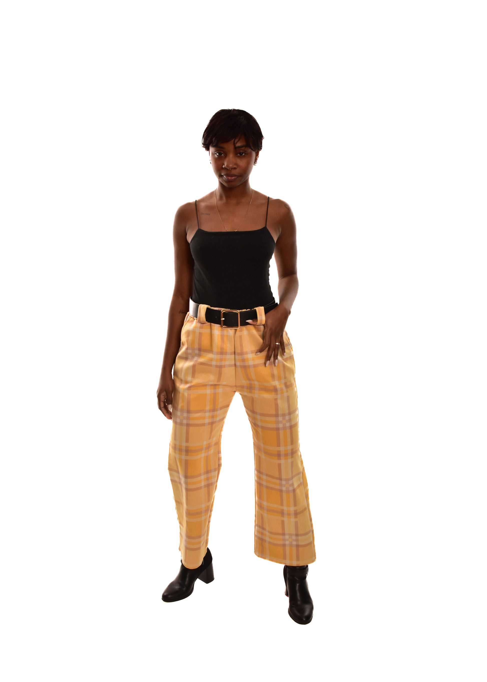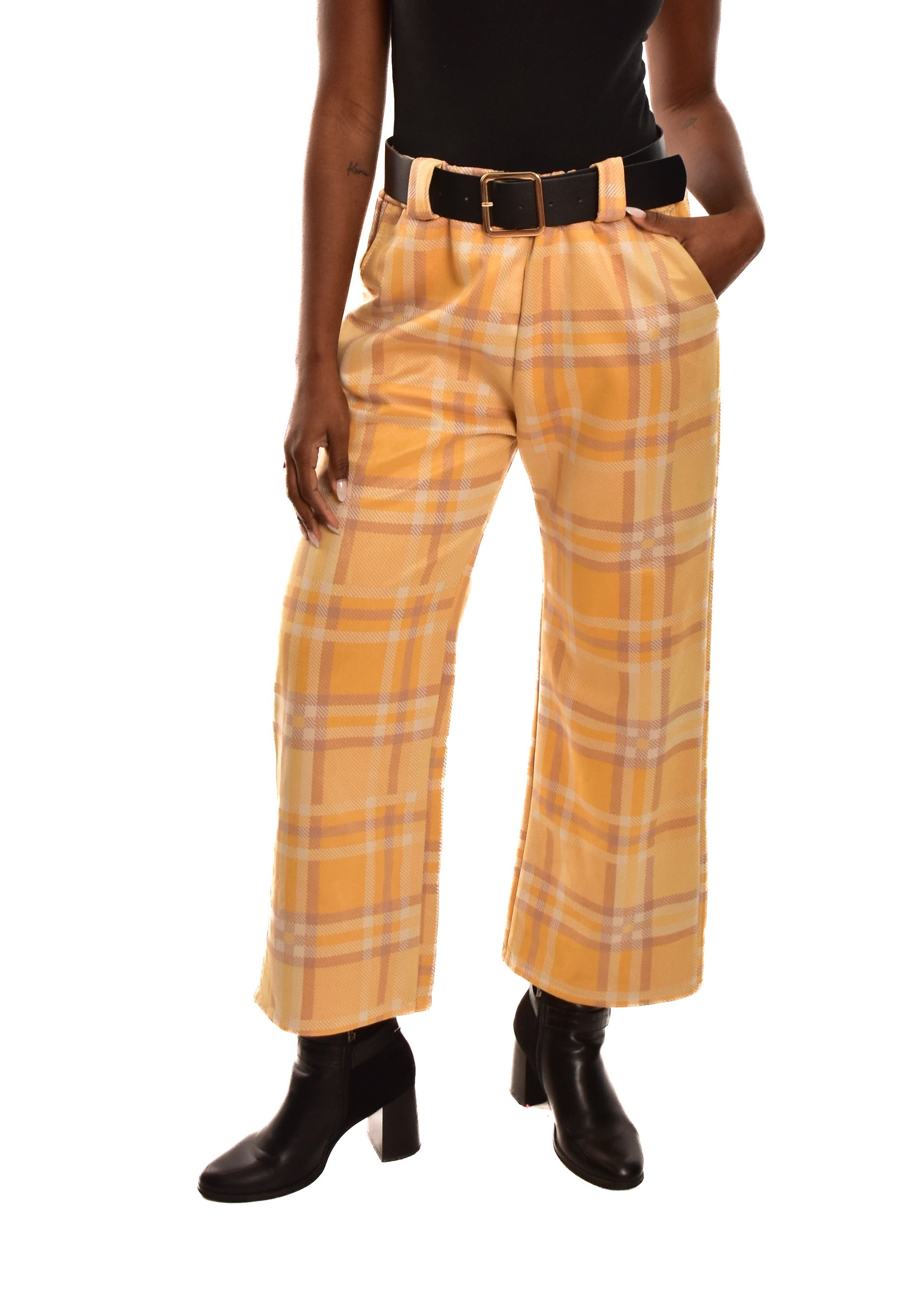 PANTALÓN AMARILLO- CUADROS + CINTURÓN
