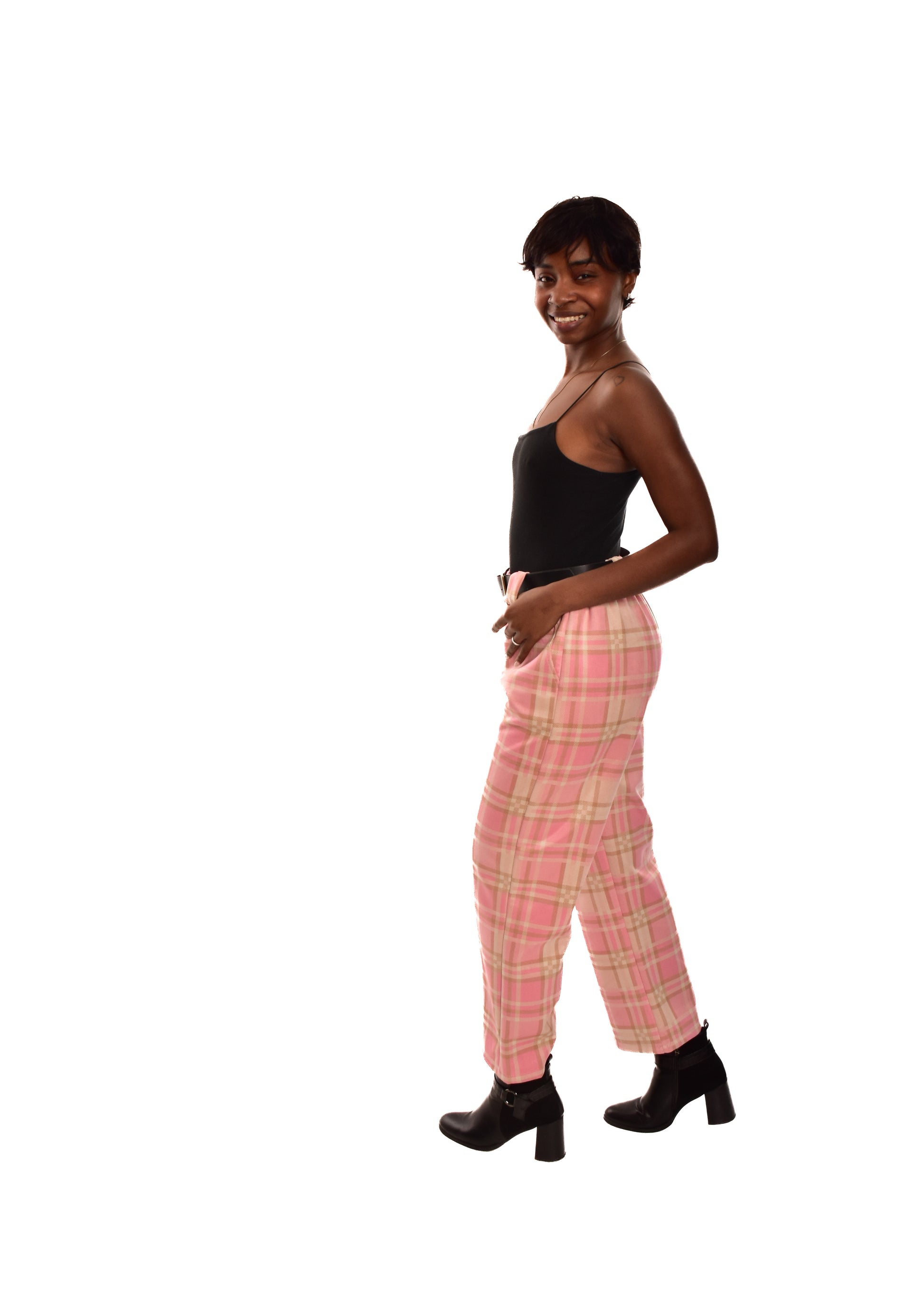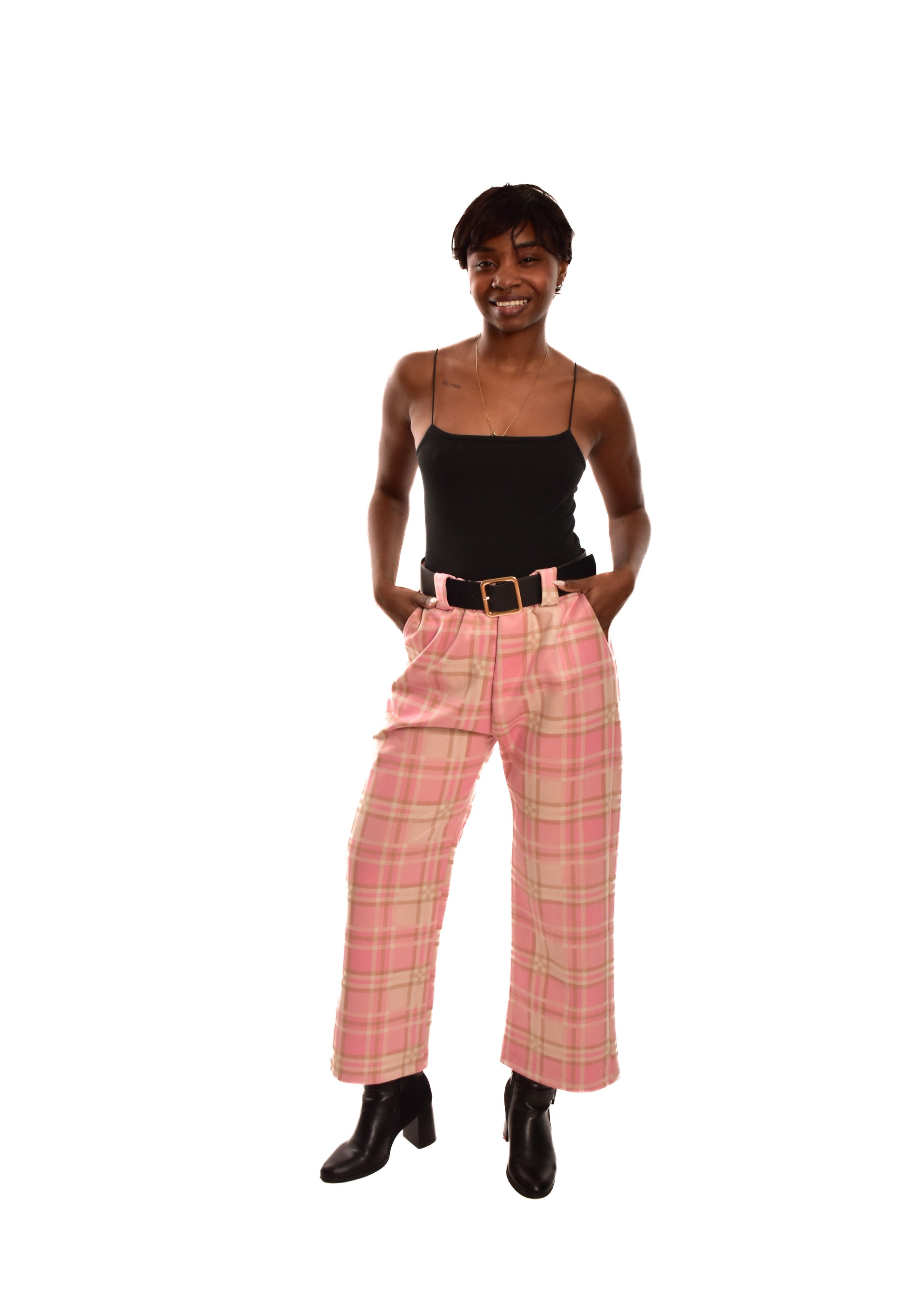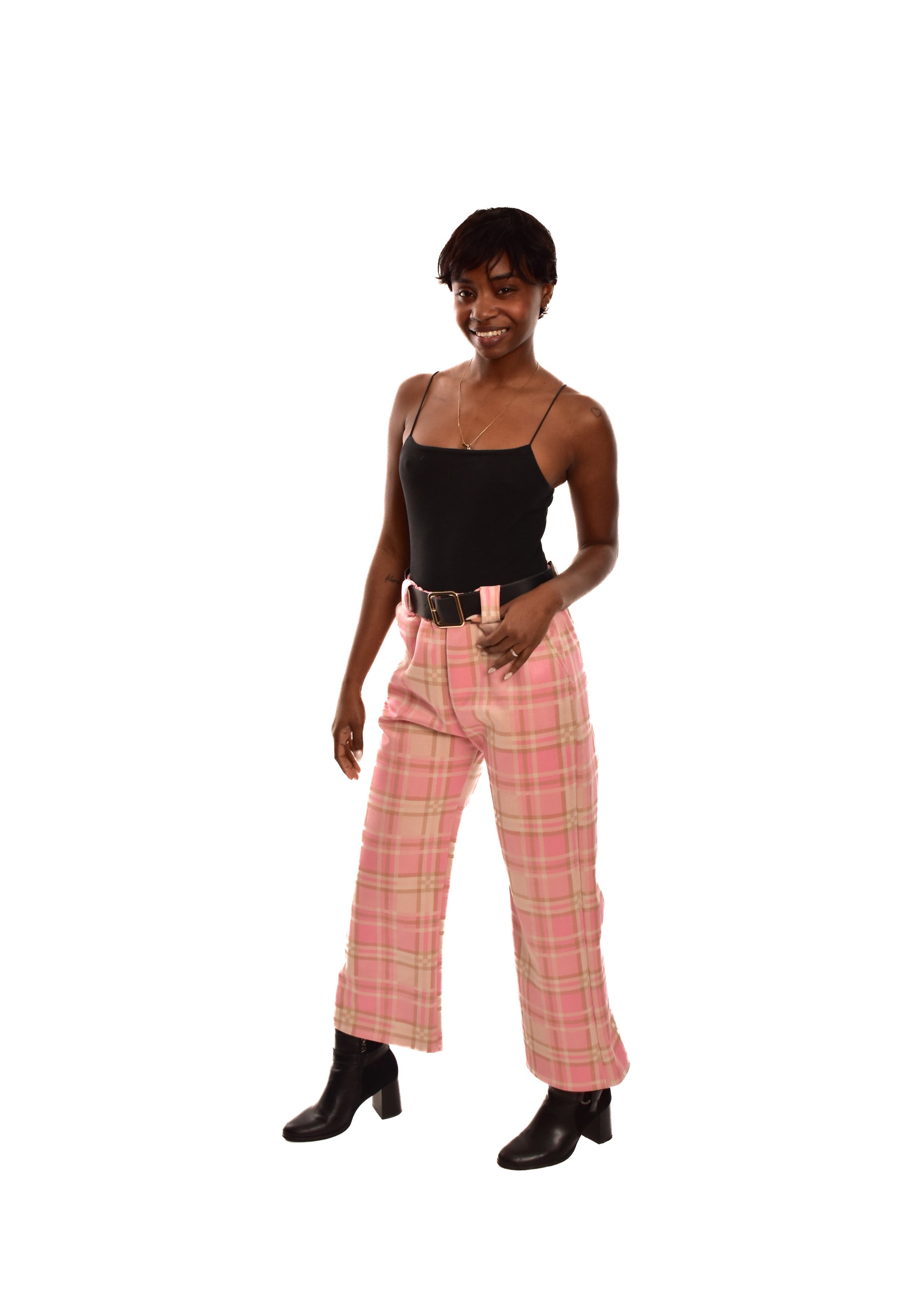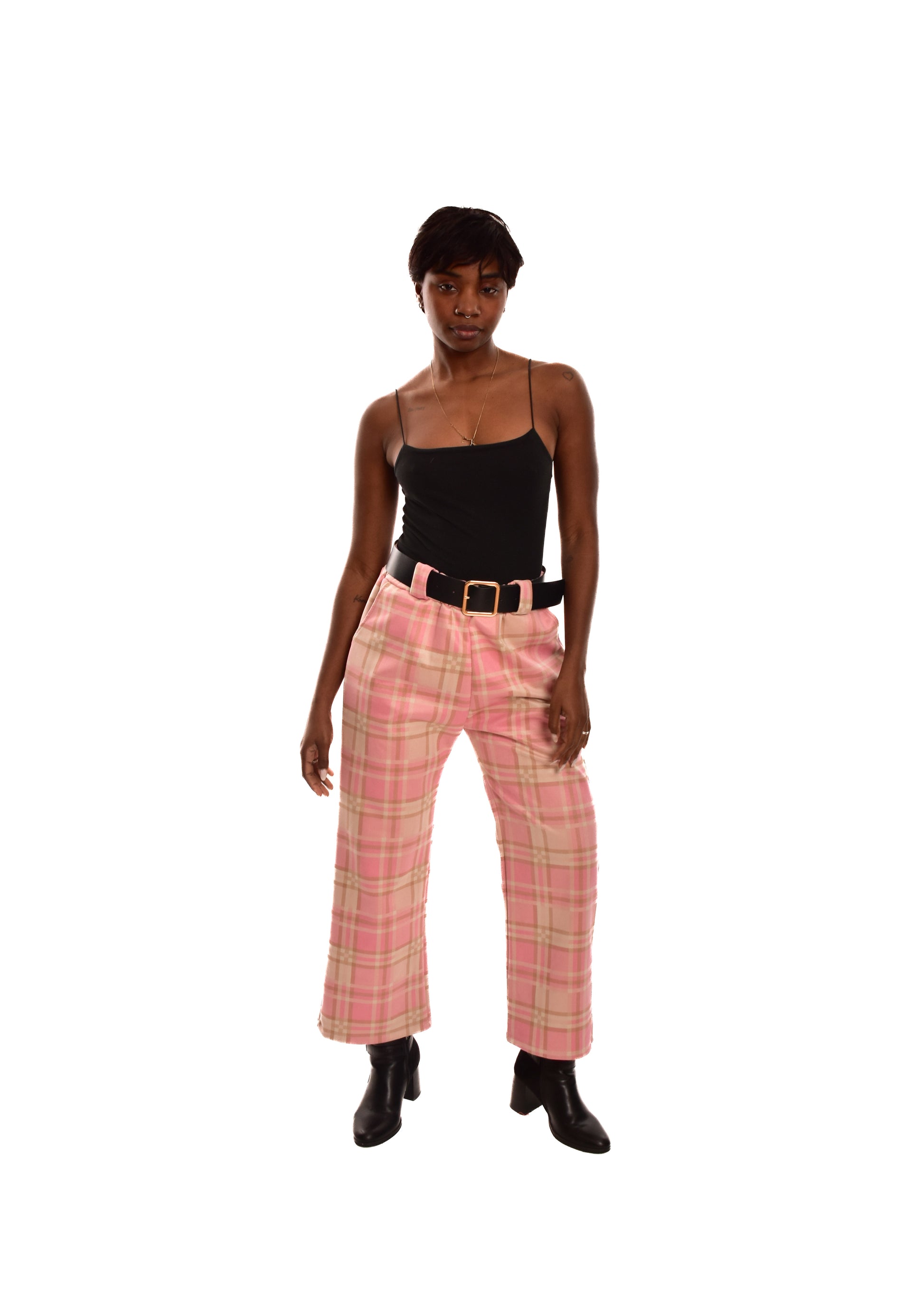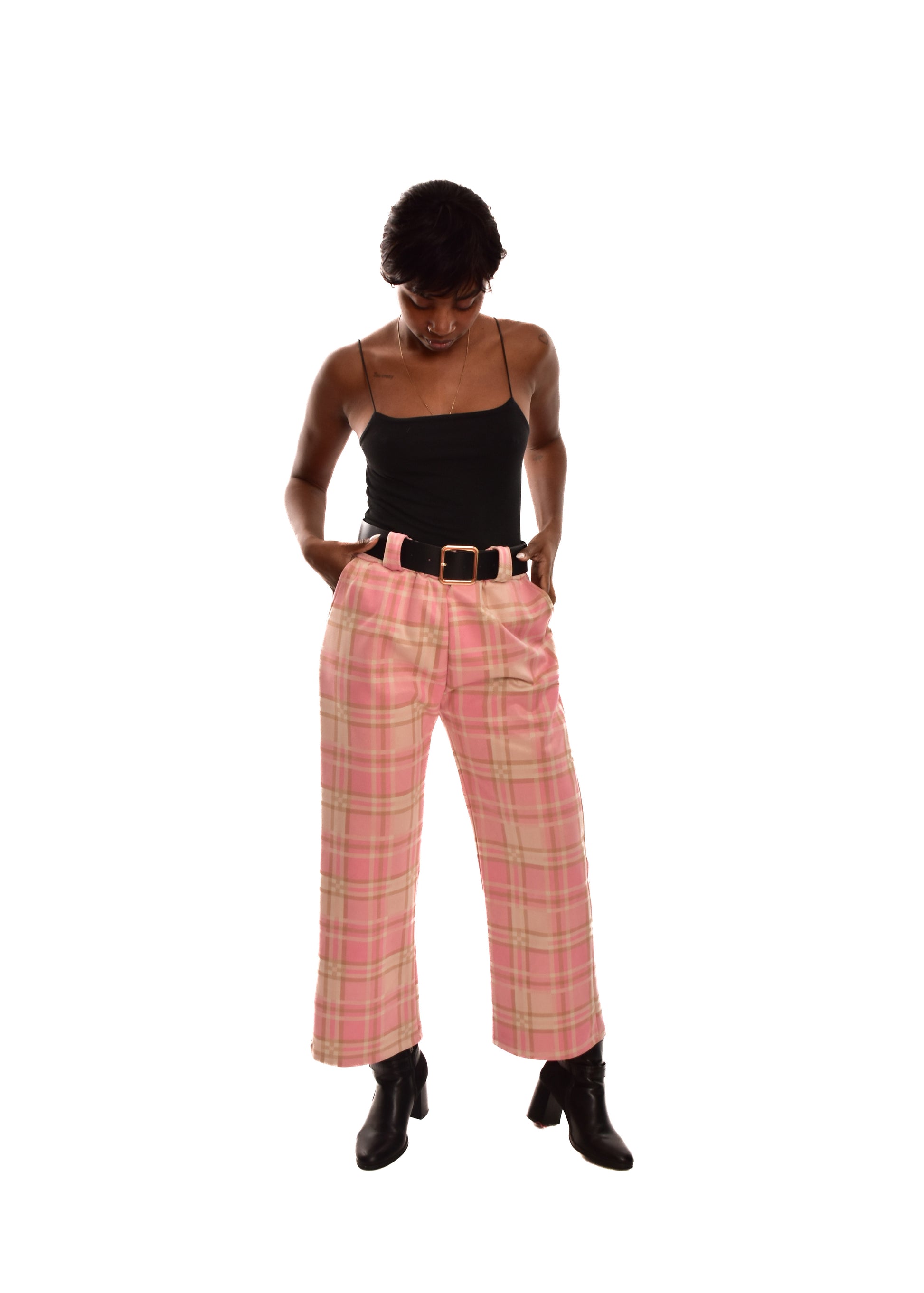 PANTALÓN ROSA- CUADROS + CINTURÓN