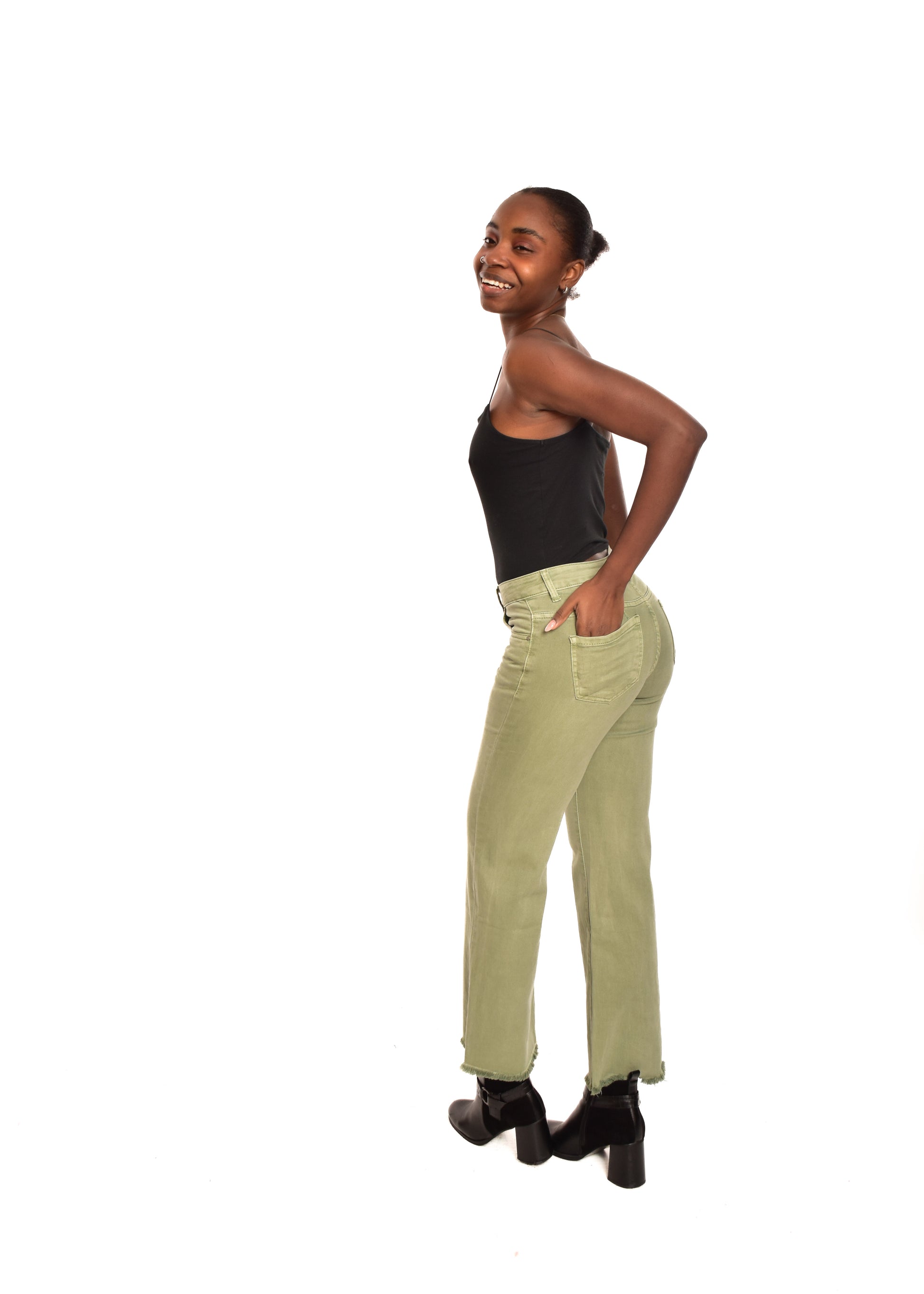 Pantalón push up con corte recto y desflecado. Esta prenda está disponible de la talla XS a la XXL , en este caso es apta hasta una talla 44. Si lo deseas puedes comprobar las medidas exactas de la prenda en el apartado " Talla y Medidas"
