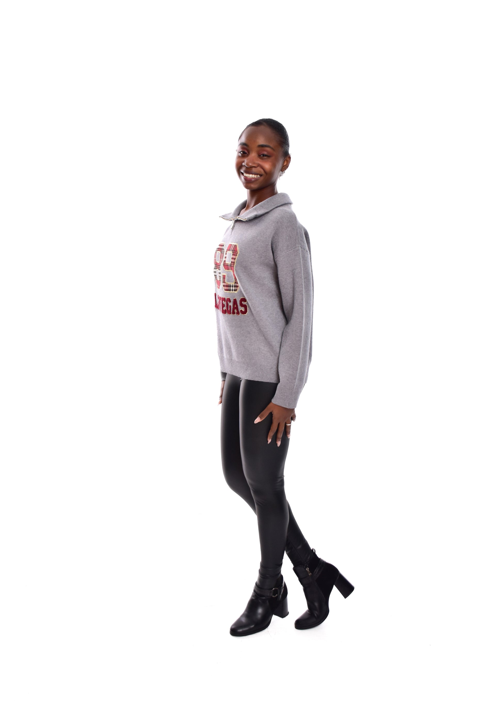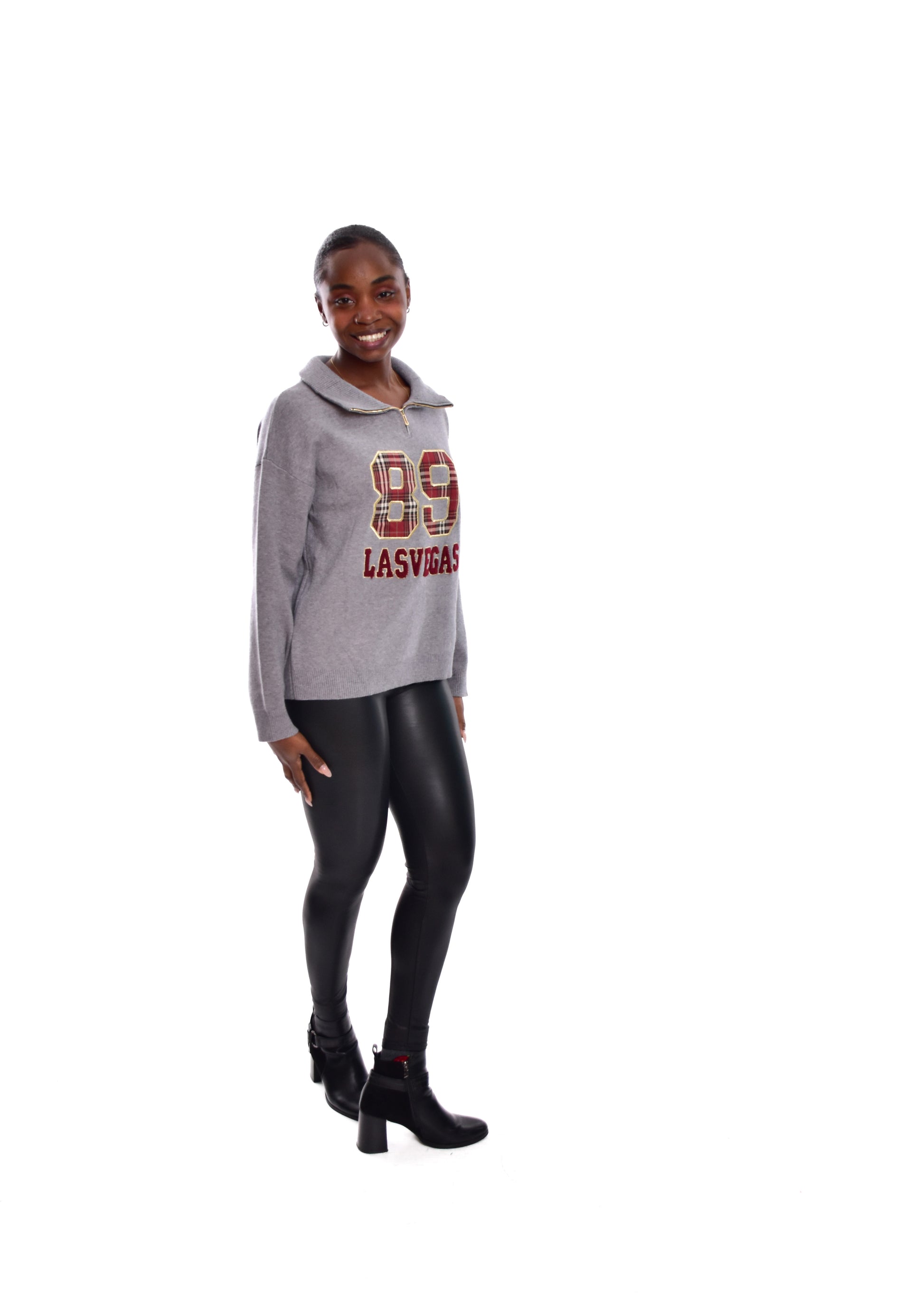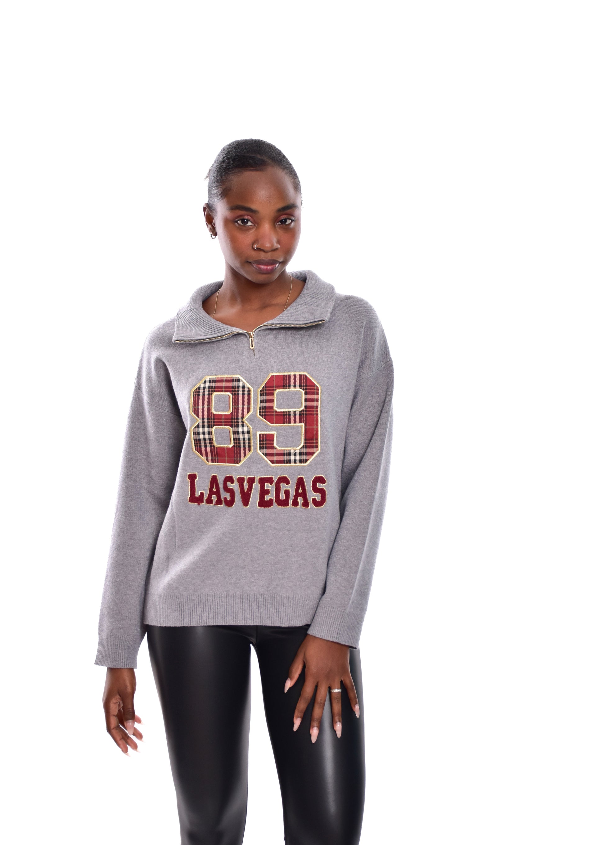 Jersey de punto grueso. Combinado con parche en estampado de cuadros.Esta prenda está disponible en talla única, en este caso es apto hasta una talla 42.